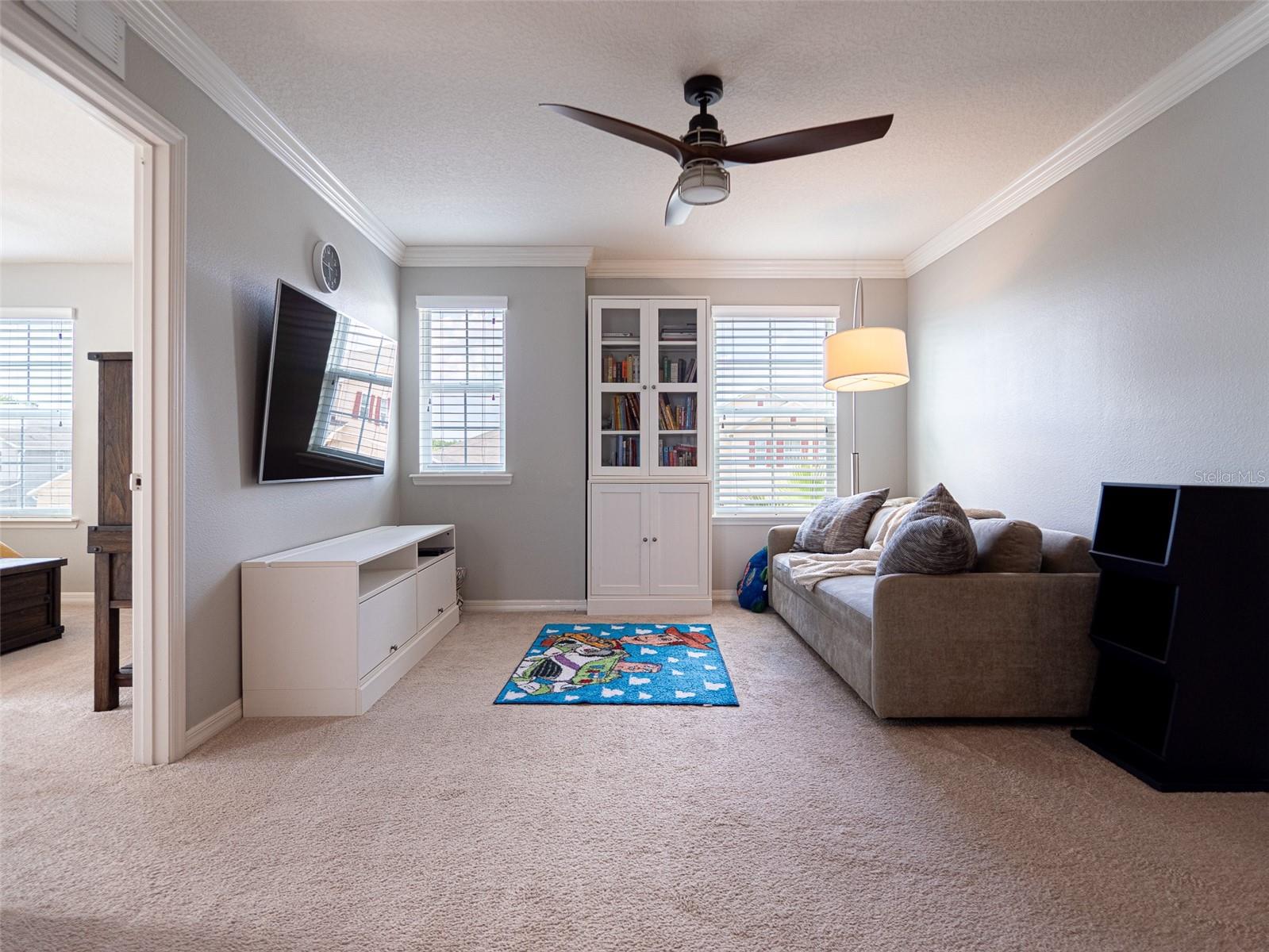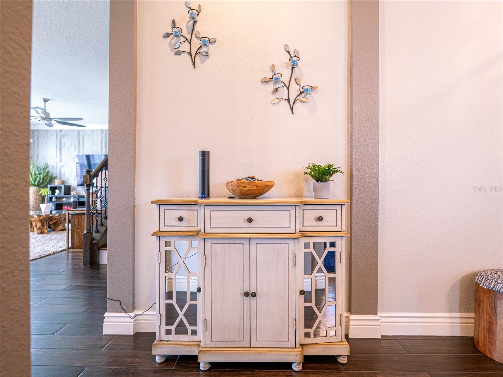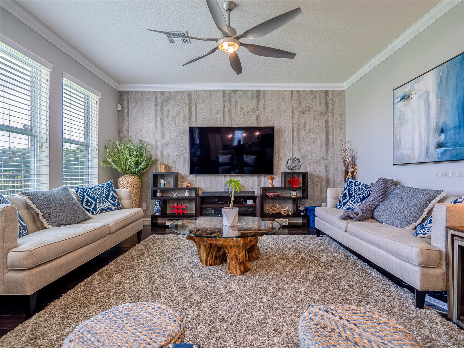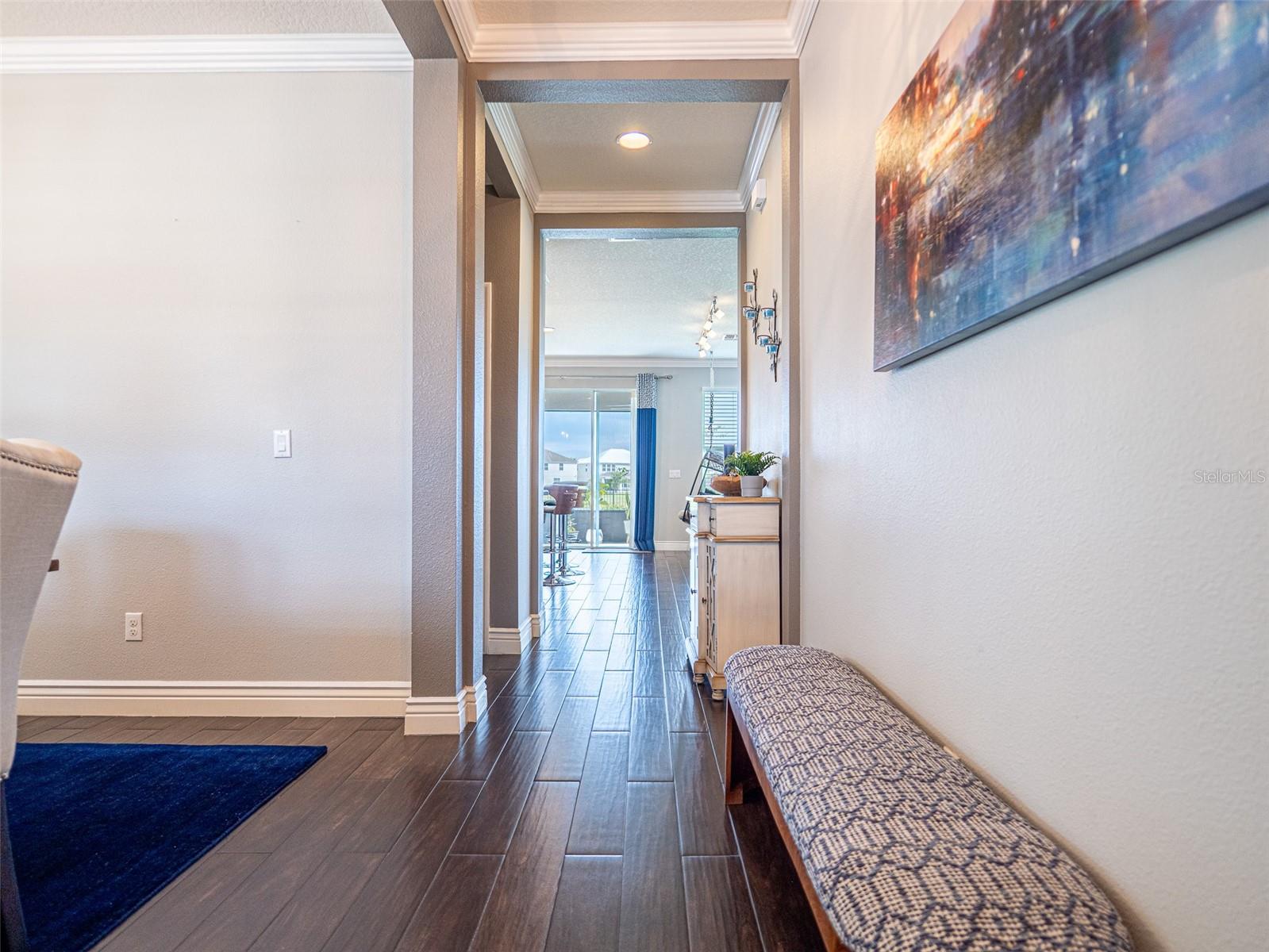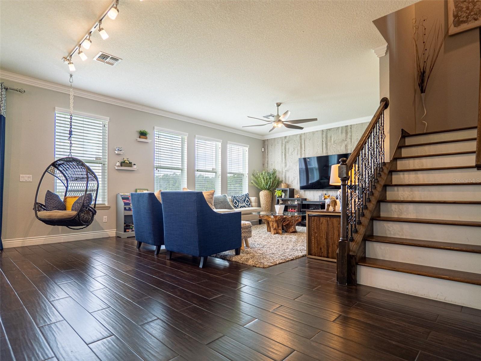 Stunning 4-Bedroom, 3.5-Bathroom Home in the Preserve at the Tapestry This exquisite two-story home, located in the desirable Preserve at the Tapestry community, looks like it came straight from a home magazine! The property boasts an open floor plan with an upgraded kitchen featuring a large quartz island, stainless steel appliances, stylish light fixtures, and pristine shaker-style cabinetry. The first floor is adorned with ceramic tiles that mimic the look of wood, complementing the tasteful color scheme and offering stunning lake views. High-end upgrades are evident in the dining and living room walls. The spacious master bedroom includes a custom vaulted ceiling, a large walk-in closet, and an ensuite bathroom with dual vanities and a soaking tub. The home also features a large screened enclosure, perfect for a summer kitchen installation. All window curtains are included. The community offers residents amenities such as walking trails and a large swimming pool. Enjoy the serene lake and lush landscaping within the neighborhood. Conveniently located near major highways, shopping, dining, and just 15 minutes from the world-renowned Disney World Resort.