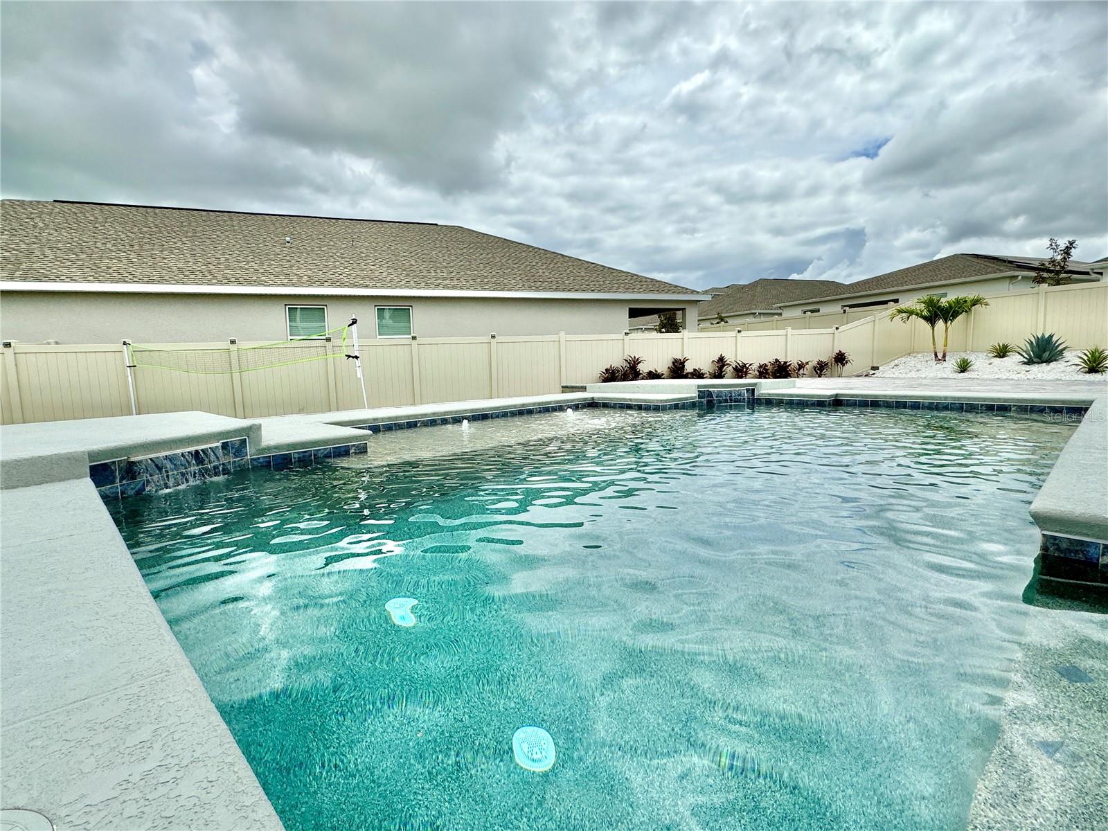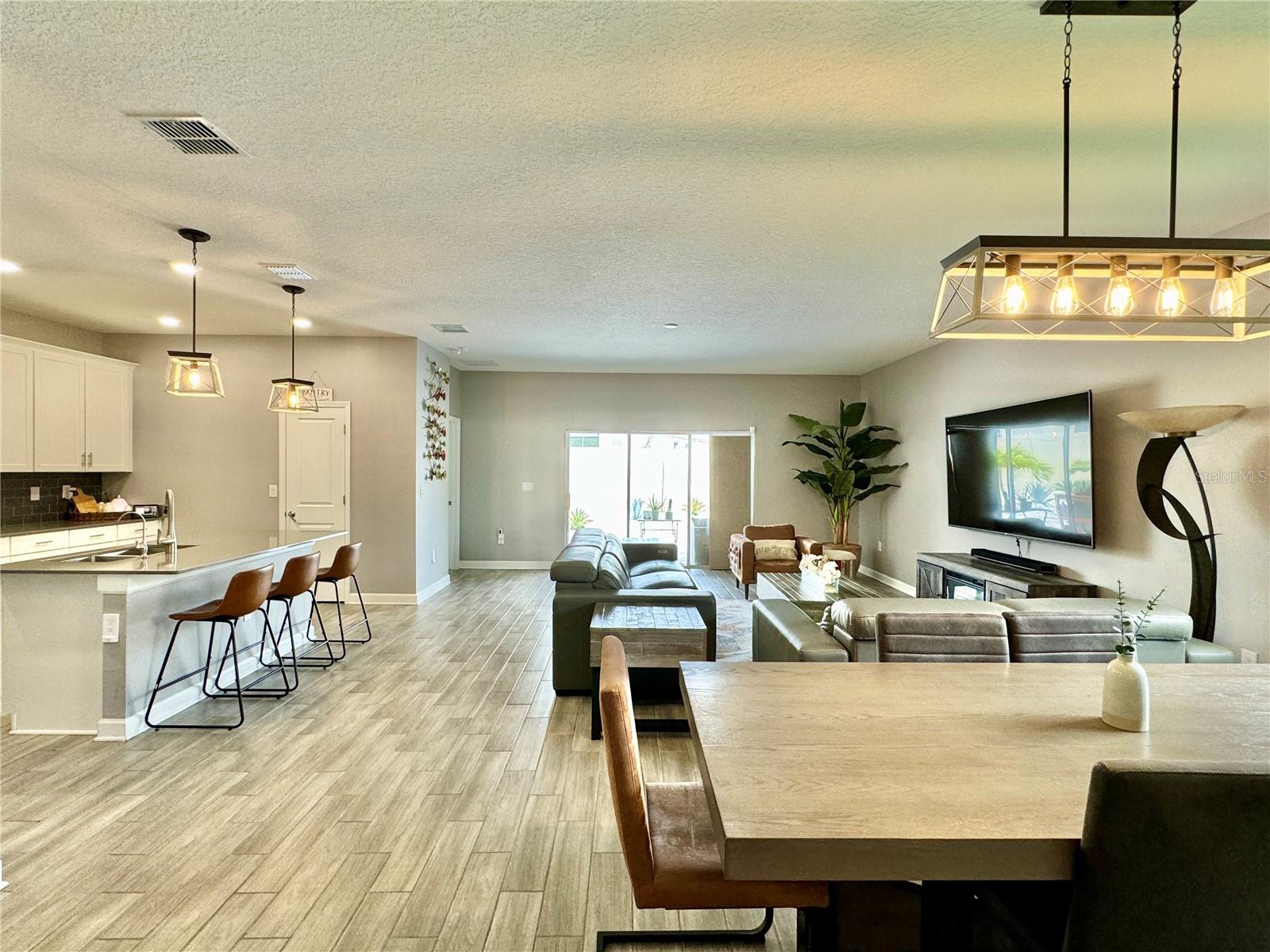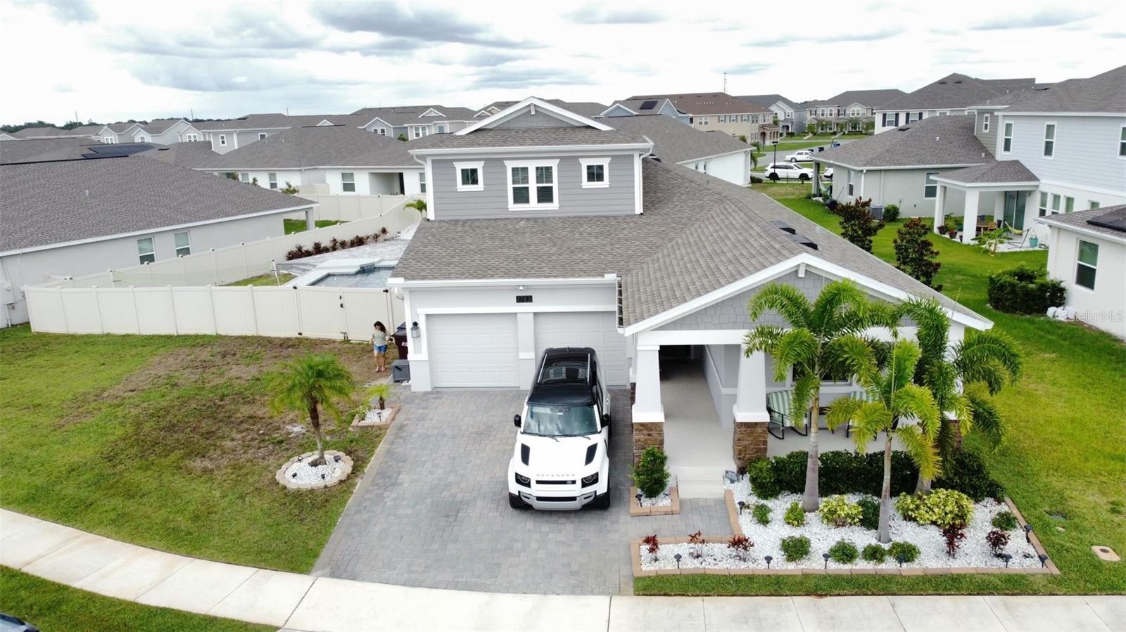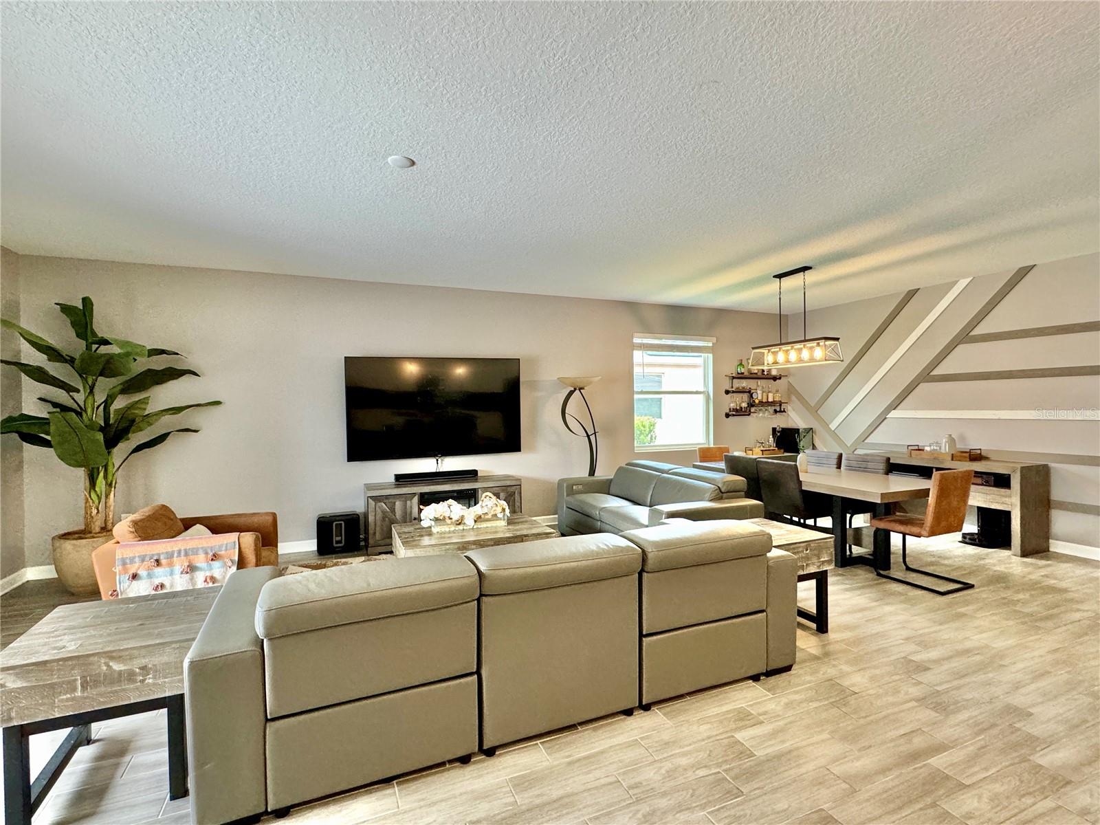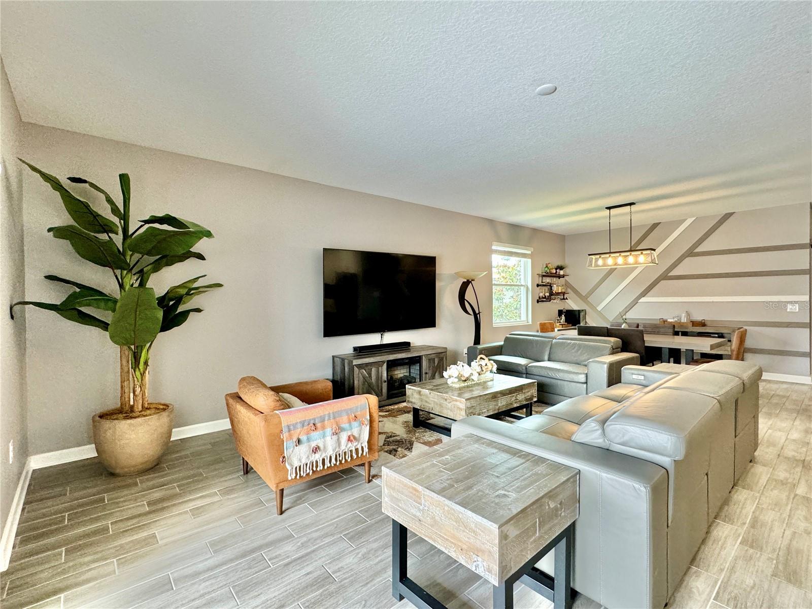 Wow huge price reduction!!Welcome to this exquisite 4-bedroom, 4-bathroom Pool Home, built in 2021, located in the vibrant community of Tohoqua. This modern residence sits on an oversized lot, one of the largest in the development, and offers an array of amenities including a sparkling community pool, clubhouse, fitness center, tennis courts, and playgrounds. The home features a charming stone facade and a large covered front porch. Inside, the floor plan blends contemporary design with comfortable living spaces, creating an ideal environment for both relaxation and entertaining. The entire downstairs boasts wood plank tile flooring, complementing the modern farmhouse aesthetic, while upstairs features attractive wood-looking vinyl plank flooring. Upon entry, the open-concept floor plan welcomes you with high ceilings and abundant natural light. The spacious kitchen, a chef’s dream, showcases white solid wood cabinets with 42" uppers, stainless steel appliances, a large center island, sleek quartz countertops, and tasteful backsplash. The kitchen flows seamlessly into the expansive living and dining areas, perfect for hosting gatherings. The primary suite offers a private retreat with a walk-in closet and an en-suite bathroom featuring a soaking tub and a separate glass-enclosed shower. Each additional bedroom is generously sized, one with its own full bathroom, providing comfort and convenience for guests and family. Upstairs, a large bonus space offers versatility as a great room, loft, media suite, or playroom, complemented by two custom rooms currently used as an office and a den. The home also has a Daikin top of the line mini split system for the loft area. The home also features a unique dog house under the stairs with its own barn door, along with custom modern shelving and a bar area. Outside, the self-cleaning saltwater pool is a standout feature, complete with an oversized design, large sun shelf, water features including deck jets and bubblers, and vibrant LED lighting. This home seamlessly combines modern amenities, thoughtful design, and a sought-after community setting, offering an exceptional place to call home. The Amazing GYM and garage storage does not convey with purchase but could be purchased separately. Furnishings could be purchased separately as well.