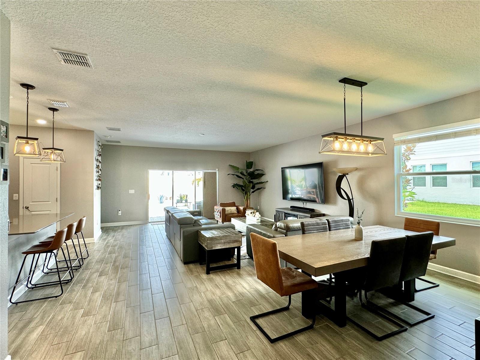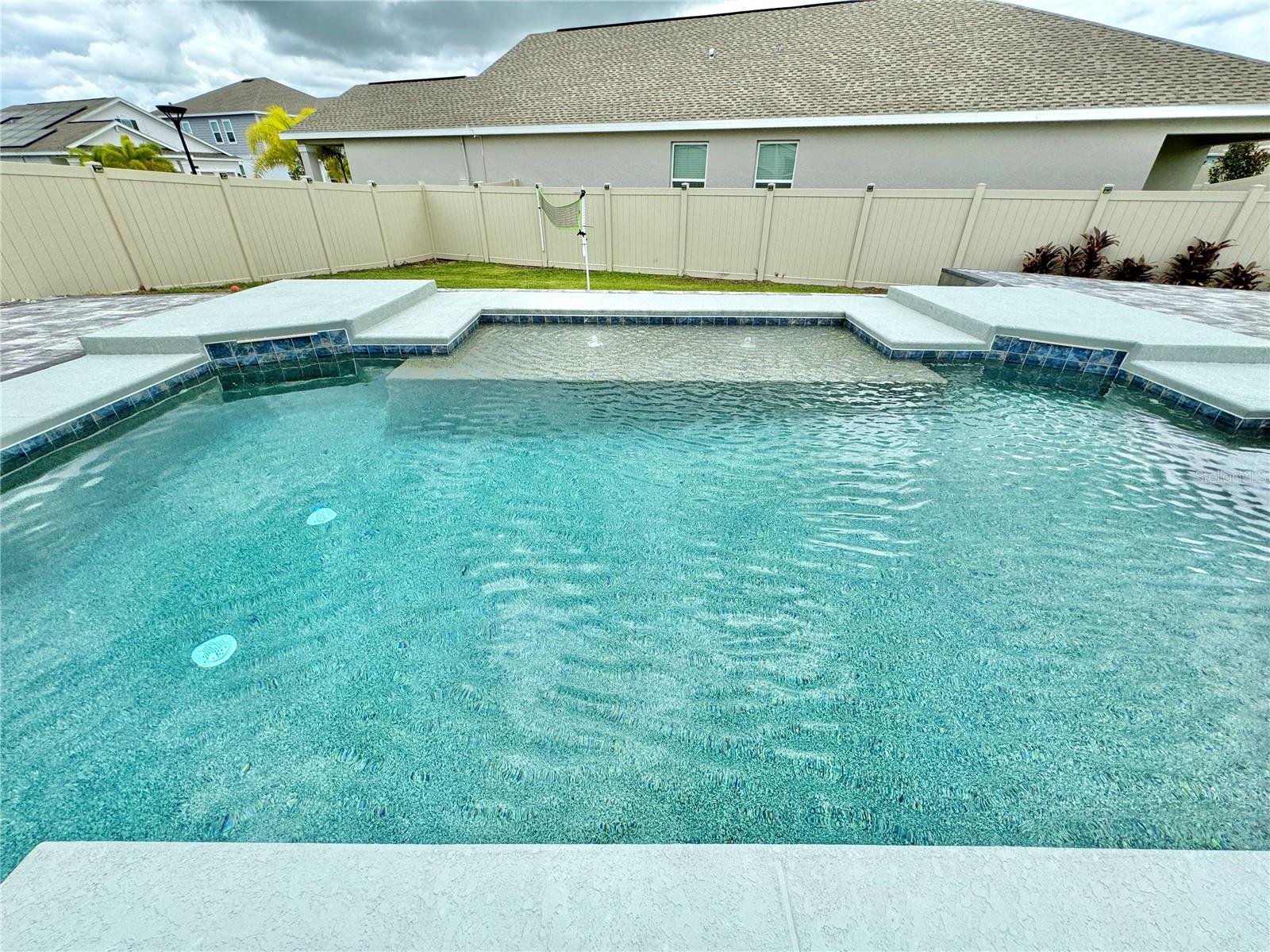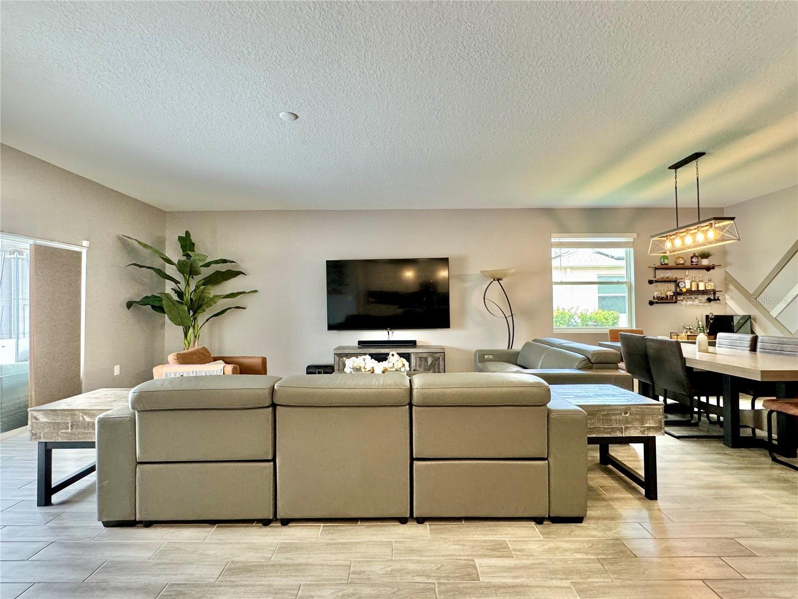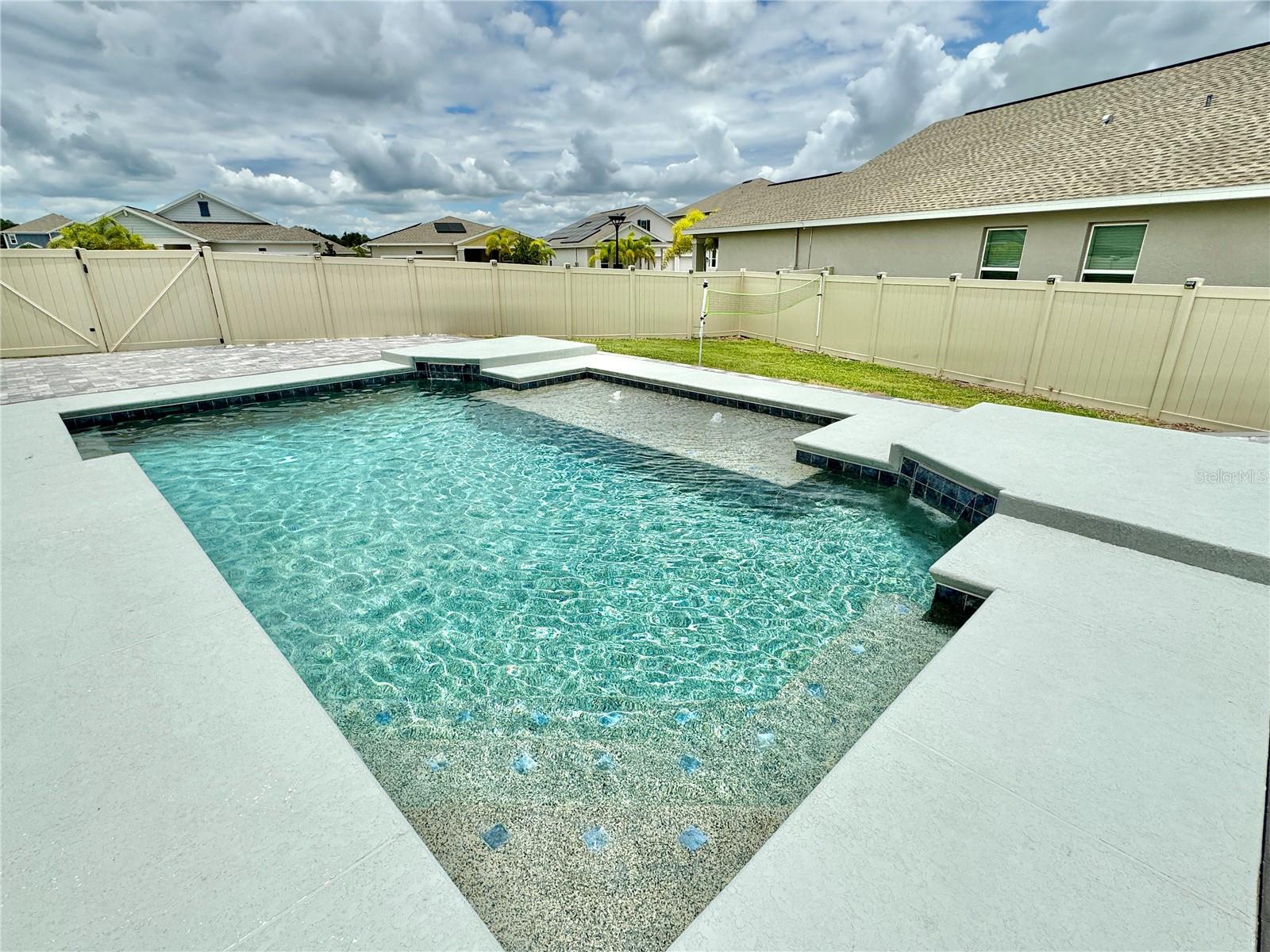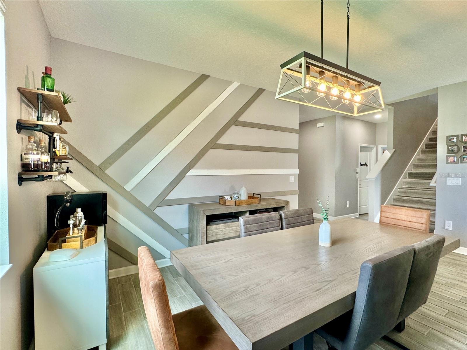 Wow huge price reduction!!Welcome to this exquisite 4-bedroom, 4-bathroom Pool Home, built in 2021, located in the vibrant community of Tohoqua. This modern residence sits on an oversized lot, one of the largest in the development, and offers an array of amenities including a sparkling community pool, clubhouse, fitness center, tennis courts, and playgrounds. The home features a charming stone facade and a large covered front porch. Inside, the floor plan blends contemporary design with comfortable living spaces, creating an ideal environment for both relaxation and entertaining. The entire downstairs boasts wood plank tile flooring, complementing the modern farmhouse aesthetic, while upstairs features attractive wood-looking vinyl plank flooring. Upon entry, the open-concept floor plan welcomes you with high ceilings and abundant natural light. The spacious kitchen, a chef’s dream, showcases white solid wood cabinets with 42" uppers, stainless steel appliances, a large center island, sleek quartz countertops, and tasteful backsplash. The kitchen flows seamlessly into the expansive living and dining areas, perfect for hosting gatherings. The primary suite offers a private retreat with a walk-in closet and an en-suite bathroom featuring a soaking tub and a separate glass-enclosed shower. Each additional bedroom is generously sized, one with its own full bathroom, providing comfort and convenience for guests and family. Upstairs, a large bonus space offers versatility as a great room, loft, media suite, or playroom, complemented by two custom rooms currently used as an office and a den. The home also has a Daikin top of the line mini split system for the loft area. The home also features a unique dog house under the stairs with its own barn door, along with custom modern shelving and a bar area. Outside, the self-cleaning saltwater pool is a standout feature, complete with an oversized design, large sun shelf, water features including deck jets and bubblers, and vibrant LED lighting. This home seamlessly combines modern amenities, thoughtful design, and a sought-after community setting, offering an exceptional place to call home. The Amazing GYM and garage storage does not convey with purchase but could be purchased separately. Furnishings could be purchased separately as well.
