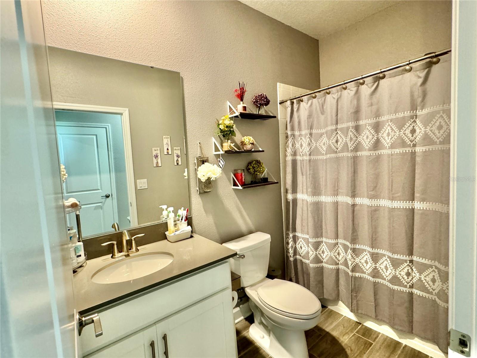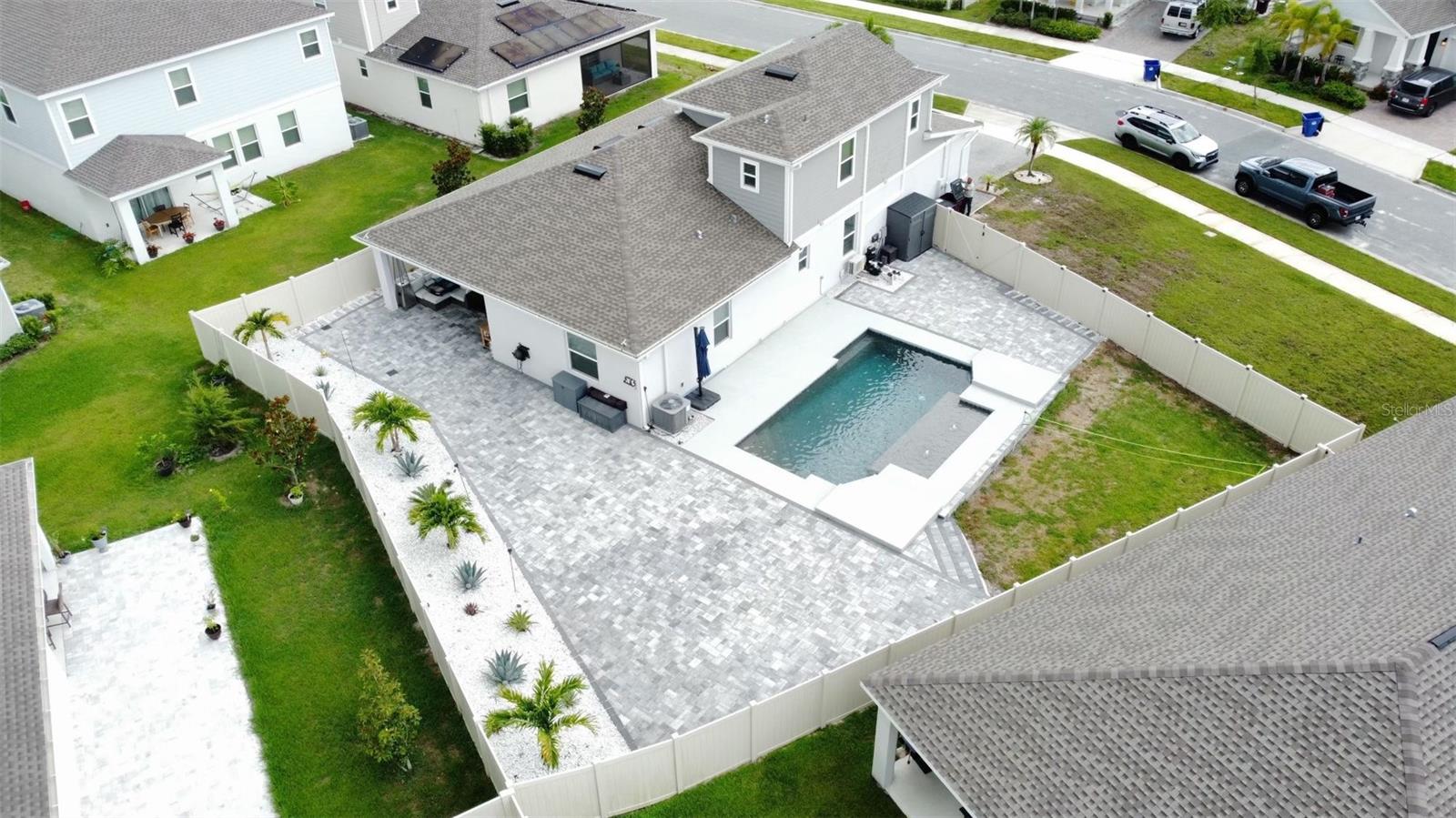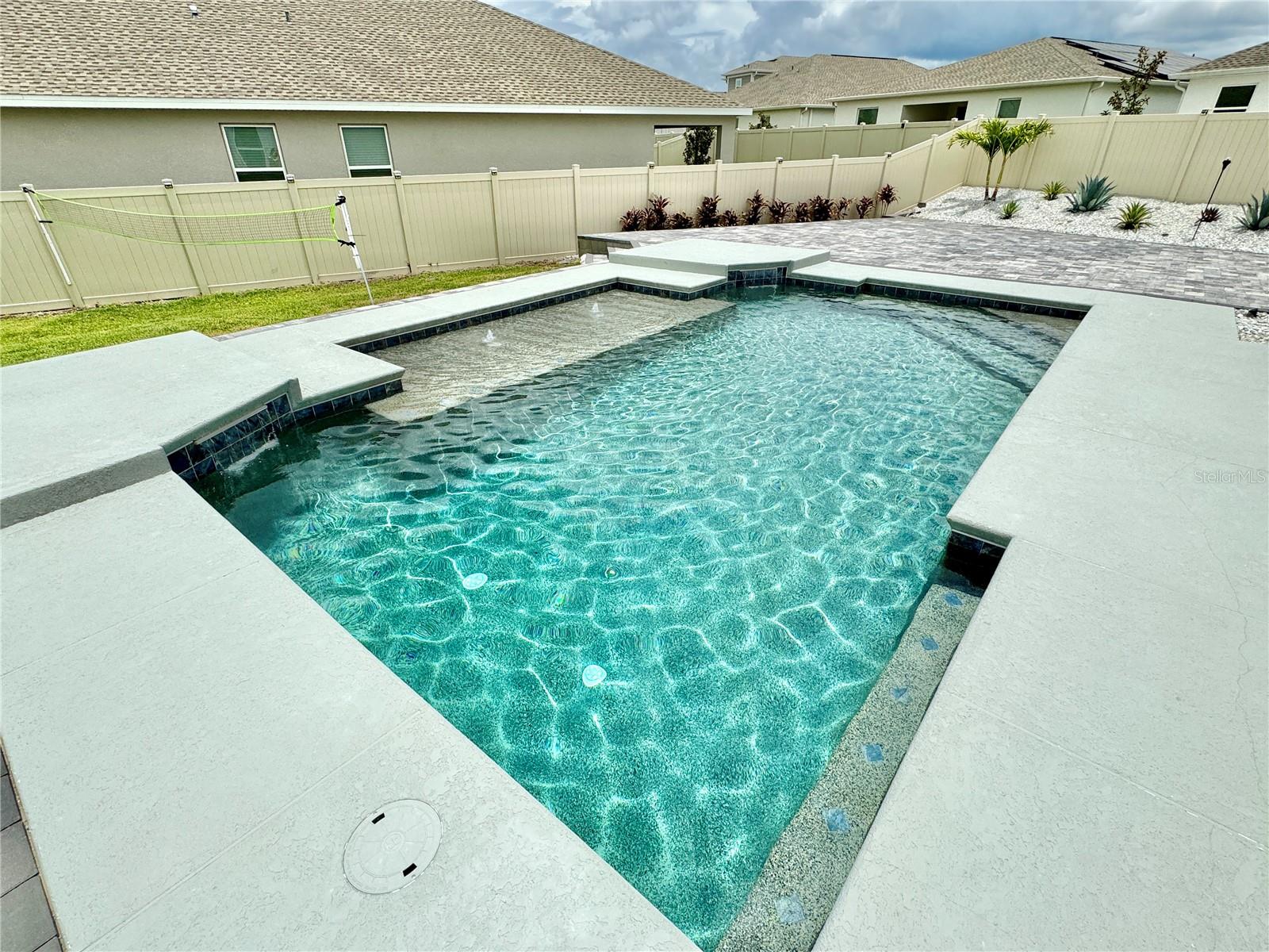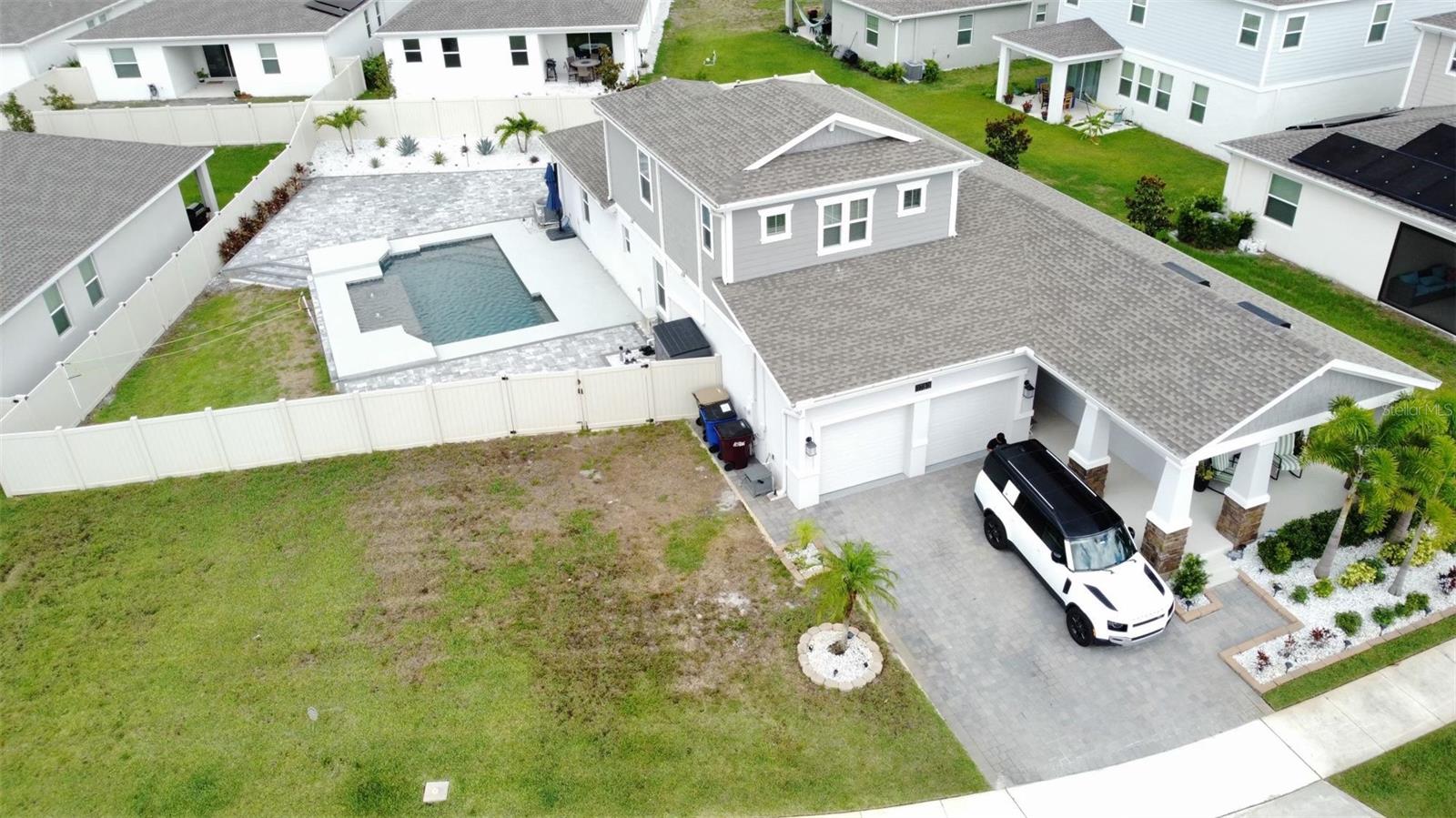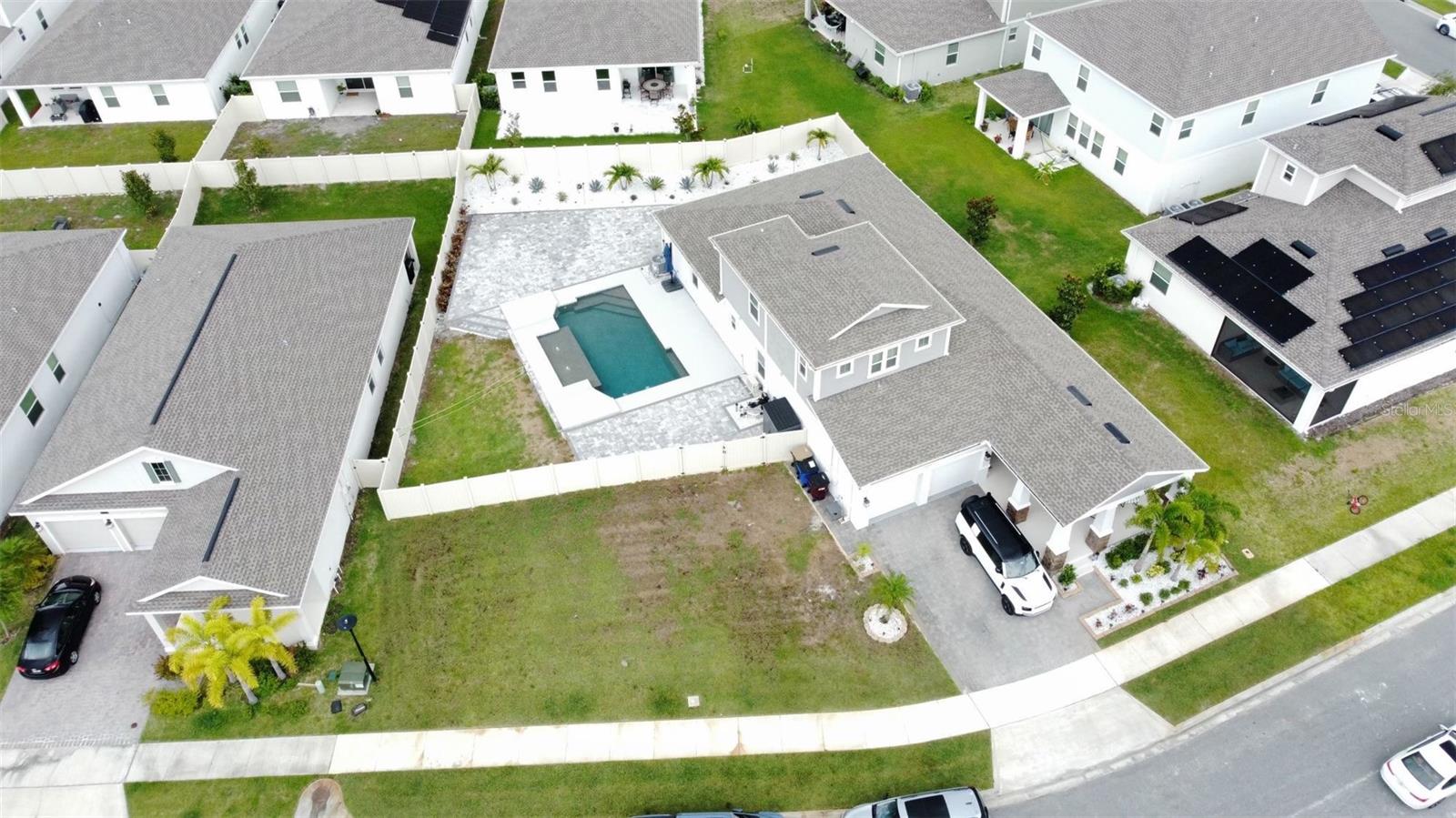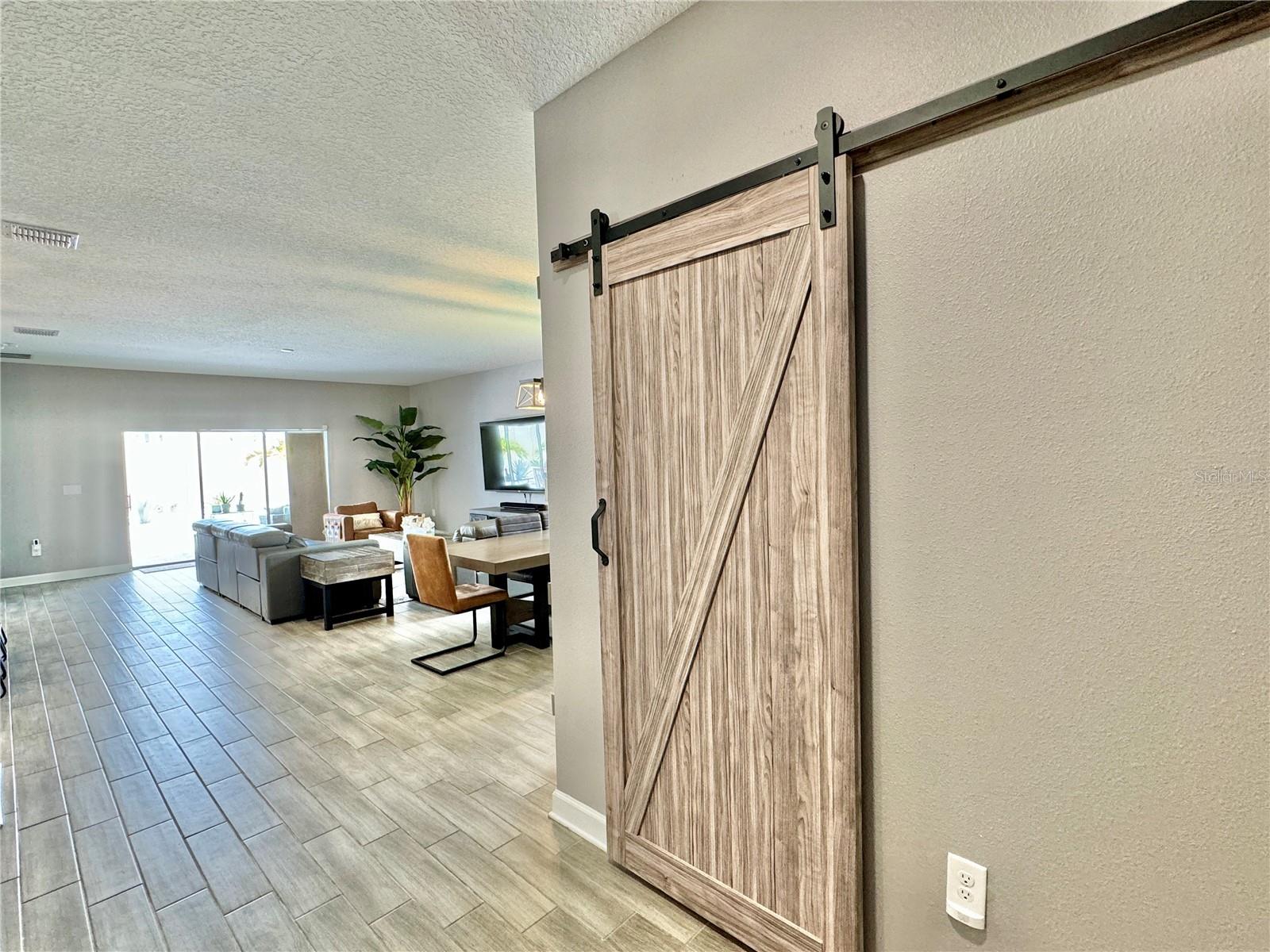 Wow huge price reduction!!Welcome to this exquisite 4-bedroom, 4-bathroom Pool Home, built in 2021, located in the vibrant community of Tohoqua. This modern residence sits on an oversized lot, one of the largest in the development, and offers an array of amenities including a sparkling community pool, clubhouse, fitness center, tennis courts, and playgrounds. The home features a charming stone facade and a large covered front porch. Inside, the floor plan blends contemporary design with comfortable living spaces, creating an ideal environment for both relaxation and entertaining. The entire downstairs boasts wood plank tile flooring, complementing the modern farmhouse aesthetic, while upstairs features attractive wood-looking vinyl plank flooring. Upon entry, the open-concept floor plan welcomes you with high ceilings and abundant natural light. The spacious kitchen, a chef’s dream, showcases white solid wood cabinets with 42" uppers, stainless steel appliances, a large center island, sleek quartz countertops, and tasteful backsplash. The kitchen flows seamlessly into the expansive living and dining areas, perfect for hosting gatherings. The primary suite offers a private retreat with a walk-in closet and an en-suite bathroom featuring a soaking tub and a separate glass-enclosed shower. Each additional bedroom is generously sized, one with its own full bathroom, providing comfort and convenience for guests and family. Upstairs, a large bonus space offers versatility as a great room, loft, media suite, or playroom, complemented by two custom rooms currently used as an office and a den. The home also has a Daikin top of the line mini split system for the loft area. The home also features a unique dog house under the stairs with its own barn door, along with custom modern shelving and a bar area. Outside, the self-cleaning saltwater pool is a standout feature, complete with an oversized design, large sun shelf, water features including deck jets and bubblers, and vibrant LED lighting. This home seamlessly combines modern amenities, thoughtful design, and a sought-after community setting, offering an exceptional place to call home. The Amazing GYM and garage storage does not convey with purchase but could be purchased separately. Furnishings could be purchased separately as well.