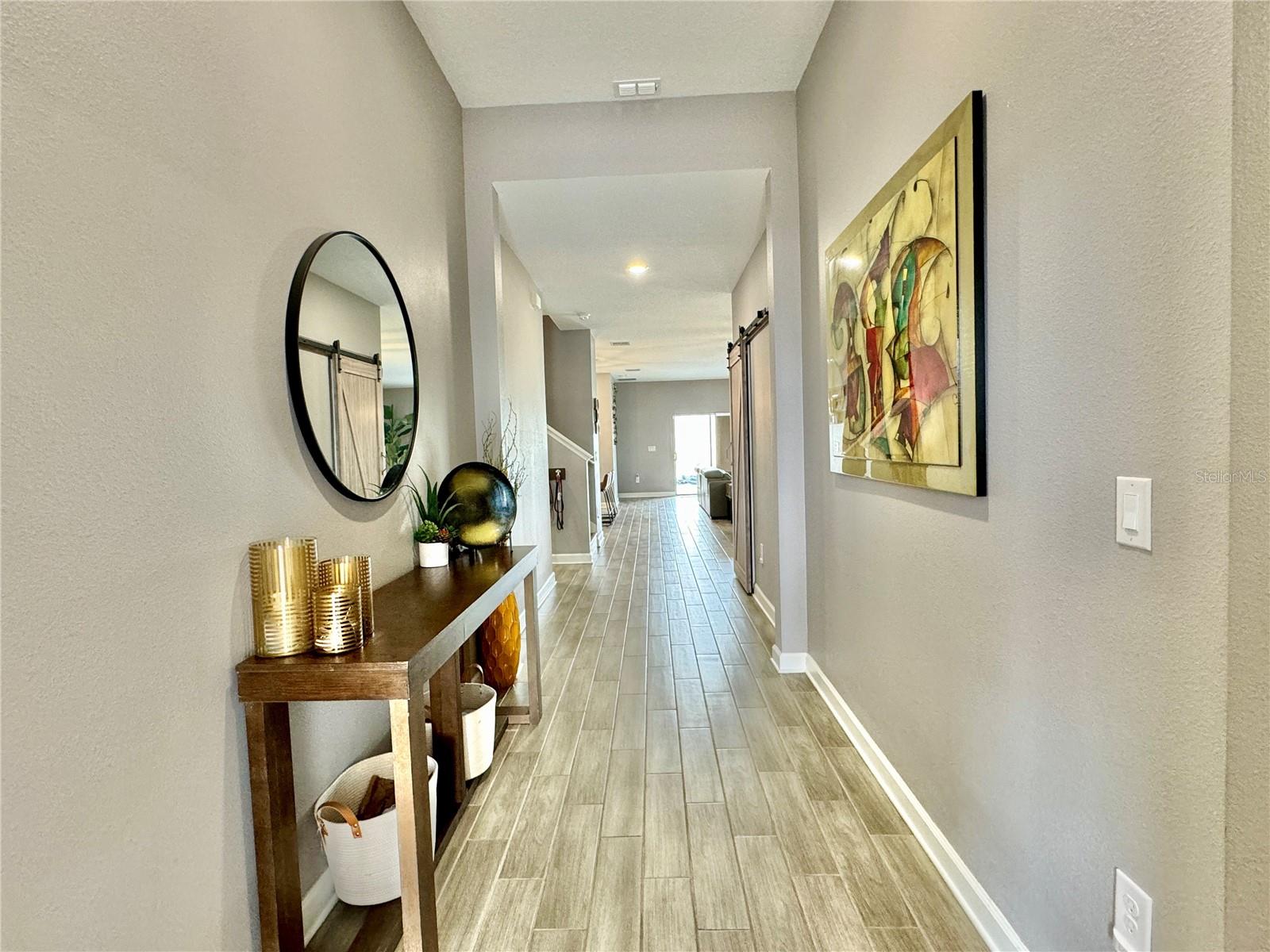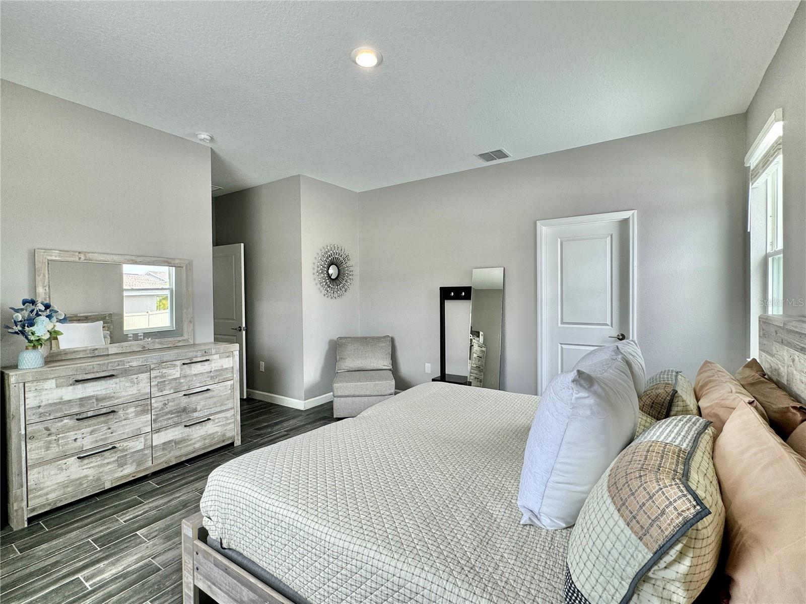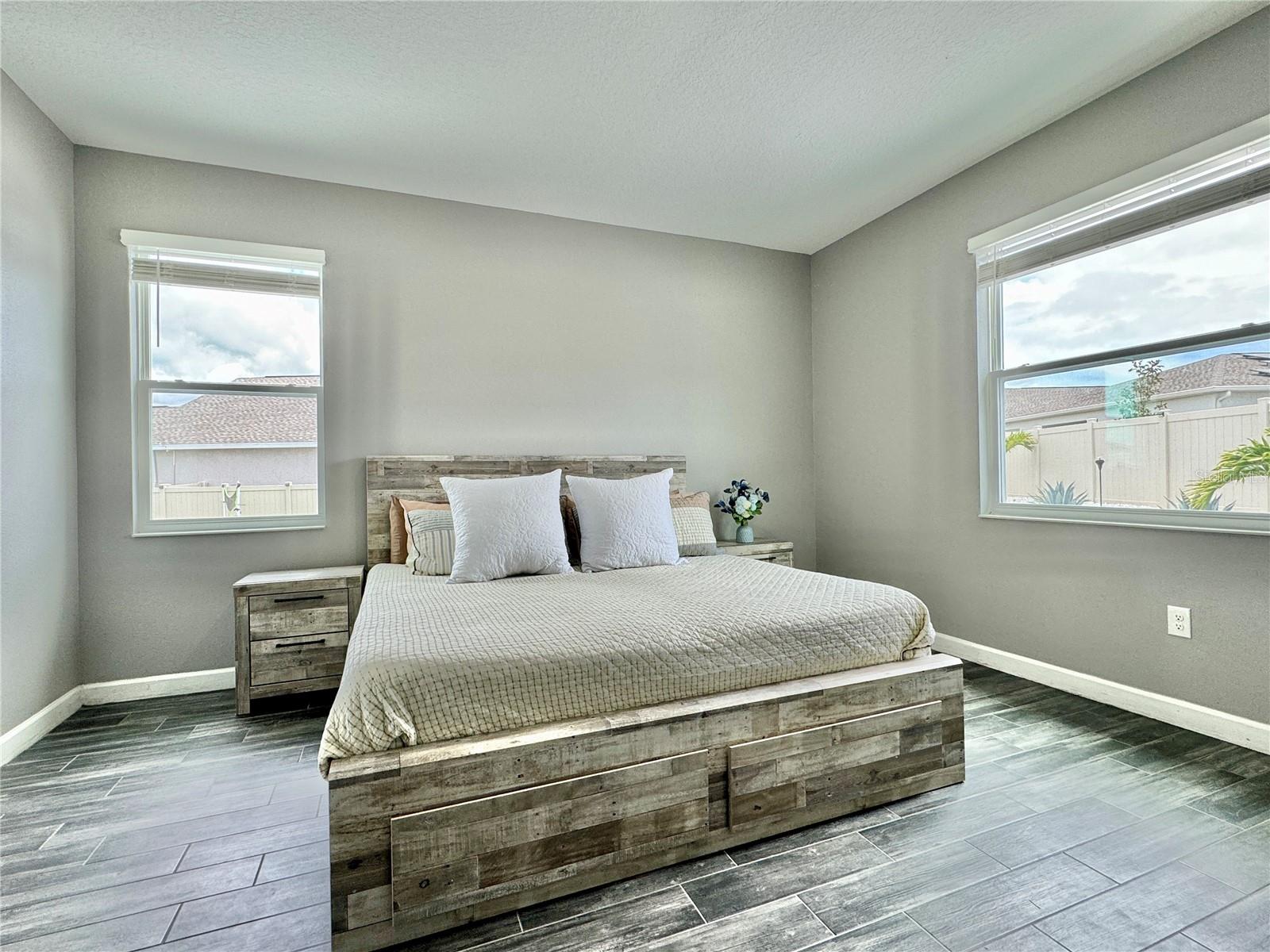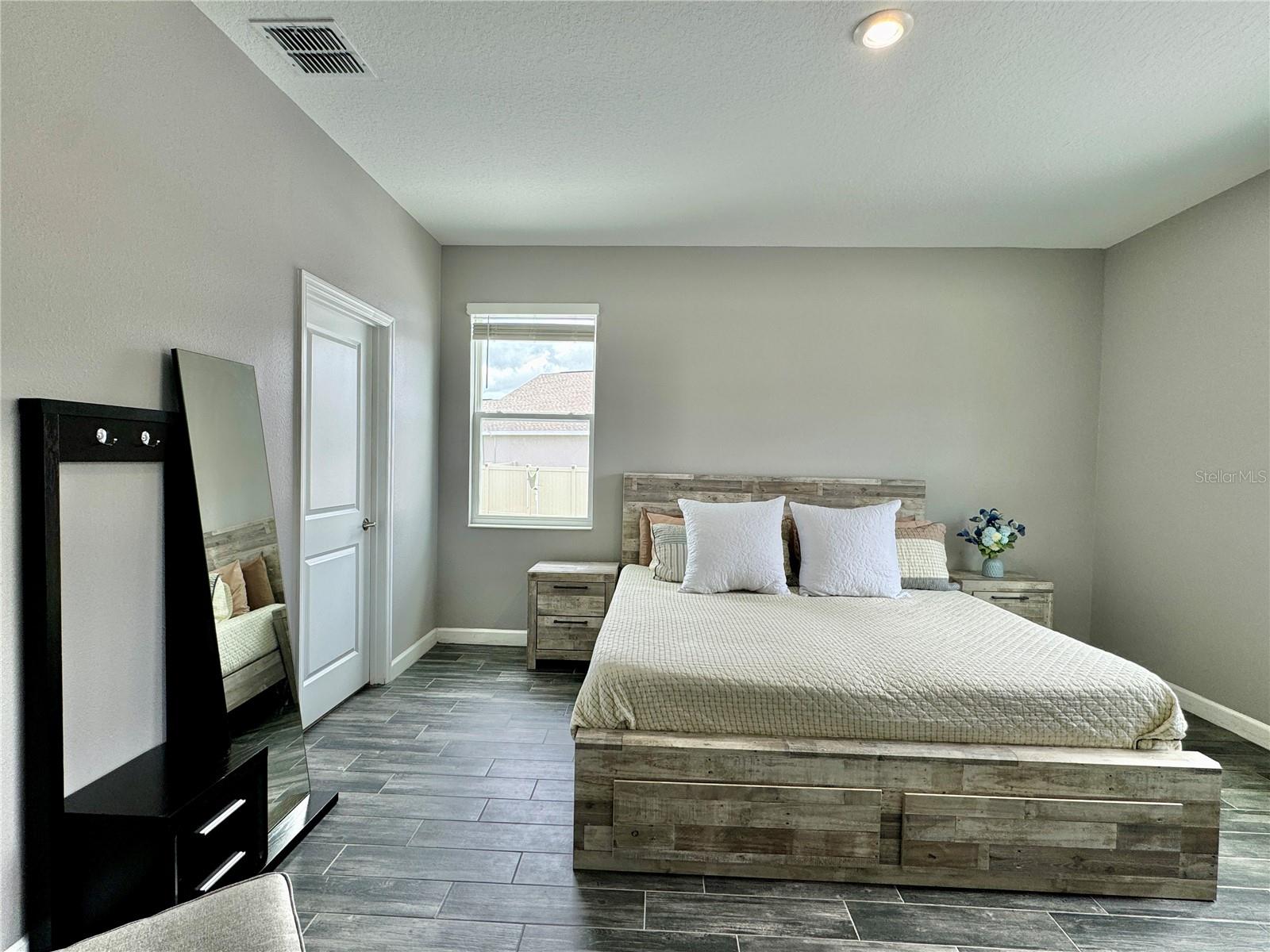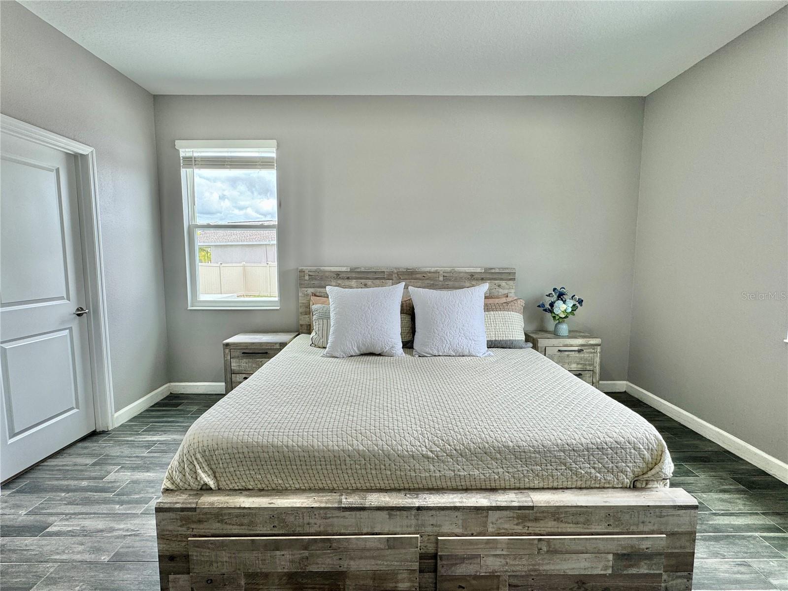 Wow huge price reduction!!Welcome to this exquisite 4-bedroom, 4-bathroom Pool Home, built in 2021, located in the vibrant community of Tohoqua. This modern residence sits on an oversized lot, one of the largest in the development, and offers an array of amenities including a sparkling community pool, clubhouse, fitness center, tennis courts, and playgrounds. The home features a charming stone facade and a large covered front porch. Inside, the floor plan blends contemporary design with comfortable living spaces, creating an ideal environment for both relaxation and entertaining. The entire downstairs boasts wood plank tile flooring, complementing the modern farmhouse aesthetic, while upstairs features attractive wood-looking vinyl plank flooring. Upon entry, the open-concept floor plan welcomes you with high ceilings and abundant natural light. The spacious kitchen, a chef’s dream, showcases white solid wood cabinets with 42" uppers, stainless steel appliances, a large center island, sleek quartz countertops, and tasteful backsplash. The kitchen flows seamlessly into the expansive living and dining areas, perfect for hosting gatherings. The primary suite offers a private retreat with a walk-in closet and an en-suite bathroom featuring a soaking tub and a separate glass-enclosed shower. Each additional bedroom is generously sized, one with its own full bathroom, providing comfort and convenience for guests and family. Upstairs, a large bonus space offers versatility as a great room, loft, media suite, or playroom, complemented by two custom rooms currently used as an office and a den. The home also has a Daikin top of the line mini split system for the loft area. The home also features a unique dog house under the stairs with its own barn door, along with custom modern shelving and a bar area. Outside, the self-cleaning saltwater pool is a standout feature, complete with an oversized design, large sun shelf, water features including deck jets and bubblers, and vibrant LED lighting. This home seamlessly combines modern amenities, thoughtful design, and a sought-after community setting, offering an exceptional place to call home. The Amazing GYM and garage storage does not convey with purchase but could be purchased separately. Furnishings could be purchased separately as well.