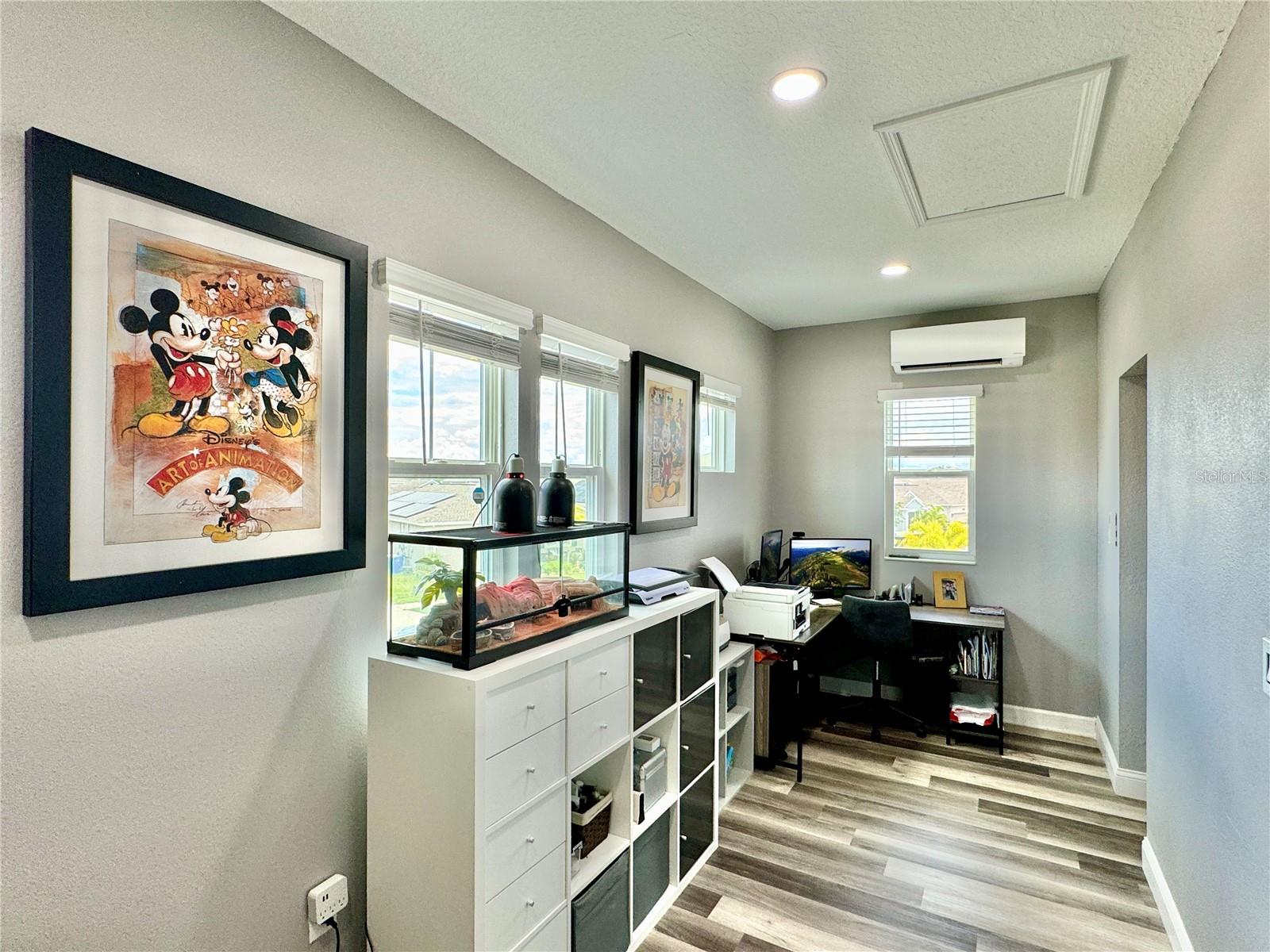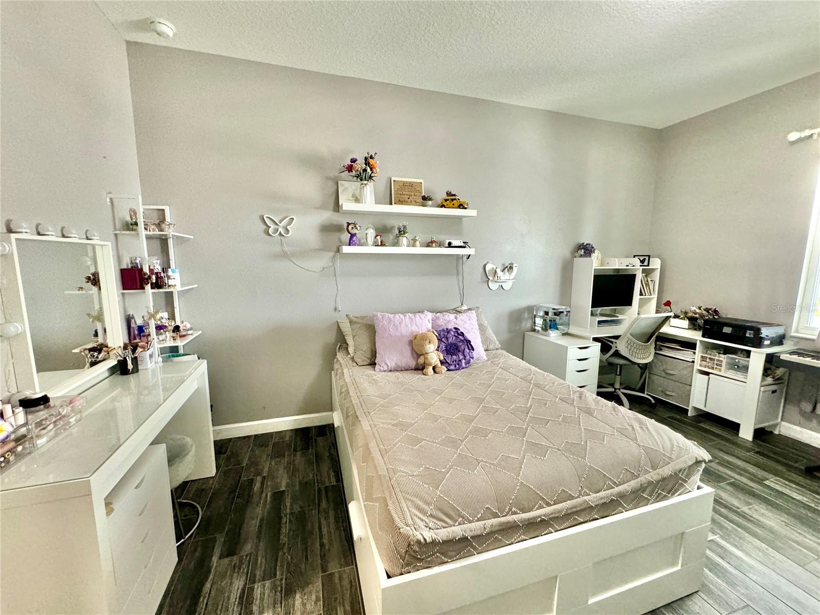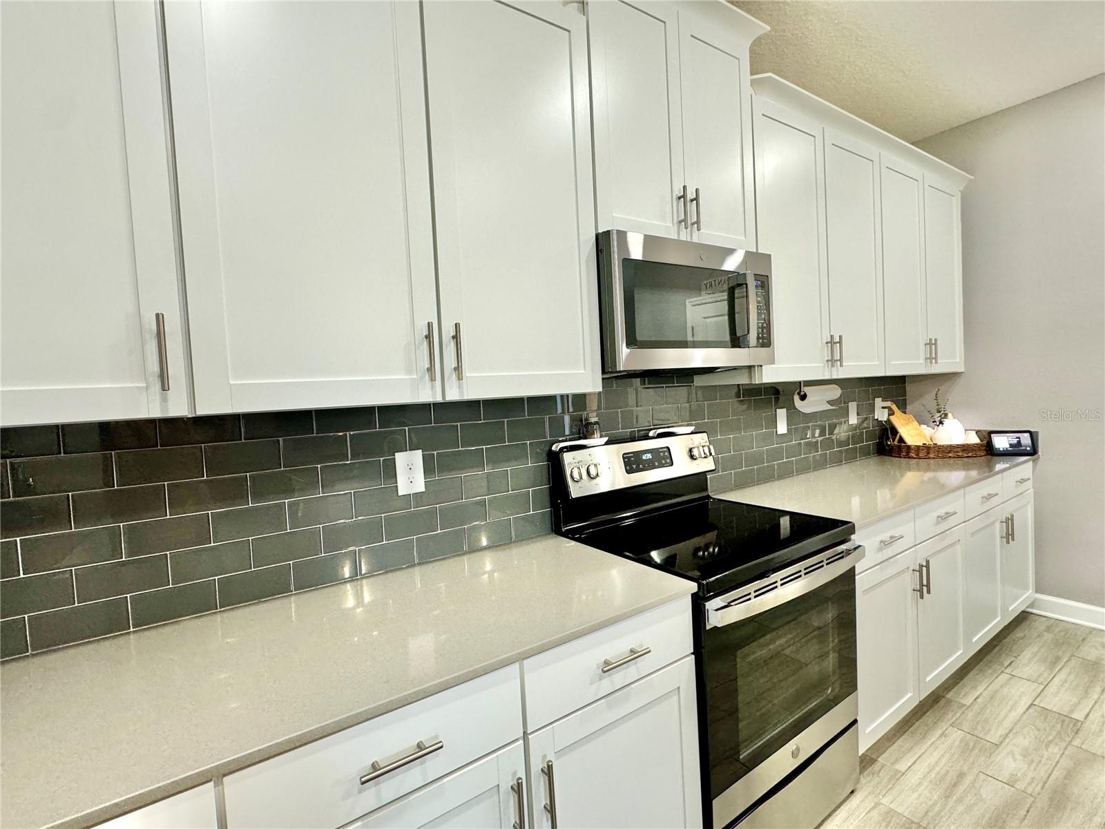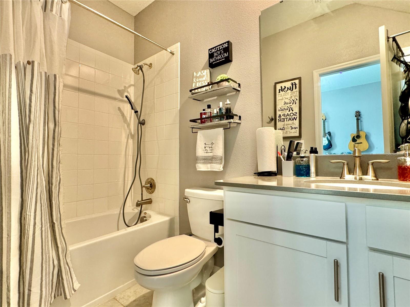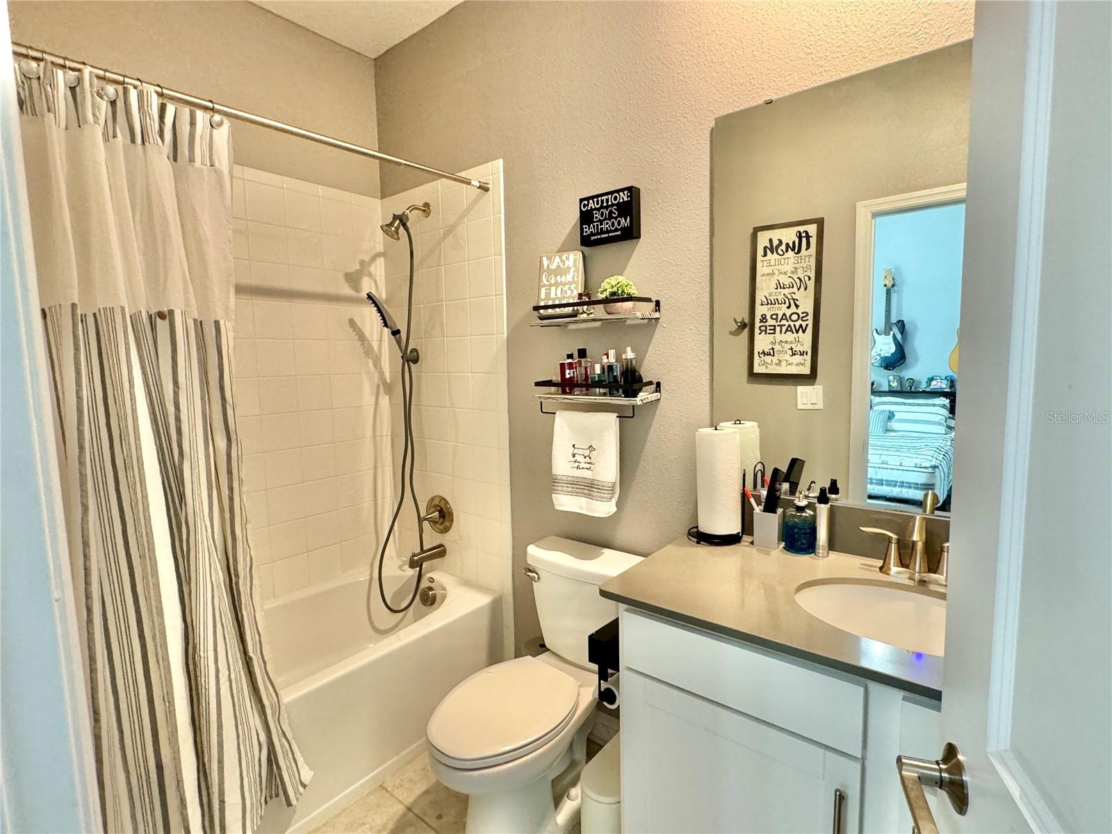 Wow huge price reduction!!Welcome to this exquisite 4-bedroom, 4-bathroom Pool Home, built in 2021, located in the vibrant community of Tohoqua. This modern residence sits on an oversized lot, one of the largest in the development, and offers an array of amenities including a sparkling community pool, clubhouse, fitness center, tennis courts, and playgrounds. The home features a charming stone facade and a large covered front porch. Inside, the floor plan blends contemporary design with comfortable living spaces, creating an ideal environment for both relaxation and entertaining. The entire downstairs boasts wood plank tile flooring, complementing the modern farmhouse aesthetic, while upstairs features attractive wood-looking vinyl plank flooring. Upon entry, the open-concept floor plan welcomes you with high ceilings and abundant natural light. The spacious kitchen, a chef’s dream, showcases white solid wood cabinets with 42" uppers, stainless steel appliances, a large center island, sleek quartz countertops, and tasteful backsplash. The kitchen flows seamlessly into the expansive living and dining areas, perfect for hosting gatherings. The primary suite offers a private retreat with a walk-in closet and an en-suite bathroom featuring a soaking tub and a separate glass-enclosed shower. Each additional bedroom is generously sized, one with its own full bathroom, providing comfort and convenience for guests and family. Upstairs, a large bonus space offers versatility as a great room, loft, media suite, or playroom, complemented by two custom rooms currently used as an office and a den. The home also has a Daikin top of the line mini split system for the loft area. The home also features a unique dog house under the stairs with its own barn door, along with custom modern shelving and a bar area. Outside, the self-cleaning saltwater pool is a standout feature, complete with an oversized design, large sun shelf, water features including deck jets and bubblers, and vibrant LED lighting. This home seamlessly combines modern amenities, thoughtful design, and a sought-after community setting, offering an exceptional place to call home. The Amazing GYM and garage storage does not convey with purchase but could be purchased separately. Furnishings could be purchased separately as well.