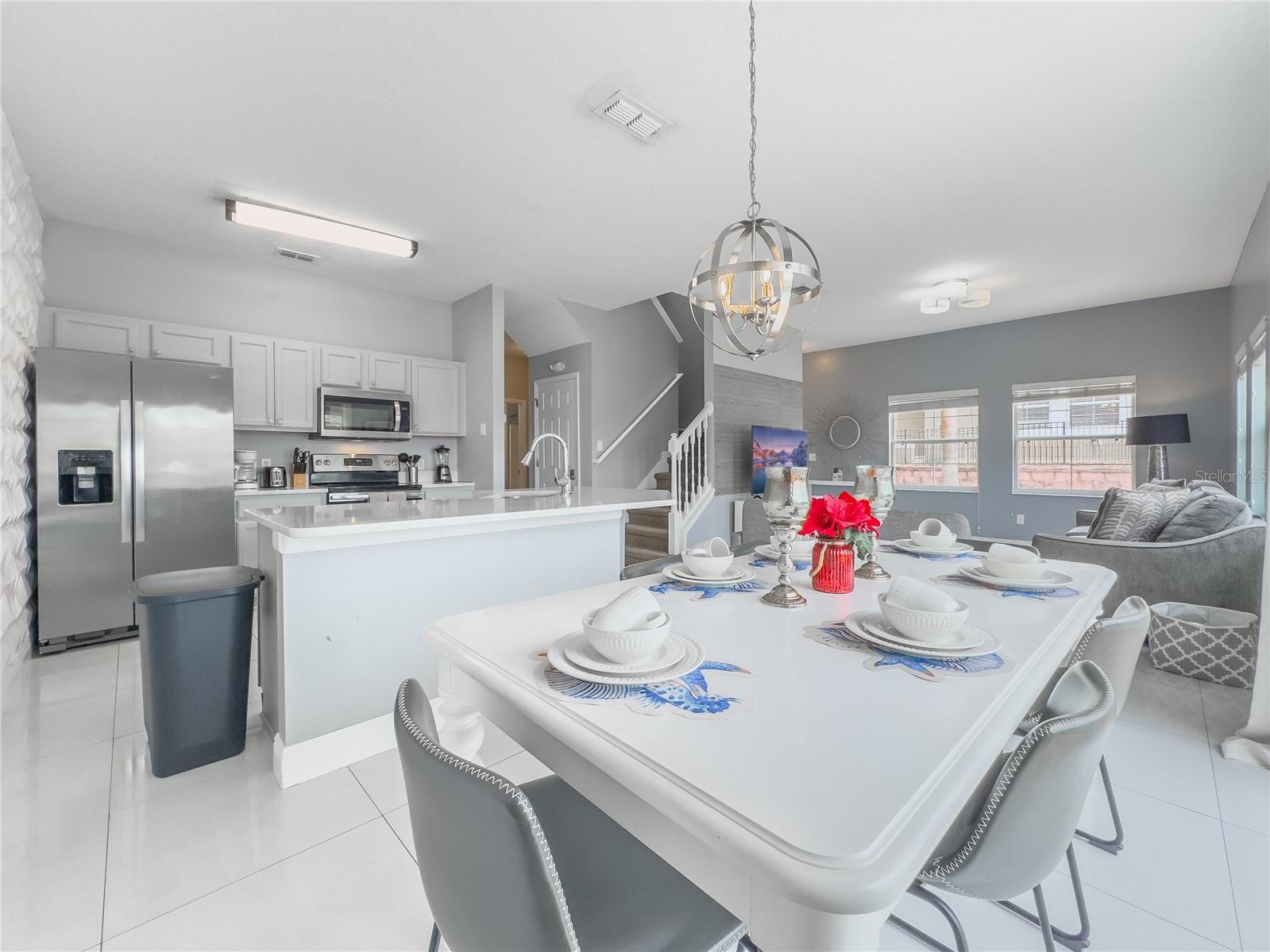 This large FULLY FURNISHED 4 bedrooms, 3 bathrooms townhouse is waiting for you to enjoy swimming in your own private pool. The property is located at Encantada Resort, a guard gated community with resort style amenities. It has thematic rooms, large open floor plan, volume ceilings, carpet and ceramic tile throughout. Kitchen with breakfast bar and closet pantry. Close to shopping, dining and local transportation. Minutes to Disney World! Schedule your showing now!