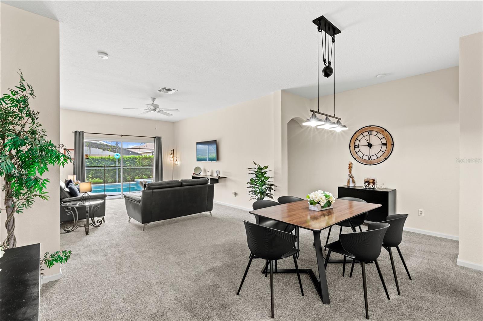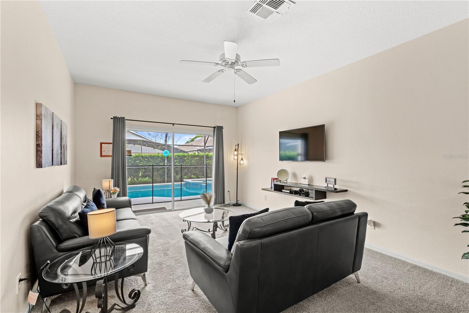 Say hello to your beautiful Disney vacation home! In the gated resort community of Windsor Palms, you cannot beat the location being 10 min from parks, attractions, restaurants and more! Upon entry you will be captivated by the tropical landscaping and tree lined streets leading up to your Oasis. This income producing home is fully furnished and ready for you and your guests! Featuring 4 bedrooms, 2 bathrooms, pool, spa, converted game room and so much more. Roof (2018) , HVAC (2021) , water heater (2022). Some other upgrades include TV’s, mattresses, couches, patio furniture, blink camera system, washer, tubs resurfaced, pool pump/filter. After entering the home you will notice how open, clean and airy the space feels. The kitchen is equipped with stainless steal appliances, large pantry and a breakfast nook. Dining area is open concept with the living space perfect for entertaining. A split floor-plan allows for everyone to have their own space and comfort. Enjoy the large pristine pool and spa with plenty of seating including a baby gate for safety. Hang out in the garage converted game room offering a pool table, football table, and extra conveniences needed for vacation. The community clubhouse featuring resort style amenities adds a ton of value to your stay offering an arcade, cinema, gym, tiki bar, large pool, splash pad, volleyball, basketball and more! Schedule your showing now!