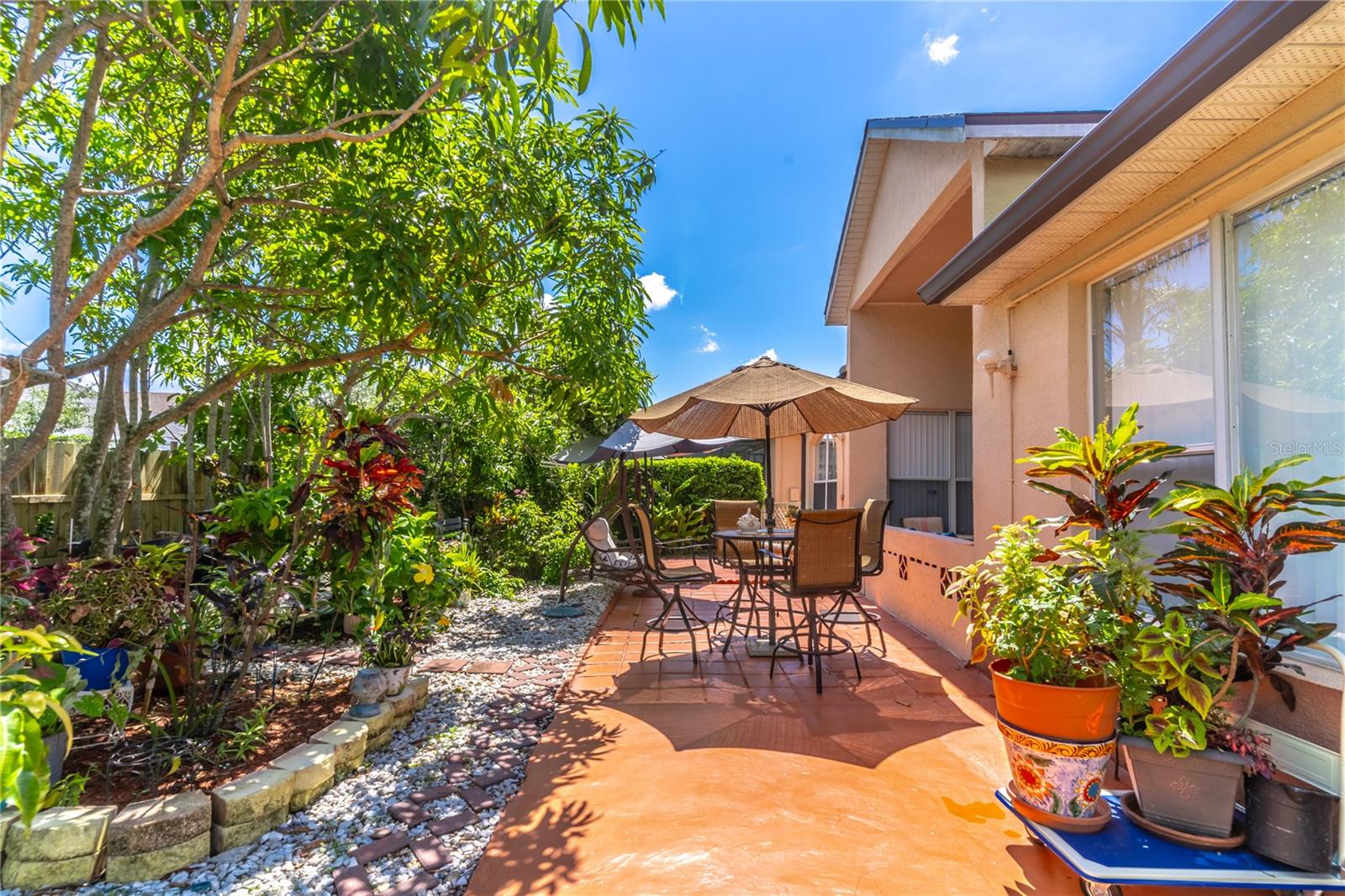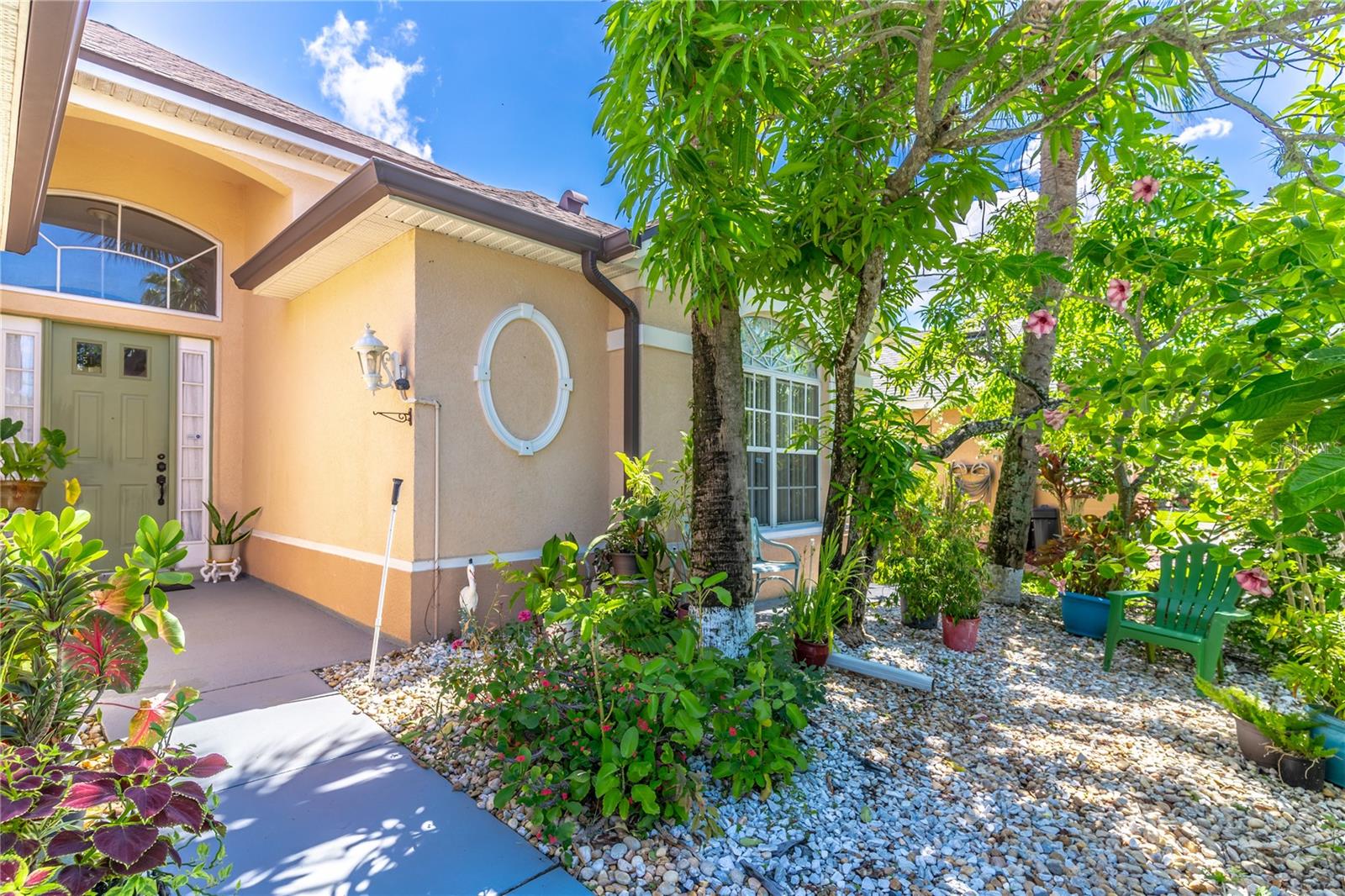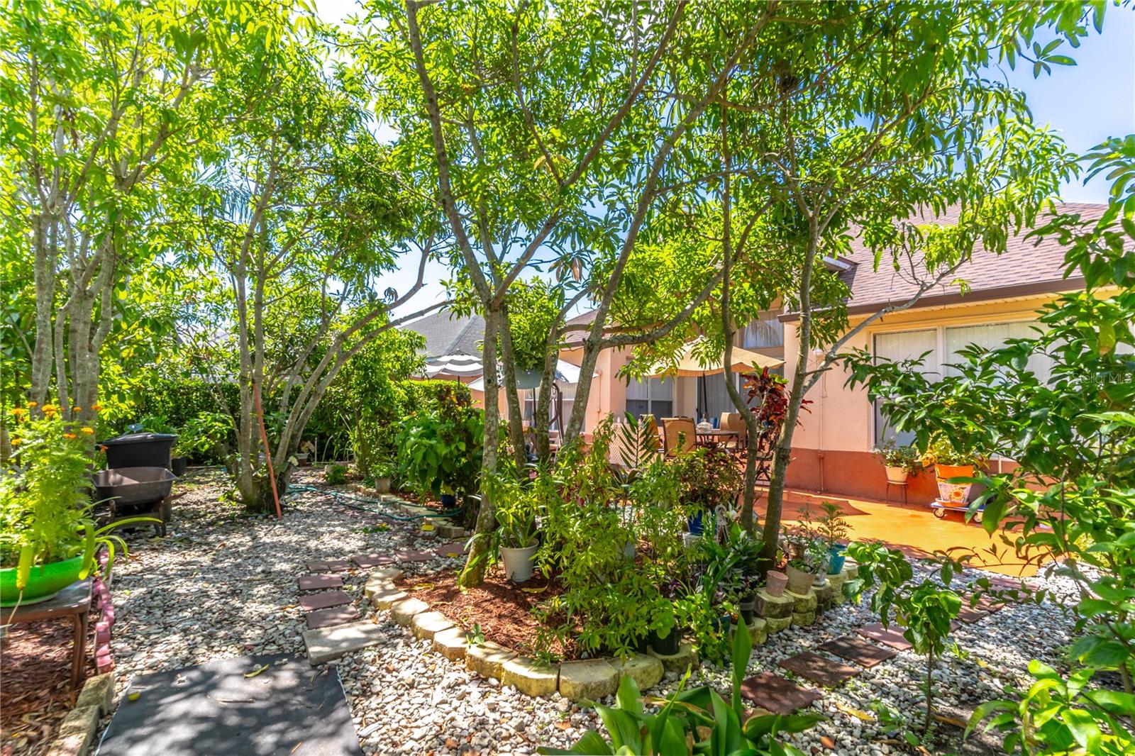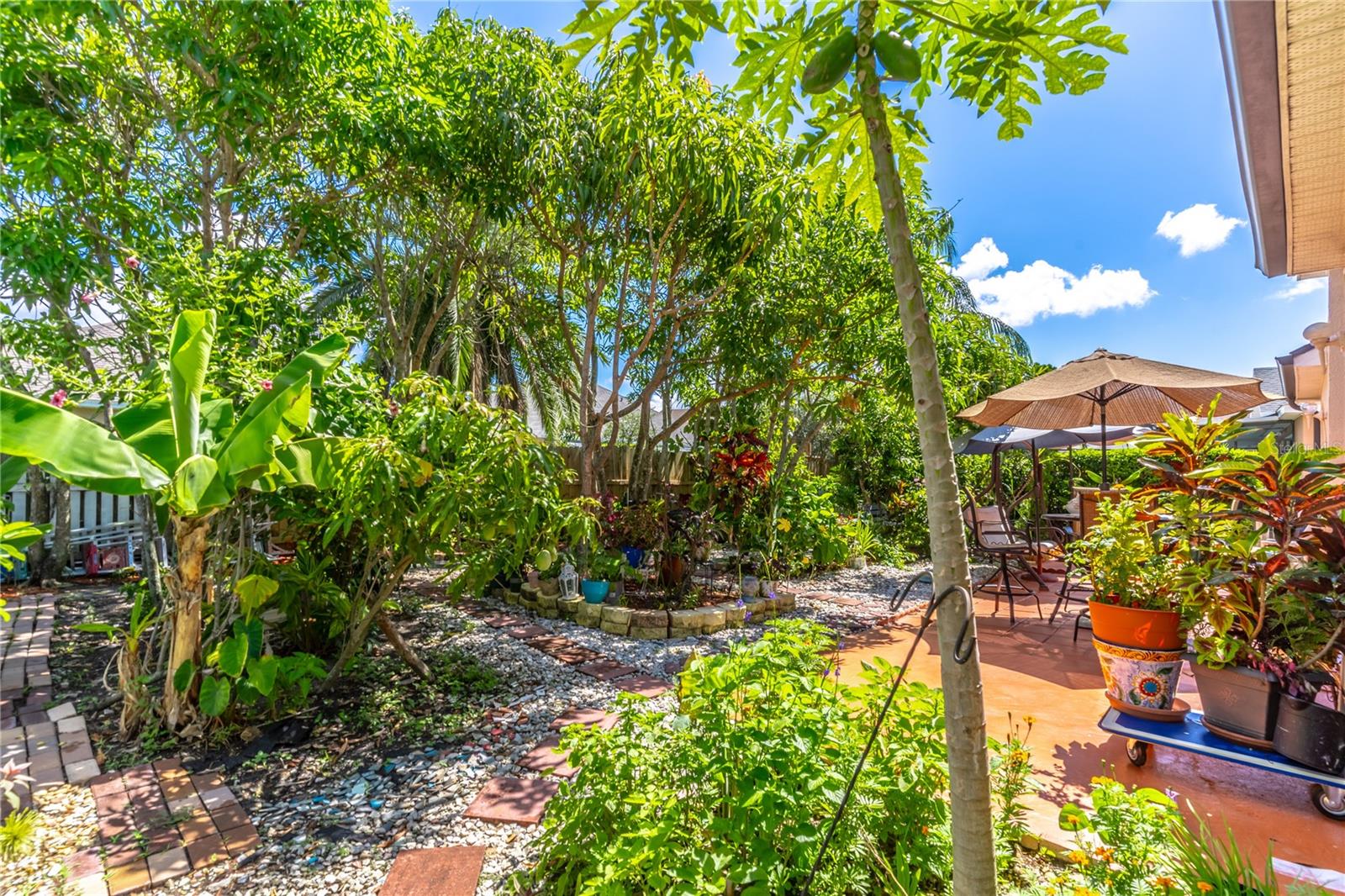 Large one story 4/3 in Golf Community. Tall ceilings, Large kitchen and Spacious Rooms. Incredible Backyard Garden Oasis. Fruit Trees, Spice trees, Lush with every imaginable plant. 17 Mango Trees, 10 different varieties! Cinnamon Tree, Sour Sap, Sugar Cane. All rooted plants and trees remain. Beautiful front and side garden as well. Sliding Door Drapery Remains with House.