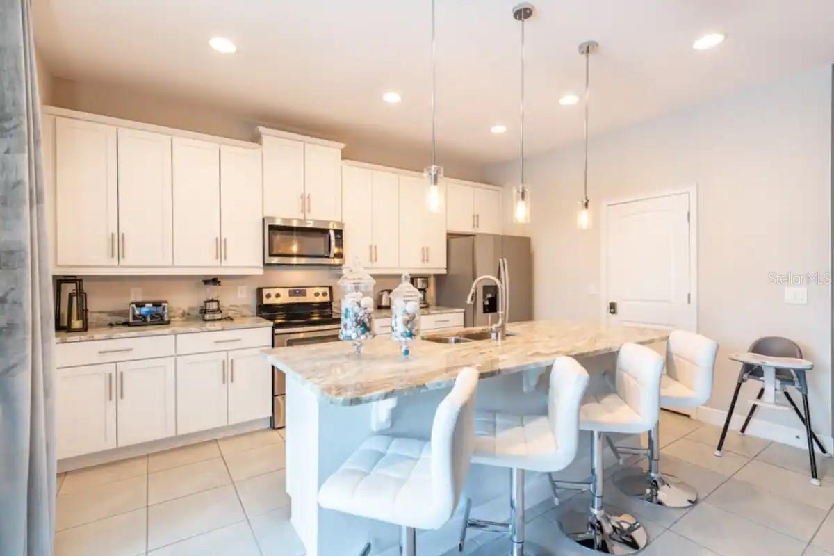 Explore this charming two-story house for sale in the heart of Kissimmee! Strategically located and near a Clubhouse, this residence offers a welcoming and functional environment for your family to enjoy. On the ground floor, you'll find a spacious main living area with a comfortable sectional chair and sliding glass doors that open onto the private pool deck, providing a relaxing and bright view. The fully equipped kitchen fully equipped is a haven for culinary enthusiasts, featuring a granite island breakfast bar for four, perfect for quick and convenient meals. The outdoor space is a true oasis, boasting a private pool, overflowing spa, four sun loungers for relaxation, and a patio table for six, ideal for outdoor gatherings and entertainment. For added fun, a game room equipped with a pool table and air hockey is available, providing leisurely moments for the whole family. This house presents a unique opportunity to acquire a complete and well-located property near major theme parks. Don't miss the chance to invest in a home where comfort and entertainment meet.