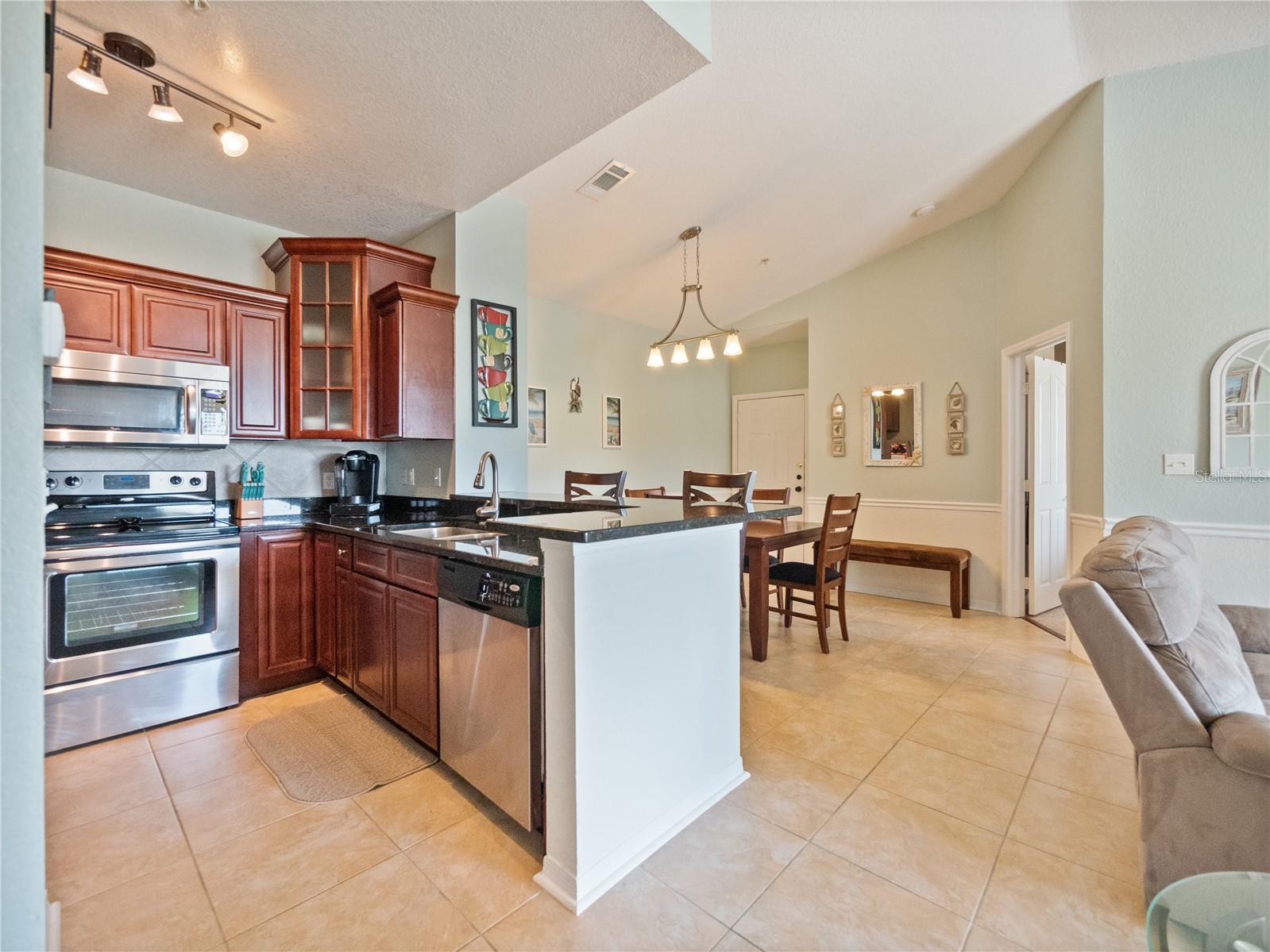Beautiful 2/2 condo in the much desired community of Legacy Dunes. This third floor with 12 ft. ceilings and is just a short walk to the clubhouse,pool and gym. The kitchen/living room combo includes stainless steel appliances and the open floor plan includes a separate laundry room off the kitchen. There is also outside storage. The amenities are excellent. It has 2 resort-style swimming pools, lighted tennis and basketball courts, a state-of-the-art fitness center, a tot lot/play area, picnic area with BBQ grills, golf practice cage, walking trails, and much more. The condo fee includes water, sewer, trash, WiFi, pest control, and door-to-door valet trash collection service. Location,Location,Location, just minutes from Disney and shopping making it an ideal location. It can be used as an income-producing property, long or short-term rentals are allowed or you can live in the unit permanently! This property comes furnished This is a must see! Dont forget to click on the virtual tour link