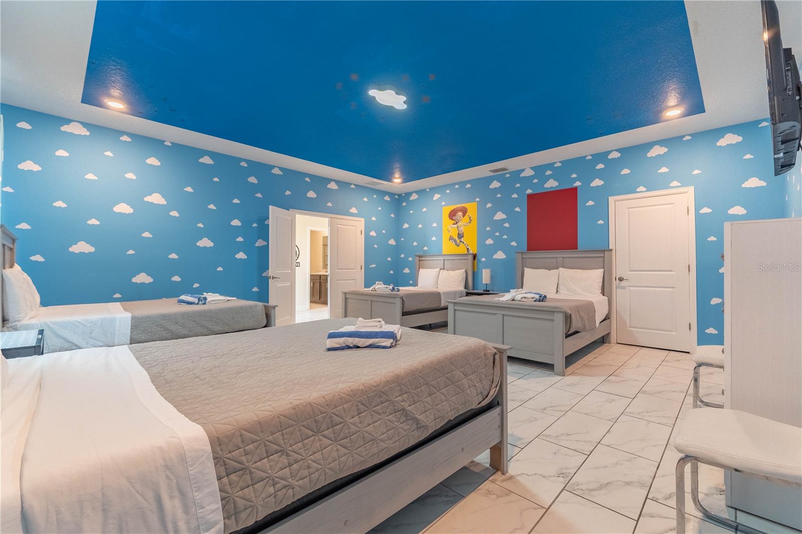 MOTIVATED SELLER OFFERING $3,000 TOWARDS BUYERS CLOSING COSTS FOR RATE BUY DOWN - 9-bedroom, 5-bathroom ACTIVE SHORT TERM RENTAL, built in 2020, features a HEATED POOL AND SPA and offers over 4,500 square feet of elegant living space. Nestled within the exclusive Cove at Storey Lake community, this is the best TURNKEY SHORT-TERM RENTAL PROPERTY. This property is being sold FULLY FURNISHED, making it a seamless transition for new owners. Step inside to discover a modern, open-concept layout adorned with high-end designer finishes and furnishings. The gourmet kitchen, a culinary dream, features TOP-OF-THE-LINE STAINLESS STEEL APPLIANCES, a LARGE OPEN KITCHEN, and SLEEK CABINETRY. The living area, with its stylish decor and abundant natural light, creates a warm and inviting atmosphere, ideal for both relaxation and entertainment. The generous bedrooms provide ample space for comfort and tranquility, including uniquely themed rooms that enchant guests. With 14 BEDS, this home can comfortably sleep UP TO 24 GUESTS. The master suite is a private retreat, offering a lavish ensuite bathroom complete with DUAL SINKS and a WALK-IN SHOWER. Outdoor living is taken to the next level with a PRIVATE SCREENED-IN POOL AND SPA and a rear solid covered patio, perfect for entertaining or unwinding after a day of adventures. The home also boasts a GAME ROOM with a variety of entertaining options, ensuring endless fun for family and friends. The STATE-OF-THE-ART MOVIE THEATER with a 100-inch projection screen offers a cinematic experience right at home. Storey Lake offers a wealth of amenities designed to cater to every lifestyle. Enjoy the Hideaway Club, featuring a LAZY RIVER, RESORT-STYLE SWIMMING POOL with a SPLASH WATER PARK, MINI-GOLF, KAYAKING, a FULLY EQUIPPED GYM, BEACH VOLLEYBALL, OUTDOOR BASKETBALL, and a PLAYGROUND. This gated community ensures privacy and security while providing top-tier recreational options. Located just minutes from the magic of Disney World, world-class restaurants, premier shopping outlets, and numerous other Orlando attractions, this home is perfectly positioned for convenience and adventure. <iframe src="https://www.zillow.com/view-imx/4e949e18-9ab8-4fbb-b9ba-1ab371341788?setAttribution=mls&wl=true&initialViewType=pano&utm_source=dashboard" width="640" height="360" style="border: 0;" allow="fullscreen"></iframe>