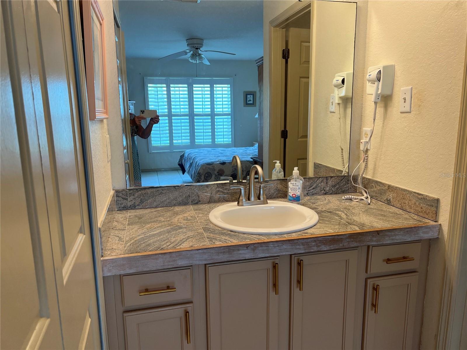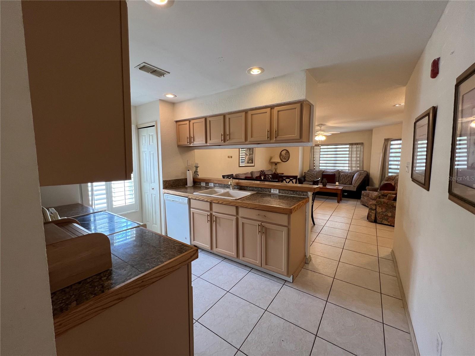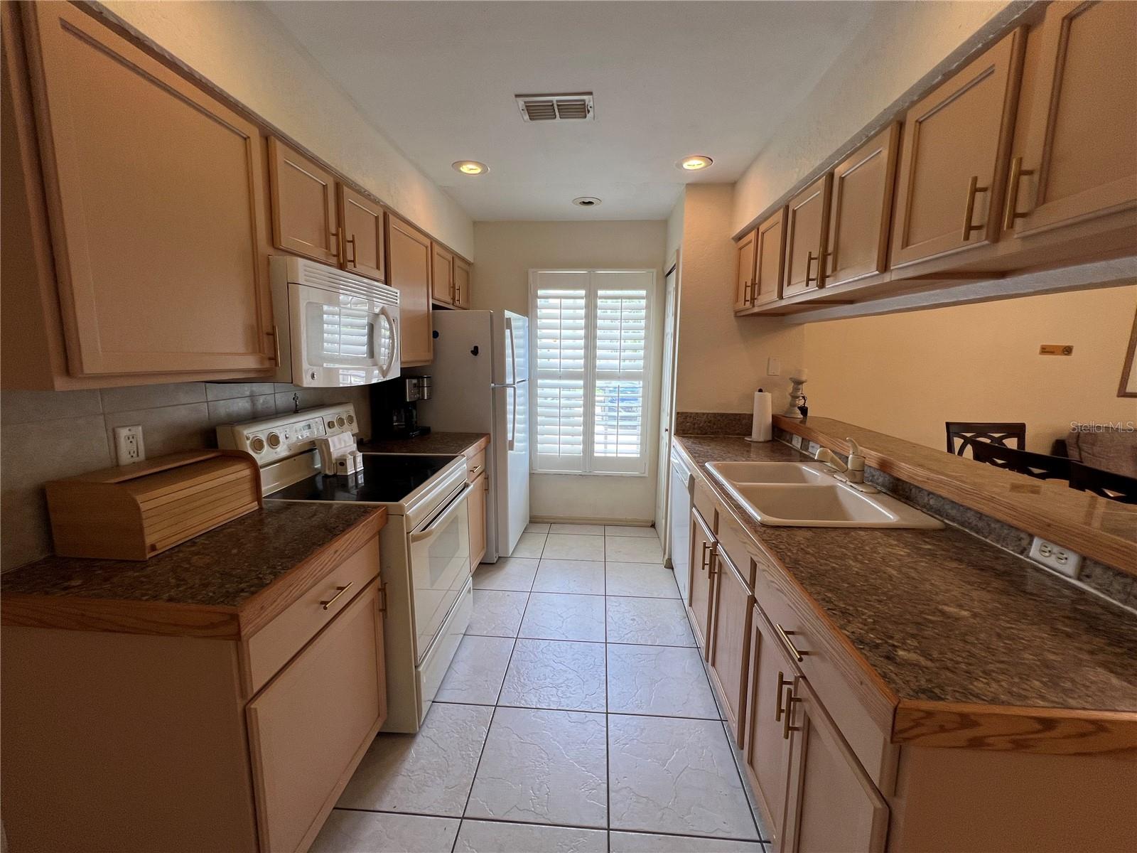 Great Location! Minutes from Major highways, Theme parks, Shopping and Dining. First Floor, 3 bedroom 2 bath with ceramic tile throughout, plantation shutters, front window treatments. Handicapped Accessible with oversized doors. Owners suite features separate vanity area and oversized walk in shower . Laundry closet with washer 7 dryer ,hall closet with extra storage, 2 walk in bedroom closets.. Enjoy community pool and easy access in and out of complex. Ready to move in or rent out. Short and long term rentals permitted. Easy show!