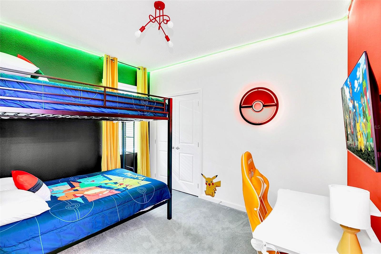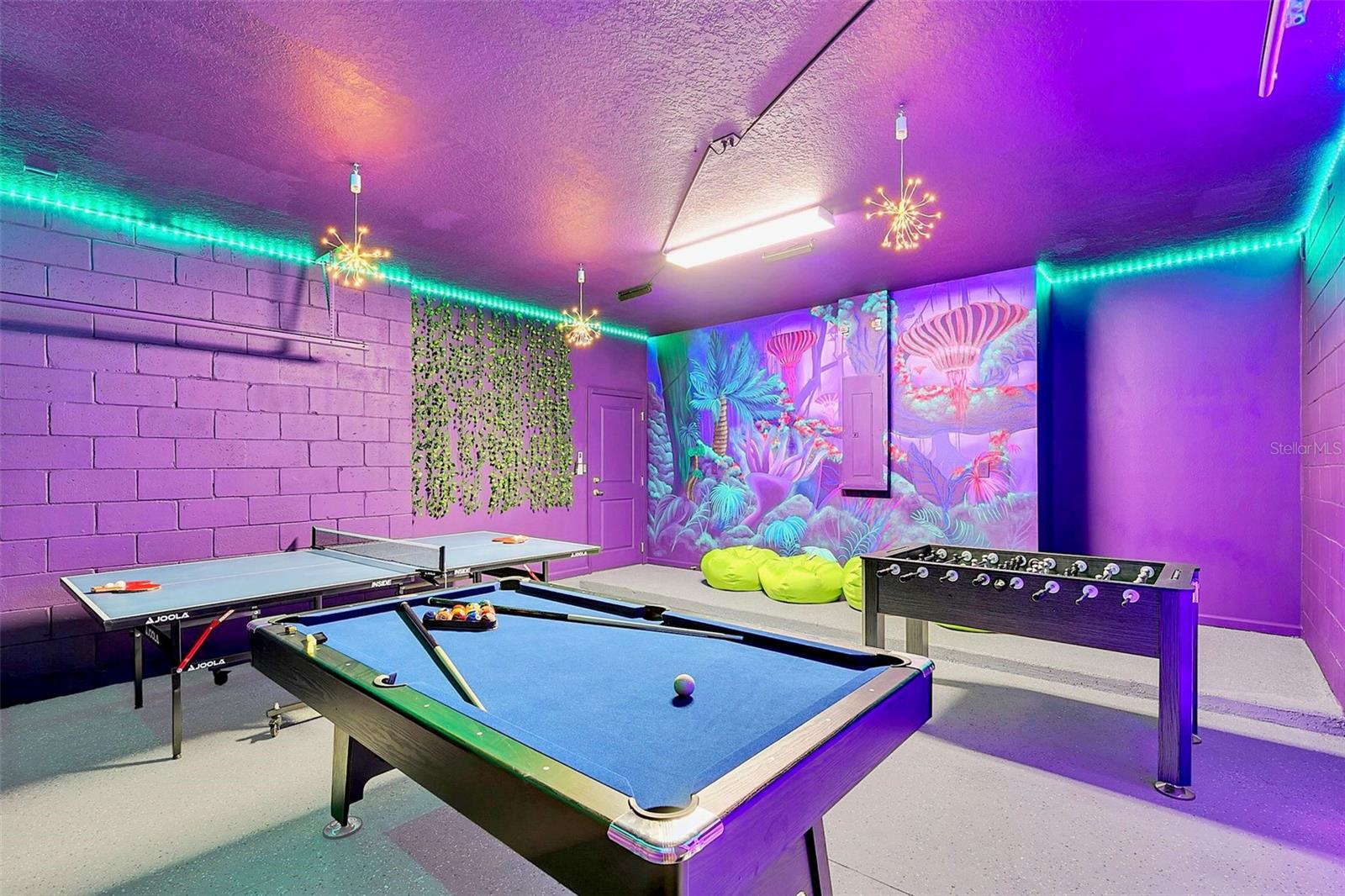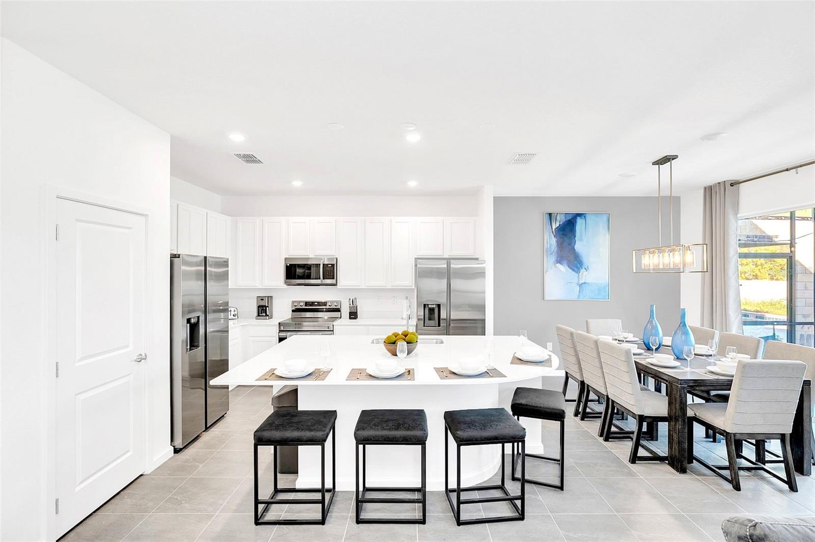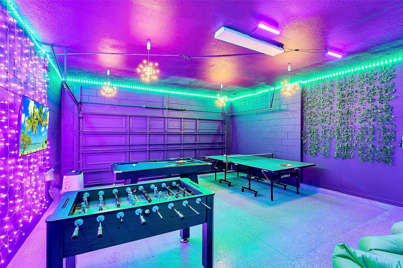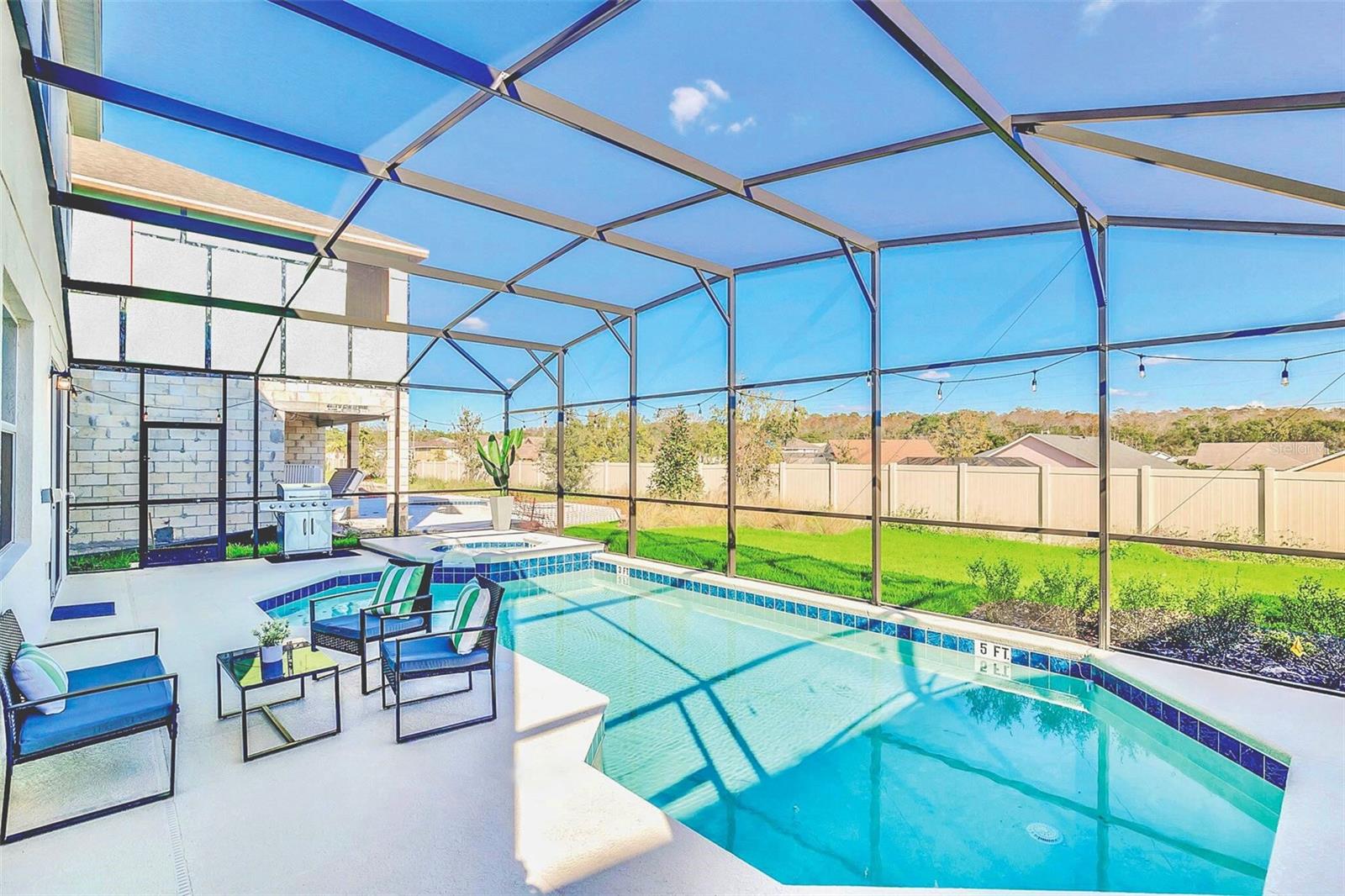 Incredible Investment Opportunity! Best price in the community—seller is motivated! This luxury 8-bedroom, 5-bathroom vacation home in the highly sought-after Bella Vida Resort offers an unbeatable combination of comfort, style, and convenience in the heart of Kissimmee. LOW HOA! No CDD! Fully furnished and ready for guests, this resort home is perfect for short-term rentals or family getaways. Step inside to discover a spacious open-plan living and dining area, ideal for gatherings. The gourmet kitchen is equipped with two refrigerators, stainless steel appliances, solid surface countertops, and a large island, perfect for meal prep and entertaining. The charm extends into thoughtfully themed rooms meticulously crafted by a talented mural artist, designed to delight both young and old. Each room adds a touch of magic, enhancing the overall experience and creating lasting memories. Outside, the screened back patio with a refreshing pool offers the perfect setting to bask in the warm Florida sun or cool off with a leisurely swim. The garage has been converted into a stylish game room for tenants to enjoy during their stay. Additionally, the house is equipped with two sets of washers and dryers, both downstairs and upstairs, offering convenience for guests. Beyond this enchanting retreat, Bella Vida offers an array of community amenities that elevate your stay. The community boasts 24-hour manned gated access, a clubhouse filled with fun activities, a high-end fitness center, a game room, a movie room, a resort-style pool/jacuzzi spa, a playground, and a basketball court. Perfectly located just minutes from Disney, Universal Studios, SeaWorld, and other major attractions, this luxury vacation home community is also near restaurants, shopping centers, hospitals, gas stations, major highways, and toll roads. With low HOA fees and no CDD, this home is an economically favorable investment. Don't miss the chance to own this ideal home as a vacation retreat or a turnkey investment.