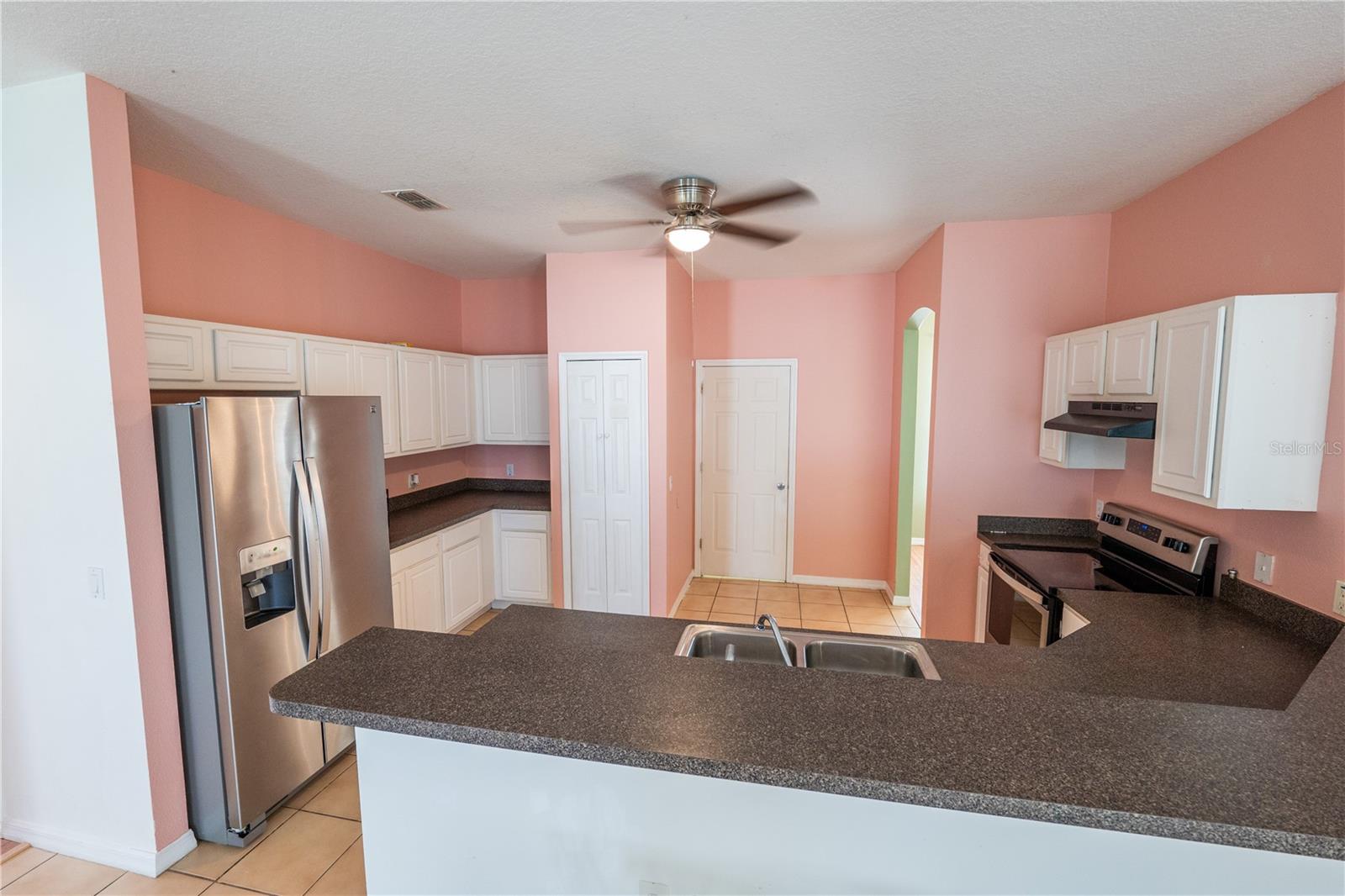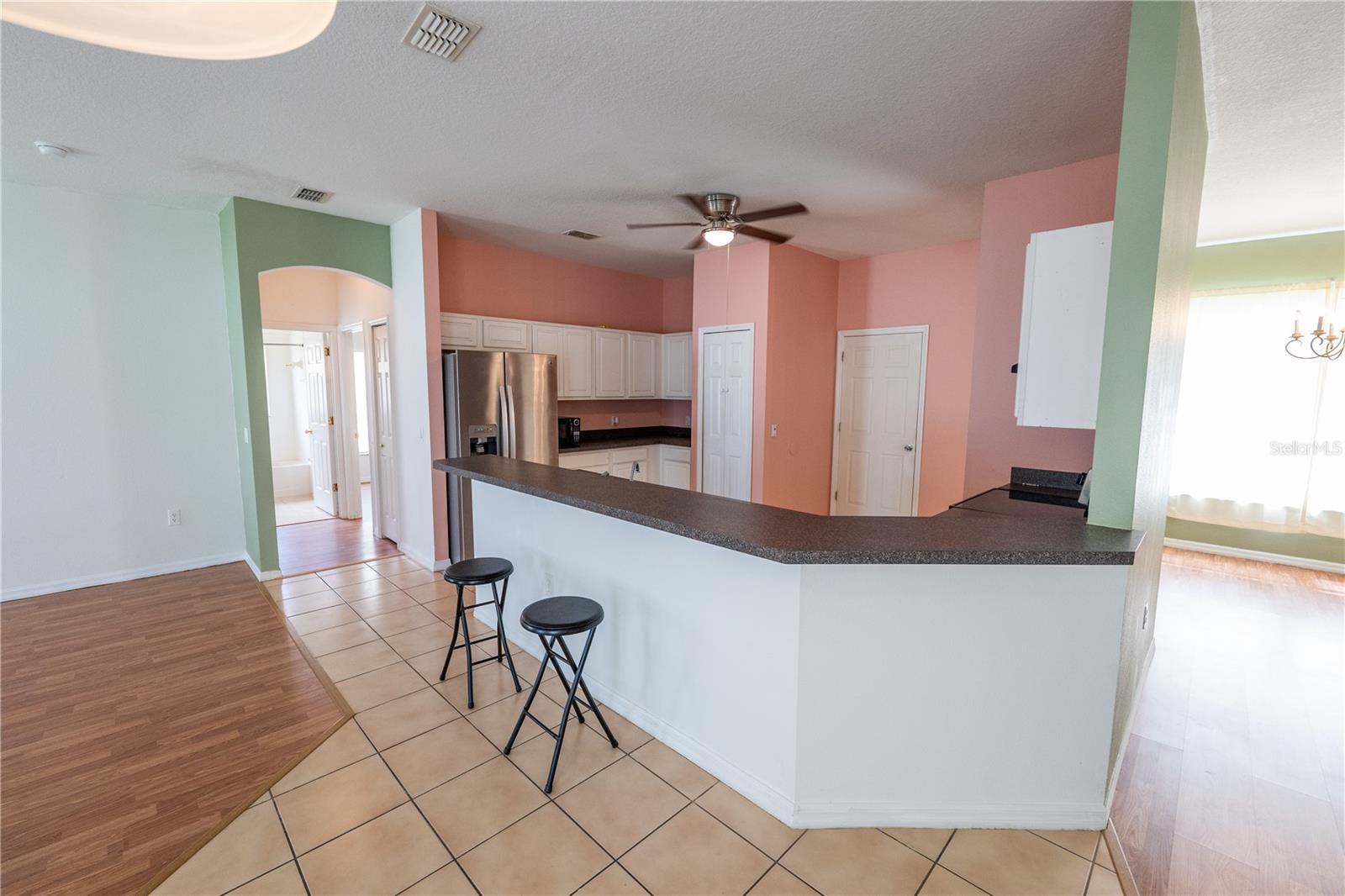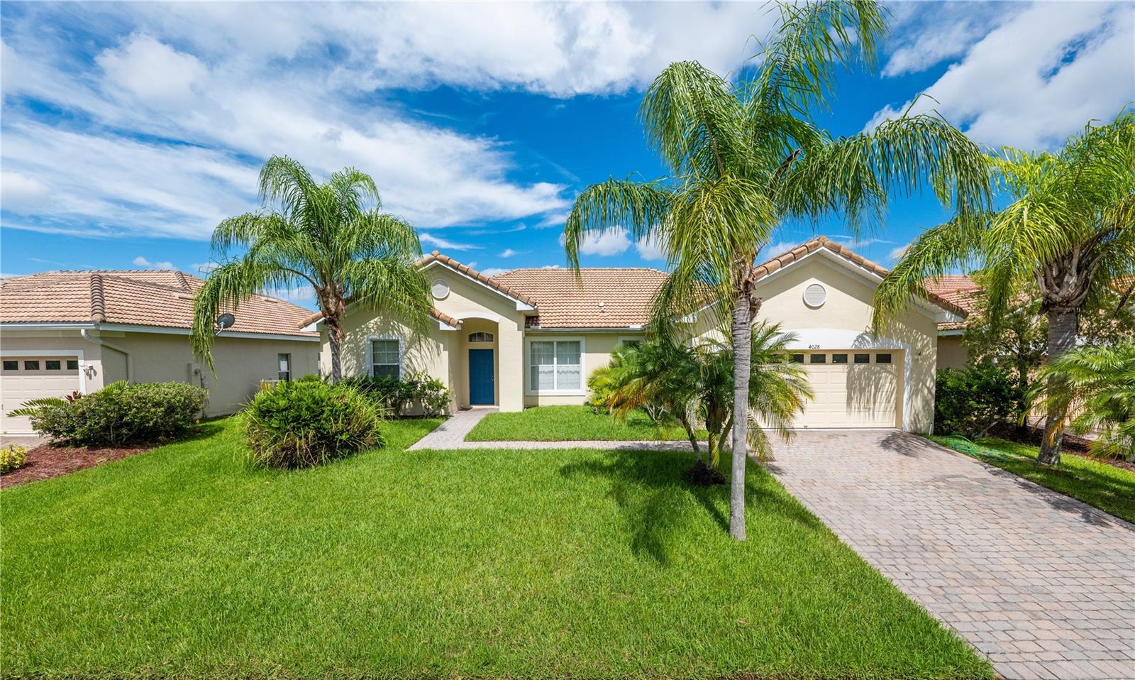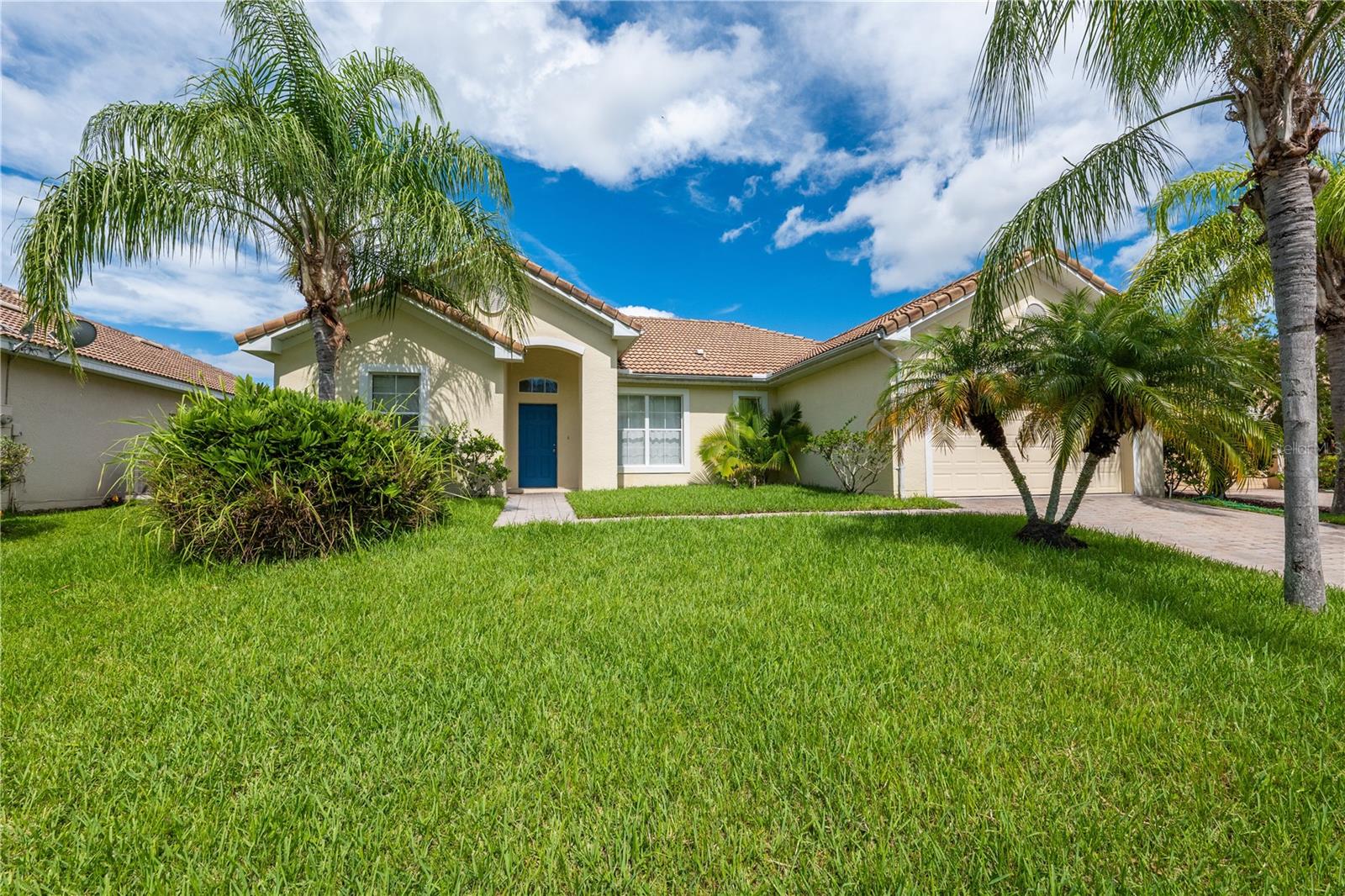 For a complete REAL walk through of this home find the Video or Virtual Tour button somewhere on this page! Start enjoying the multitude of exclusive amenities offered by Isles of Bellalago. This guard-gated community is tailored to enhance the owner’s lifestyle. The picturesque setting throughout the neighborhood continues to the property where you are greeted with a well-manicured lawn and palm trees. The paved driveway and walkways display instant curb appeal. Elegant Mediterranean-style Home, with tile roof, offers a wonderful floor plan with three bedrooms, two bathrooms, and a spacious two-car garage. Upon entering, you are greeted with high ceilings, natural light, a warm palette, and laminate and tile throughout the open floor plan. This home has an inviting flow from the entry to the spacious living and dining area with access to the lanai. The large open kitchen and family room are the heart of this home. The kitchen features wood cabinets, bar seating, stainless steel appliances and nook. The spacious family room off the kitchen with ceiling fan and access to the lanai provides the perfect setting to entertain your guests or spend time with the family while preparing your favorite meals. The primary bedroom with ceiling fan boasts two walk-in closets with ensuite primary bath with dual sinks, garden tub, walk-in shower, and water closet. Two ample-sized bedrooms share the second bath that has a shower with a tub. Step outside to the extended covered lanai perfect to unwind in comfort after a long day. The large backyard provides ample space for outdoor activities and entertainment. As a resident of Bellalago, you will benefit from the low association fees, guard gate, and the resort-style feel of the community. Conveniently located close to shopping, restaurants, Bellalago Academy and other schools, boating and fishing, close to Lake Toho, offering a perfect blend of leisure and serenity. This property is perfect for those seeking a serene lifestyle without sacrificing the conveniences of urban living.