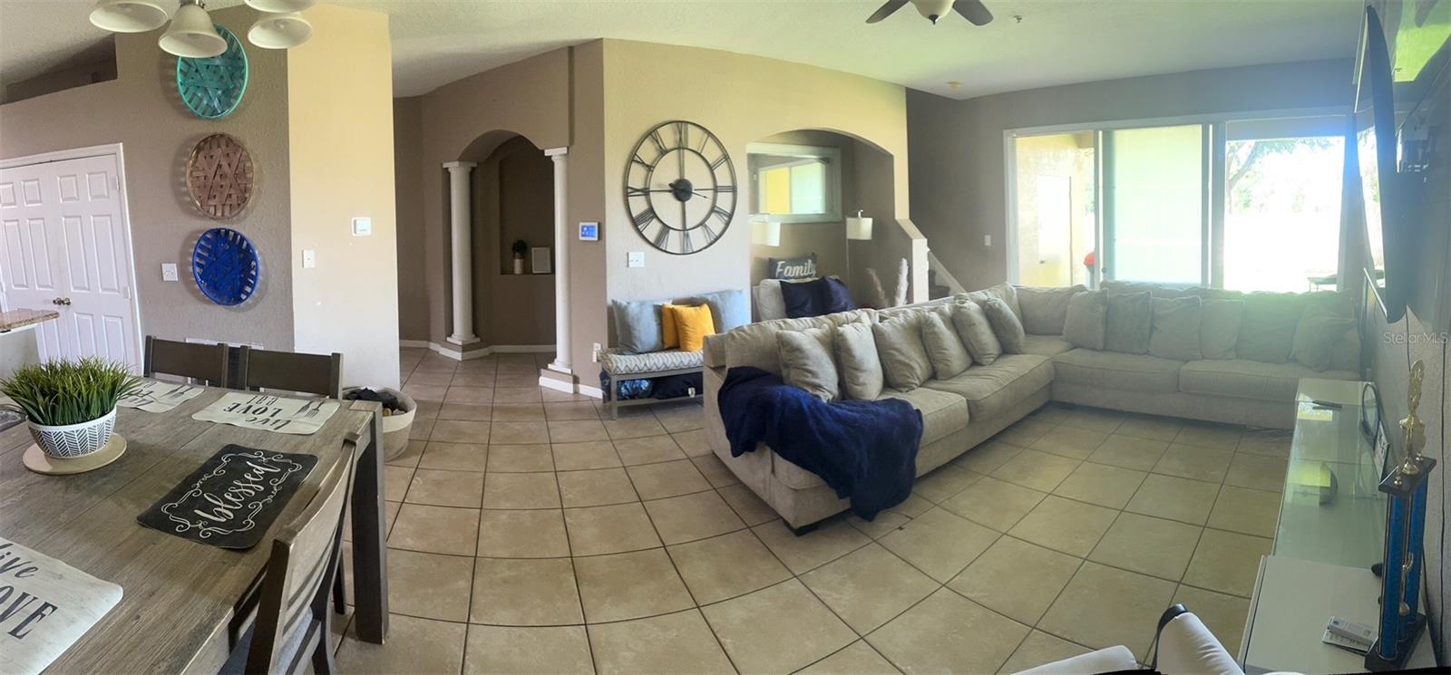 Welcome to your dream home in the highly sought-after Flora Ridge community! This charming 1,749 square foot townhouse offers the perfect blend of comfort and convenience. With a spacious one-car garage and a two-car parking driveway, there's plenty of room for your vehicles and guests. Step inside to discover a beautiful open floor plan on the first floor, ideal for a large family or entertaining friends. The bright and airy living space flows seamlessly into the dining area and kitchen, making it the heart of the home. The kitchen boasts modern appliances from 2019, ensuring you have everything you need for culinary adventures. Upstairs, you'll find three generous bedrooms, providing ample space for everyone in the family. The master suite features an in-suite bathroom, while the two additional bedrooms share a well-appointed full bathroom. A convenient half-bath on the first floor adds to the home's functionality. Situated just minutes from the Loop Shopping Center and grocery shopping, this townhouse offers unparalleled convenience. Plus, you're only approximately 15 minutes away from the magical Disney attractions, perfect for family outings and creating unforgettable memories. Nestled in a serene and scenic area, Flora Ridge community is a haven of tranquility. Enjoy leisurely walks around the beautiful lake with a dedicated walking track and playground, or take a dip in the community pool and relax in the cabana. Dog owners will appreciate the ample areas for dog walking, and pets are more than welcome here. This home also features a privacy wall in the backyard, perfect for peaceful relaxation or hosting BBQs with friends. The roof was repaired in 2019, and a brand new AC unit was installed inside and out in 2023, ensuring your comfort year-round. While the property needs a little TLC, it's an excellent opportunity for a family looking to move to a quiet, safe area and make it their own. Don't miss your chance to own this gem in Flora Ridge – schedule a viewing today and start imagining your new life in this wonderful community!