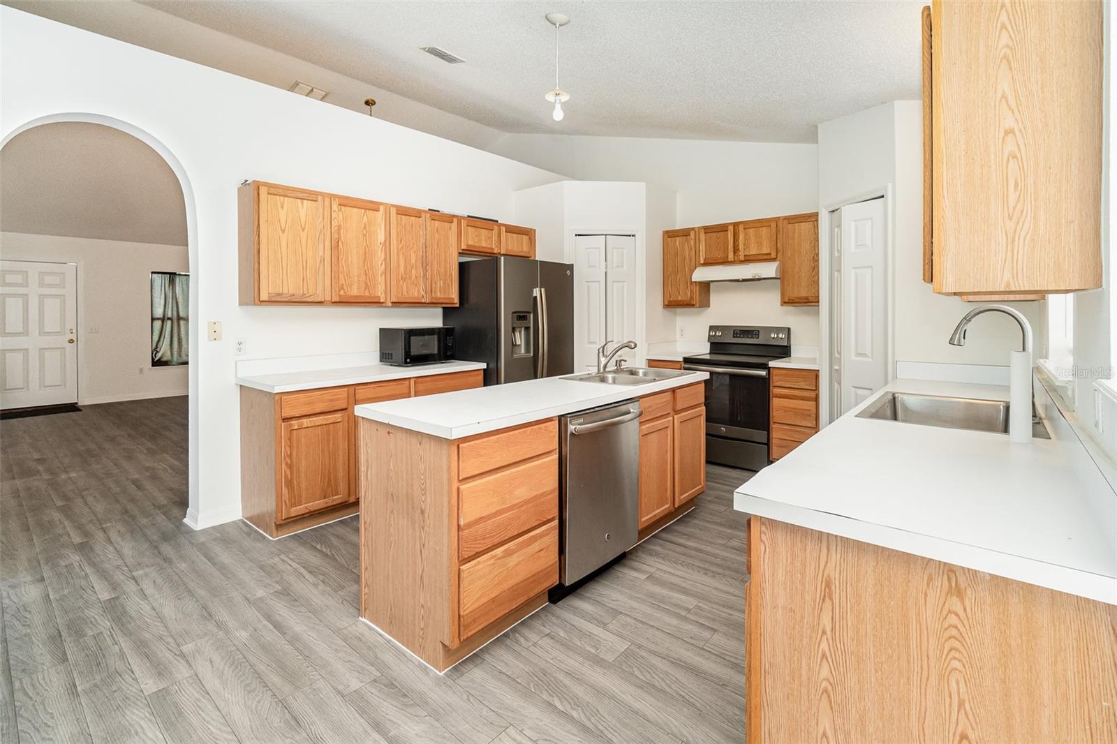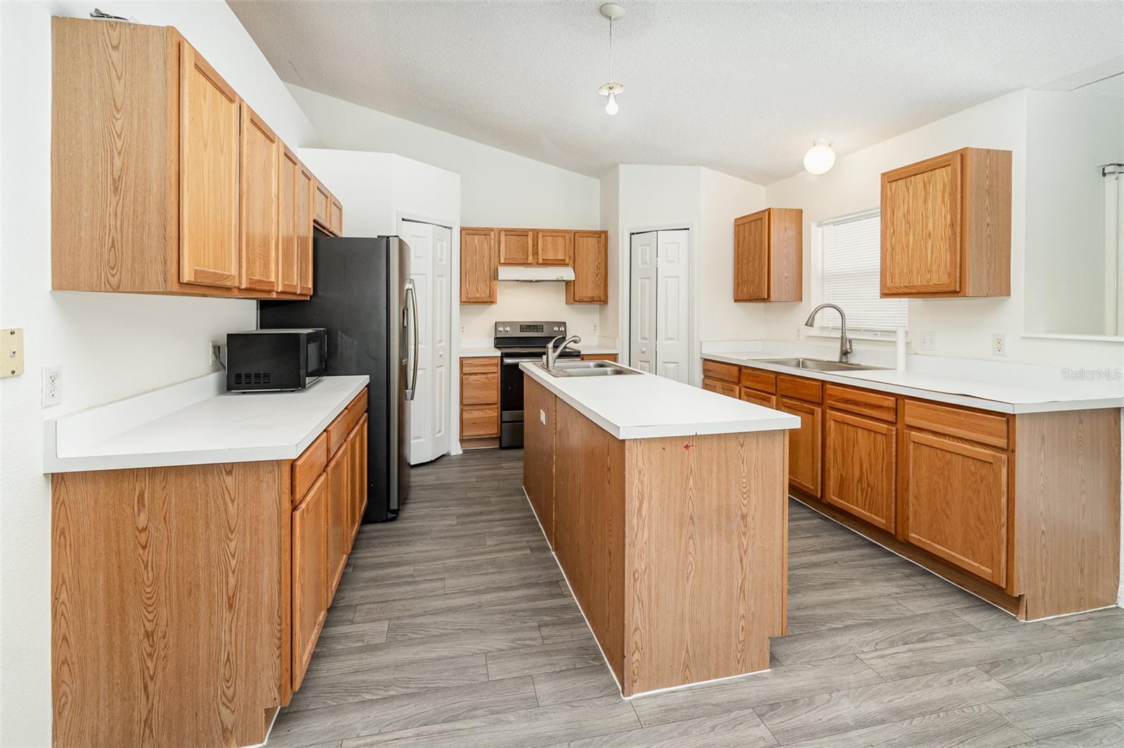 "Welcome to your move-in ready home! Come and see this beautiful home nestled in a quiet and private cul-de-sac Poinciana neighborhood. The home has three large bedrooms and two bathrooms, with a secondary living room providing ample space for your family needs. Enjoy your evenings relaxing in your spacious and completely fenced yard with no rear neighbors. This home features a newer roof, newer A/C, recently completely painted both exterior and interior, new vinyl flooring throughout the main living areas and beautiful GE gray appliances in the kitchen. The master room features a vaulted ceiling, double closets, and a tub shower combo. The community offers a basketball court, gym, pool, community room, and nearby parks. This home is conveniently located near the hospital, schools, restaurants, Walmart, and so much more. HOA includes internet and cable. Book your appointment today!"