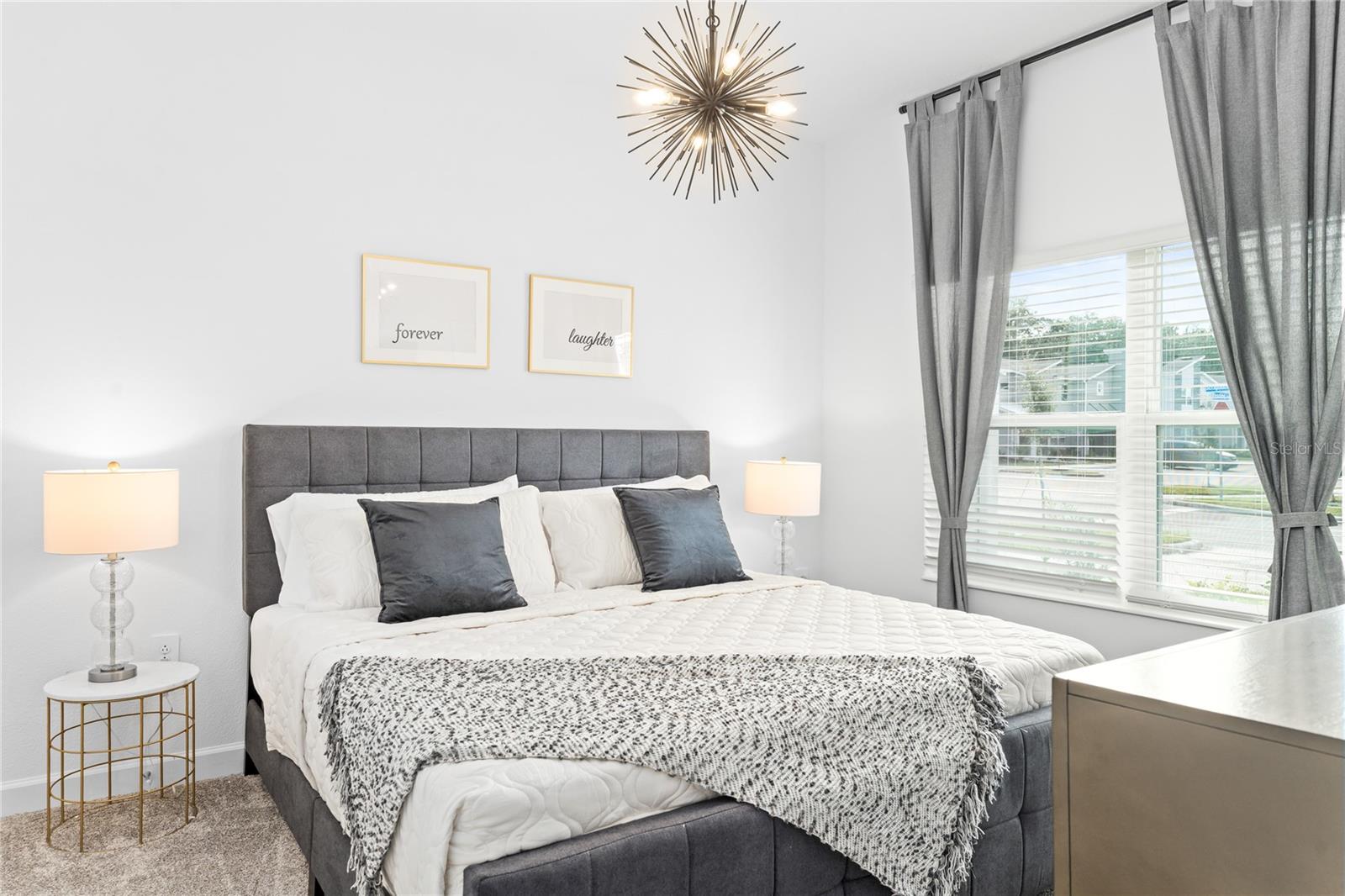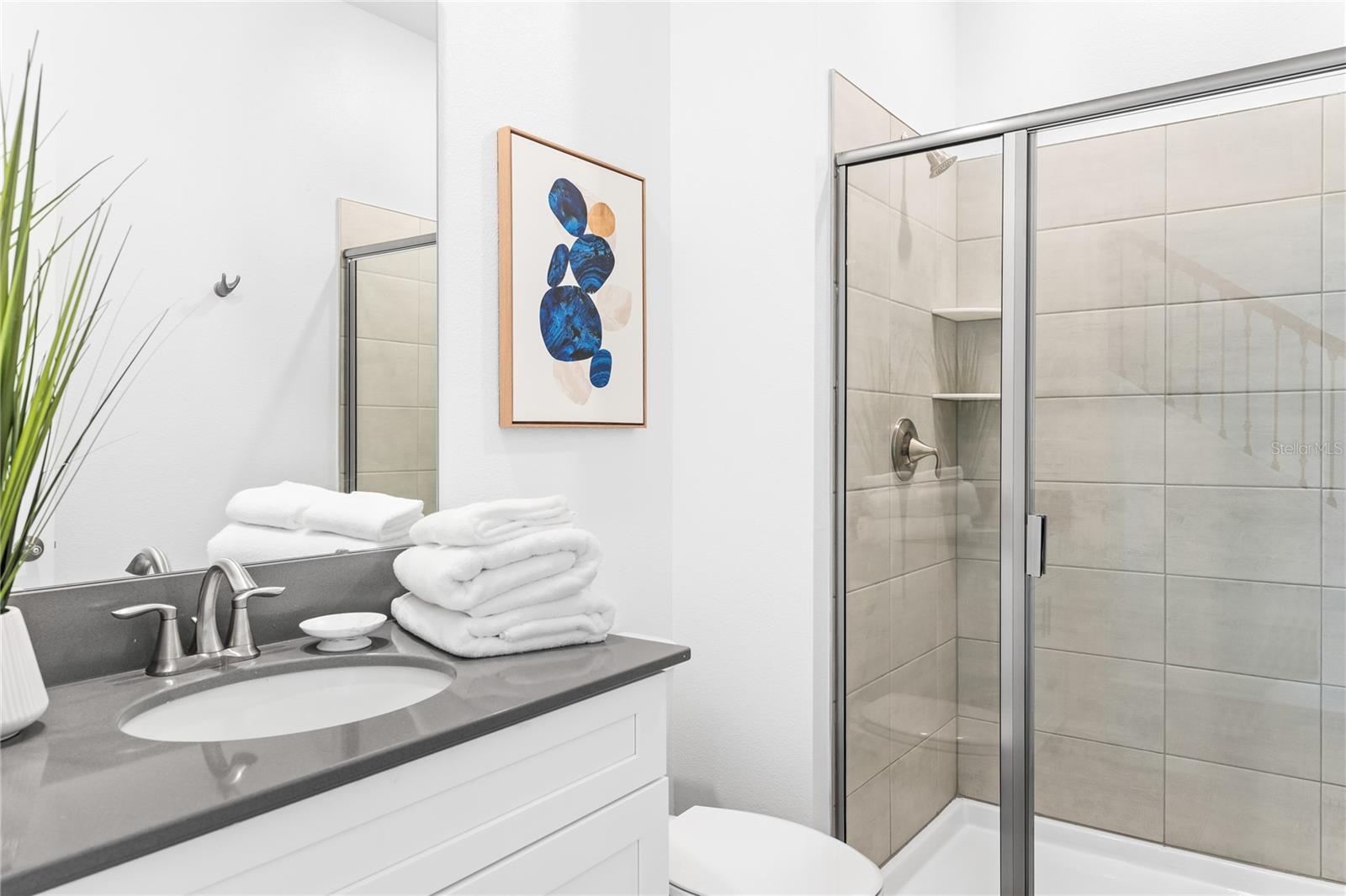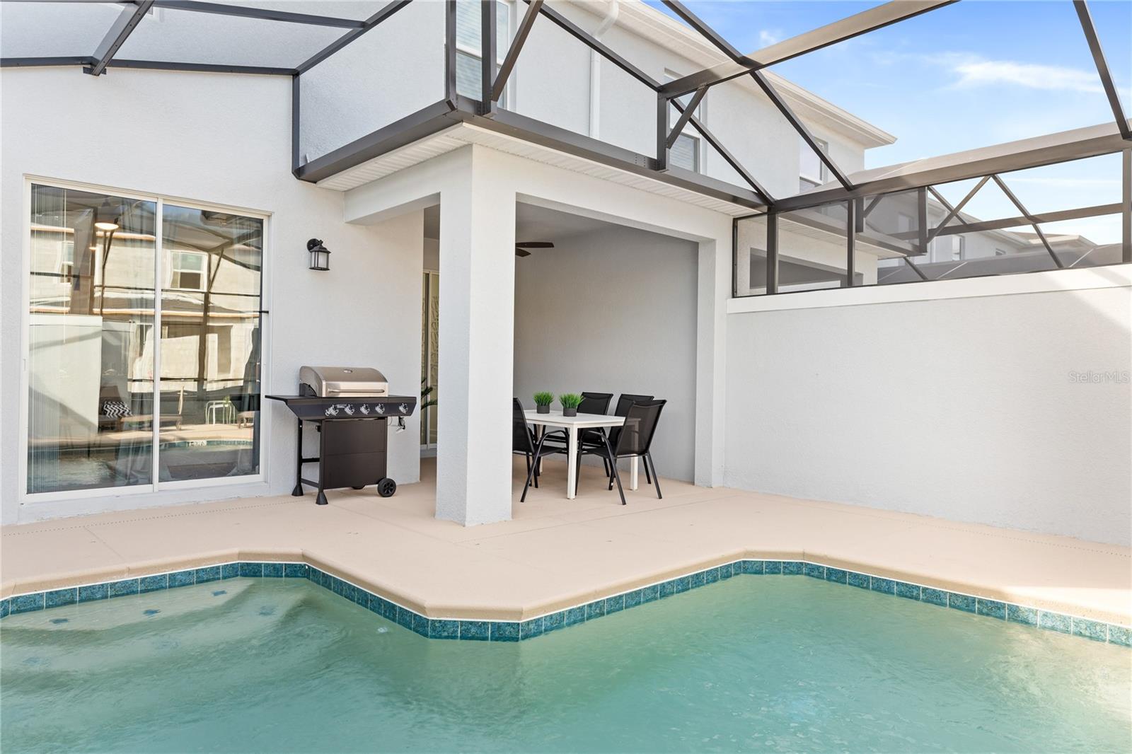 This charming, professionally decorated 4-bedroom, 3-bathroom townhome is located in the desirable Storey Lake community. Featuring a bedroom downstairs and an open floor concept with living, dining, and kitchen areas, this home is perfect for short-term rentals or as a vacation retreat. The kitchen boasts modern finishes, tall wall cabinets, quartz countertops, a central island, and top-tier appliances. Upstairs, you'll find a master bedroom with an en-suite bathroom and three Disney themed bedrooms. The screen enclosed back porch is nicely furnished and includes a private pool, new appliances, carpets, and an upgraded kitchen with a beautiful backsplash. Storey Lake Resort offers an array of amenities, such as a state-of-the-art clubhouse with a billiards room, media zone, swimming pool, lazy river, splash park, fitness center, playground, sports courts, lake/pond, restaurant and bar, nature trails, and kayaking options. Conveniently located just 8 minutes from Disney and close to SeaWorld, Universal Studios, Volcano Bay, shops, supermarkets, and Orlando International Airport (MCO), with easy access to major highways. This property is a fantastic investment opportunity with excellent rental potential or the perfect vacation home in Kissimmee, FL.