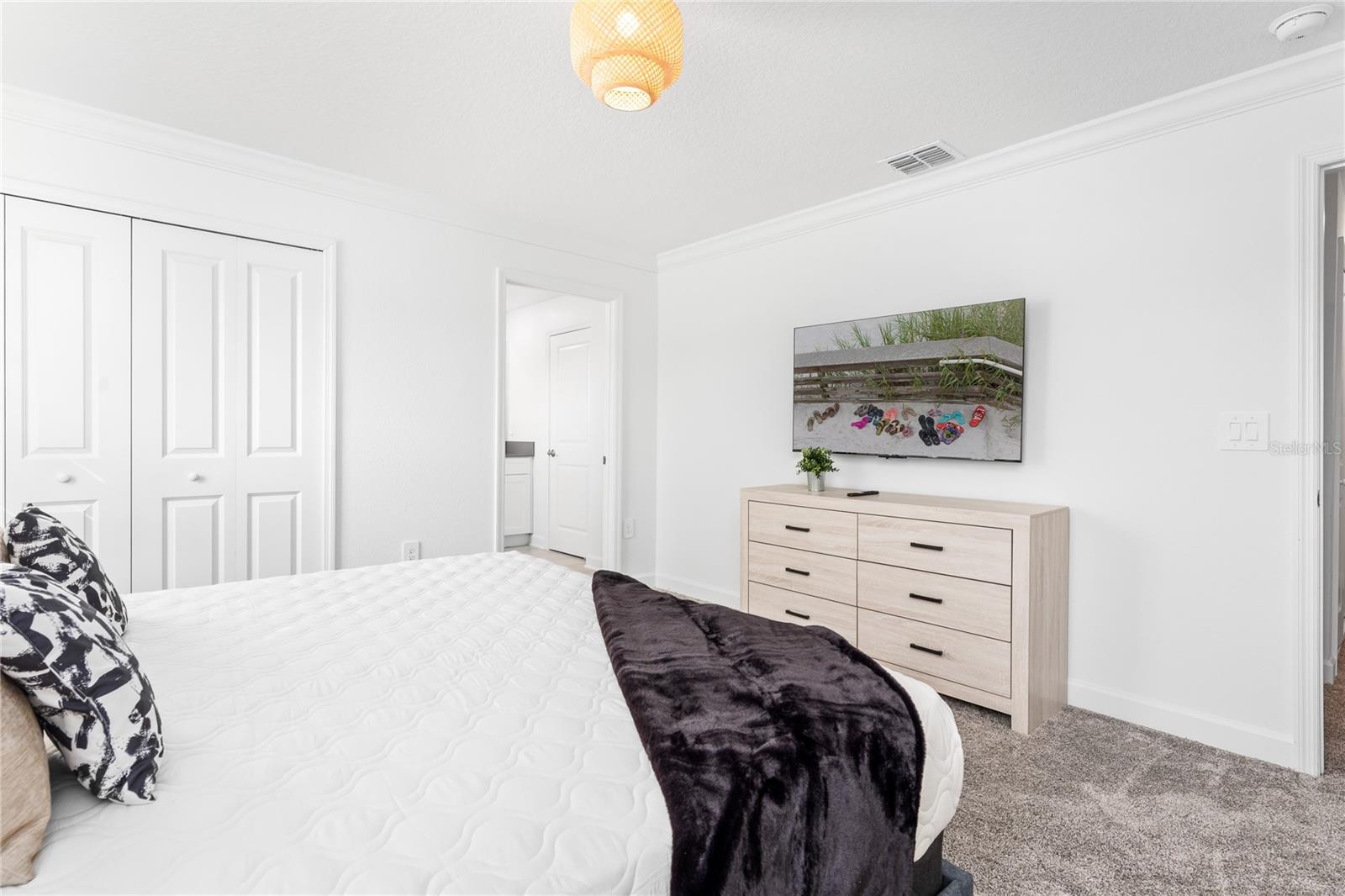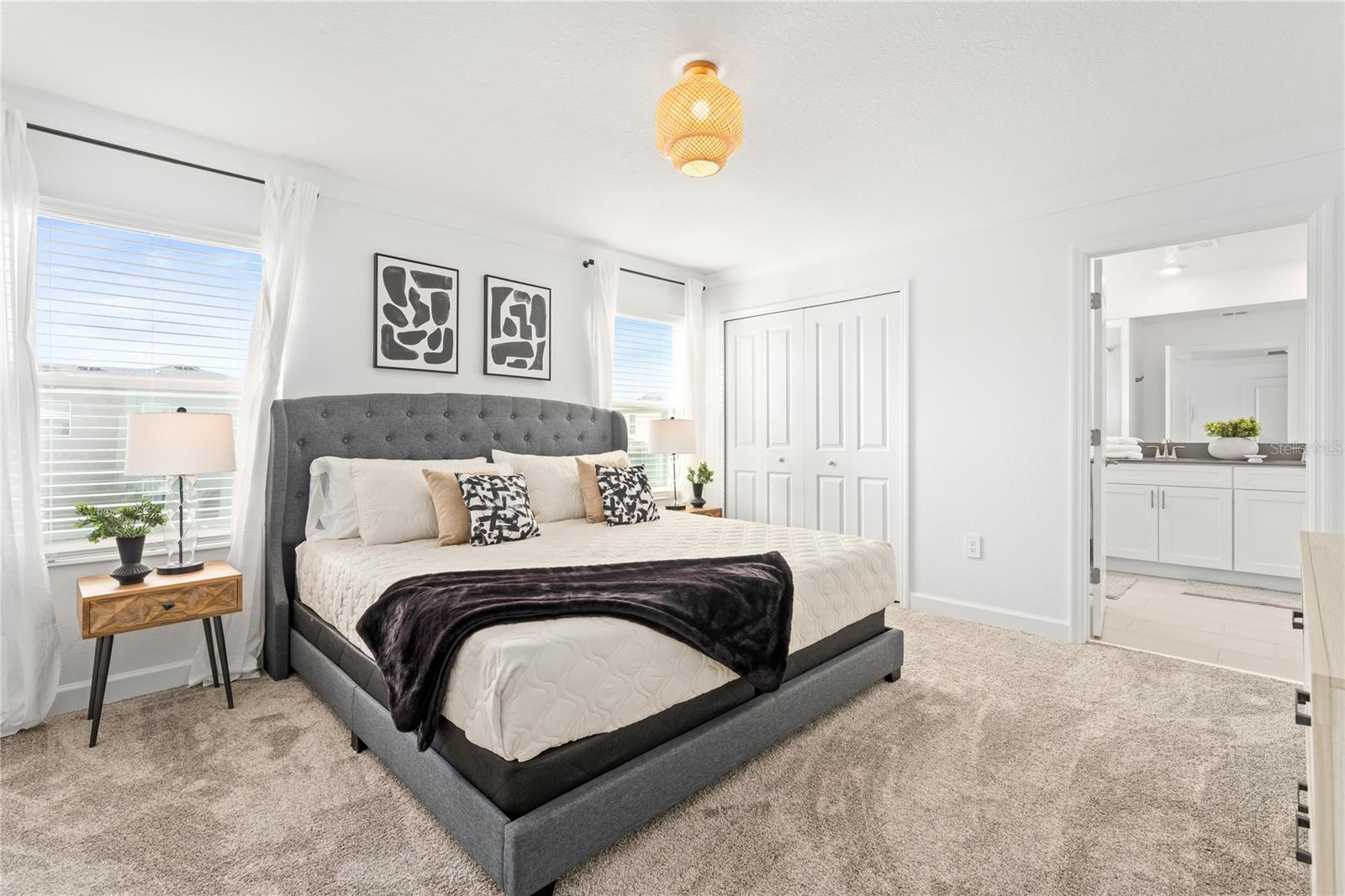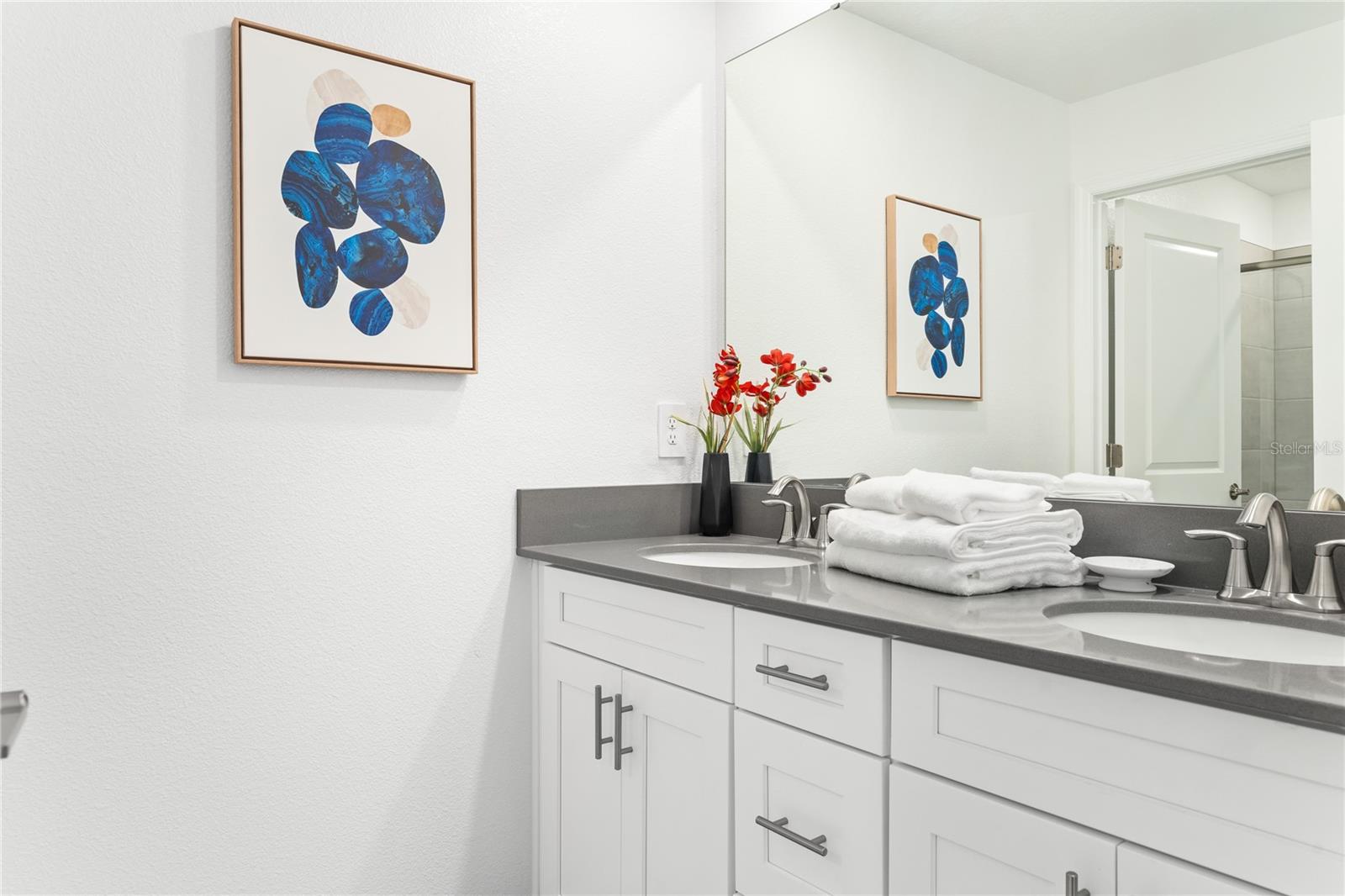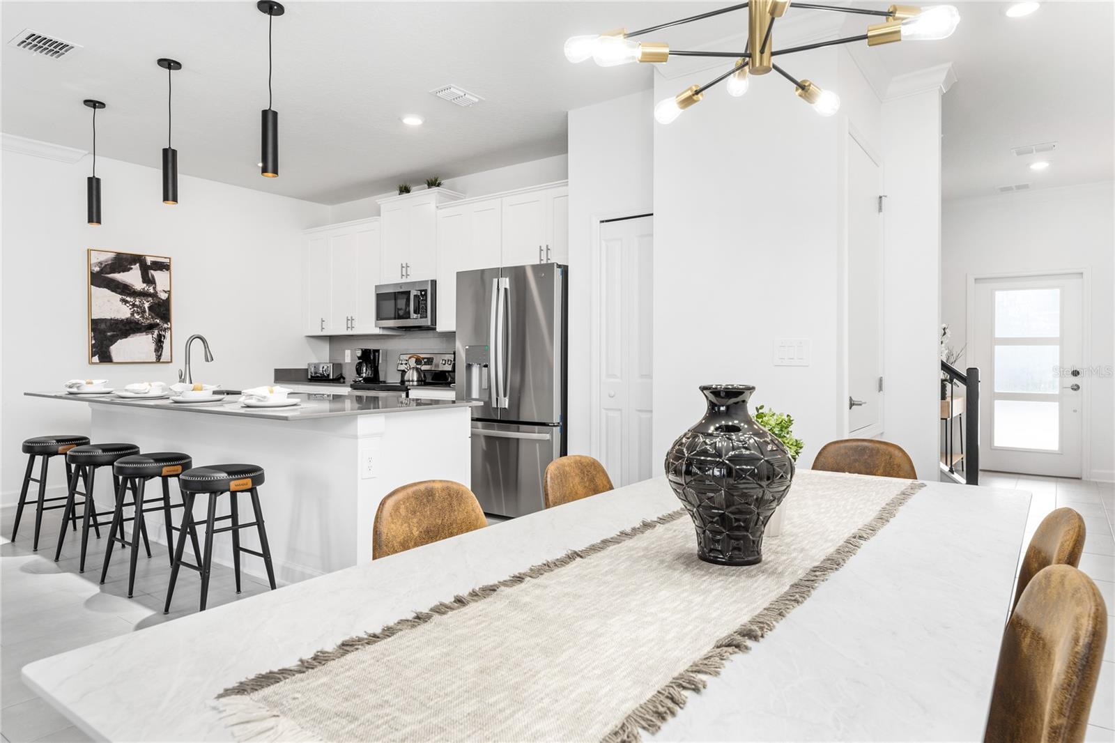 This charming, professionally decorated 4-bedroom, 3-bathroom townhome is located in the desirable Storey Lake community. Featuring a bedroom downstairs and an open floor concept with living, dining, and kitchen areas, this home is perfect for short-term rentals or as a vacation retreat. The kitchen boasts modern finishes, tall wall cabinets, quartz countertops, a central island, and top-tier appliances. Upstairs, you'll find a master bedroom with an en-suite bathroom and three Disney themed bedrooms. The screen enclosed back porch is nicely furnished and includes a private pool, new appliances, carpets, and an upgraded kitchen with a beautiful backsplash. Storey Lake Resort offers an array of amenities, such as a state-of-the-art clubhouse with a billiards room, media zone, swimming pool, lazy river, splash park, fitness center, playground, sports courts, lake/pond, restaurant and bar, nature trails, and kayaking options. Conveniently located just 8 minutes from Disney and close to SeaWorld, Universal Studios, Volcano Bay, shops, supermarkets, and Orlando International Airport (MCO), with easy access to major highways. This property is a fantastic investment opportunity with excellent rental potential or the perfect vacation home in Kissimmee, FL.