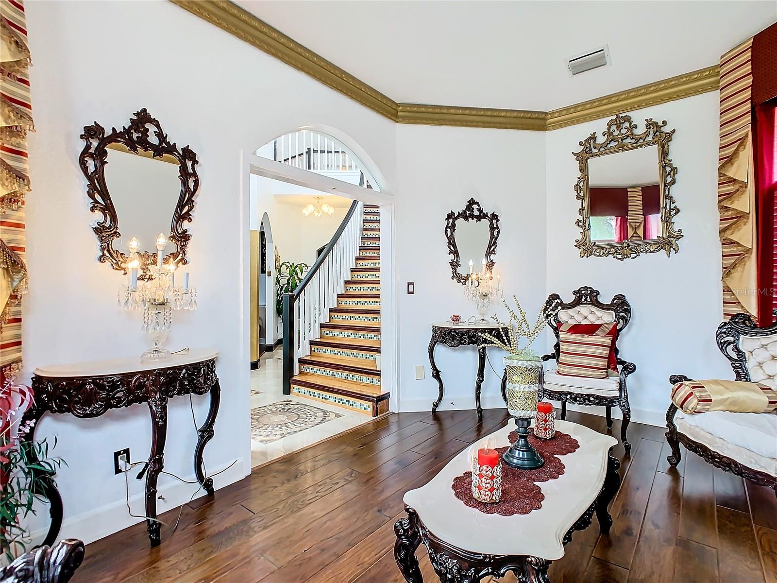 Welcome to your dream home at 2747 Kissimmee Bay Cir, nestled in the exclusive, gated community of Kissimmee Bay Country Club. This exquisite custom-built residence offers unparalleled luxury and comfort, featuring 4 bedrooms, 3.5 bathrooms, and a unique mother-in-law suite. As you approach the property via the circular driveway, you'll be captivated by the grand entrance and the majestic façade. Step inside to be greeted by a formal living room with soaring 20ft ceilings, filling the home with abundant natural light. The main level boasts a spacious master suite with tray ceilings, a luxurious ensuite with his and hers vanities, a separate shower, and a jetted garden tub. The elegant wood-winding staircase leads you to the second floor, where you'll find two additional bedrooms, a full guest bath, and a private balcony offering serene views. The formal dining room and separate living areas provide ample space for entertaining guests. The heart of this home is the family room, complete with a full wet bar and a cozy wood-burning fireplace, perfect for creating lasting memories with loved ones. The attached in-law quarters offer a separate entry, a full kitchen, a large bedroom, and a full bath, providing privacy and convenience for extended family or guests. The oversized garage is under air, ensuring comfort and functionality, while the home itself is situated on the 3rd fairway of the Kissimmee Bay Country Club, offering picturesque golf course views. Kissimmee Bay Country Club is an upscale, gated community featuring an 18-hole par 4 golf course designed by Lloyd Clifton. Residents enjoy resort-style living with access to a clubhouse, restaurant, bar and grill, tennis courts, a basketball court, RV and boat parking, a community boat ramp, and privileges to East Lake Toho for skiing, boating, and fishing. This prime location is just minutes from the Orlando International Airport, Disney World, medical facilities, shopping, dining, and major highways, including the Florida Turnpike, 417, and the 528, making it convenient to explore all that Central Florida has to offer. Experience luxury living at its finest. Schedule your private tour of 2747 Kissimmee Bay Cir today and make this exceptional home your own!