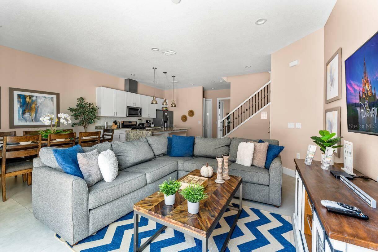 This townhouse literally has it all!!! This property can be used as short term rental, long term rental, primary residence, or vacation home. From luxury finishes to fully and elegantly decorated and equipped, this townhouse will allow the new owner to produce income immediately. Conveniently located walking distance to grocery store and short drive to Disney. The community is gated and offers fitness center, pool, spa, playground, clubhouse, and game room. NO CDD. HOA fees include cable and internet.
