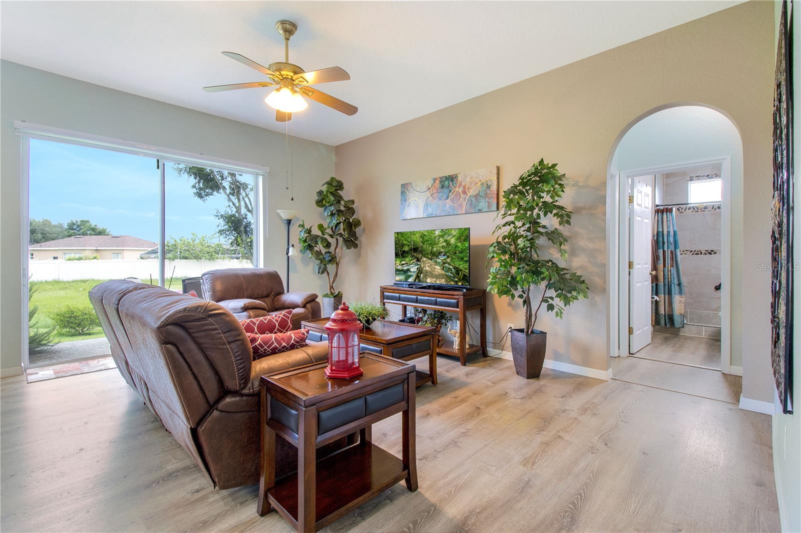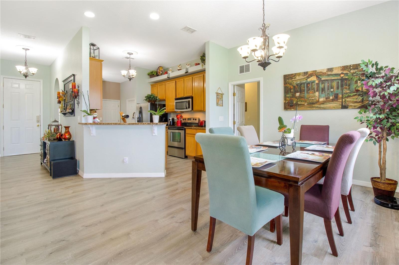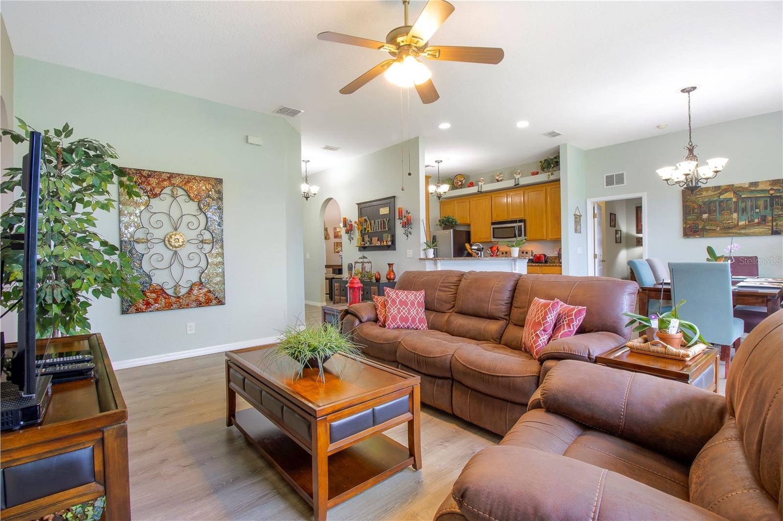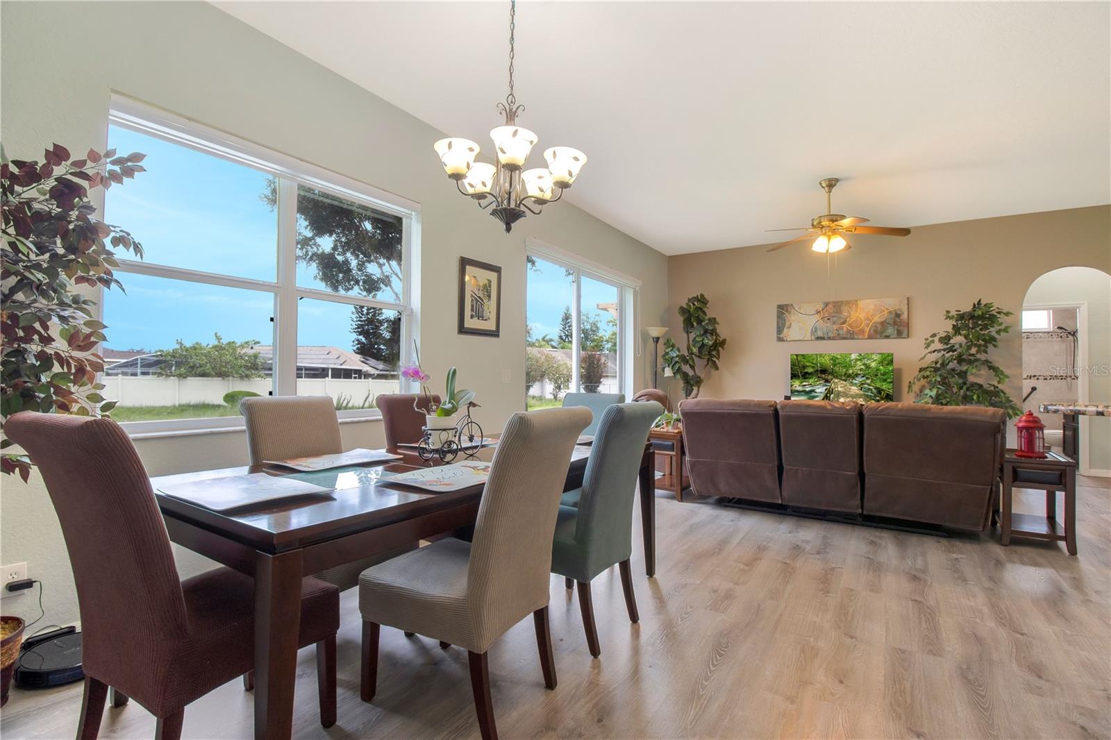 Welcome Home to this Meticulously kept, Key West Floorplan shows like a MODEL! Completely UPGRADED & MOVE IN READY. This Gorgeous home features 4 BEDROOMS 2 BATHROOMS an open floorplan giving you plenty of space for entertaining! Open the large 8’ front door into the spacious foyer, located off the foyer, you will find the secondary bedrooms, a guest bathroom, perfect for your guests to come and go. This home features a large gathering room at the heart of this home with sliding glass doors leading out to an outdoor garden oasis. The kitchen has Breakfast Nook, Solid counter tops and is open to the gathering and dining room for effortless entertaining. The owner's suite is situated privately in the rear corner of the home and includes a large shower, and dual sink vanity. The large backyard has tons of space for you to add an extended lanai or private pool! Gorgeous Vinyl Plank flooring throughout replaced in 2020. Exterior Painted 2023. This adorable 4/2 Key West model is nestled in a GATED, MAINTENANCE-FREE community. HOA includes 24 HR GUARD, BASIC CABLE, Internet, Exterior painting every 7 years, Pressure washing Roof, IRRIGATION, & FRONT LAWN MAINTENANCE *TILE ROOF* SOLAR PANELS PAID OFF AT CLOSING. Tuscany Preserve residents enjoy a community pool, clubhouse, fitness center, basketball courts, and tennis courts. Walt-Disney World, Sea World, Universal Studios, Orlando Int Airport are some of the many attractions that are only 35-45 mins away! Close-by is 3,800 acres of spring-fed lake where you can enjoy fishing, water sports w/ picnic shelters & BBQ grills, nature trails, beach volleyball & gazebo for friends & family gatherings.