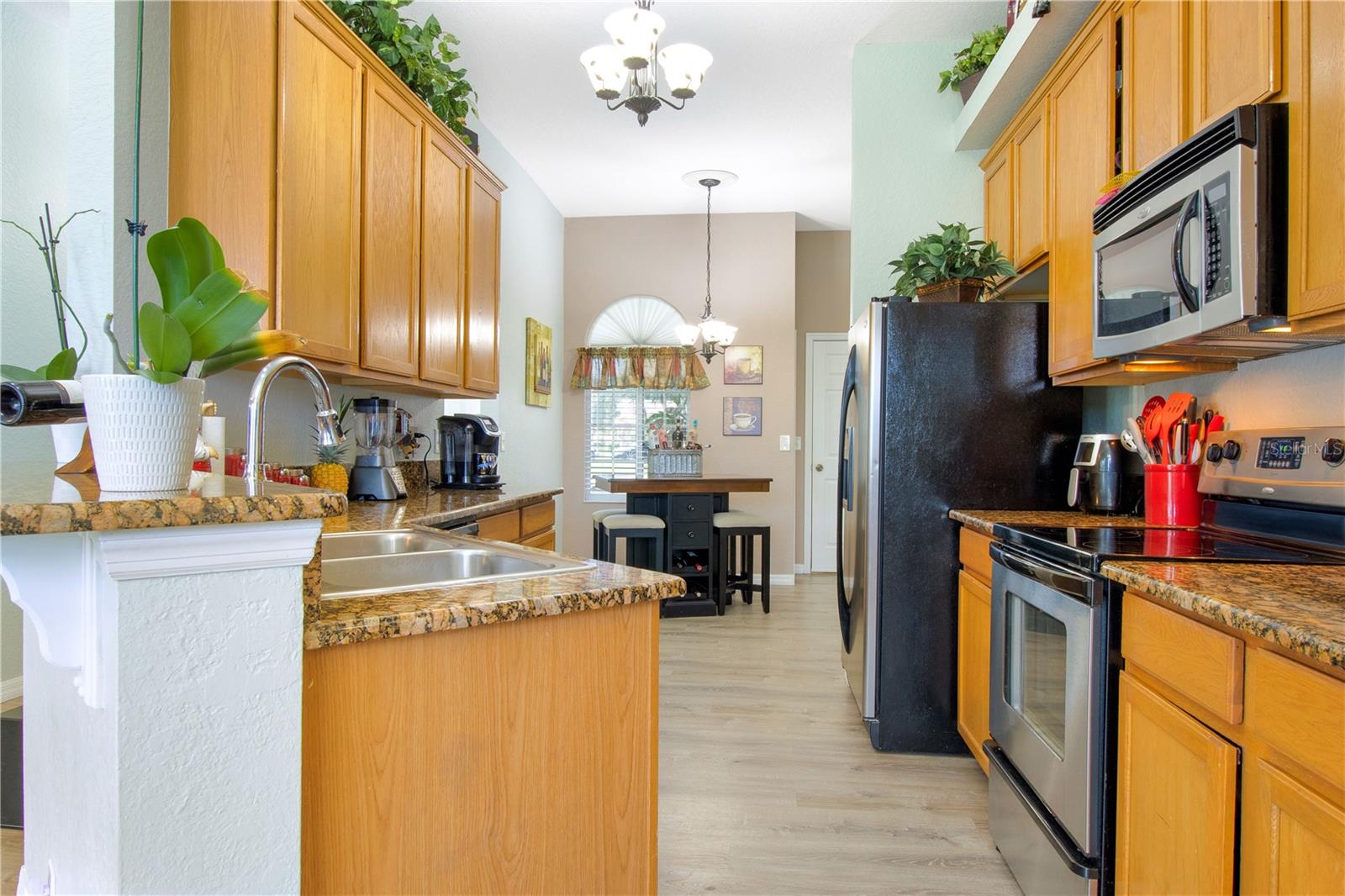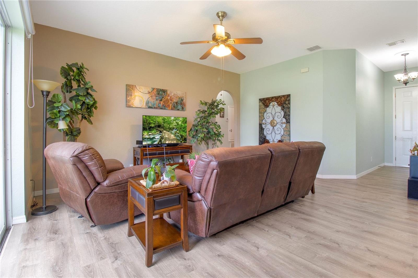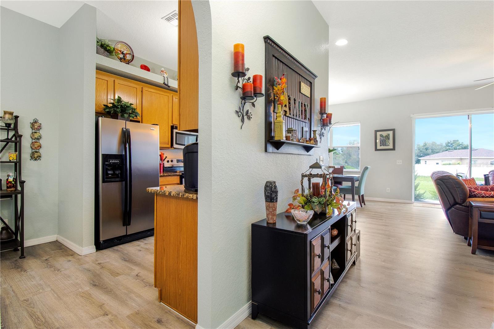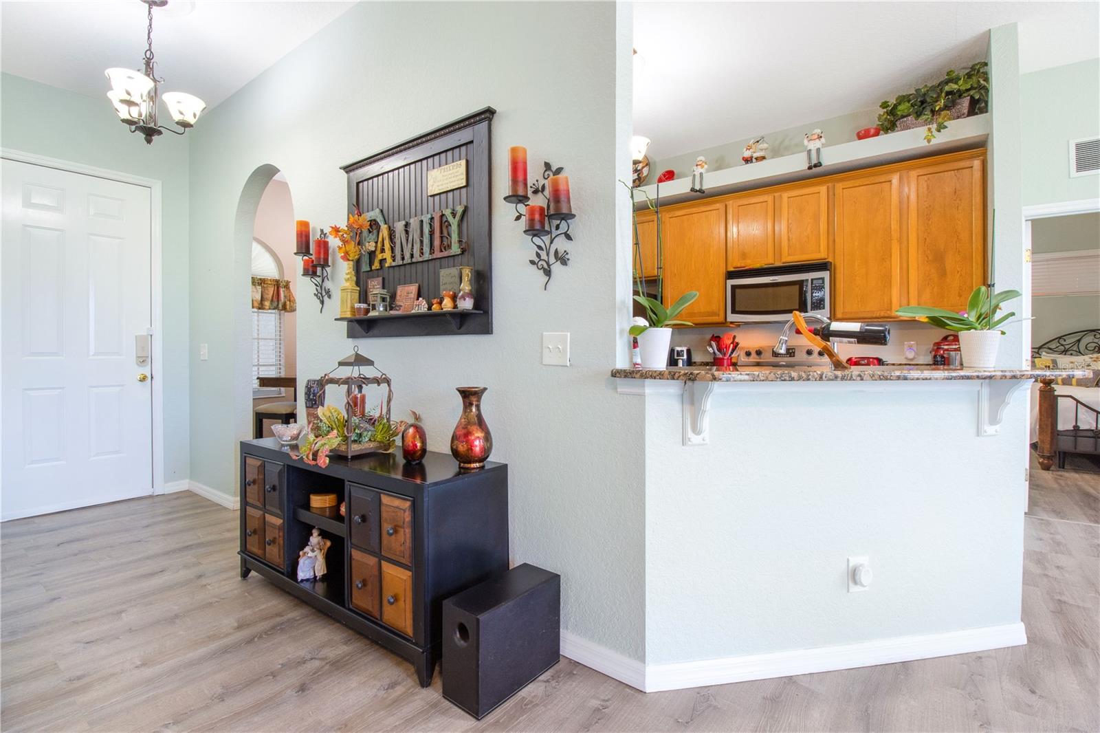 Welcome Home to this Meticulously kept, Key West Floorplan shows like a MODEL! Completely UPGRADED & MOVE IN READY. This Gorgeous home features 4 BEDROOMS 2 BATHROOMS an open floorplan giving you plenty of space for entertaining! Open the large 8’ front door into the spacious foyer, located off the foyer, you will find the secondary bedrooms, a guest bathroom, perfect for your guests to come and go. This home features a large gathering room at the heart of this home with sliding glass doors leading out to an outdoor garden oasis. The kitchen has Breakfast Nook, Solid counter tops and is open to the gathering and dining room for effortless entertaining. The owner's suite is situated privately in the rear corner of the home and includes a large shower, and dual sink vanity. The large backyard has tons of space for you to add an extended lanai or private pool! Gorgeous Vinyl Plank flooring throughout replaced in 2020. Exterior Painted 2023. This adorable 4/2 Key West model is nestled in a GATED, MAINTENANCE-FREE community. HOA includes 24 HR GUARD, BASIC CABLE, Internet, Exterior painting every 7 years, Pressure washing Roof, IRRIGATION, & FRONT LAWN MAINTENANCE *TILE ROOF* SOLAR PANELS PAID OFF AT CLOSING. Tuscany Preserve residents enjoy a community pool, clubhouse, fitness center, basketball courts, and tennis courts. Walt-Disney World, Sea World, Universal Studios, Orlando Int Airport are some of the many attractions that are only 35-45 mins away! Close-by is 3,800 acres of spring-fed lake where you can enjoy fishing, water sports w/ picnic shelters & BBQ grills, nature trails, beach volleyball & gazebo for friends & family gatherings.