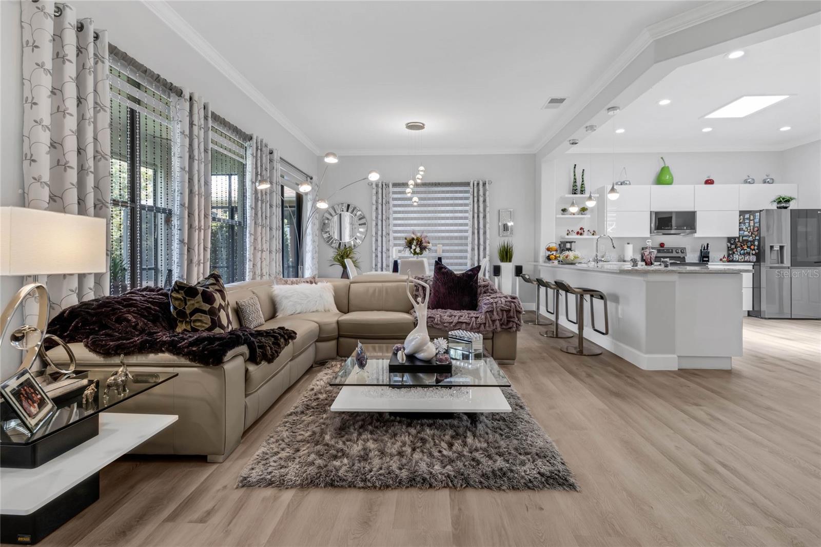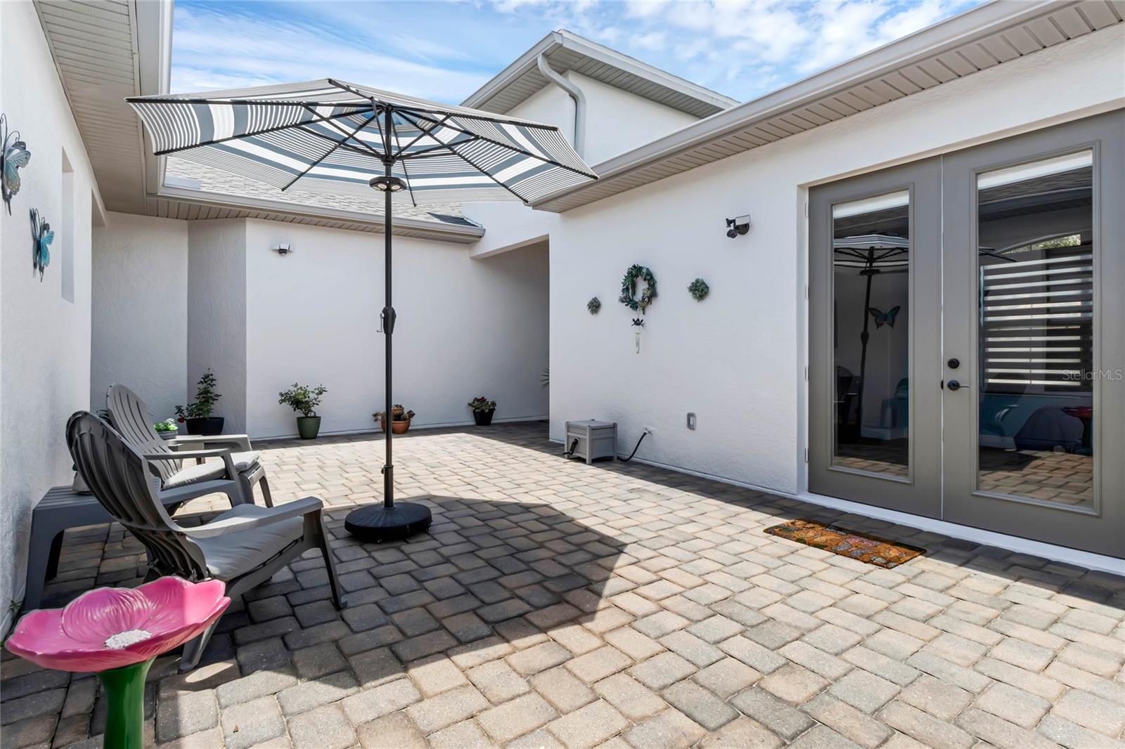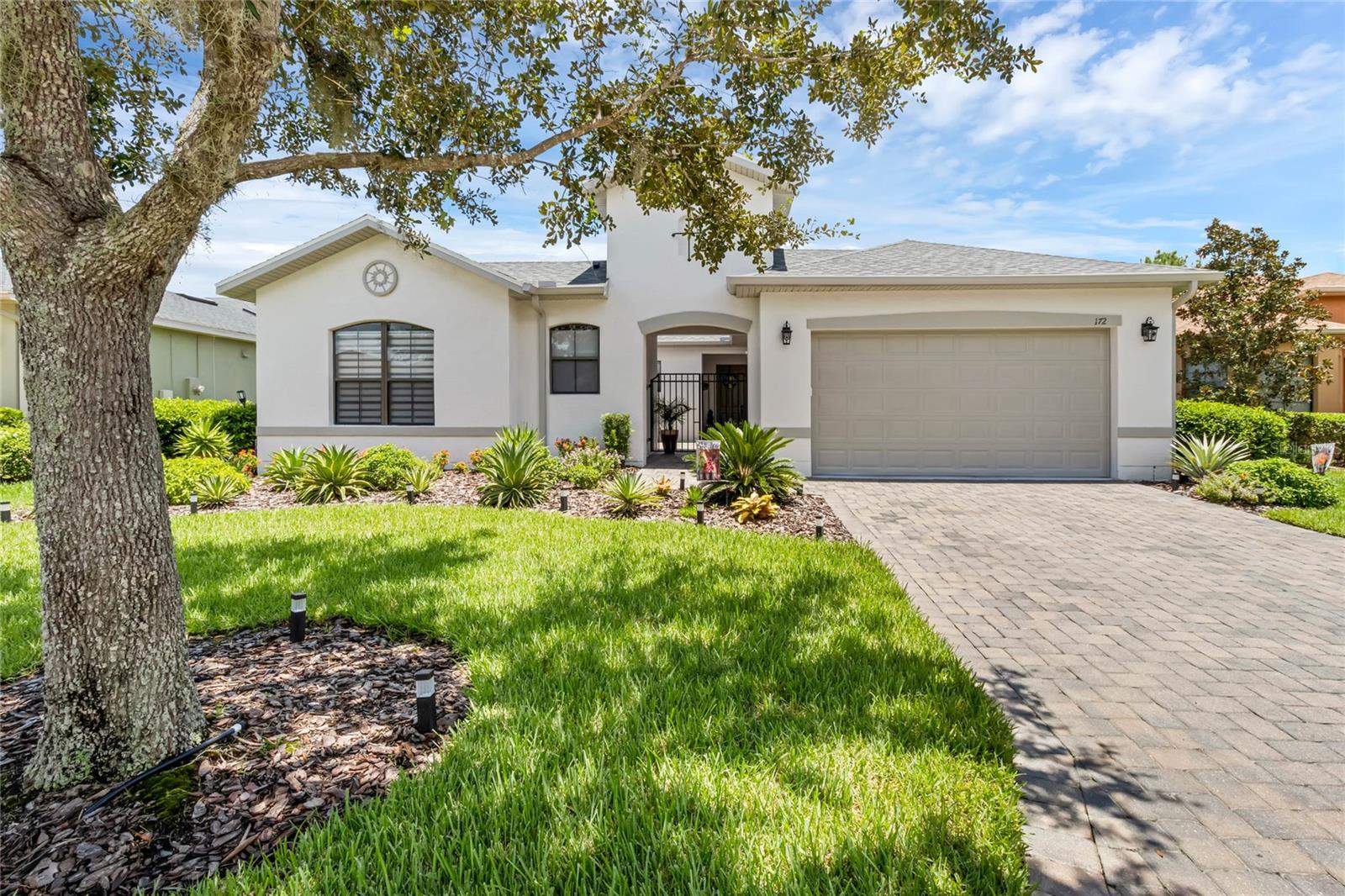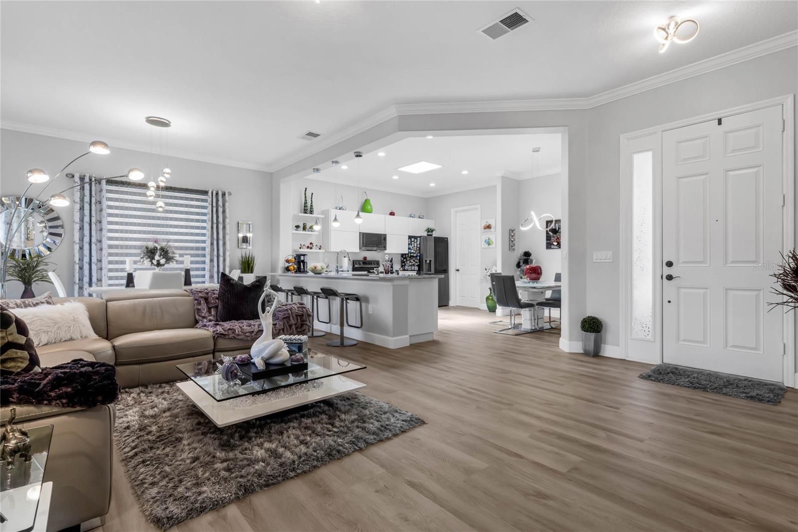Welcome Home to this Meticulously kept, Bal Harbor Floorplan shows like a MODEL! Completely UPGRADED & MOVE IN READY. This home is located in one of Central Florida's Top 55+ Communities, SOLIVITA! This Gorgeous home features 2 BEDROOMS plus a separate MOTHER-IN-LAW Casita, a DEN, an open floorplan giving you plenty of space for entertaining! The brick paver driveway will lead you to the enchanting courtyard leading to the private mother in-law suite, large 8’ front door into the spacious foyer, located off the foyer, you will find the second bedroom, a guest bathroom, perfect for your guests to come and go. This home features a large gathering room at the heart of this home with brand new LVP flooring, Crown molding through-out, upgraded baseboards, sliding glass doors leading out to a roomy extended covered lanai. The kitchen has been completely remodeled! All new appliances, cabinets, counter tops, soft touch drawers, soft touch automatic open/close Cabinets, and is open to the gathering and dining room for effortless entertaining. The owner's suite is situated privately in the rear corner of the home and includes large shower with glass, and dual sink vanity. Rain gutters all around to assist with drainage. The large backyard has tons of space for your extended lanai or private pool! HVAC 2024. Roof 2024. ALL FURNITURE AVALIBLAE outside of contract. Solivita offers endless amenities including 14 heated pools, indoor pool & indoor walking track, state of the art fitness centers, pickleball courts, lighted tennis courts, golf, over 250+ clubs to join, community restaurants, and so much more! Only 30 minutes from Disney and all of Orlando’s major attractions! Convenient to shopping and major roadways. The HOA: * - maintains the LANDSCAPING and IRRIGATION systems in the common areas as well as at individual homesites. Provides security with gate guards and mobile patrols including the Polk County Sheriff. Provides residents with Fibre Optic Internet & TV cable service. **** Poinciana Lakes Plaza is a MAJOR NEW SHOPPING CENTER opening directly across from the Solivita Main Gate, It features Sprouts Grocery, TJ MAXX, Ross, Burlington, Rack Room Shoes, 5 Below, Utla, Outback, First Watch, 5 Guys, Urgent Care, Dentist, TD Bank, Petco, Hair cuttery plus MUCH MORE TO COME.