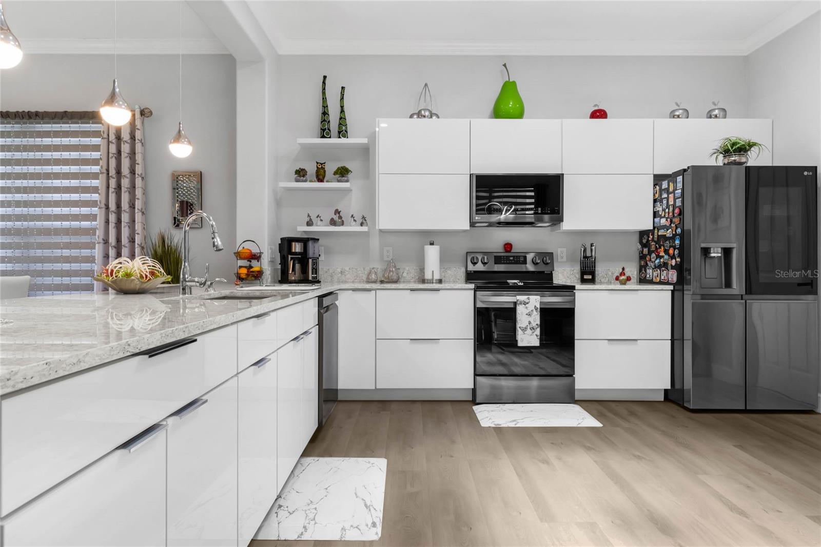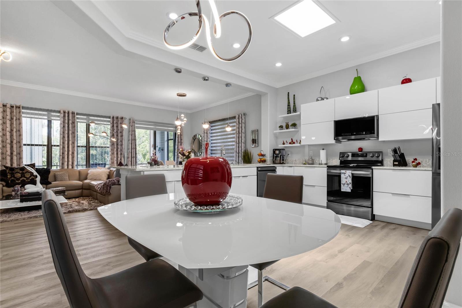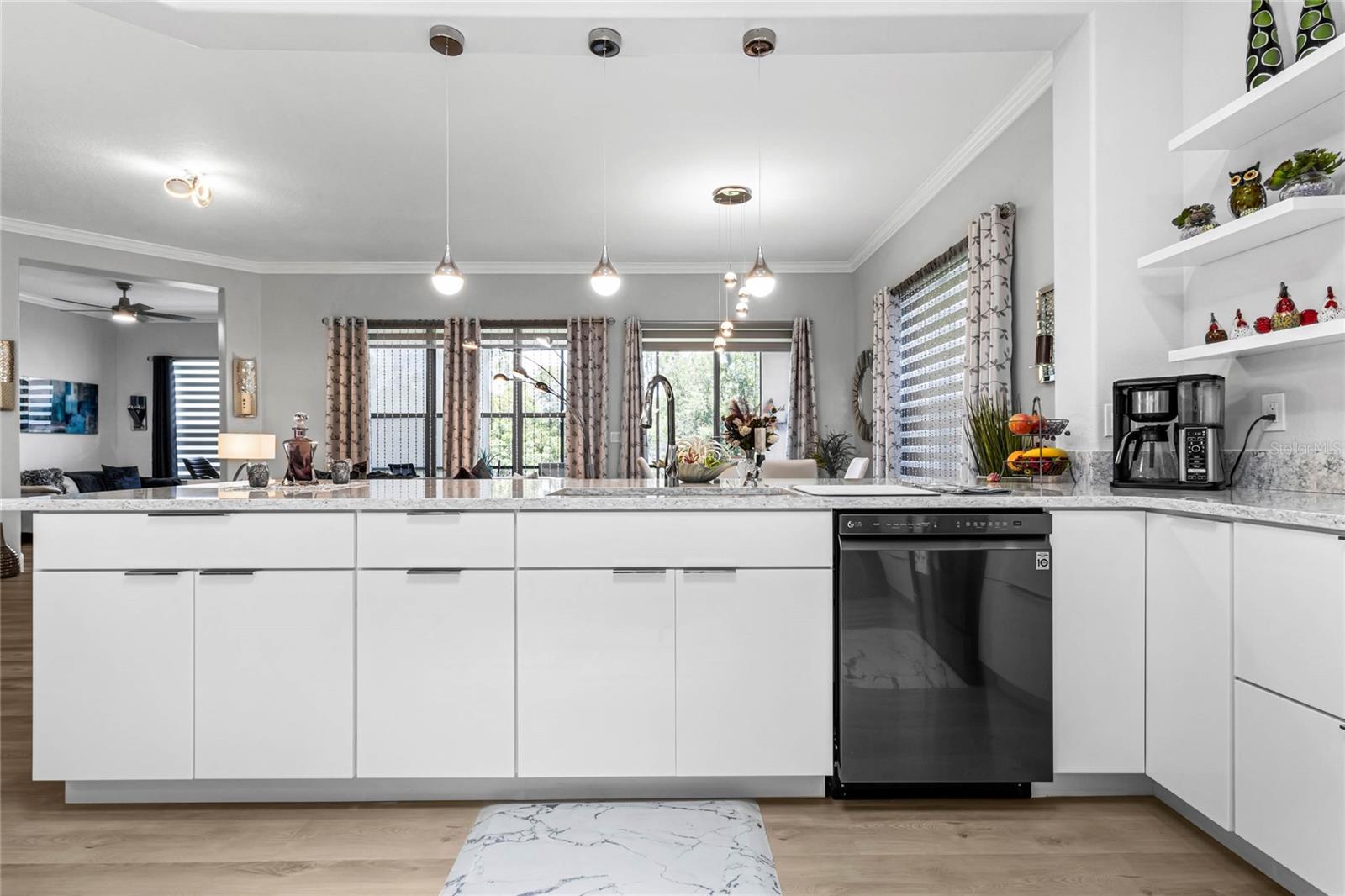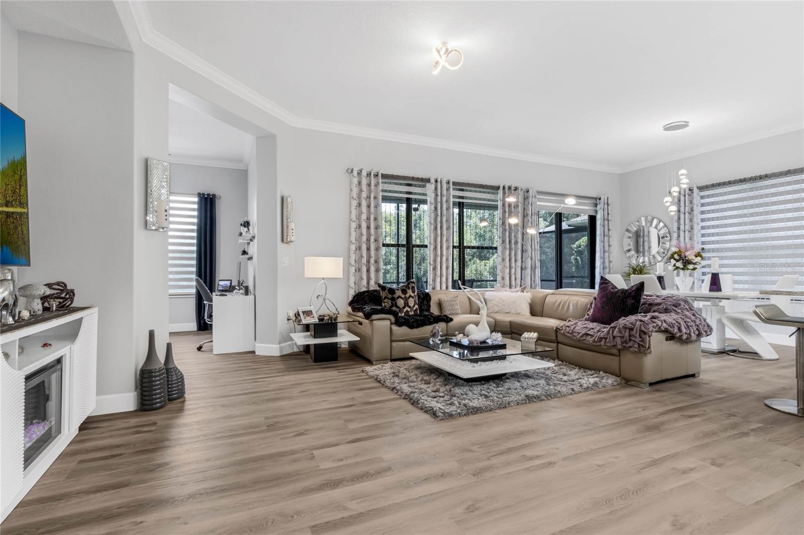 Welcome Home to this Meticulously kept, Bal Harbor Floorplan shows like a MODEL! Completely UPGRADED & MOVE IN READY. This home is located in one of Central Florida's Top 55+ Communities, SOLIVITA! This Gorgeous home features 2 BEDROOMS plus a separate MOTHER-IN-LAW Casita, a DEN, an open floorplan giving you plenty of space for entertaining! The brick paver driveway will lead you to the enchanting courtyard leading to the private mother in-law suite, large 8’ front door into the spacious foyer, located off the foyer, you will find the second bedroom, a guest bathroom, perfect for your guests to come and go. This home features a large gathering room at the heart of this home with brand new LVP flooring, Crown molding through-out, upgraded baseboards, sliding glass doors leading out to a roomy extended covered lanai. The kitchen has been completely remodeled! All new appliances, cabinets, counter tops, soft touch drawers, soft touch automatic open/close Cabinets, and is open to the gathering and dining room for effortless entertaining. The owner's suite is situated privately in the rear corner of the home and includes large shower with glass, and dual sink vanity. Rain gutters all around to assist with drainage. The large backyard has tons of space for your extended lanai or private pool! HVAC 2024. Roof 2024. ALL FURNITURE AVALIBLAE outside of contract. Solivita offers endless amenities including 14 heated pools, indoor pool & indoor walking track, state of the art fitness centers, pickleball courts, lighted tennis courts, golf, over 250+ clubs to join, community restaurants, and so much more! Only 30 minutes from Disney and all of Orlando’s major attractions! Convenient to shopping and major roadways. The HOA: * - maintains the LANDSCAPING and IRRIGATION systems in the common areas as well as at individual homesites. Provides security with gate guards and mobile patrols including the Polk County Sheriff. Provides residents with Fibre Optic Internet & TV cable service. **** Poinciana Lakes Plaza is a MAJOR NEW SHOPPING CENTER opening directly across from the Solivita Main Gate, It features Sprouts Grocery, TJ MAXX, Ross, Burlington, Rack Room Shoes, 5 Below, Utla, Outback, First Watch, 5 Guys, Urgent Care, Dentist, TD Bank, Petco, Hair cuttery plus MUCH MORE TO COME.
