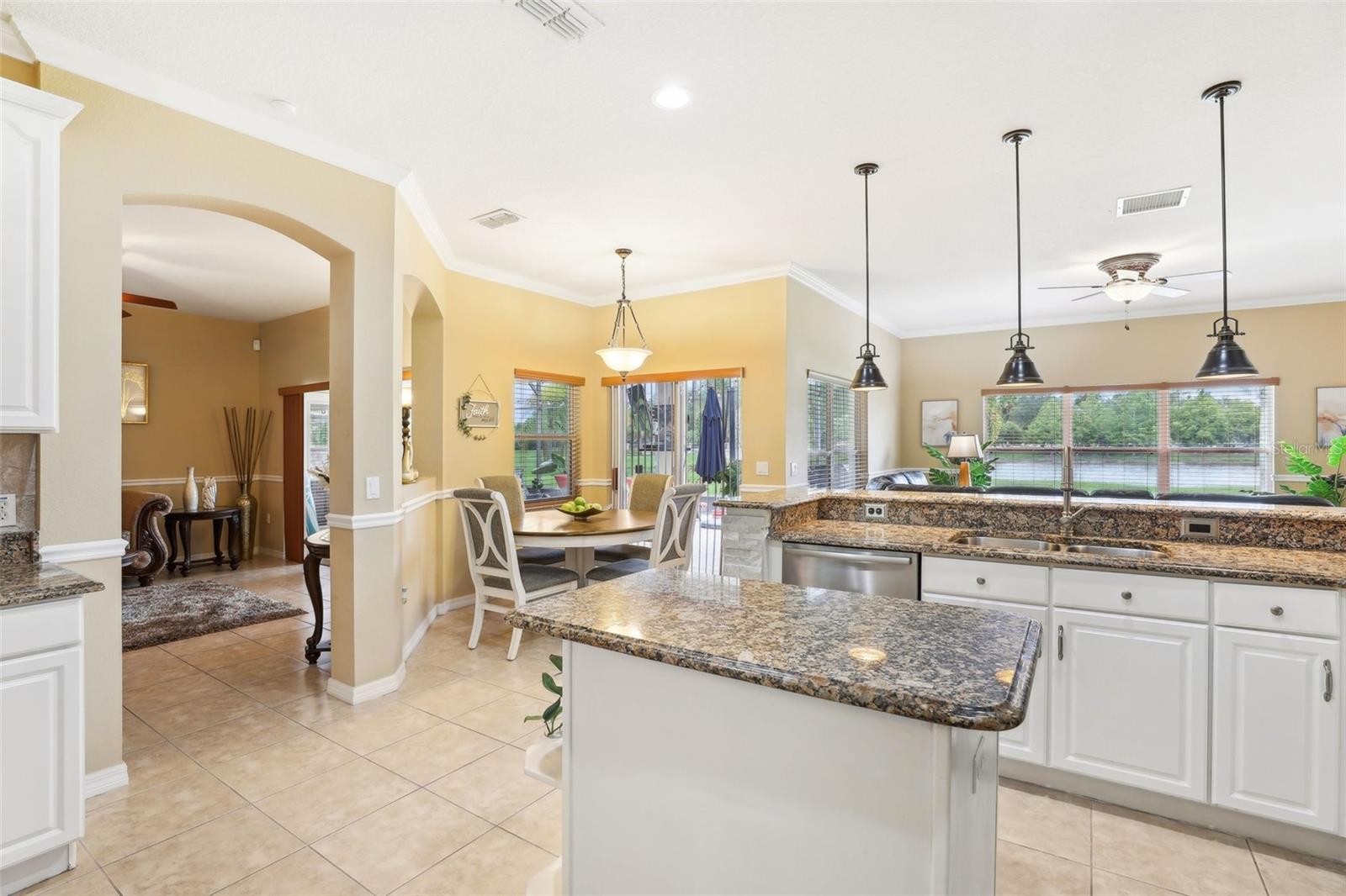 Waterfront, Beautifully maintained and upgraded home. 4 bedroom/3 bathroom home in the gated community of Isles of Bellalago. Beautifully maintained and upgraded home. Comes with a spacious traditional floorplan with formal living and dining spaces. Family room opens up to an oversized covered/screened tiled lanai with a jacuzzi hookup point and beautiful views. Spacious eat-in kitchen with granite counters, SS appliances and prep island. Primary bedroom features a walk in closet and deluxe ensuite with jacuzzi tub, dual vanities and separate shower. 3 remaining bedrooms are generously sized and share 2 more update bathrooms. Recent updates include NEW Water Heater, NEW AC 2021, NEW Tile Roof & Redesigned Landscaping. Isles of Bellalago offers 2 gate houses with 24/7 security, world class resort style amenities and Nature/Biking trails, Boat Docks, Boat Lifts, Championship Fishing, Canal and Lake Access. All in a convenient location close to shopping, dining and all that Orlando has to offer. Check out the 3D tour online and schedule a private viewing today!Seller is willing to consider a buyer concession if included with an offer.