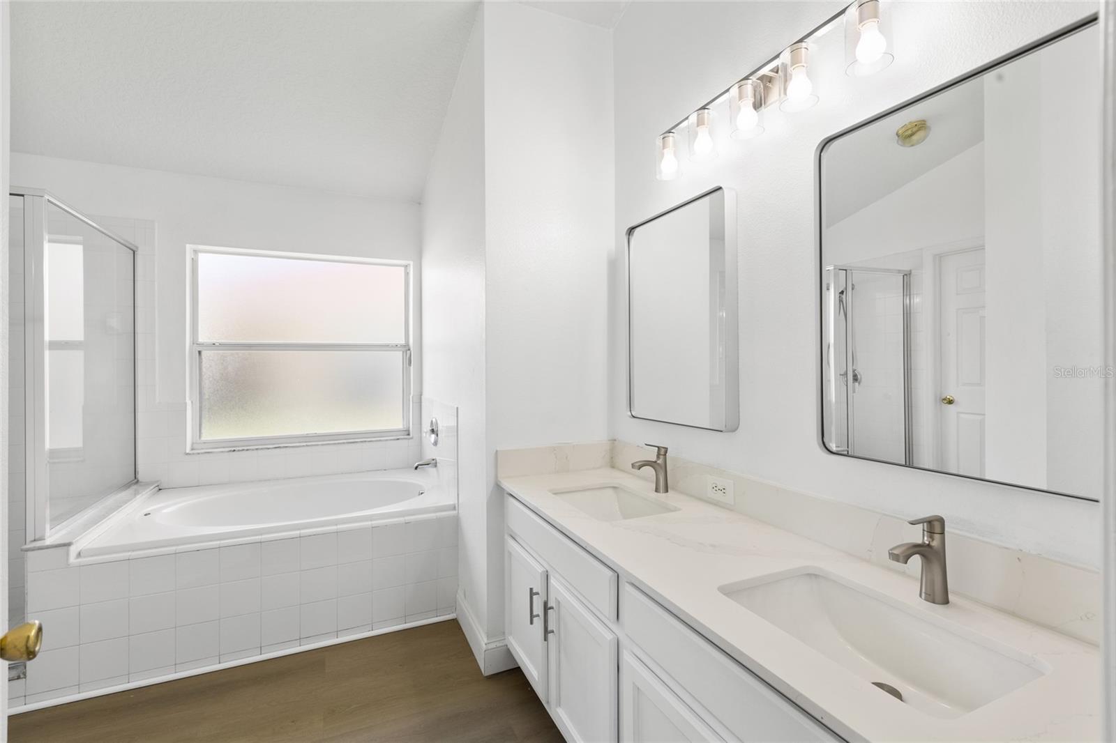 Step into this stunningly renovated 4 bed, 2 bath oasis in Turnberry Reserve, moments from Lake Nona Medical City. With its airy split plan and soaring ceilings, this home radiates a bright, welcoming vibe. Discover sleek new laminate flooring throughout, marrying style with easy upkeep. The kitchen shines with fresh counters, a chic backsplash, and stainless steel appliances, a true centerpiece. Luxuriate in the partially renovated bathrooms, boasting ample counter space and a spa-like master bath with a separate shower and garden tub. Outside, the expansive backyard beckons for gatherings under the Florida sun. Enjoy top-notch amenities: pool, parks, basketball court, dog park, and clubhouse, ensuring fun for all. Located near Austin-Tindall Sports Complex and STEM High School, this home boasts top-rated schools, shopping, and dining. Easy access to major highways links you to Medical City, Orlando Airport, beaches, and theme parks. Plus, a brand-new roof prior to closing will add a peace of mind. Don’t miss this chance to embrace Central Florida living at its finest. Schedule your tour now!