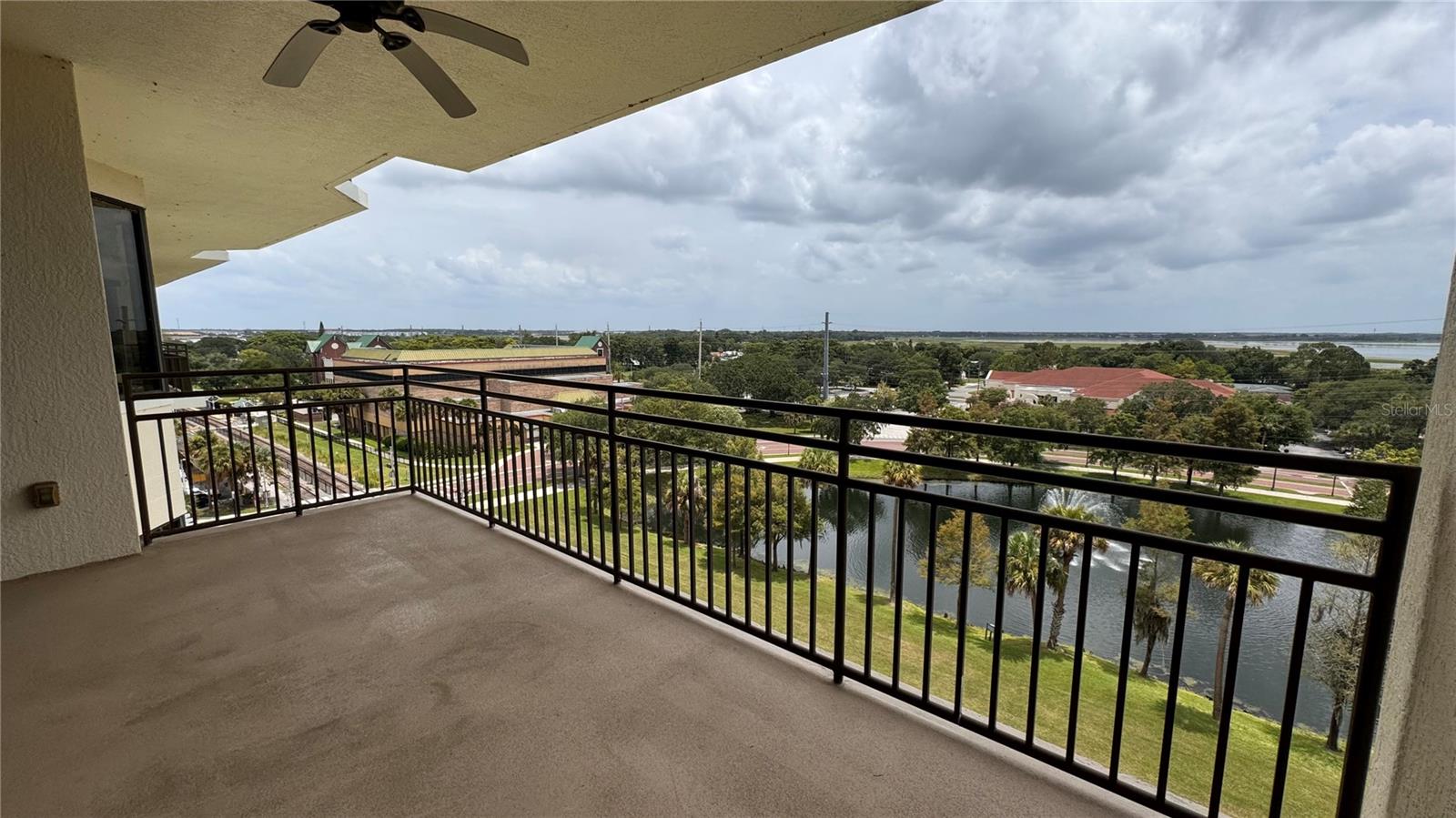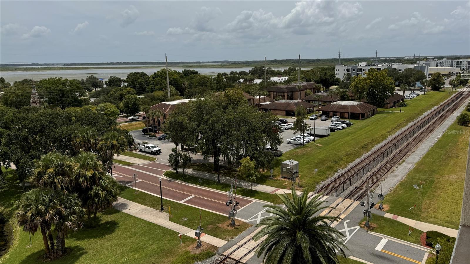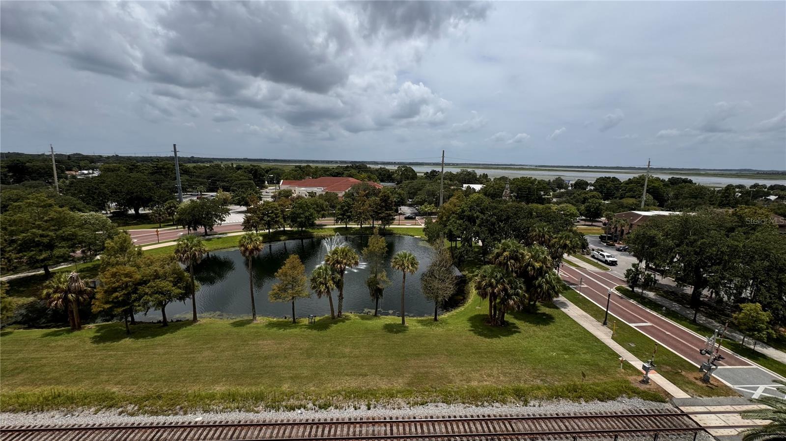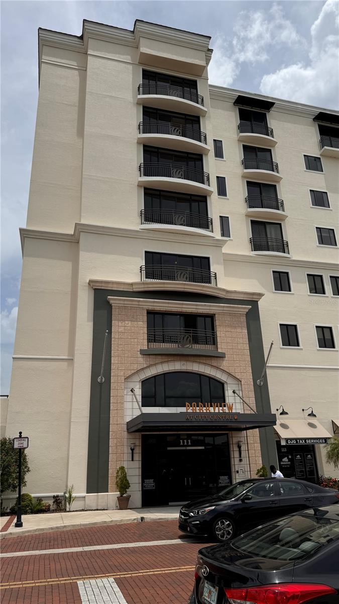 This could be your next home! Ready to move in. Condo Living at its finest! Spacious and luxurious. Nothing in the area compares with this modern,concrete and block,Hurricane 5 rated, with secure doors and elevator access. The exterior was fully weatherproofed and sealed in 2021 beginning with the roof, all walkways and parking areas, and all walls from the top to the street. The new color is awesome making this Gorgeous building shine. Not only was the building updated, but the condo has been painted, new luxury, commercial grade, vinyl plank flooring throughout, new light fixtures throughout, new ceiling fans, new garbage disposal. This condo is top notch. There are only 13 homes on the two top floors of this multi use building. This is the only one available since 2022. Washer and dryer included. Extra storage space included in deed along with the two private parking spaces in secure garage. Trash chute at the end of the covered hallway. Beautiful million dollar views of Lake Toho, the fountain, library and the Lakeside Park from your private balcony. Best seat in the house for fireworks, space launches and rainbows! Walking paths and community events offered in the park. If you travel to work, Sunrail and Amtrak are right beside the building to whisk you to and from work without hassle. No more mowing, water and sewer bills are included in Condo Fee. Work from home? There is a den just off the living room. Located in downtown Kissimmee, with a large variety of restaurants to choose from, local retail businesses are in the building on the lower floors as well as in town. Great location that is close to malls and amusement parks. Make your appointment now.