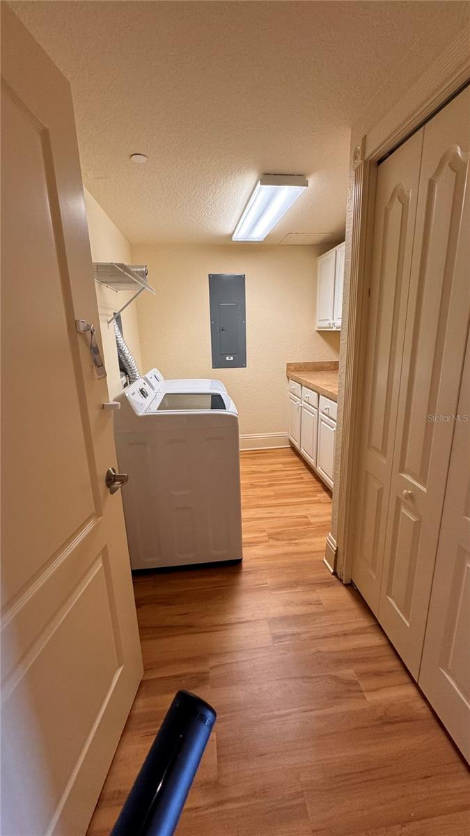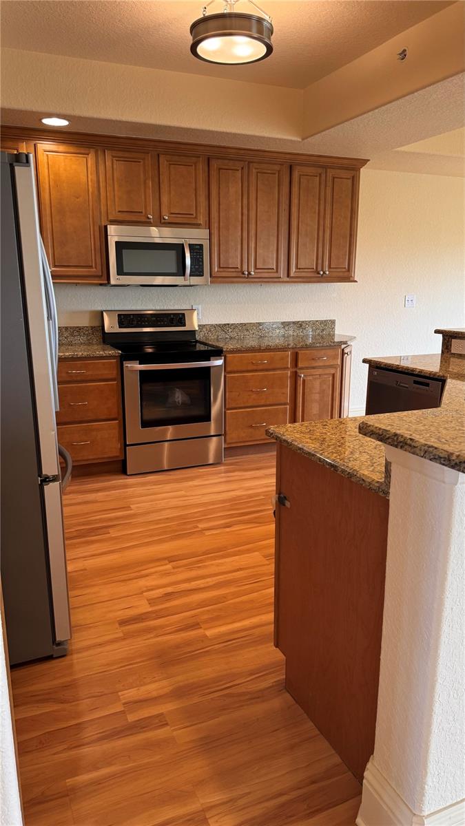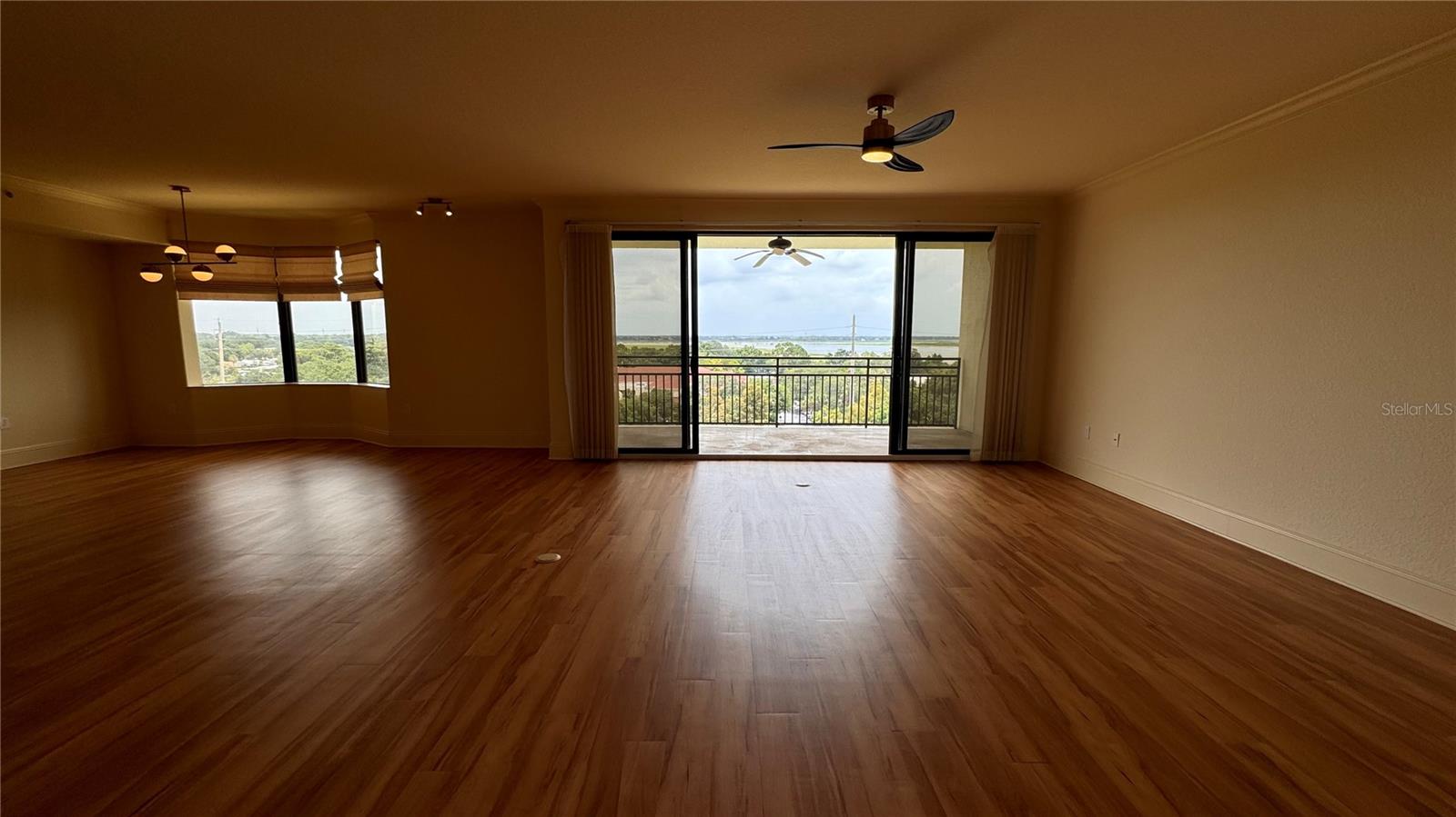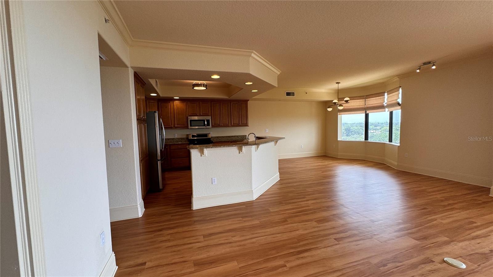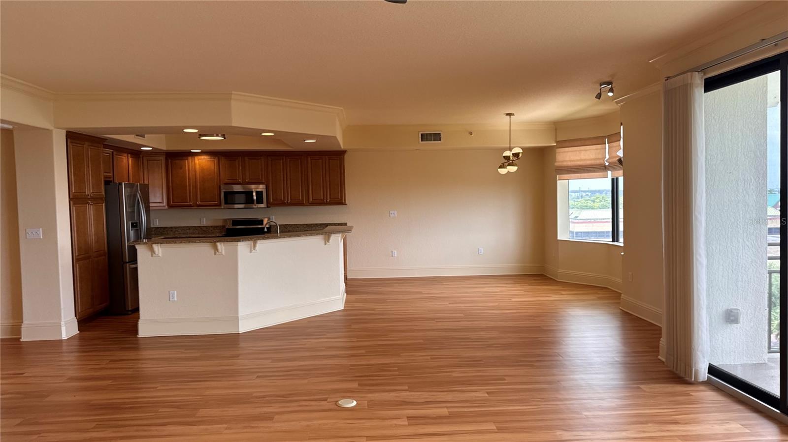 This could be your next home! Ready to move in. Condo Living at its finest! Spacious and luxurious. Nothing in the area compares with this modern,concrete and block,Hurricane 5 rated, with secure doors and elevator access. The exterior was fully weatherproofed and sealed in 2021 beginning with the roof, all walkways and parking areas, and all walls from the top to the street. The new color is awesome making this Gorgeous building shine. Not only was the building updated, but the condo has been painted, new luxury, commercial grade, vinyl plank flooring throughout, new light fixtures throughout, new ceiling fans, new garbage disposal. This condo is top notch. There are only 13 homes on the two top floors of this multi use building. This is the only one available since 2022. Washer and dryer included. Extra storage space included in deed along with the two private parking spaces in secure garage. Trash chute at the end of the covered hallway. Beautiful million dollar views of Lake Toho, the fountain, library and the Lakeside Park from your private balcony. Best seat in the house for fireworks, space launches and rainbows! Walking paths and community events offered in the park. If you travel to work, Sunrail and Amtrak are right beside the building to whisk you to and from work without hassle. No more mowing, water and sewer bills are included in Condo Fee. Work from home? There is a den just off the living room. Located in downtown Kissimmee, with a large variety of restaurants to choose from, local retail businesses are in the building on the lower floors as well as in town. Great location that is close to malls and amusement parks. Make your appointment now.