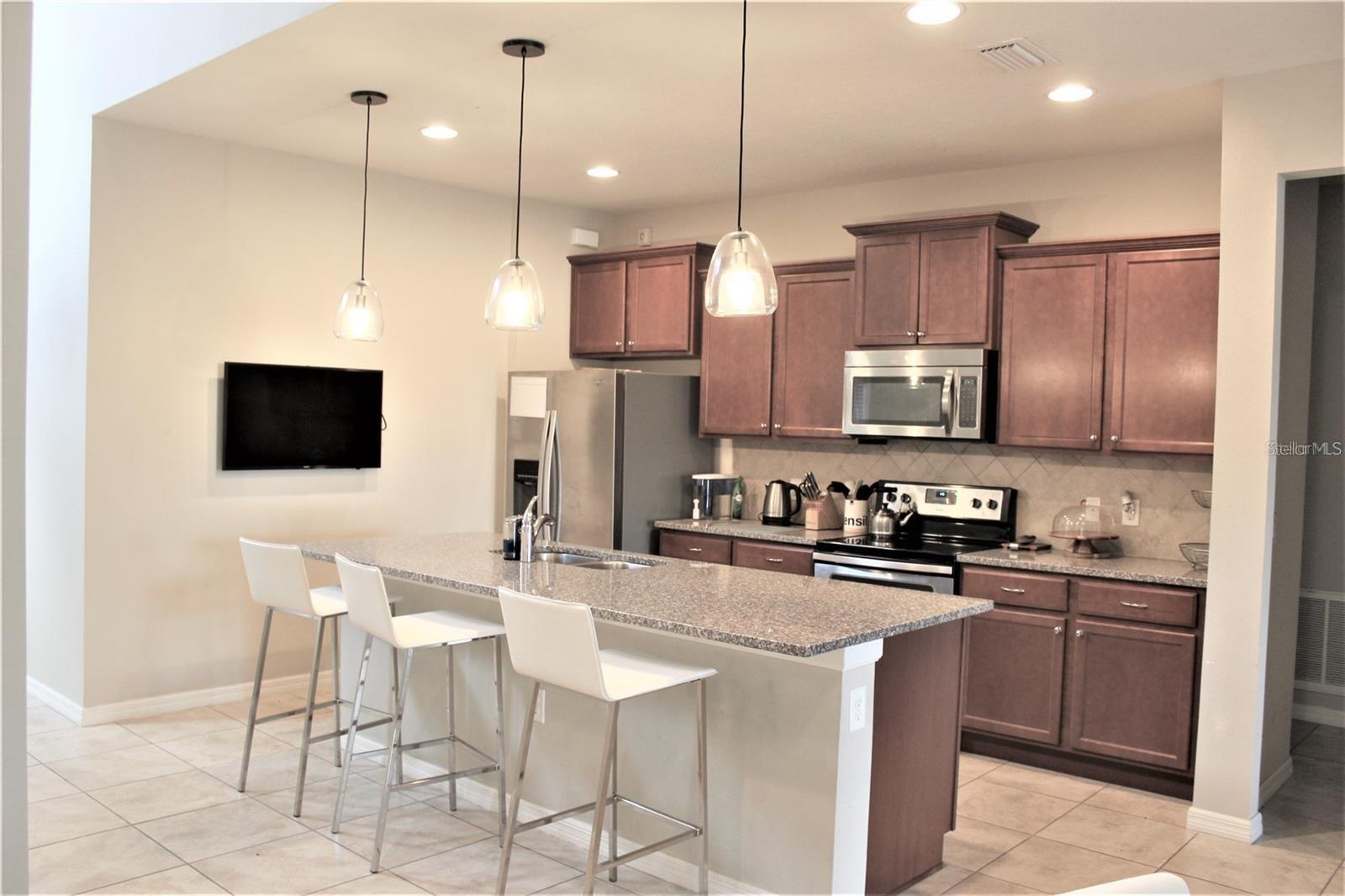 Beautifully appointed and fully furnished 6 bedroom 4.5 bath home located in the desirable, guard gated Windsor at Westside community. Interior features include 2 primary bedrooms, upgraded cabinets, spacious rooms, and substantial loft with ceramic tile and carpet throughout. Enjoy the sun or entertain guests in your screen enclosed lanai, featuring a private pool and spa. Community amenities include resort style living with lazy river, waterslide, water playground, fitness center, tiki bar, volleyball, and video arcade. Conveniently located near theme parks, shopping, and dining.