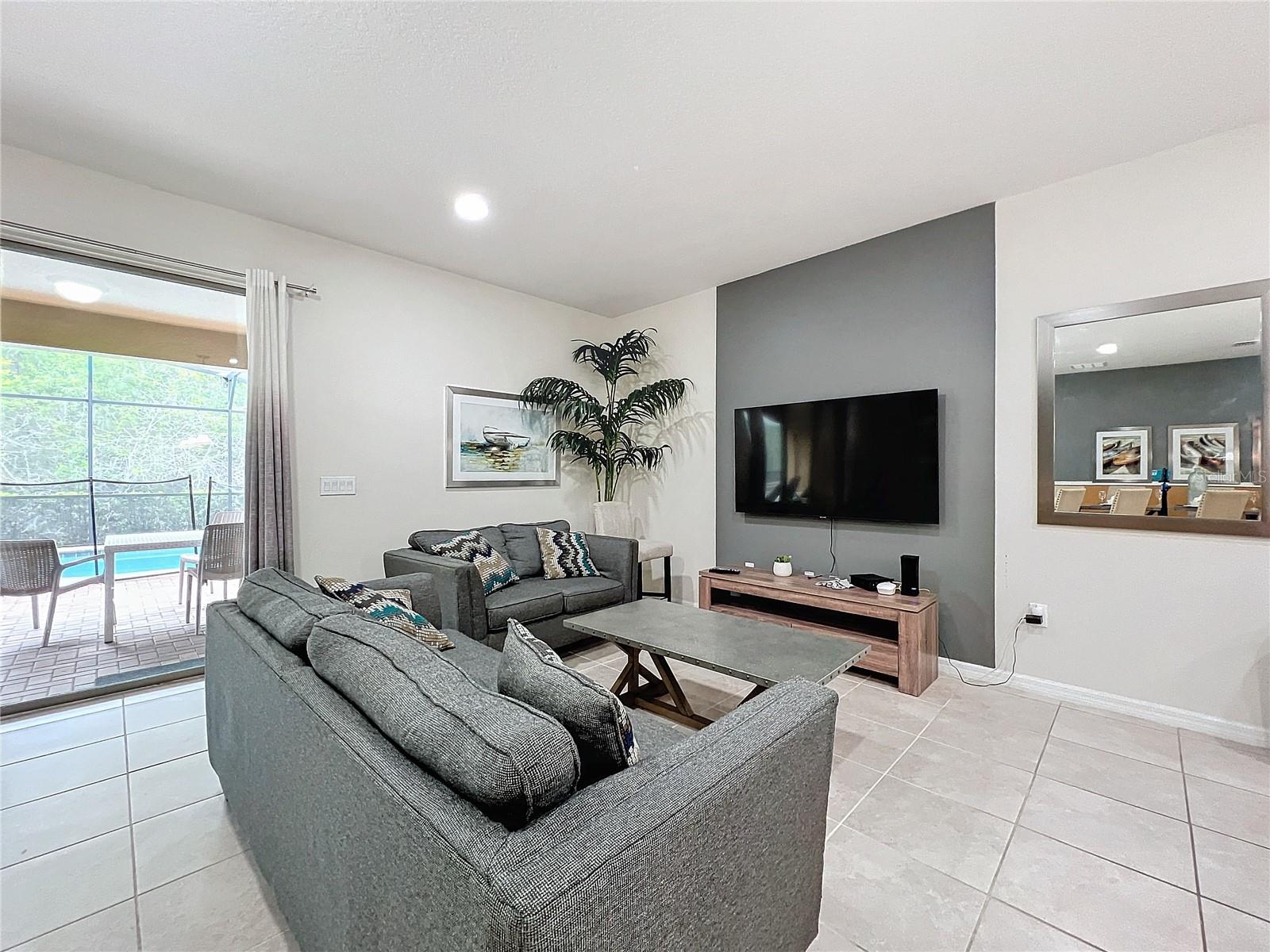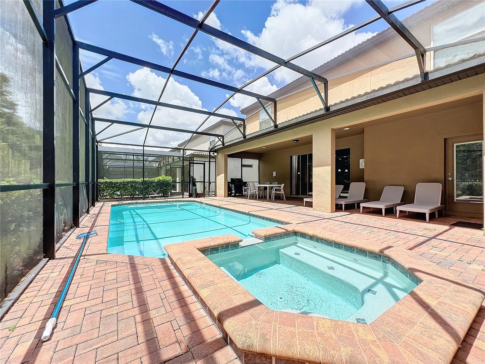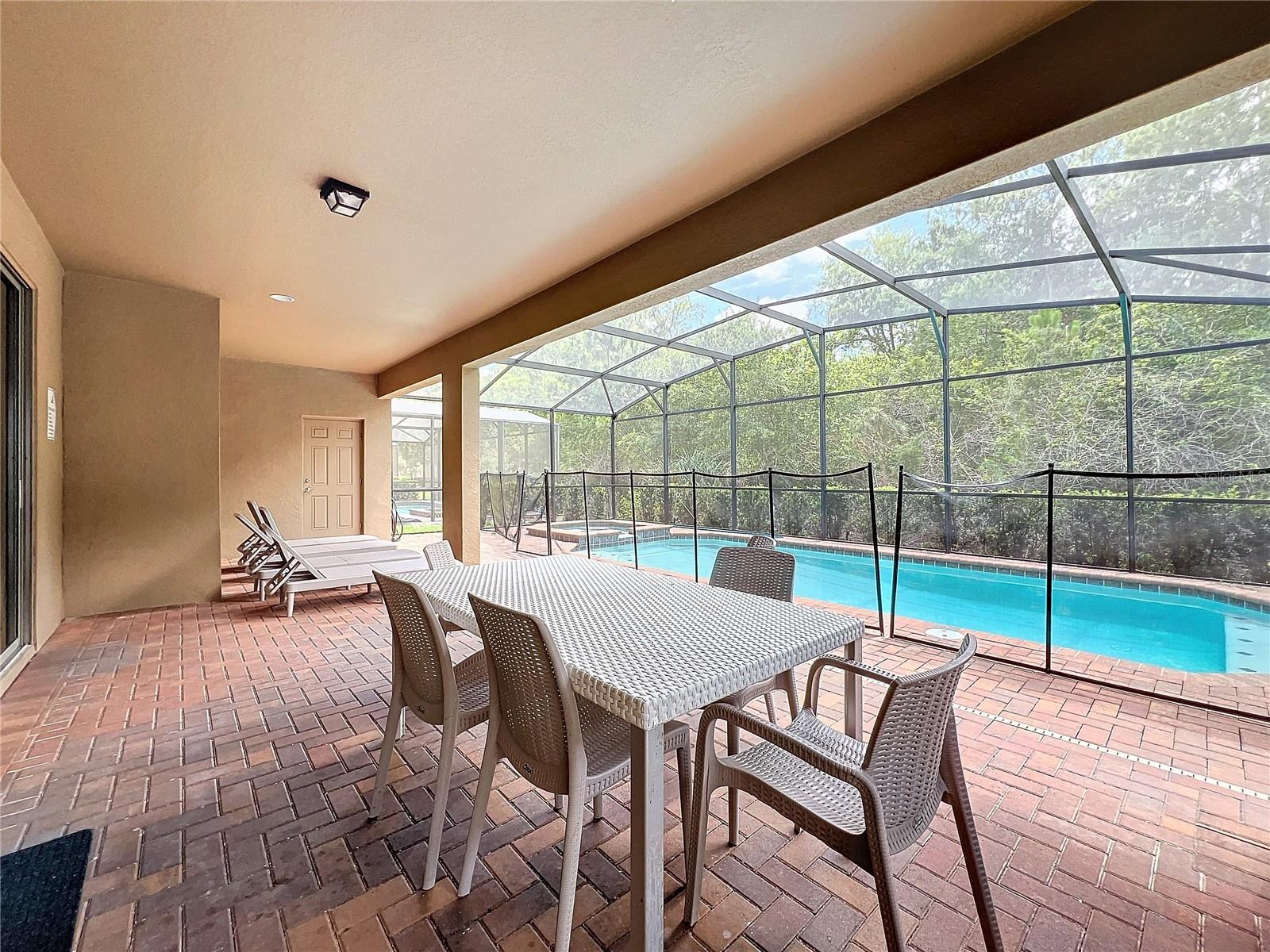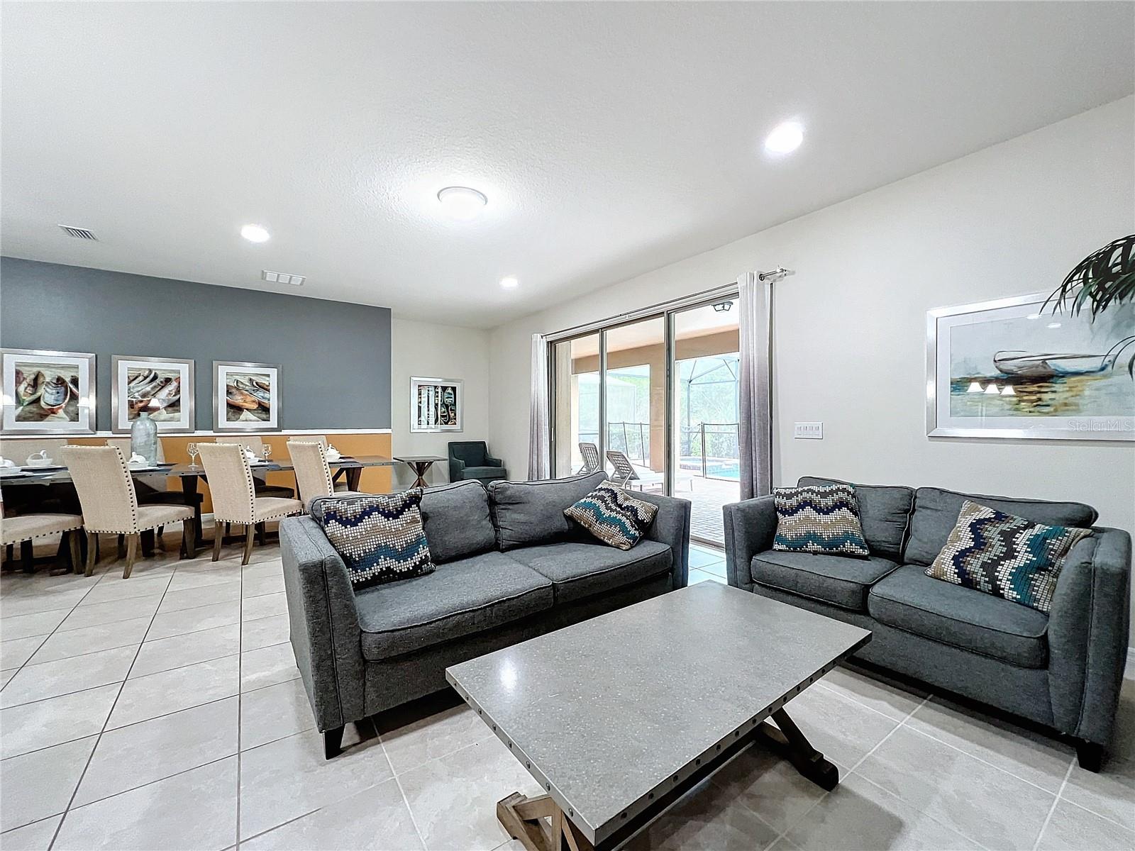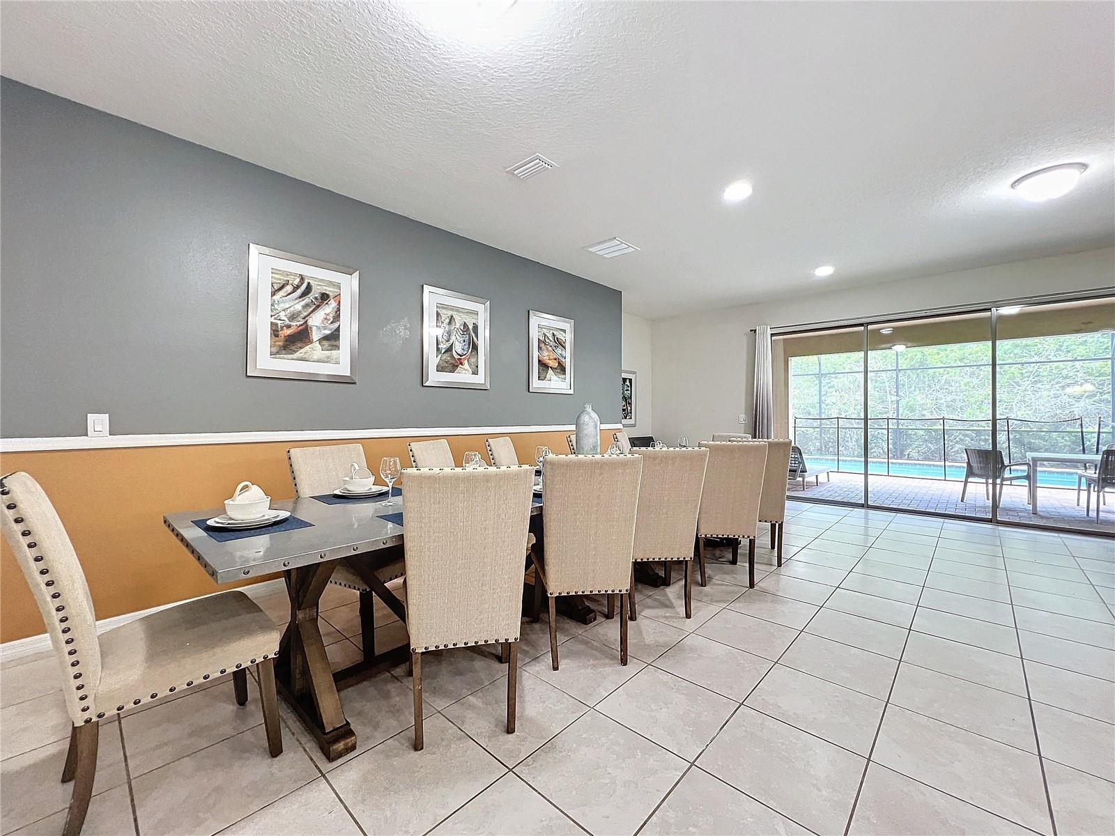 Prepare to be amazed by this exquisite 9-bedroom, 6-bathroom residence nestled in the highly sought-after Windsor at Westside, one of Central Florida's premier vacation resort communities. Situated on a stunning conservation lot with an east-facing pool deck, this home boasts a spacious open floor plan ideal for both entertaining guests and hosting large family gatherings.Inside, you'll find a beautifully appointed family/dining room combination, complemented by a designer kitchen featuring 42" dark wood cabinets, stainless steel appliances, stone countertops, and a charming breakfast bar. The expansive loft area offers additional entertainment with a pool table, air hockey table, and a cozy lounge space.Outdoors, enjoy the expansive heated pool and spa set amidst a brick paver deck, along with a generous covered lanai, perfect for relaxing after a day of fun. The convenience of a large master bedroom on the first floor adds to the appeal.Windsor at Westside is a gated community mere minutes from Disney World, offering exceptional amenities including a resort-style clubhouse, heated pool and spa, lazy river, water playground, fitness center, on-site store, sand volleyball, tennis and basketball courts, games room, and a restaurant and bar. Discover the ultimate in vacation living just moments from all the renowned attractions of Orlando!