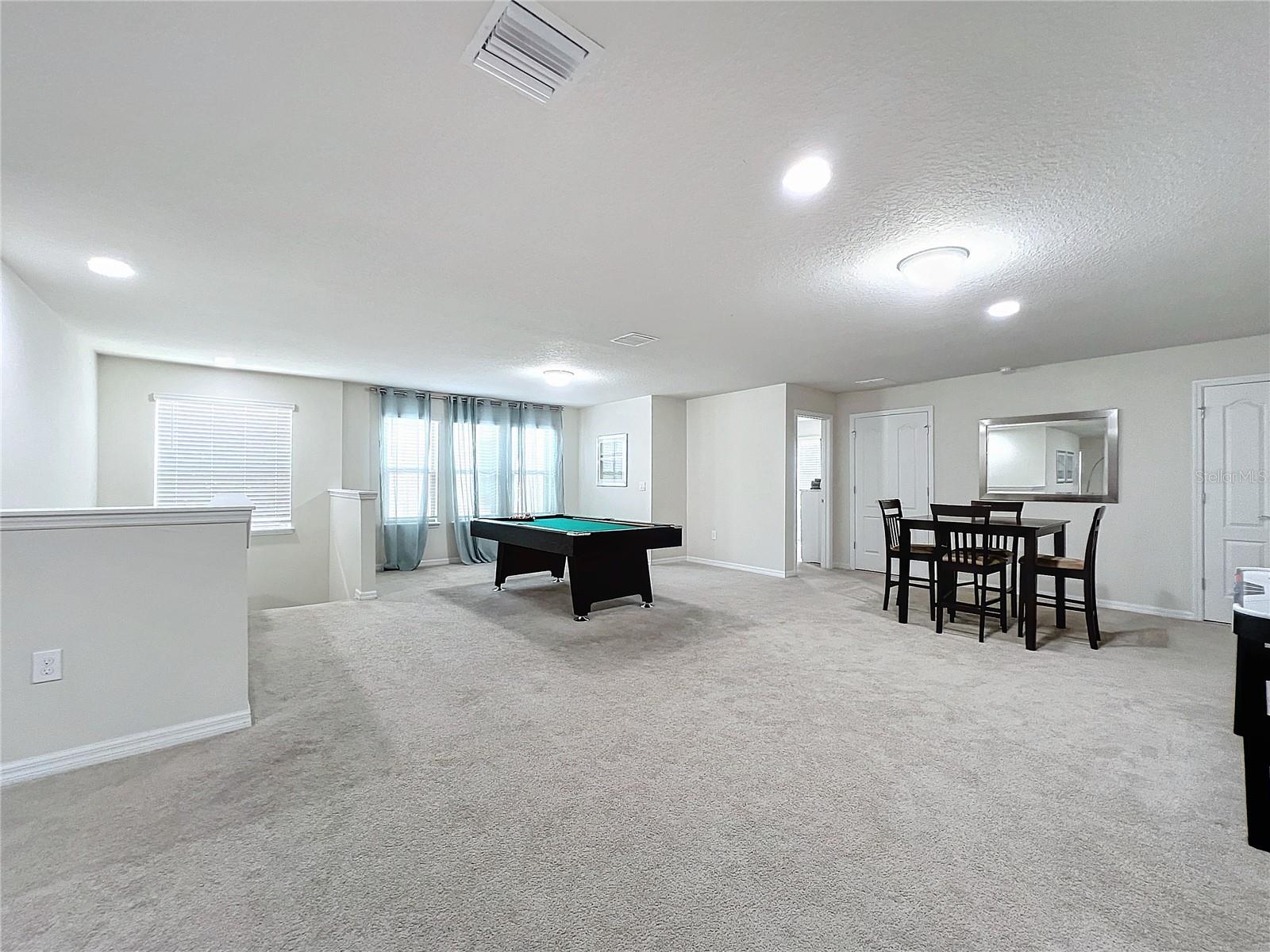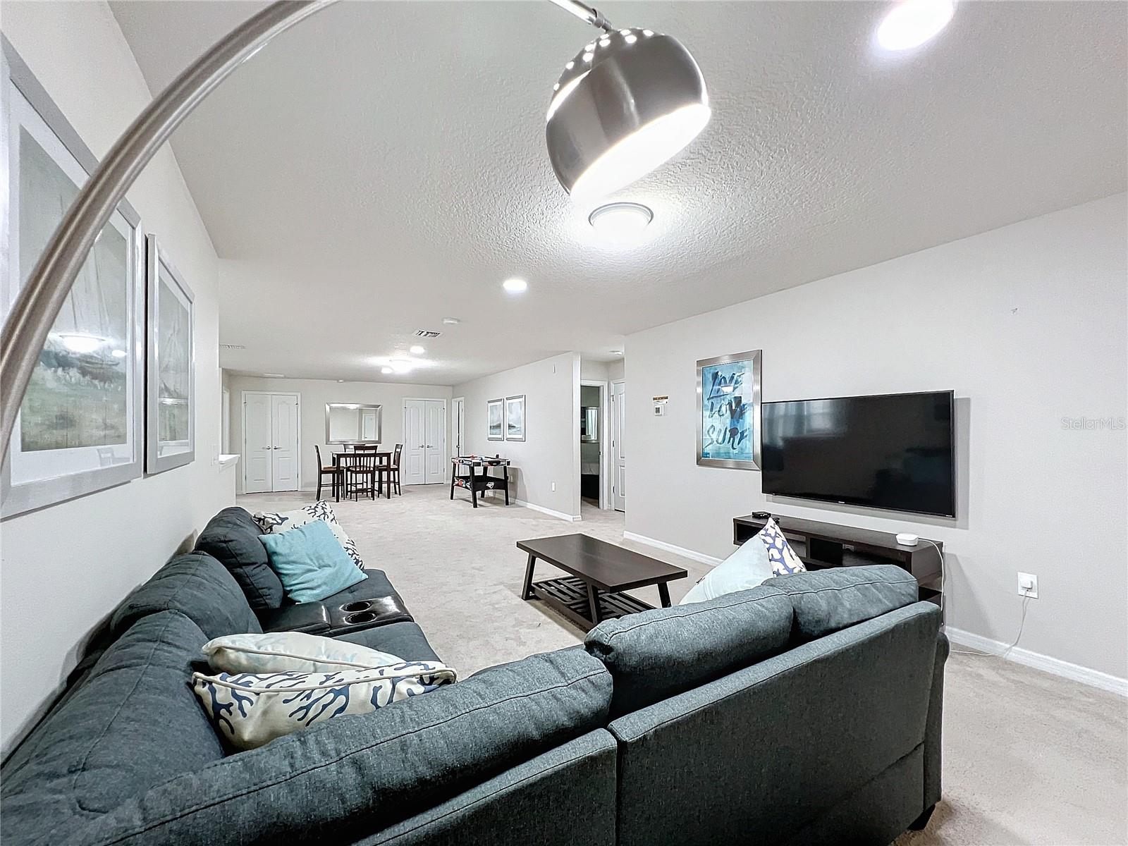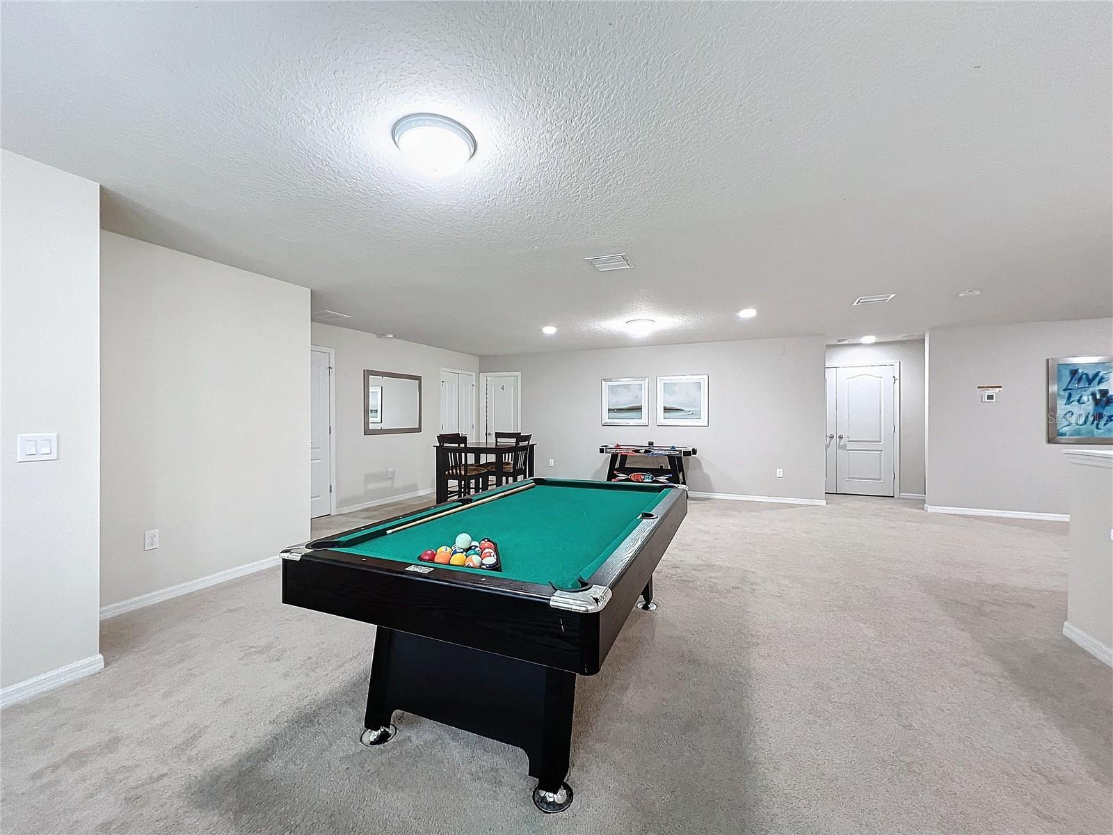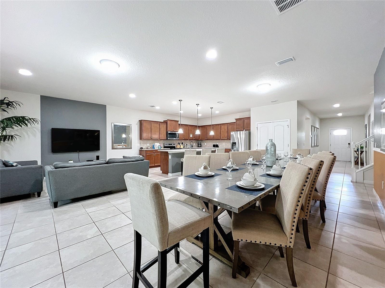 Prepare to be amazed by this exquisite 9-bedroom, 6-bathroom residence nestled in the highly sought-after Windsor at Westside, one of Central Florida's premier vacation resort communities. Situated on a stunning conservation lot with an east-facing pool deck, this home boasts a spacious open floor plan ideal for both entertaining guests and hosting large family gatherings.Inside, you'll find a beautifully appointed family/dining room combination, complemented by a designer kitchen featuring 42" dark wood cabinets, stainless steel appliances, stone countertops, and a charming breakfast bar. The expansive loft area offers additional entertainment with a pool table, air hockey table, and a cozy lounge space.Outdoors, enjoy the expansive heated pool and spa set amidst a brick paver deck, along with a generous covered lanai, perfect for relaxing after a day of fun. The convenience of a large master bedroom on the first floor adds to the appeal.Windsor at Westside is a gated community mere minutes from Disney World, offering exceptional amenities including a resort-style clubhouse, heated pool and spa, lazy river, water playground, fitness center, on-site store, sand volleyball, tennis and basketball courts, games room, and a restaurant and bar. Discover the ultimate in vacation living just moments from all the renowned attractions of Orlando!