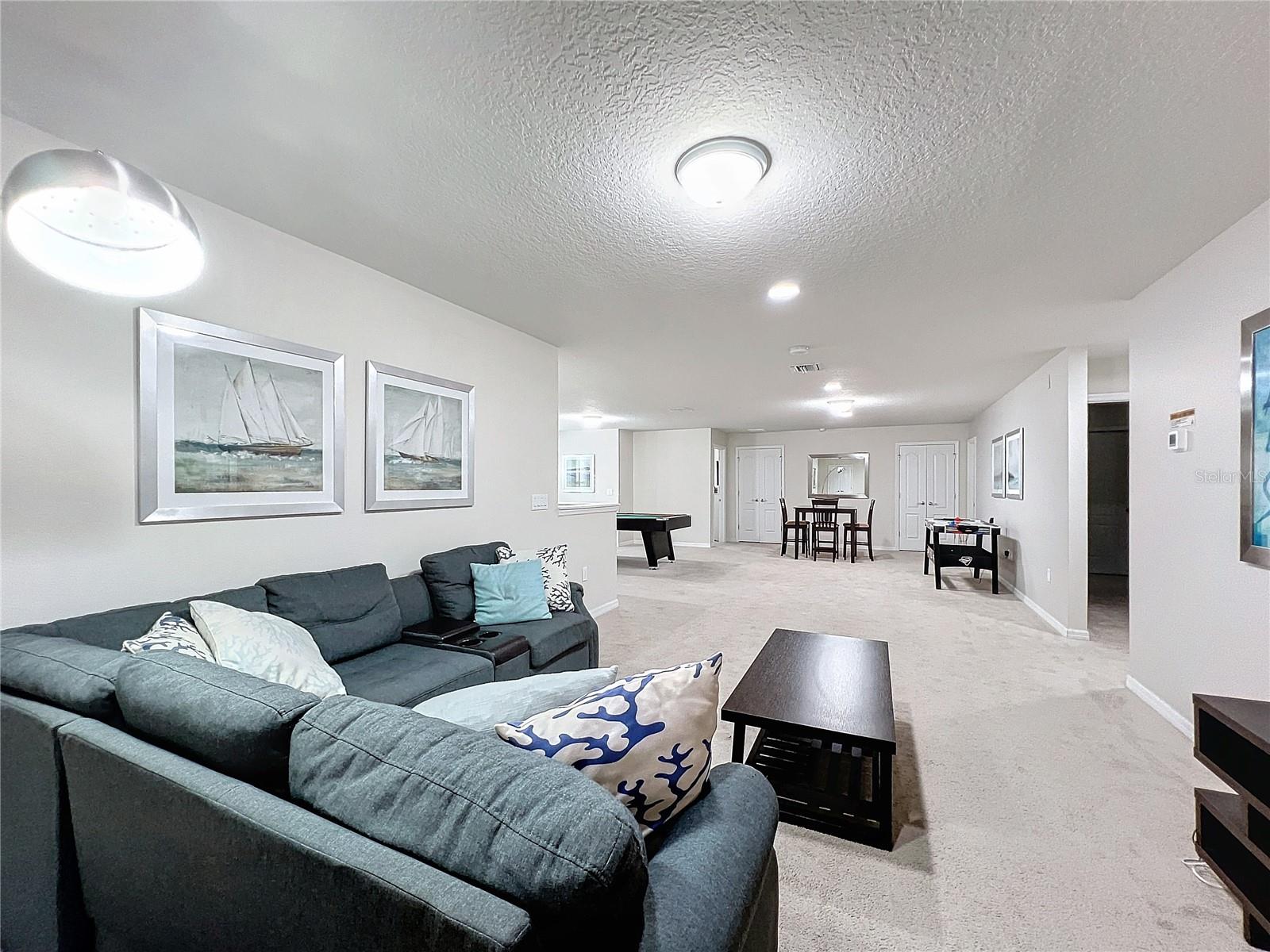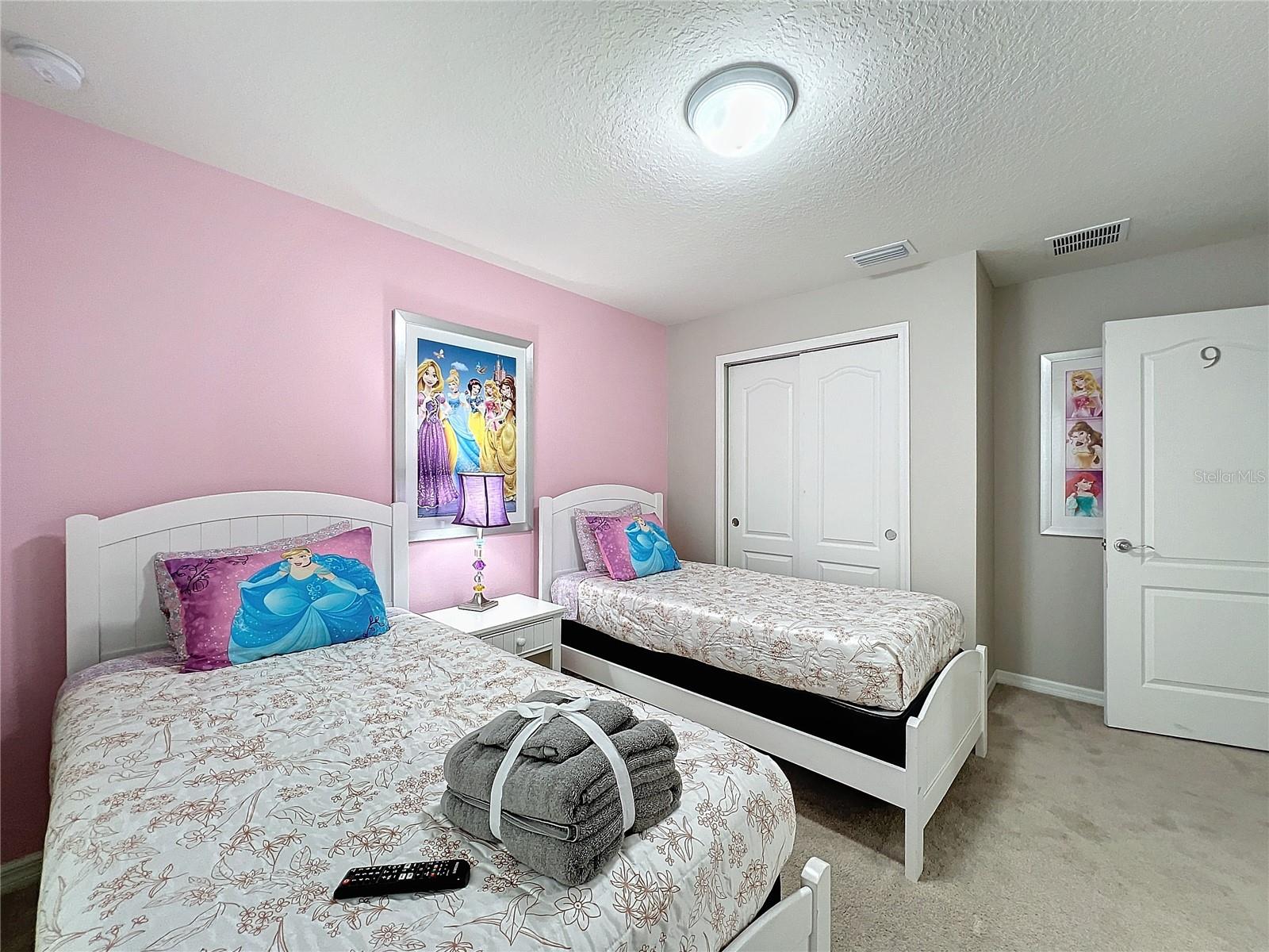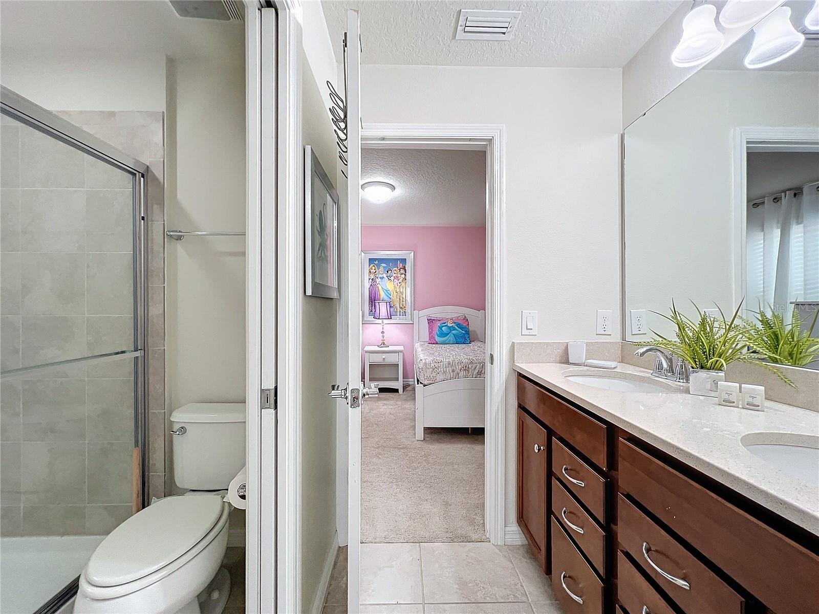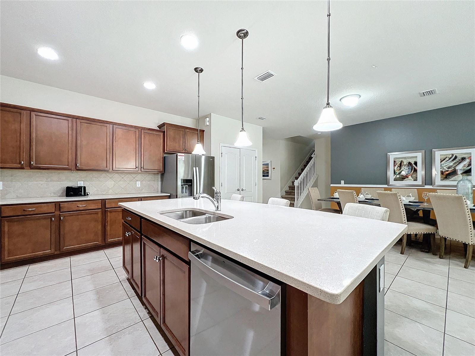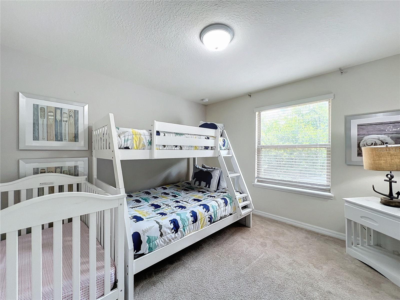 Prepare to be amazed by this exquisite 9-bedroom, 6-bathroom residence nestled in the highly sought-after Windsor at Westside, one of Central Florida's premier vacation resort communities. Situated on a stunning conservation lot with an east-facing pool deck, this home boasts a spacious open floor plan ideal for both entertaining guests and hosting large family gatherings.Inside, you'll find a beautifully appointed family/dining room combination, complemented by a designer kitchen featuring 42" dark wood cabinets, stainless steel appliances, stone countertops, and a charming breakfast bar. The expansive loft area offers additional entertainment with a pool table, air hockey table, and a cozy lounge space.Outdoors, enjoy the expansive heated pool and spa set amidst a brick paver deck, along with a generous covered lanai, perfect for relaxing after a day of fun. The convenience of a large master bedroom on the first floor adds to the appeal.Windsor at Westside is a gated community mere minutes from Disney World, offering exceptional amenities including a resort-style clubhouse, heated pool and spa, lazy river, water playground, fitness center, on-site store, sand volleyball, tennis and basketball courts, games room, and a restaurant and bar. Discover the ultimate in vacation living just moments from all the renowned attractions of Orlando!
