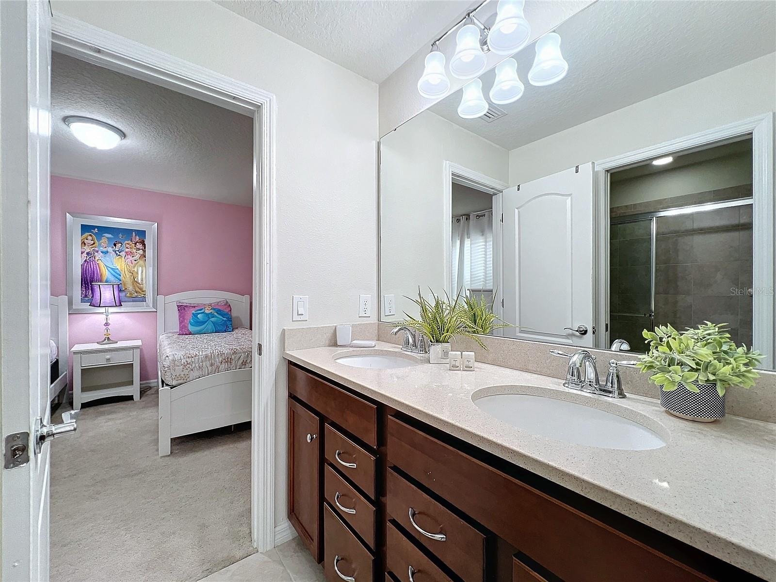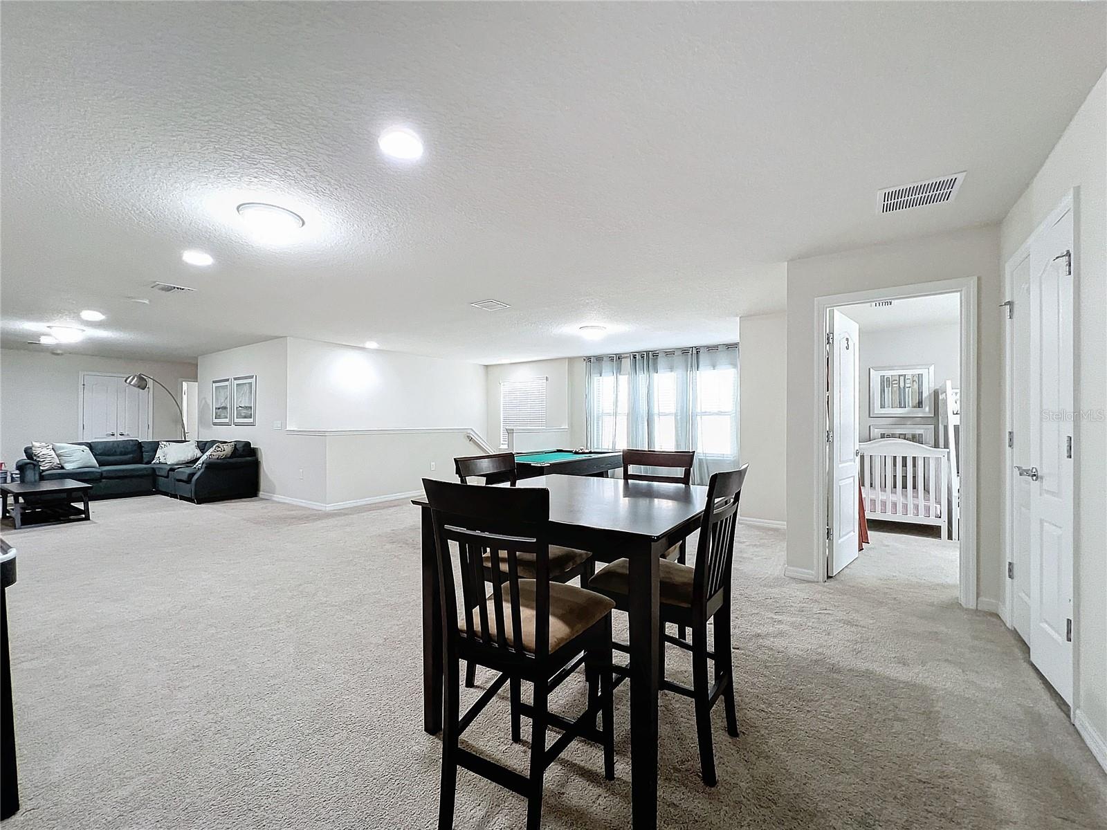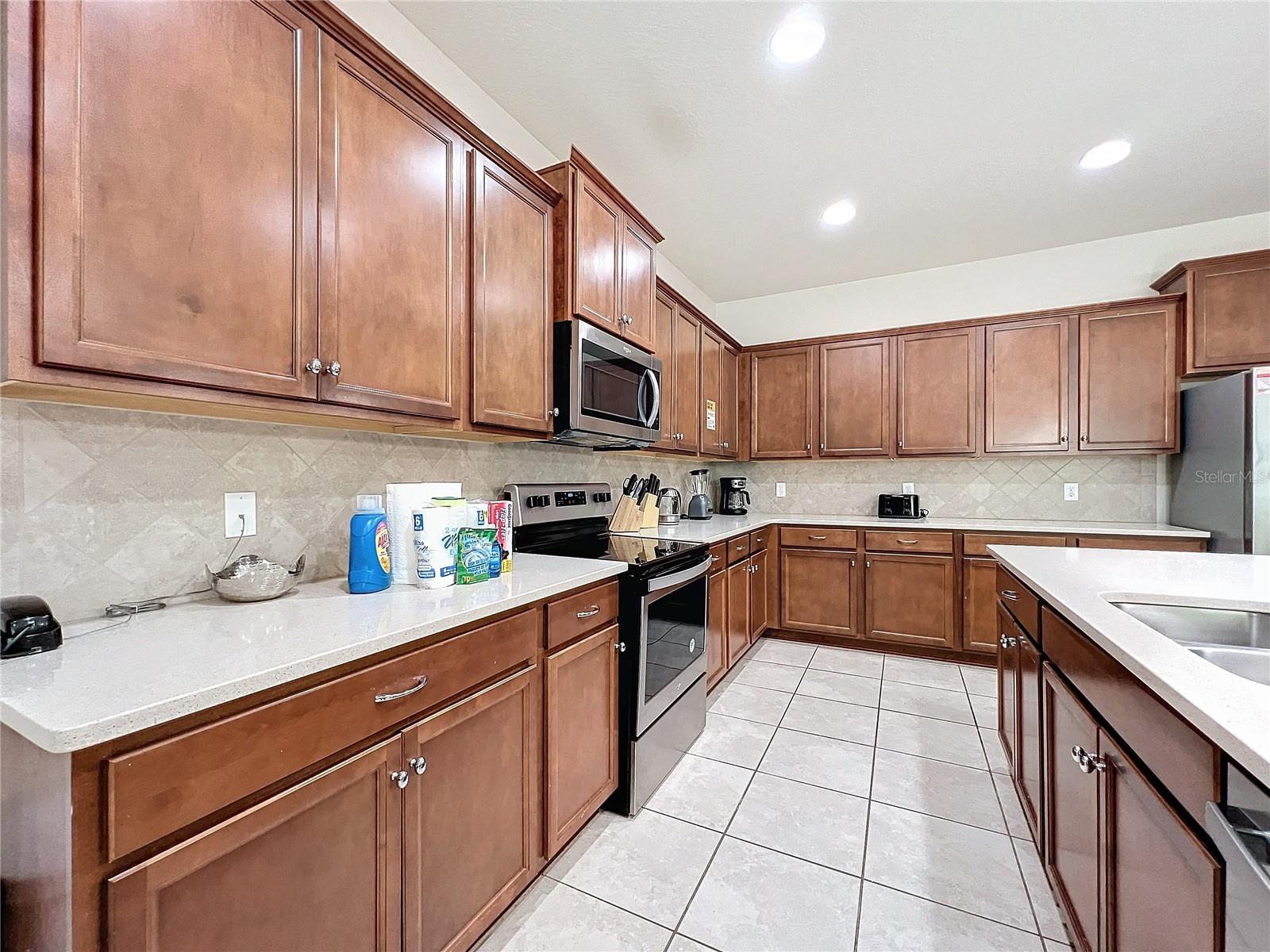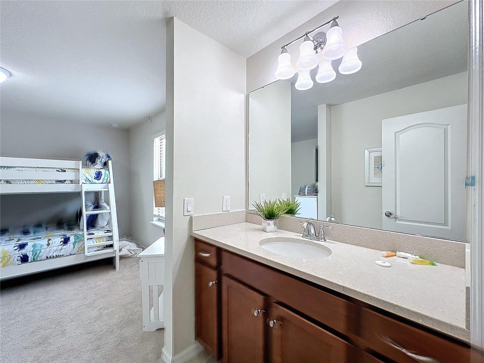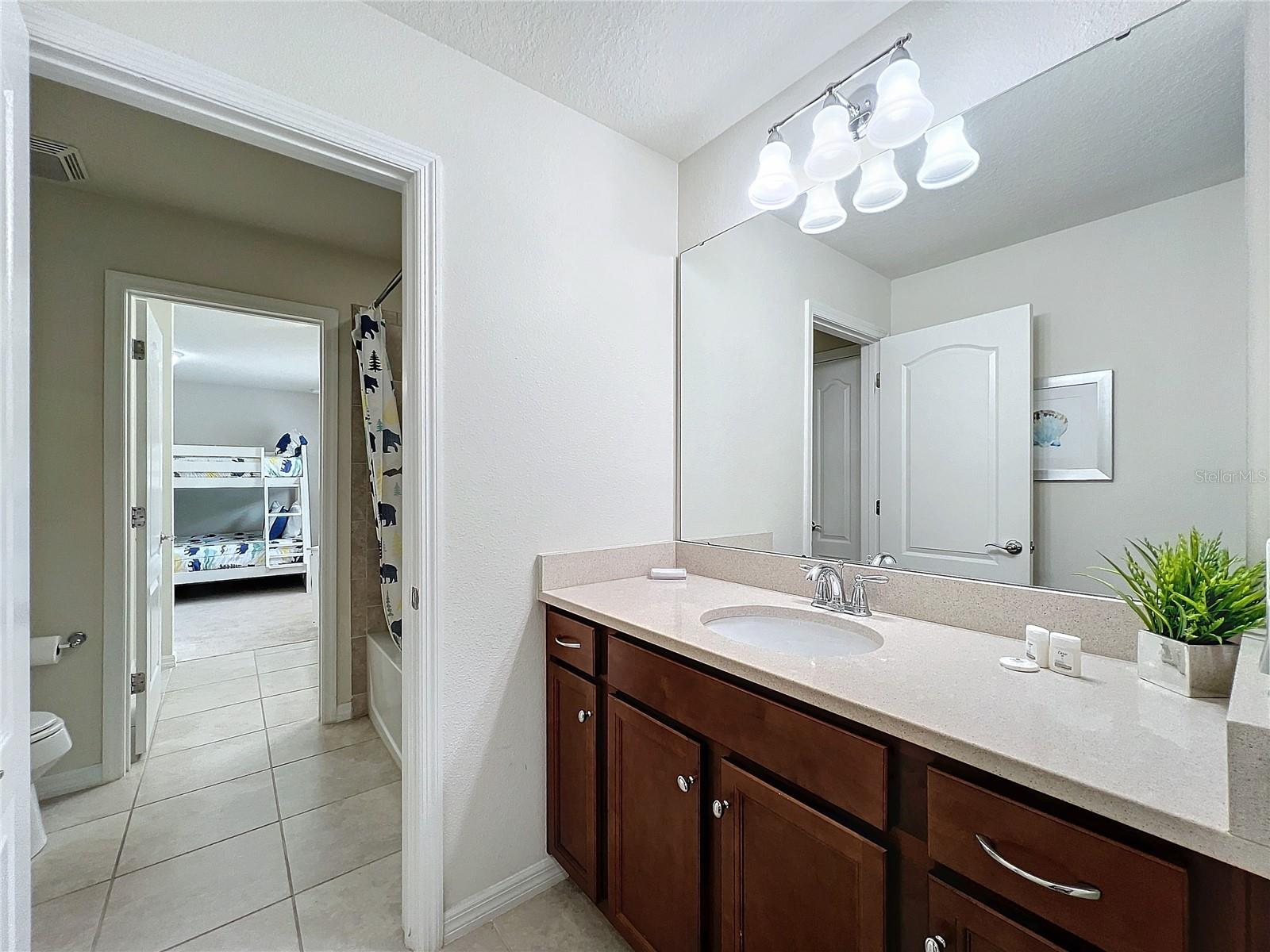 Prepare to be amazed by this exquisite 9-bedroom, 6-bathroom residence nestled in the highly sought-after Windsor at Westside, one of Central Florida's premier vacation resort communities. Situated on a stunning conservation lot with an east-facing pool deck, this home boasts a spacious open floor plan ideal for both entertaining guests and hosting large family gatherings.Inside, you'll find a beautifully appointed family/dining room combination, complemented by a designer kitchen featuring 42" dark wood cabinets, stainless steel appliances, stone countertops, and a charming breakfast bar. The expansive loft area offers additional entertainment with a pool table, air hockey table, and a cozy lounge space.Outdoors, enjoy the expansive heated pool and spa set amidst a brick paver deck, along with a generous covered lanai, perfect for relaxing after a day of fun. The convenience of a large master bedroom on the first floor adds to the appeal.Windsor at Westside is a gated community mere minutes from Disney World, offering exceptional amenities including a resort-style clubhouse, heated pool and spa, lazy river, water playground, fitness center, on-site store, sand volleyball, tennis and basketball courts, games room, and a restaurant and bar. Discover the ultimate in vacation living just moments from all the renowned attractions of Orlando!