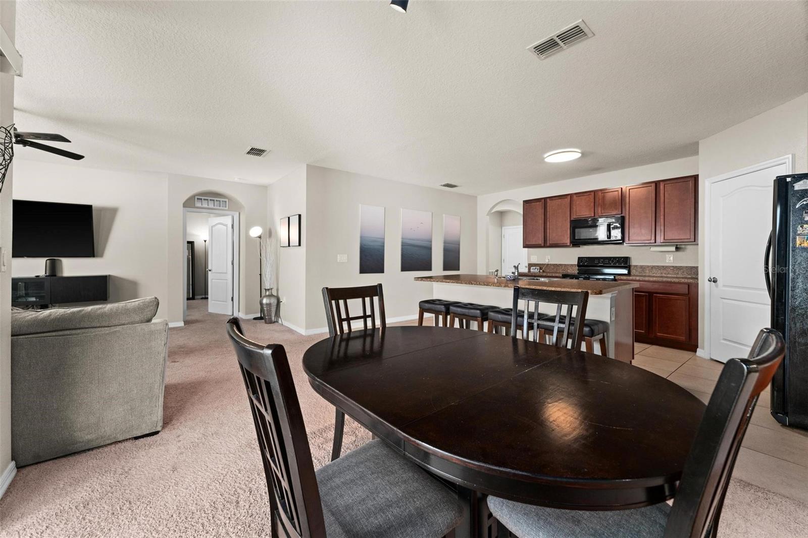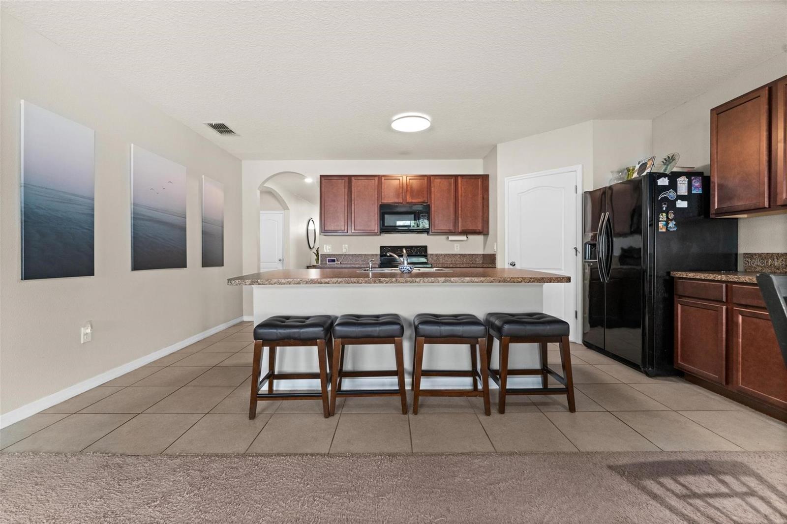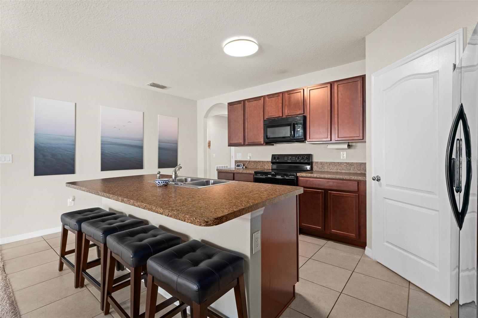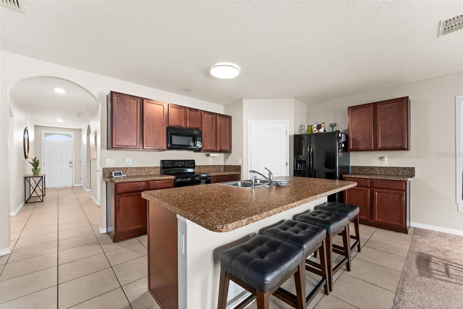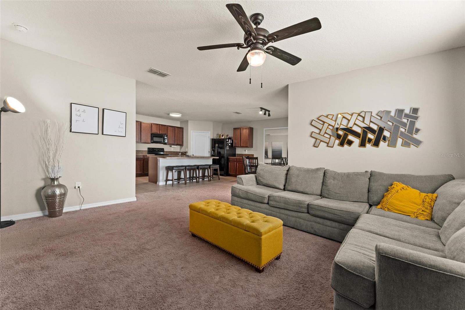 Welcome to your future home in the sought-after community of Kindred! This spacious 4 bedroom and 2 bath property boasts over 1800 square feet of living space and is situated conveniently next to an open area, enjoy the Florida weather. 4 bedroom, 2 bath offers a seamless open-concept layout, perfect for both entertaining and everyday living. As you step inside, you're greeted by a bright and airy interior highlighted by modern finishes and thoughtful design tou9ches. The spacious kitchen boasts a massive island/breakfast bar, perfect for culinary creations. Step out and enjoy your large fenced in backyard and covered lanai. Perfect for accommodating guests. This community is in the heart of the city of Kissimmee. Has so much to offer; walking trails, volleyball and tennis courts, playground, clubhouse, fitness center and swimming pool. This location is just near the main avenues, highways, restaurants, shopping mall, downtown Kissimmee, and close to Lake Tohopekaliga. Call today to schedule a showing!