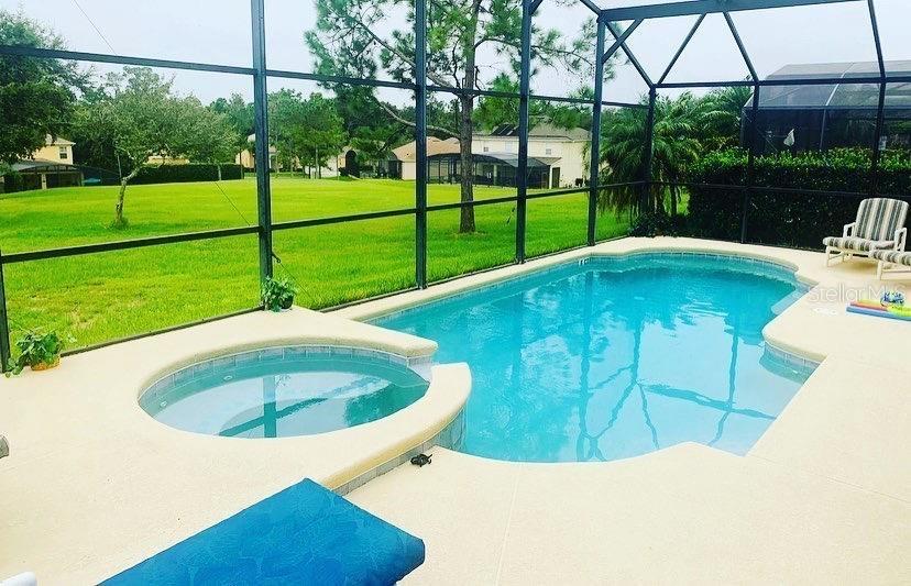 Beautifully furnished 4-bed, 3-bath home with a pool/spa, ready for you! The south-facing pool ensures maximum sun. Featuring 2 master bedrooms and 2 bedrooms on the ground floor, there's plenty of space to spread out in the private gated community of Emerald Island Resort, just minutes from Disney World. The screened lanai offers relaxation and privacy with no rear neighbors. Enjoy the heated pool or spa after a day at the parks. New waterproof flooring, stainless steel appliances, and an AC were installed in Sept 2019. HOA dues include lawn care, cable TV, and internet. The Resort clubhouse boasts a resort-style pool, hot tub, sauna, fitness room, cyber room, 24-hour security, and video games. Enjoy the Tiki bar, playgrounds, sand volleyball, tennis center, and nature trail. Close to Island H2O Waterpark, Margaritaville shopping, and restaurants. Please note that this property is designated for short-term rental use only. Long-term rentals are not permitted. Only property owners are authorized to reside permanently on the premises. Call/Text/Email for your private showing today!
