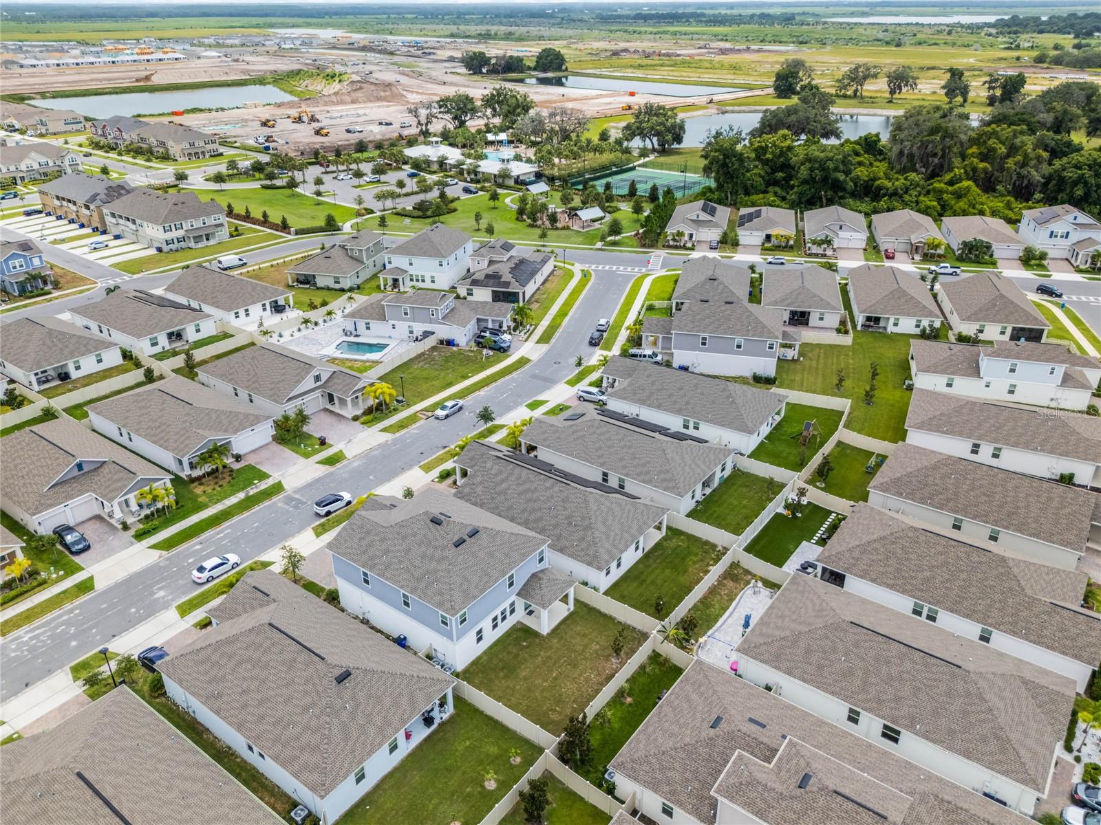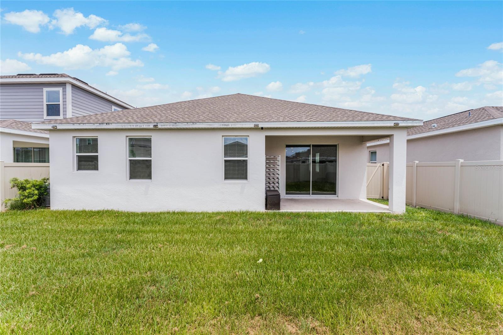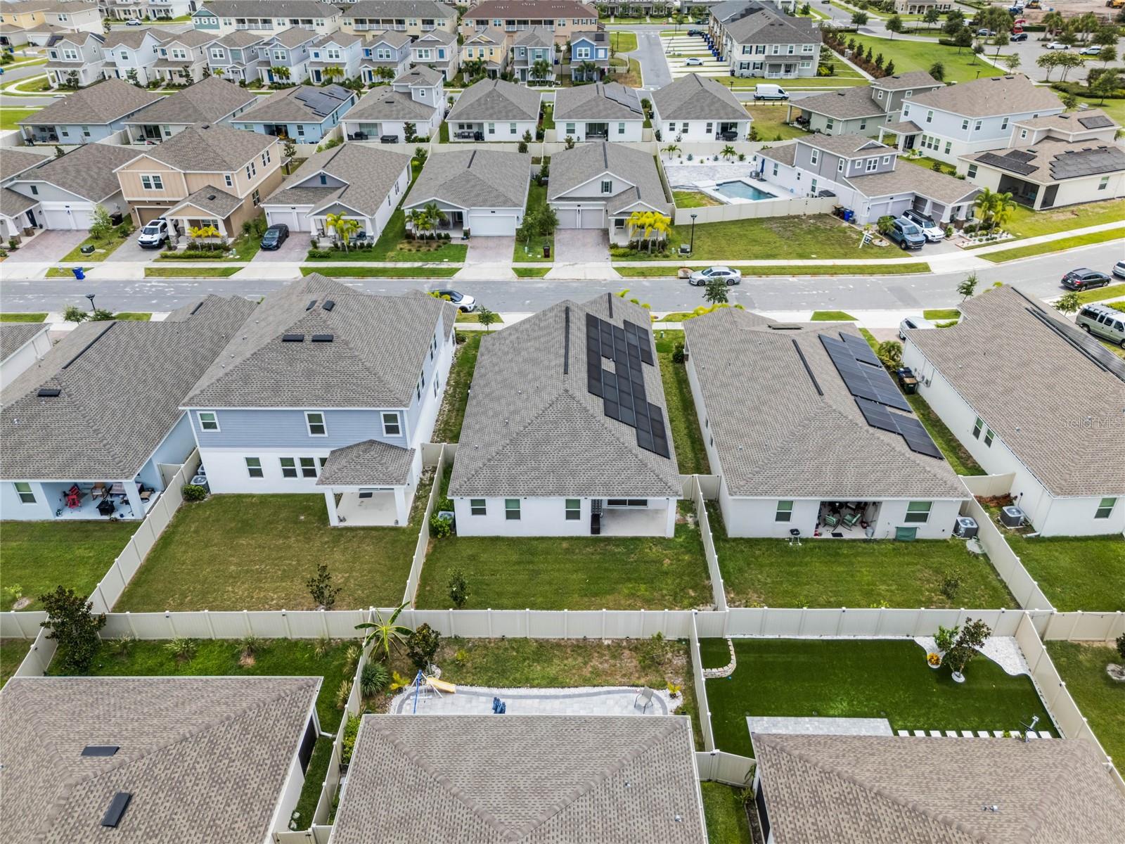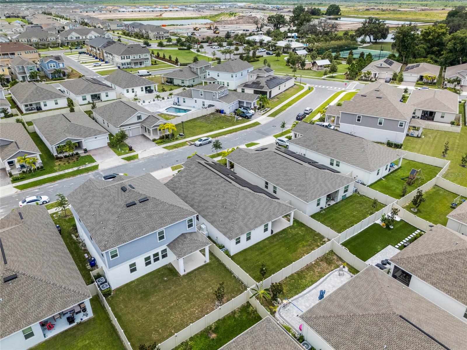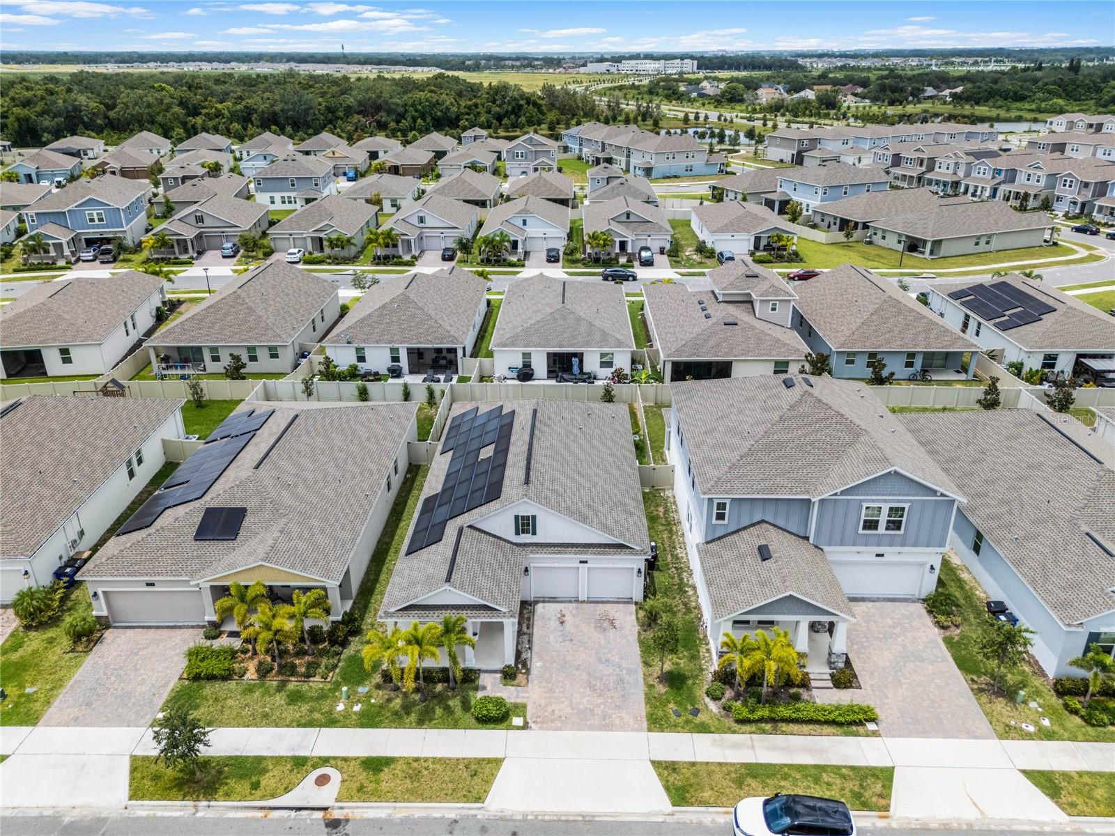 Welcome to this stunning residence, just built in 2021, in the sought-after Tohoqua subdivision of Kissimmee. This 3-bedroom, 2-bathroom home offers a modern, open split floor plan with elegant design details and versatile living spaces. Benefit from a SOLAR PANEL SYSTEM with no worry of ever losing power! Enjoy cooking in a stylish kitchen with quartz countertops, 42" shaker cabinets, an island, and a pantry. The flex room is perfect for a home office, formal living room, playroom, or any other purpose to fit your needs. Retreat to a large primary suite featuring a massive walk-in closet and an ensuite bathroom with a dual vanity, separate soaking tub, and a stand-alone shower. A fully fenced backyard provides privacy and a safe space for outdoor activities. Relax on the front covered patio and entryway, perfect for welcoming guests or enjoying a quiet evening. A new whole-house water softener system ensures high-quality water throughout the home. Residents of this master-planned community enjoy a resort-style swimming pool, clubhouse, fitness center, playgrounds, tennis courts, and walking trails. Located just 15 minutes from Medical City and with easy access to the Florida Turnpike, commuting is a breeze. This home is an ideal choice for those seeking a serene living environment with modern amenities and easy access to everything Kissimmee has to offer. Don't miss the opportunity to make this your dream home!