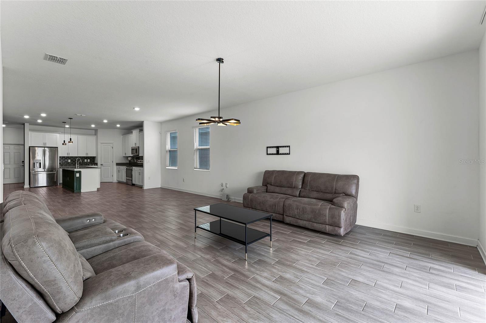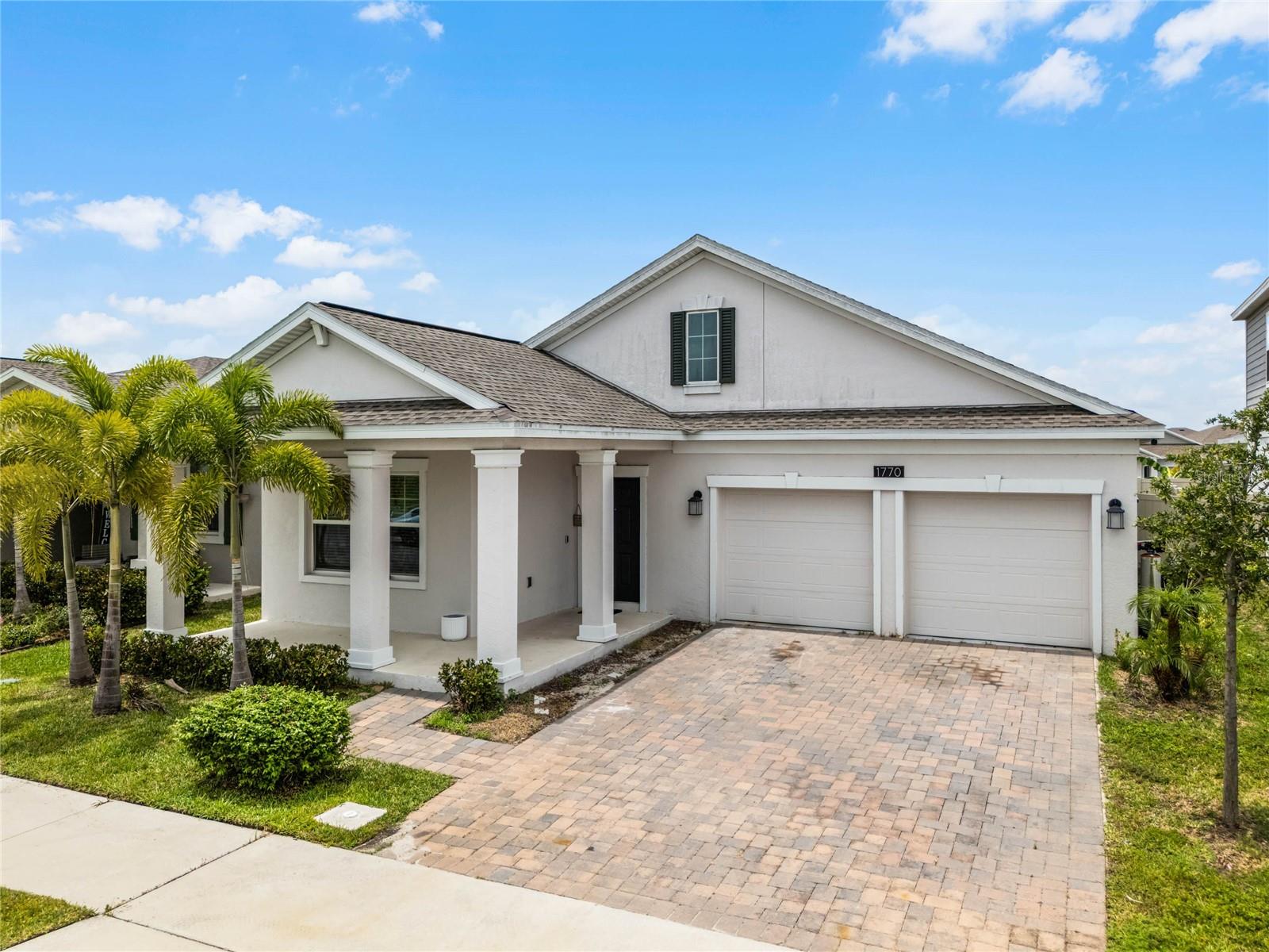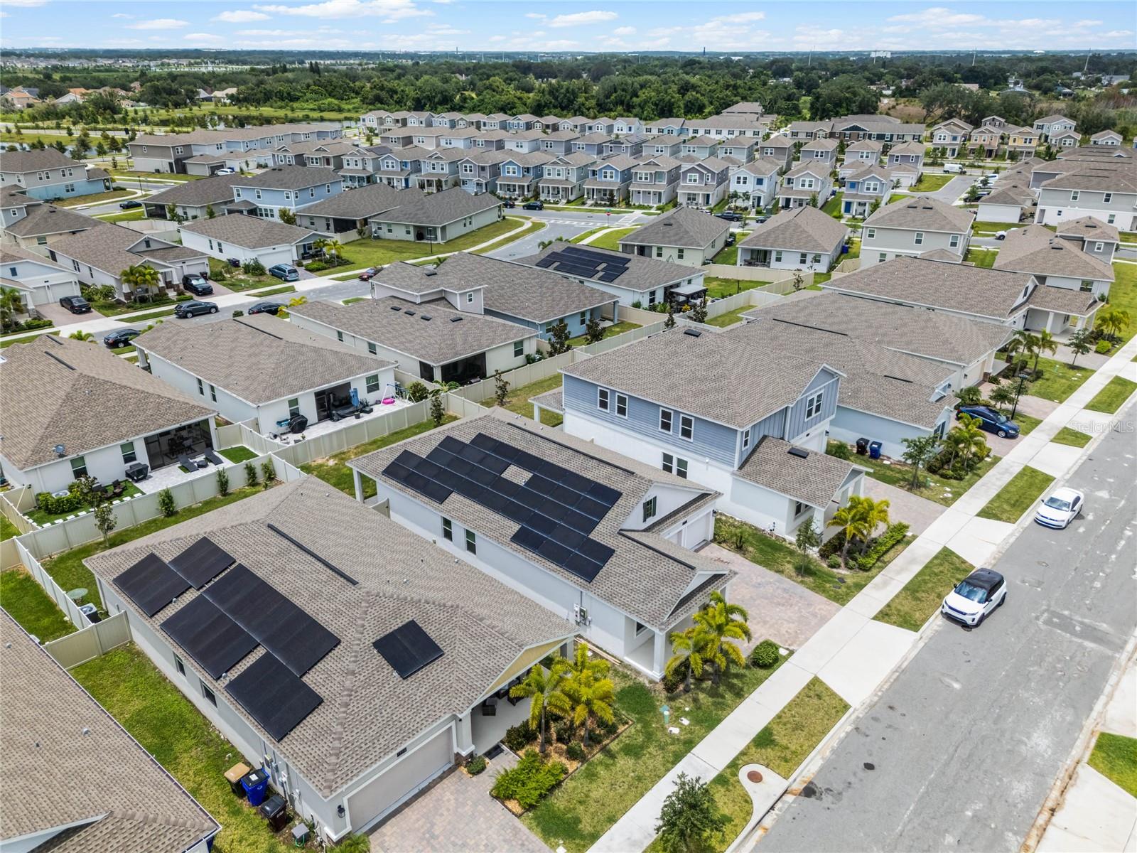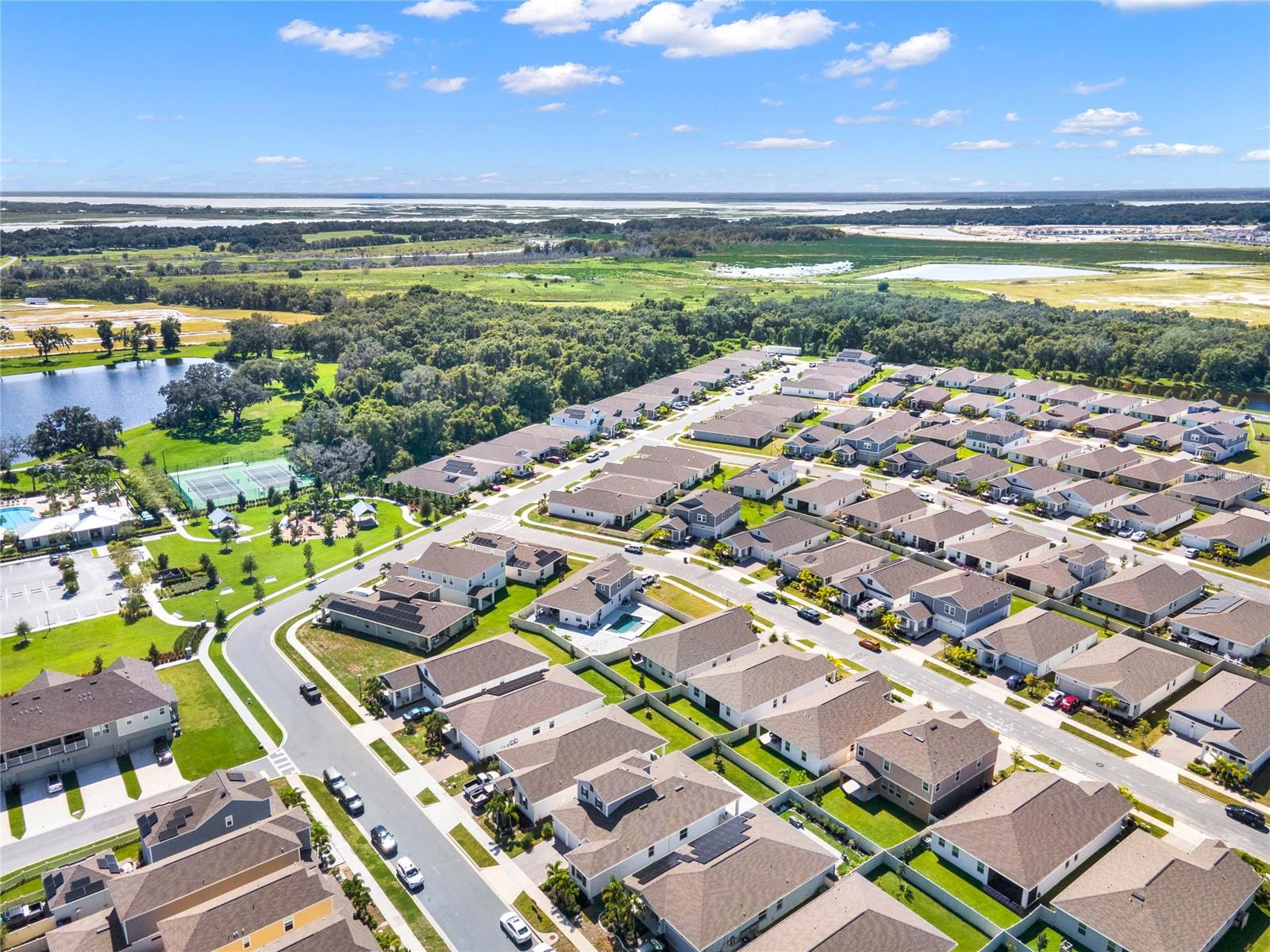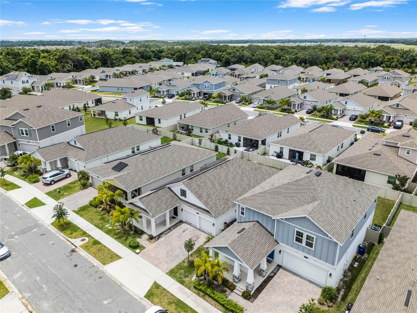 Welcome to this stunning residence, just built in 2021, in the sought-after Tohoqua subdivision of Kissimmee. This 3-bedroom, 2-bathroom home offers a modern, open split floor plan with elegant design details and versatile living spaces. Benefit from a SOLAR PANEL SYSTEM with no worry of ever losing power! Enjoy cooking in a stylish kitchen with quartz countertops, 42" shaker cabinets, an island, and a pantry. The flex room is perfect for a home office, formal living room, playroom, or any other purpose to fit your needs. Retreat to a large primary suite featuring a massive walk-in closet and an ensuite bathroom with a dual vanity, separate soaking tub, and a stand-alone shower. A fully fenced backyard provides privacy and a safe space for outdoor activities. Relax on the front covered patio and entryway, perfect for welcoming guests or enjoying a quiet evening. A new whole-house water softener system ensures high-quality water throughout the home. Residents of this master-planned community enjoy a resort-style swimming pool, clubhouse, fitness center, playgrounds, tennis courts, and walking trails. Located just 15 minutes from Medical City and with easy access to the Florida Turnpike, commuting is a breeze. This home is an ideal choice for those seeking a serene living environment with modern amenities and easy access to everything Kissimmee has to offer. Don't miss the opportunity to make this your dream home!