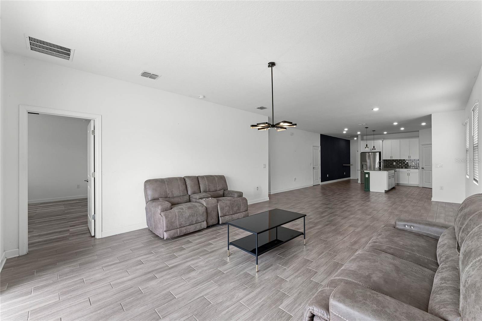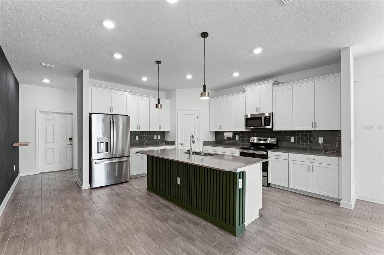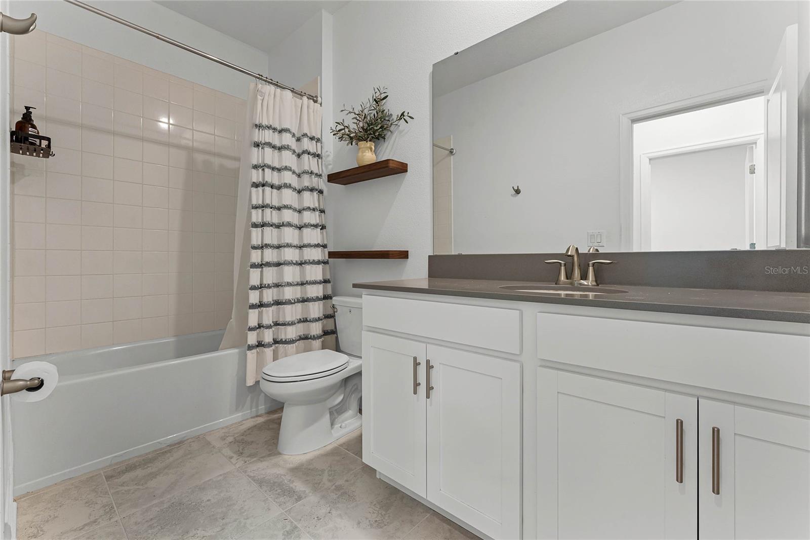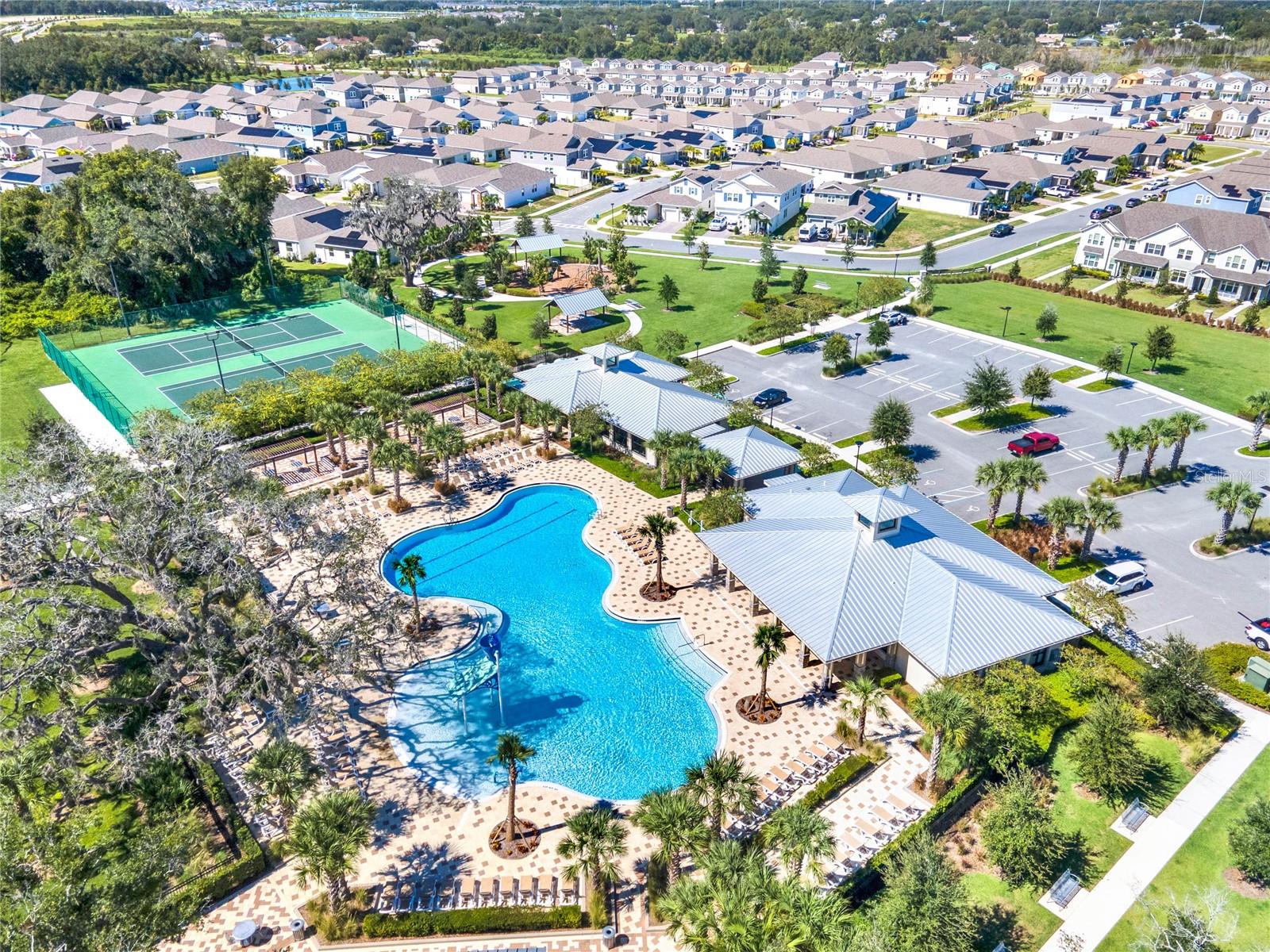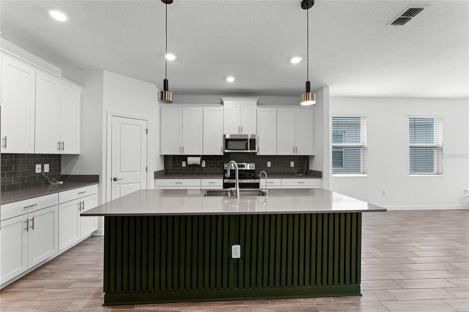 Welcome to this stunning residence, just built in 2021, in the sought-after Tohoqua subdivision of Kissimmee. This 3-bedroom, 2-bathroom home offers a modern, open split floor plan with elegant design details and versatile living spaces. Benefit from a SOLAR PANEL SYSTEM with no worry of ever losing power! Enjoy cooking in a stylish kitchen with quartz countertops, 42" shaker cabinets, an island, and a pantry. The flex room is perfect for a home office, formal living room, playroom, or any other purpose to fit your needs. Retreat to a large primary suite featuring a massive walk-in closet and an ensuite bathroom with a dual vanity, separate soaking tub, and a stand-alone shower. A fully fenced backyard provides privacy and a safe space for outdoor activities. Relax on the front covered patio and entryway, perfect for welcoming guests or enjoying a quiet evening. A new whole-house water softener system ensures high-quality water throughout the home. Residents of this master-planned community enjoy a resort-style swimming pool, clubhouse, fitness center, playgrounds, tennis courts, and walking trails. Located just 15 minutes from Medical City and with easy access to the Florida Turnpike, commuting is a breeze. This home is an ideal choice for those seeking a serene living environment with modern amenities and easy access to everything Kissimmee has to offer. Don't miss the opportunity to make this your dream home!