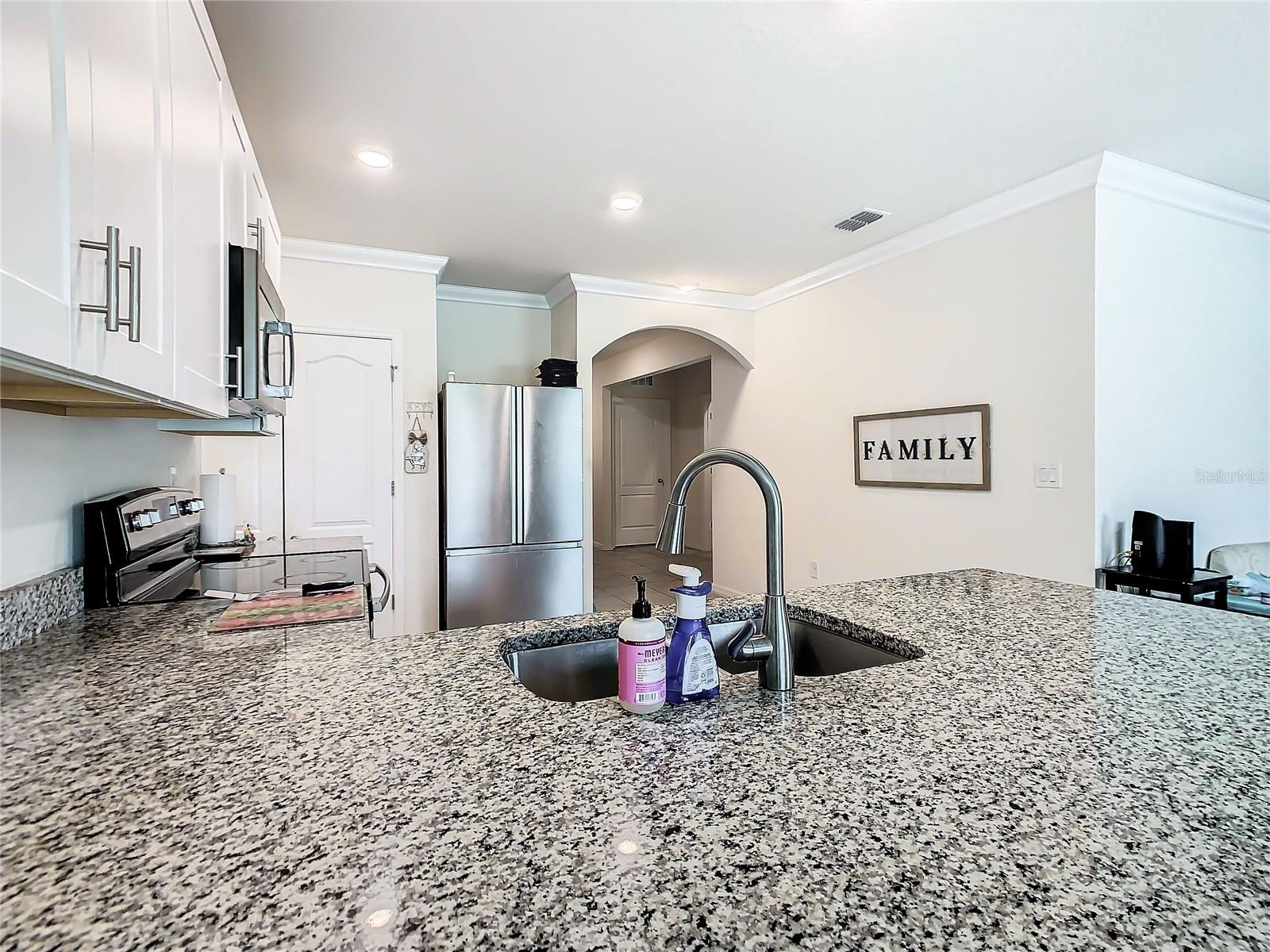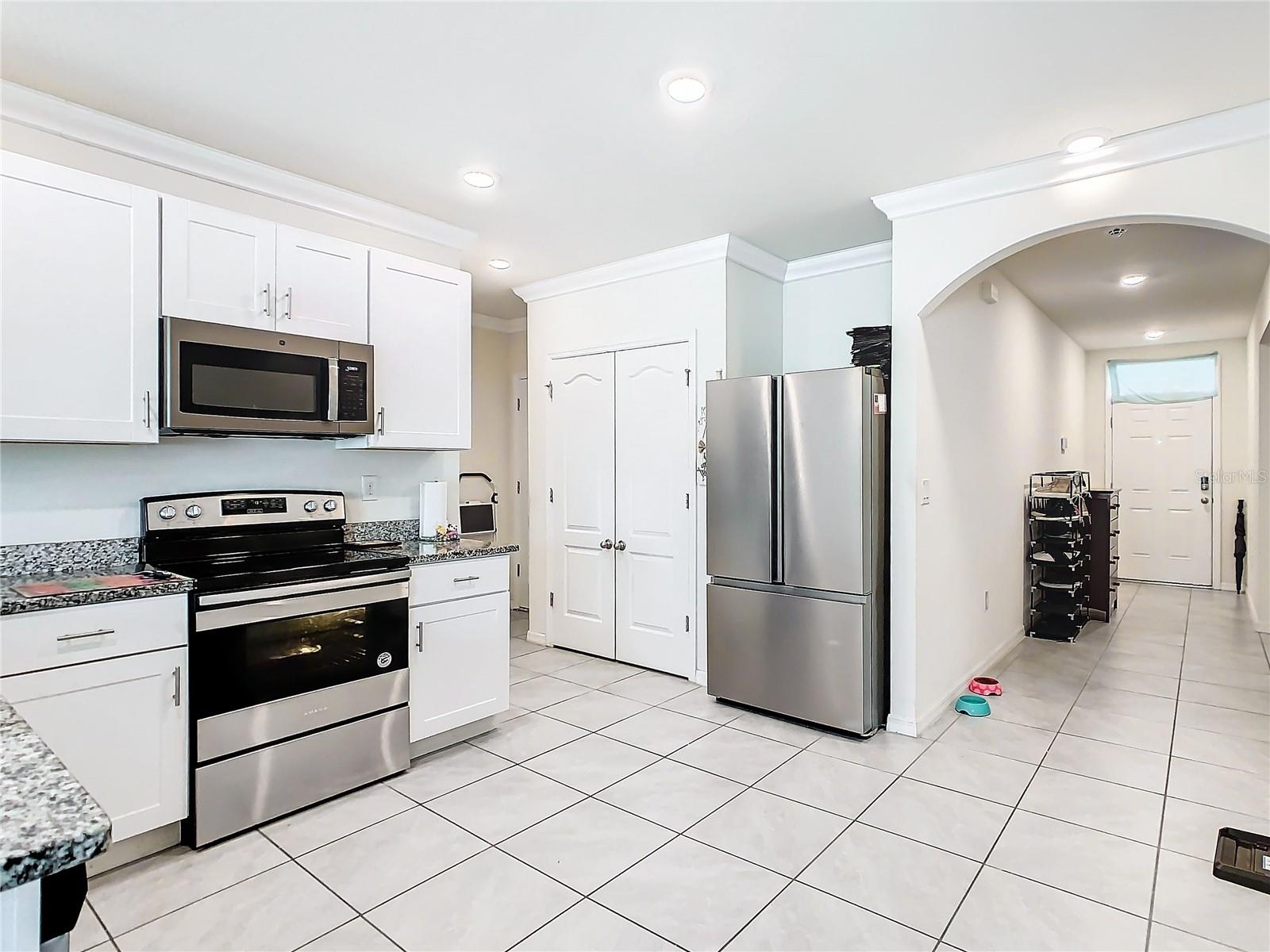 Welcome to this BEAUTIFUL HOME equipped with a state-of-the-art SOLAR SYSTEM(INCLUDED), offering significant savings with its energy-efficient features, including a 15 SEER AC unit, dual pane windows, and all-block construction. Built in 2020, this residence is nestled in a serene and quiet community, epitomizing modern, energy-efficient living.The Aria floor plan greets you with a welcoming entryway and a cozy living area that flows seamlessly into the expansive kitchen and dining spaces. The spacious kitchen boasts a breakfast bar, granite countertops, stainless steel appliances, large pantry, and ample cabinet and counter space, making it a chef's delight. The master suite features a stylish vanity and a large walk-in closet, providing a private retreat. The dining area, conveniently located off the kitchen, opens to a patio, perfect for hosting outdoor gatherings with friends and family.The Evergreen community offers easy access to shopping, dining, major highways, ensuring the epitome of modern comfort and community living. This property is also conveniently located near Valencia Community College, hospitals, shopping centers, and the SunRail station.Don’t miss out on the opportunity to call this exceptional property your home. Experience the perfect blend of style, efficiency, and convenience.