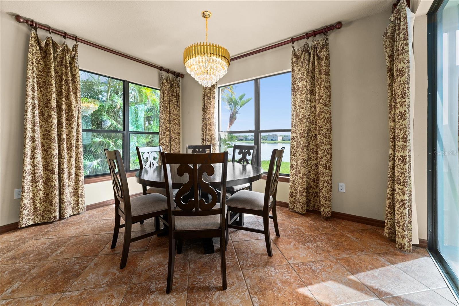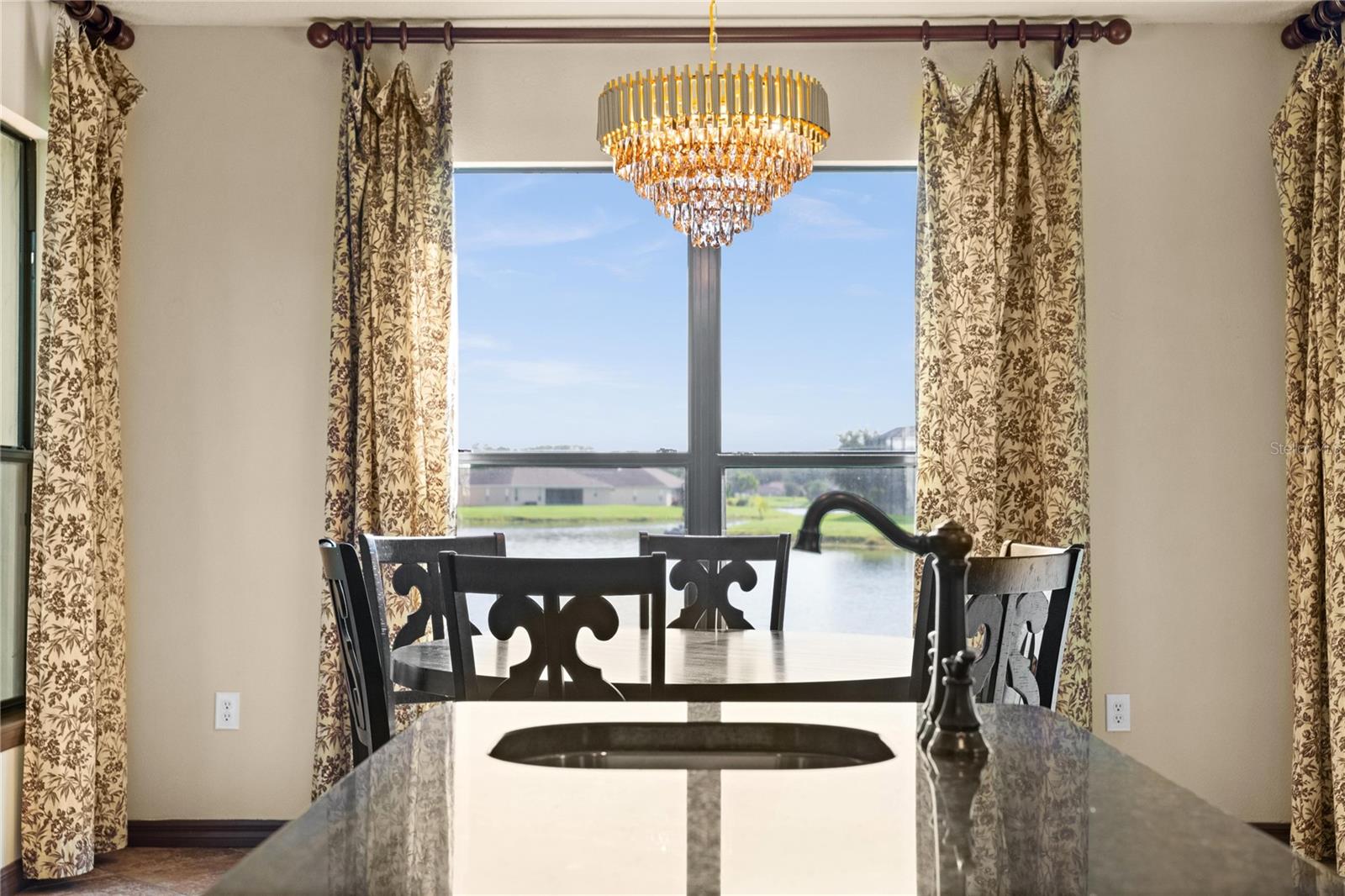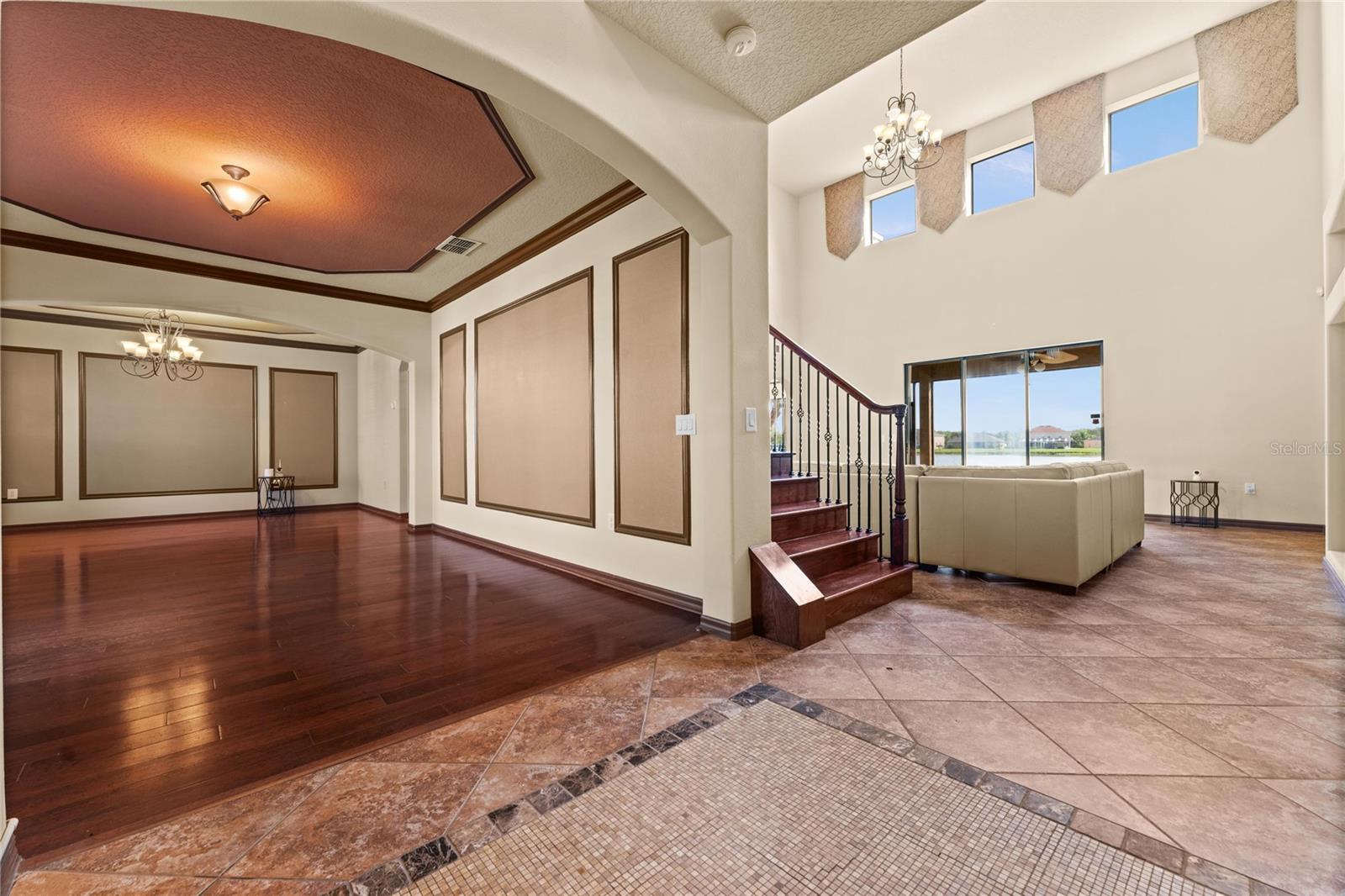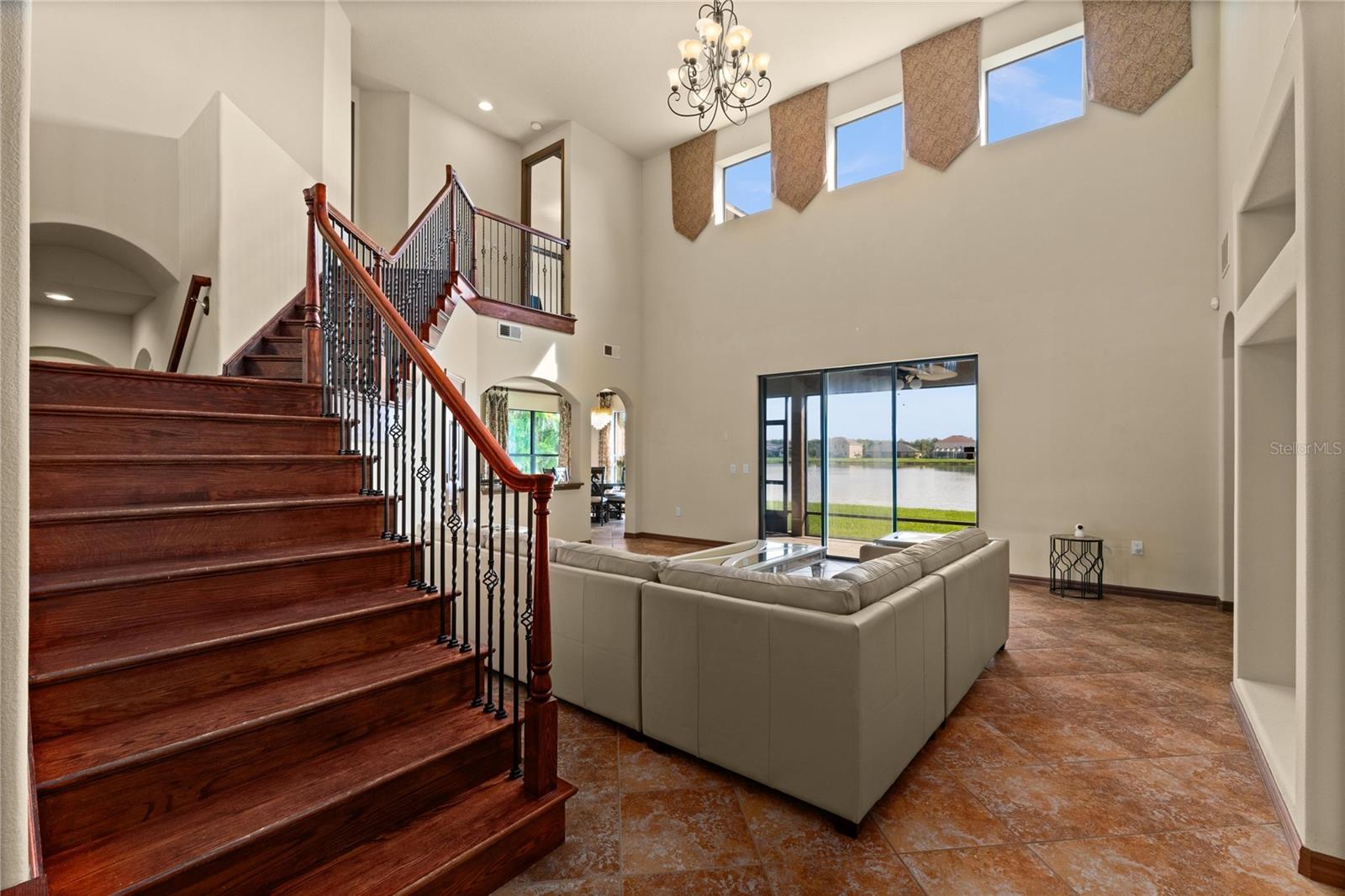 Welcome to this WATERFRONT GEM with 6 bedrooms and 4 full bathrooms in Shingles Creek Reserves, nestled within the golf club community of THE OAKS! Enjoy an oversized Primary Suite on the first floor, complete with a huge EN-SUITE WALK-IN CLOSET AND BATHROOM, with private sliding doors to access the SCREENED-IN enclosed porch with gorgeous views of the water. There's also an extra bedroom on the first floor close to the garage and front door, perfect for family and guests, with access to a full bathroom. The HIGH CEILINGS and various windows allow natural light to fill every room, with modern recessed lighting and cool PORCELAIN TILE floors throughout most of the main floor. At the front of the home, you have an expansive Dining Room with an adjacent space that can be used as a Family Room or flex space, in addition to the Living room at the back of the home with breathtaking WATER VIEWS. In the spacious Kitchen, you have an eat-in space with great views of your tropical landscaping and the lake, a WALK-IN PANTRY, STAINLESS STEEL APPLIANCES, GRANITE, an ISLAND, and ample CABINET SPACE. As you climb the HARDWOOD floors to the upstairs area, you have 4 more bedrooms, most of them boasting their own WALK-IN closets. Overlooking the Living room is the LOFT space upstairs, leading to the most fun space in the home... The MEDIA ROOM! Pre-wired for surround sound, complete with BUILT-IN CABINETS, GRANITE, a WET BAR, and private access to the second story BALCONY with more stunning water views. With 4303 square feet, this home was used as a model home with all available upgrades from the builder. Updates include: CHANDELIER LIFT, hot water heater 11/2021, Hvac 11/2021 and 2023 WITH SMART THERMOSTATS, new B-HYVE SMART SPRINKLER system. The chain of lakes leads out to Lake Toho, one of the best large lakes in all of Central Florida. The community has a boatlift/ramp, in addition to building a private dock on your property behind your home to house a 24-foot boat and still have room for a full-size pool! The Oaks Golf Community is one of the most desired in Kissimmee, and has a low HOA. The Oaks community caters to a refined lifestyle with exceptional amenities including the acclaimed Oaks National 18-hole golf course, playgrounds, basketball and tennis courts, and scenic nature trails ideal for outdoor enthusiasts. Conveniently located near theme parks, shopping, dining, and entertainment options, this home offers a blend of luxury and convenience. Video link: https://youtu.be/gHSdEYTg6iM