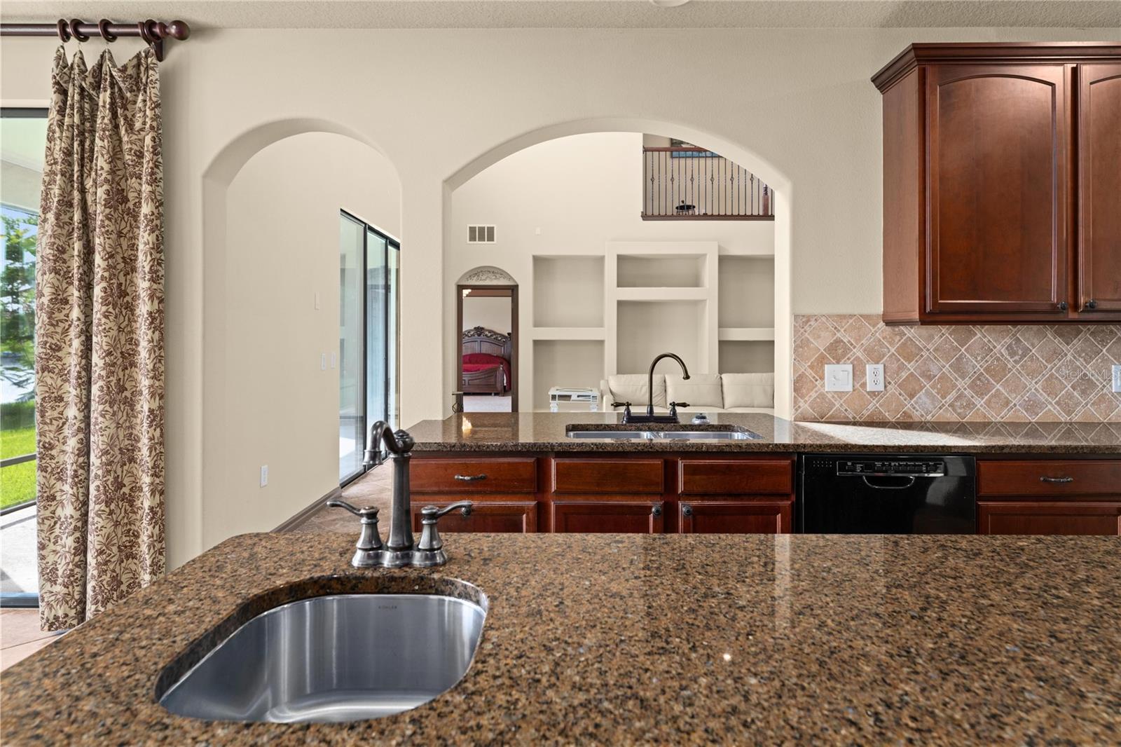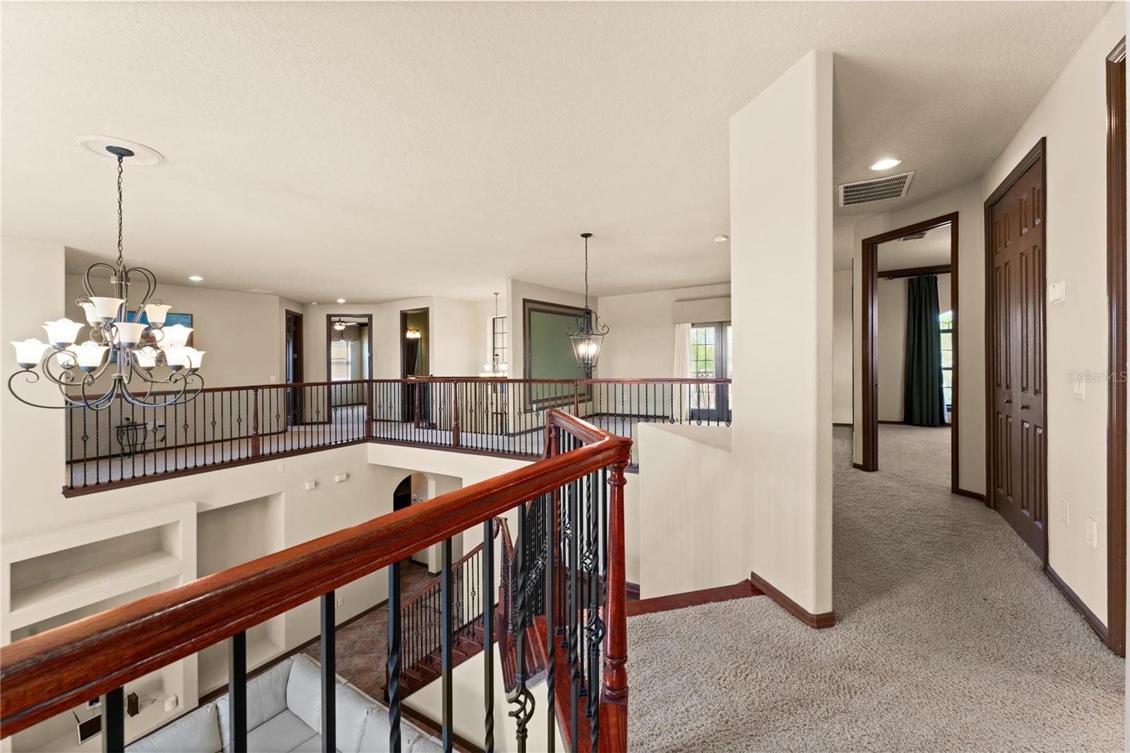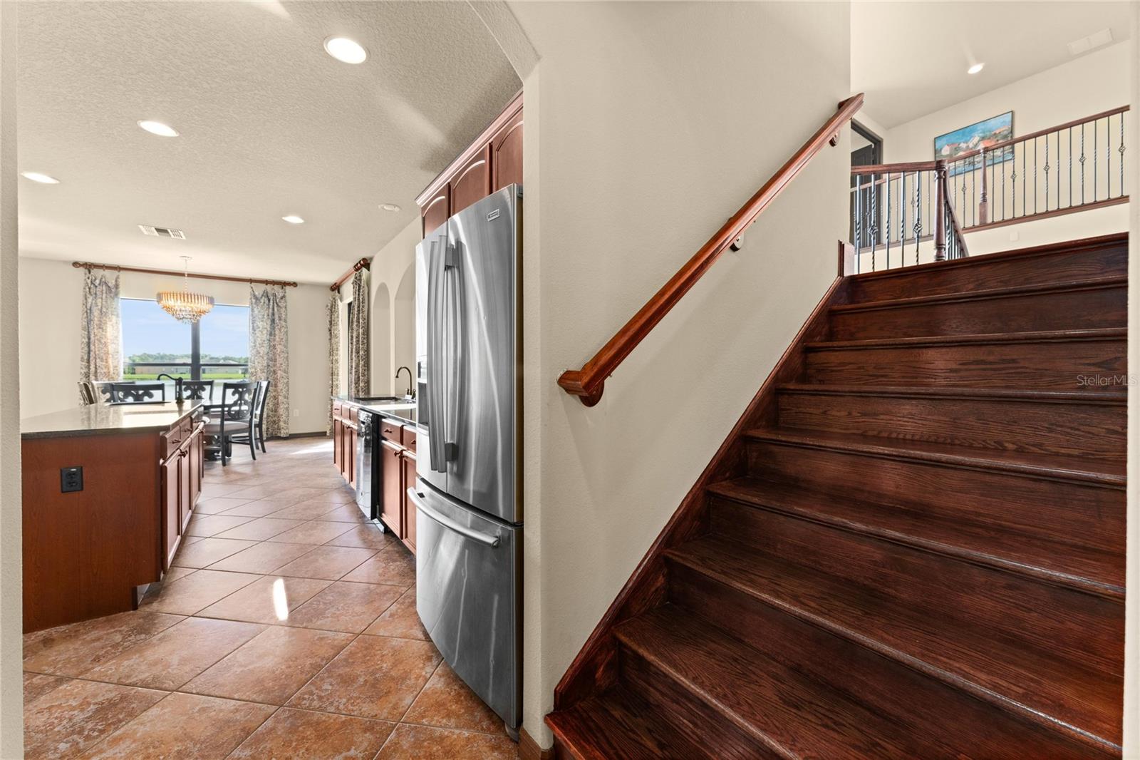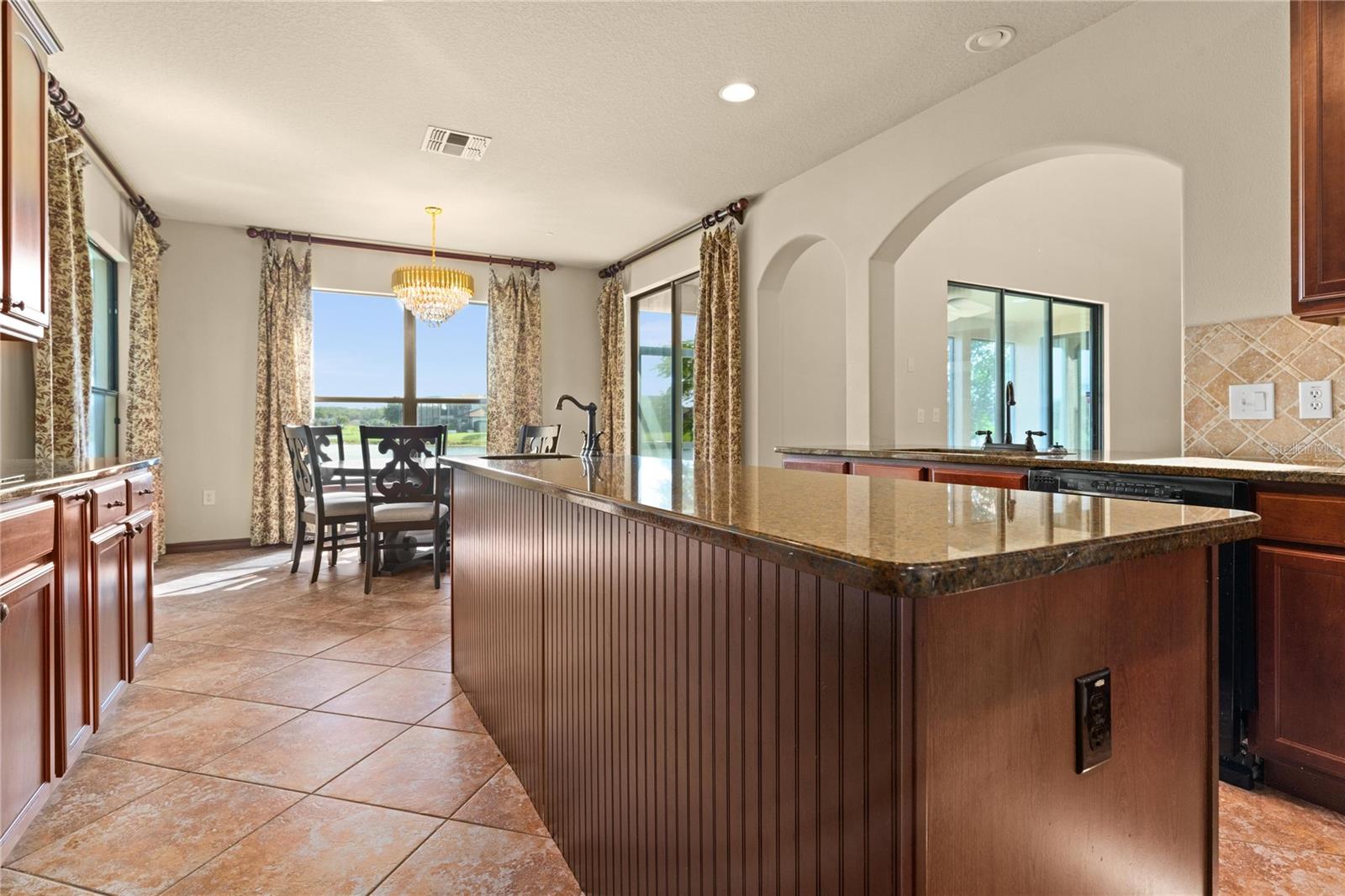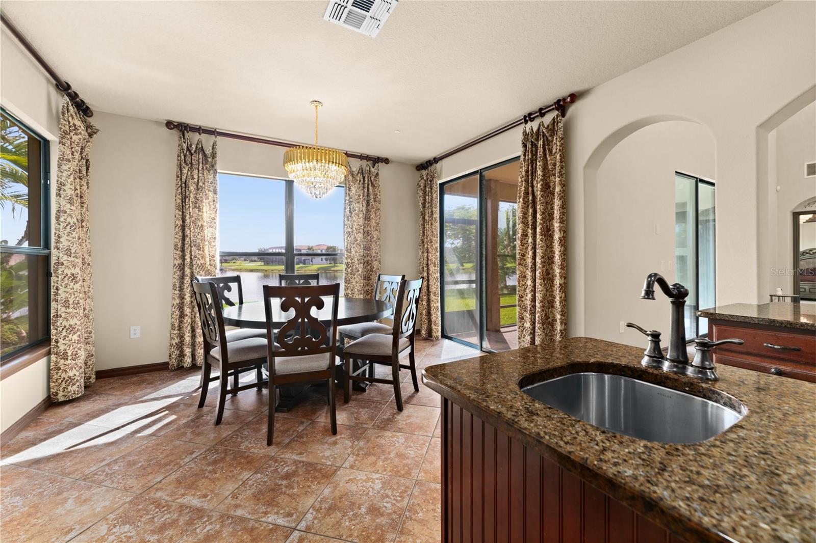 Welcome to this WATERFRONT GEM with 6 bedrooms and 4 full bathrooms in Shingles Creek Reserves, nestled within the golf club community of THE OAKS! Enjoy an oversized Primary Suite on the first floor, complete with a huge EN-SUITE WALK-IN CLOSET AND BATHROOM, with private sliding doors to access the SCREENED-IN enclosed porch with gorgeous views of the water. There's also an extra bedroom on the first floor close to the garage and front door, perfect for family and guests, with access to a full bathroom. The HIGH CEILINGS and various windows allow natural light to fill every room, with modern recessed lighting and cool PORCELAIN TILE floors throughout most of the main floor. At the front of the home, you have an expansive Dining Room with an adjacent space that can be used as a Family Room or flex space, in addition to the Living room at the back of the home with breathtaking WATER VIEWS. In the spacious Kitchen, you have an eat-in space with great views of your tropical landscaping and the lake, a WALK-IN PANTRY, STAINLESS STEEL APPLIANCES, GRANITE, an ISLAND, and ample CABINET SPACE. As you climb the HARDWOOD floors to the upstairs area, you have 4 more bedrooms, most of them boasting their own WALK-IN closets. Overlooking the Living room is the LOFT space upstairs, leading to the most fun space in the home... The MEDIA ROOM! Pre-wired for surround sound, complete with BUILT-IN CABINETS, GRANITE, a WET BAR, and private access to the second story BALCONY with more stunning water views. With 4303 square feet, this home was used as a model home with all available upgrades from the builder. Updates include: CHANDELIER LIFT, hot water heater 11/2021, Hvac 11/2021 and 2023 WITH SMART THERMOSTATS, new B-HYVE SMART SPRINKLER system. The chain of lakes leads out to Lake Toho, one of the best large lakes in all of Central Florida. The community has a boatlift/ramp, in addition to building a private dock on your property behind your home to house a 24-foot boat and still have room for a full-size pool! The Oaks Golf Community is one of the most desired in Kissimmee, and has a low HOA. The Oaks community caters to a refined lifestyle with exceptional amenities including the acclaimed Oaks National 18-hole golf course, playgrounds, basketball and tennis courts, and scenic nature trails ideal for outdoor enthusiasts. Conveniently located near theme parks, shopping, dining, and entertainment options, this home offers a blend of luxury and convenience. Video link: https://youtu.be/gHSdEYTg6iM