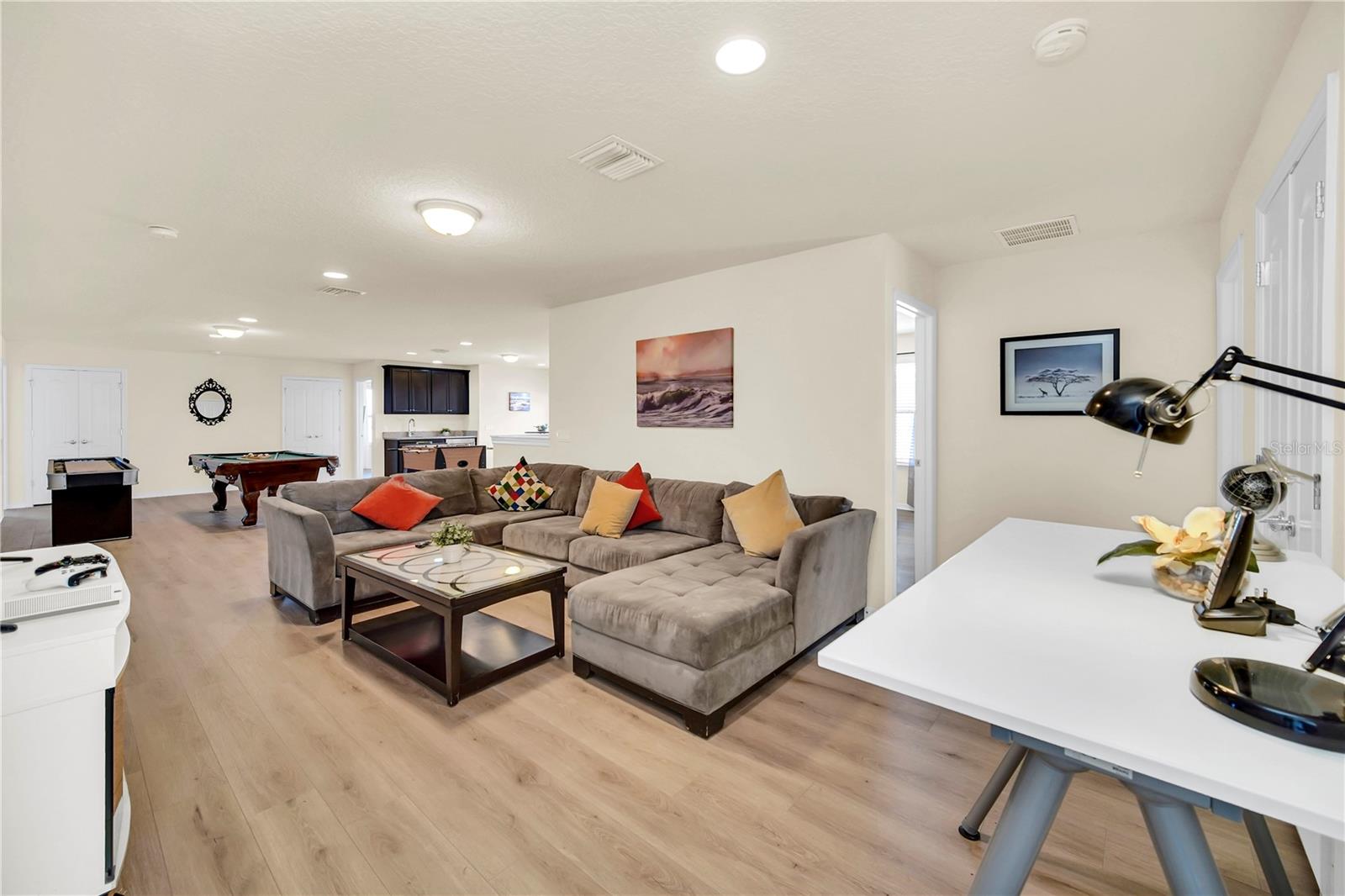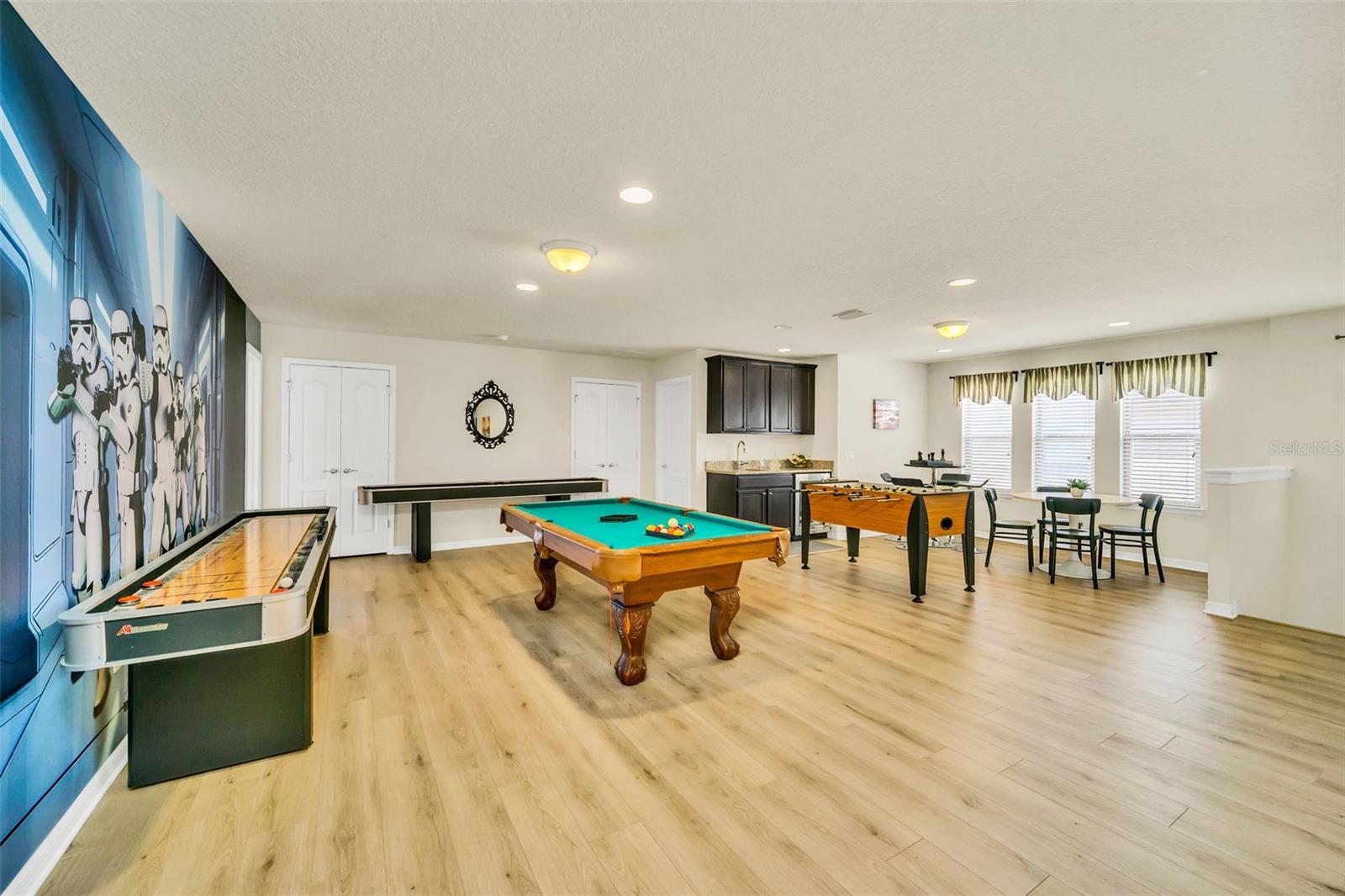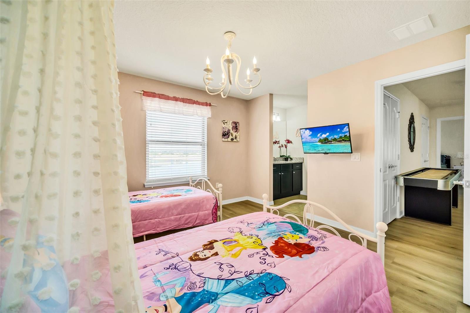 Home updated with No Carpet, New Flooring! Private Pool with Lake view! New Glass top Burner with Airfryer Range. New Fridge New BBQ. Tile Roof! no Shingles, More Durable! A stunning and expansive 9-bedroom, 6-bathroom home nestled in the desirable Windsor at Westside Resort. This luxurious property, built in 2016, offers a generous 4,391 square feet of living space spread across two stories, providing ample room for relaxation and entertainment. The home boasts a private pool, perfect for enjoying the sunny Florida weather. Inside, the split system cooling ensures comfort throughout, while the package heating system keeps the home cozy during cooler months. The kitchen is equipped with high-end stainless steel appliances, granite countertops, and elegant espresso cabinetry. The hardwood floors were replaced in 2023, and there is a brand new set of washing machines. Additionally, the refrigerator is less than five years old. The exterior features a durable frame wood/stucco construction and a cement tile roof, ensuring longevity and minimal maintenance. The beautifully designed home is situated on a sizable lot, offering plenty of outdoor space for activities and gatherings. Located close to major attractions, shopping, and dining, this home provides both luxury and convenience. Don’t miss this exceptional opportunity to own a piece of paradise in one of Kissimmee’s most sought-after communities.