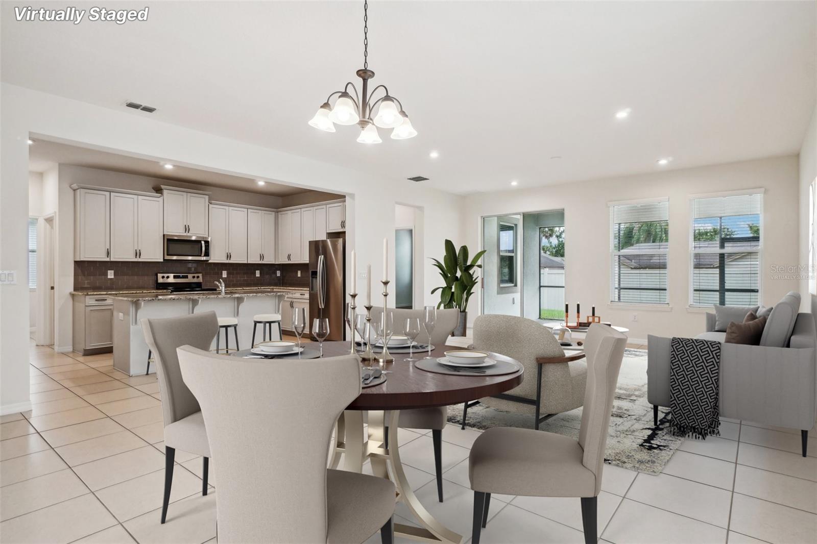One or more photo(s) has been virtually staged. Discover the epitome of modern living in this exquisite single-family home located in the desirable Tapestry community of Kissimmee, Florida. This stunning single story residence features 4 bedrooms and 2.5 bathrooms, spanning 2,170 sq ft, and showcases an array of high-end finishes and high ceilings! The fully upgraded kitchen boasts a cooking island, elegant stone countertops, and custom cabinetry, making it a chef’s dream. Each bathroom has been thoughtfully upgraded, adding a stylish touch throughout the home. The open floor plan seamlessly integrates the kitchen with the inviting living and dining areas, creating an ideal space for entertaining. The primary suite offers a luxurious retreat, complete with a walk-in closet and a spa-like en suite bathroom featuring a separate tub, expansive shower, dual sinks, and beautiful cabinetry. Step outside to the screened-in lanai, perfect for relaxing in Florida’s sunshine. Tapestry is more than just a home; it’s a lifestyle. Residents enjoy access to a zero-entry resort-style pool, a BBQ area by the lake, and a beautiful clubhouse with a spacious party and social gathering room. The expansive fitness center and covered playground make it the perfect community! With its prime location close to the Loop shopping center and various attractions including Disney parks, SeaWorld, and Universal Studios, plus just 25 minutes from Orlando International Airport, Tapestry offers convenience at your fingertips. Experience peace of mind in this 24-hour guard-gated community, which also boasts a refreshing community pool. This home is a perfect blend of style, comfort, and security—schedule your private tour today!