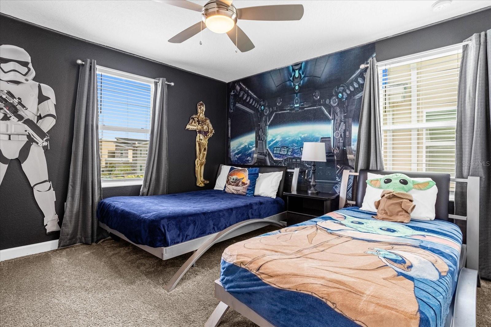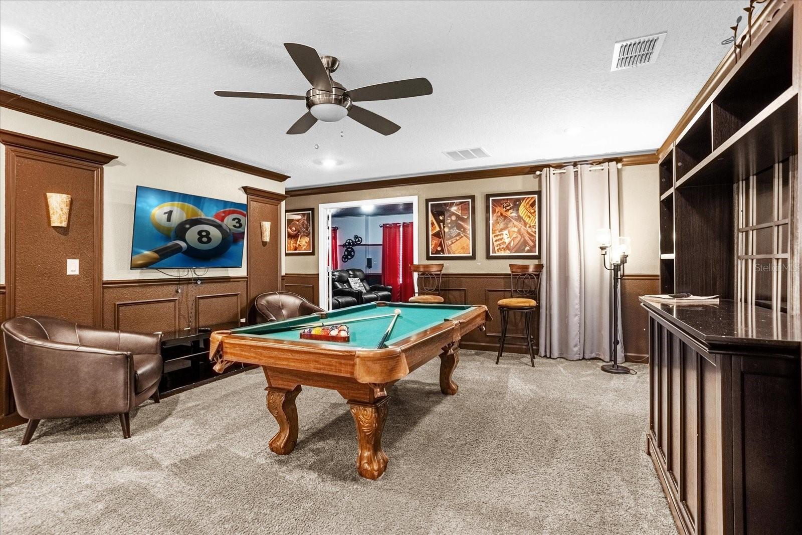 Welcome to your DREAM VACATION retreat at STOREY LAKE! This enchanting 8-bedroom, 5-bathroom DISNEY - THEMED home is packed with over $100K worth of upgraded furnishings and design details, making it as stylish as it is fun. From the GRANITE KITCHEN COUNTERTOPS and top-of-the-line appliances to the spacious living room and elegant 12-SEATER dining area, for movie nights retreat to the state of the art THEATER room, complete with UPGRADED RECLINING CHAIRS for the ultimate viewing experience with every corner crafted for comfort and luxury. Step outside to your private POOL and SPA, where you'll enjoy stunning CONSERVATION VIEWS, creating a tranquil oasis for relaxation. Inside, the game rooms provide endless entertainment for all ages, while the $30K SOLAR PANEL SYSTEMS ensures LOW ELECTRIC BILL. Best of all, this home is in an **AMAZING LOCATION** just 20 minutes from DISNEY WORLD, 10 MINUTES AWAY from UNIVERSAL STUDIOS new soon-to-open Epic Universe, and only 15 minutes from ICON Park on International Drive, offering the best restaurants, shopping, and entertainment in Orlando. This is more than just a vacation home—it's your gateway to magical memories! STOREY LAKE Included Features: **Valet Trash Service **Professionally Landscaped Grounds **Cable Television Service with Internet **Gated Main Entrance **Story Lake Club **Resort Style Pool, Jacuzzi & Lazy River **Clubhouse **Poolside Food & Beverage Service **Sports Courts **Water sports dock and kayaks ***WATCH video walkthrough just search for 2834 STOREY COVE AVE, KISSIMMEE, FL 34746 on YouTube!***