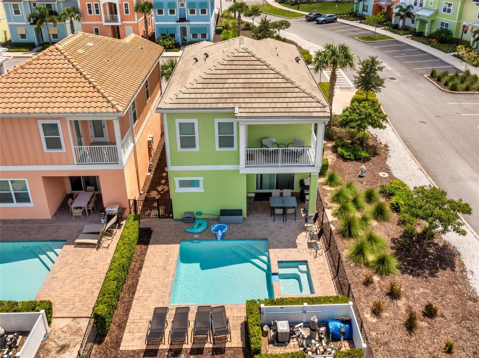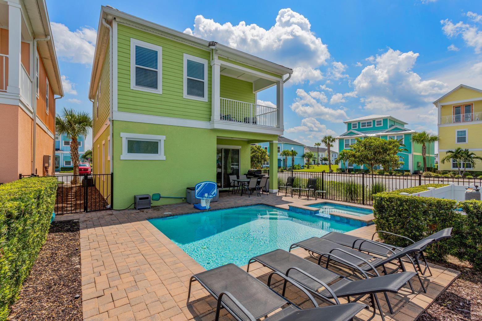ATTENTION SELLER MOTIVATED!!! This exited 4-bedroom, 4-full bath 2 Story Home must go. With a PRIVATE HEATED POOL & SPA IN the heart of MARGARITAVILLE MINUTES FROM DISNEY, WITH A HUGE FENCED BACKYARD ALSO, DOWNSTAIRS FITURES PRIMARY BEDROOM WITH a separate shower, and a GREAT FLOOR PLAN WITH fewer STAIRS. ALL Furniture and Housewares packages are Available For Purchase. (Original Cost was $30k). This is a Wonderful Community to Live in Full Time, Own a Second Home, or Invest in a Vacation Rental Property! This Amazing Home Features a Primary En Suite Bedroom on the First Floor, granite Countertops, Ceiling Fans, Upgraded Appliances, High Ceilings, wood stairs, and tile Flooring Throughout. Upstairs You Will Find an Additional Three Rooms with Access to a LARGE BALCONY Overlooking the POOL. The resort also integrates convenience Multiple Pools, a Gym, an On-Site Water Park, Sunset Walk Restaurants, Bars, Live Music, Retail, and More schedule your showing today! Buyers and buyer agents are responsible for checking the accuracy of all measurements.