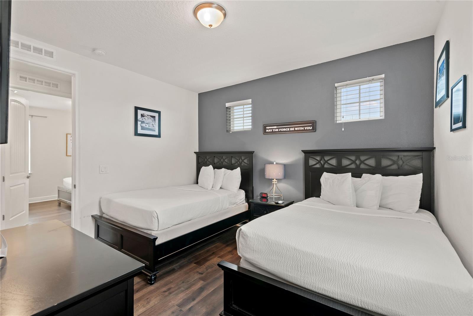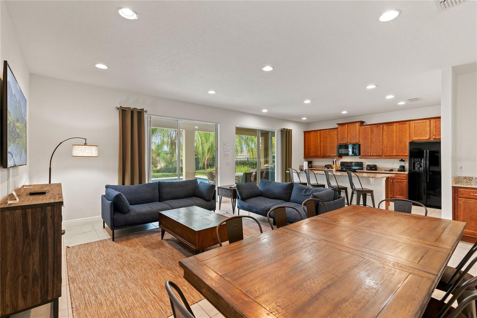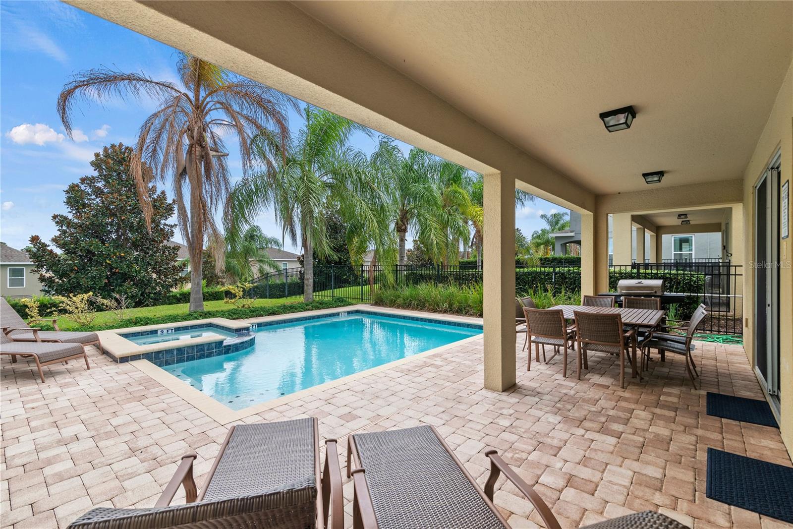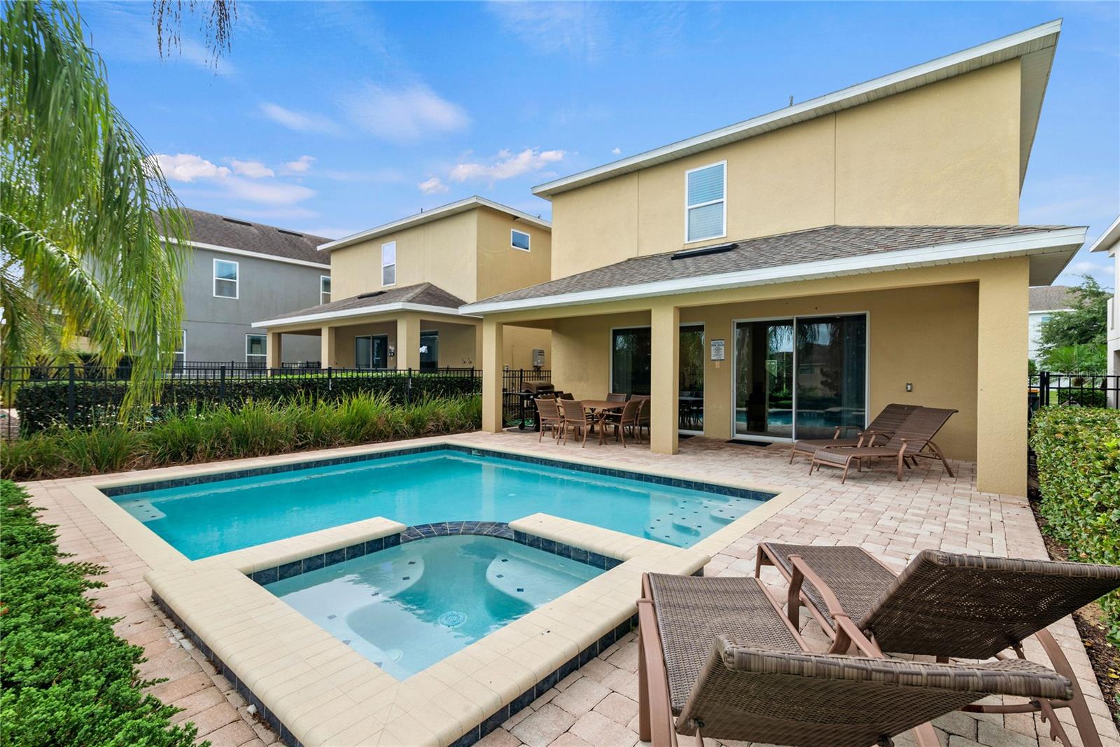 Welcome to this stunning 5-bedroom, 5-bathroom home located in the prestigious Encore Resort at Reunion. This turnkey vacation rental is the epitome of luxury and convenience, making it an ideal investment opportunity or a dream residence for those seeking resort-style living. Inside there is a welcoming spacious kitchen, family room, and dining area that are perfect for entertaining and creating unforgettable memories. There is one bedroom downstairs, while the other four bedrooms are located on the second floor, providing ample space and privacy for all guests. The interior boasts luxury vinyl plank flooring throughout the second floor, creating a seamless and elegant look. Say goodbye to carpet as this home offers easy-to-maintain flooring. Each bedroom is thoughtfully themed, adding a touch of charm and personality to the home, making it a perfect fit for a vacation rental. The 5 bedroom models at Reunion are one of the best options for consistent vacation rental bookings. Additionally, all furniture, appliances, outdoor grill, cookware, and bedding are included, giving it the ability for immediate occupancy as a vacation rental or a hassle-free move-in experience. Stepping outside, you'll find a fenced-in yard and a pavered pool area offering a private oasis for relaxation and outdoor enjoyment, the backyard is spacious providing a large area beyond the pool to enjoy. Located within the exclusive Encore Club, residents have access to a myriad of resort-style amenities, including a 10-acre tropical-themed pool, a fitness center multiple pools, Jacuzzis, slides, and basketball, volleyball, and tennis courts. The on-site poolside bar and restaurants provide a convenient option for dining and entertainment. Additionally, the resort offers shuttle services to Disney Parks and the Orlando International Airport, adding to the convenience of this prime location. The HOA includes a comprehensive package of services such as internet, cable, phone, trash, security, and landscaping, ensuring a worry-free lifestyle for residents. Plus, 24-hour security provides peace of mind for all members of the community. Don't miss the opportunity to own this exceptional property in a prime location, just 10 minutes from Disney and with easy access to Universal Studios. With its unbeatable amenities and turnkey appeal, this home offers the best resort living in the heart of Kissimmee, FL. Additional splash pad and basketball court are within walking distance from the property. Schedule your showing today and experience the luxury and convenience that this home and community have to offer! Seller has full rental history that is available upon request.