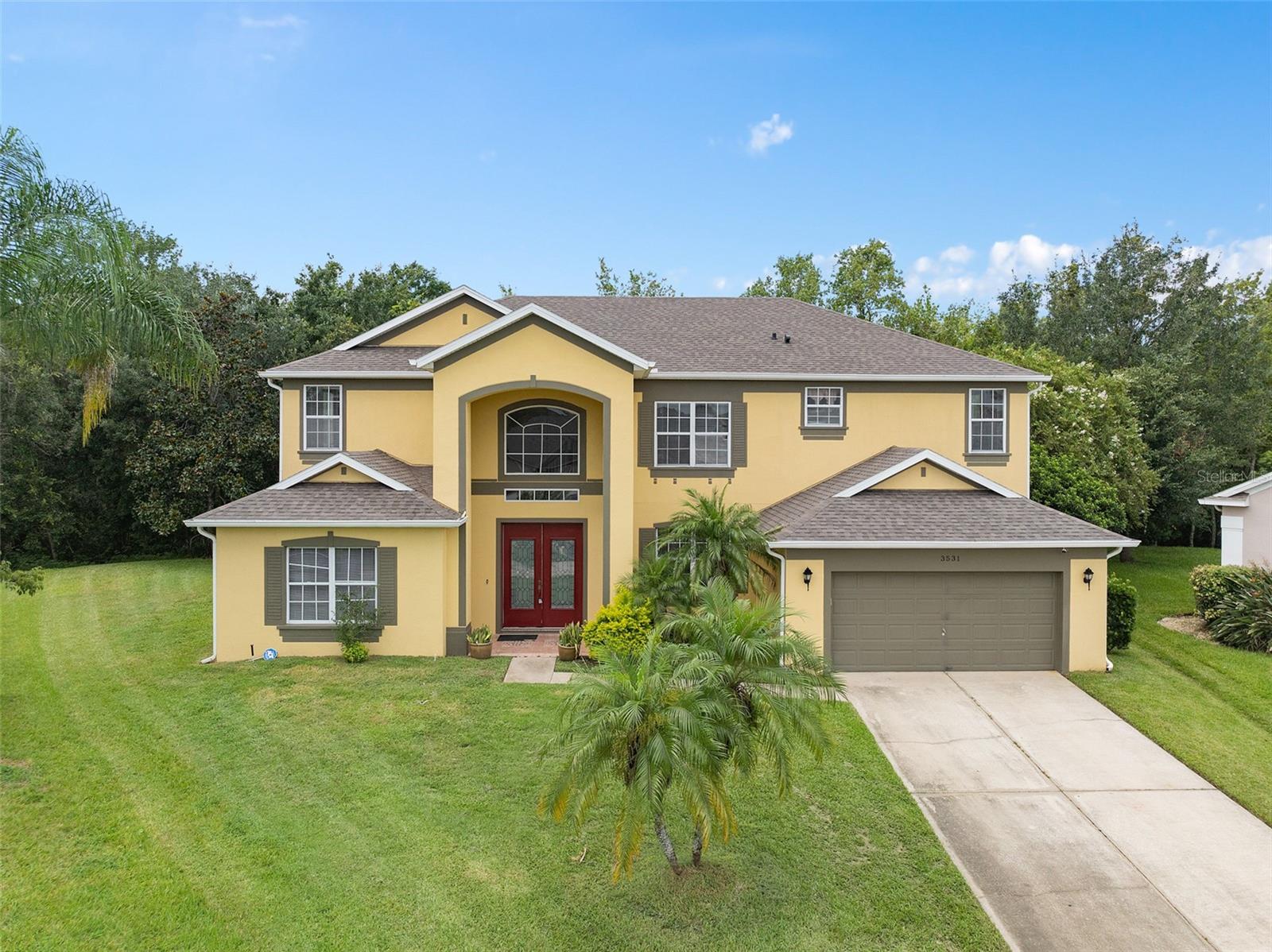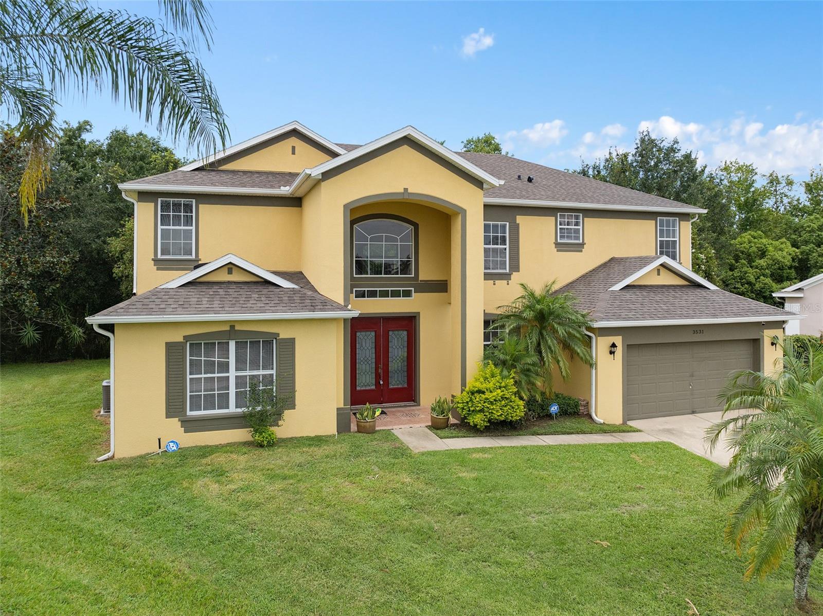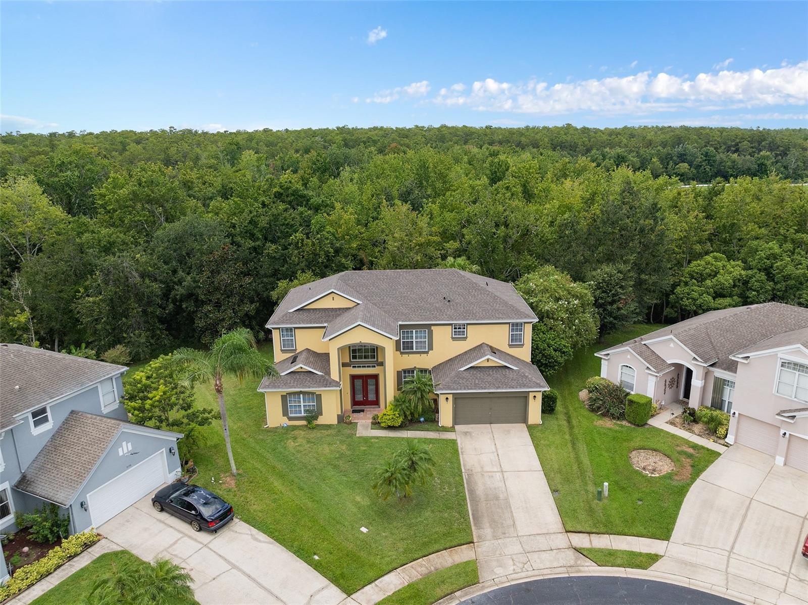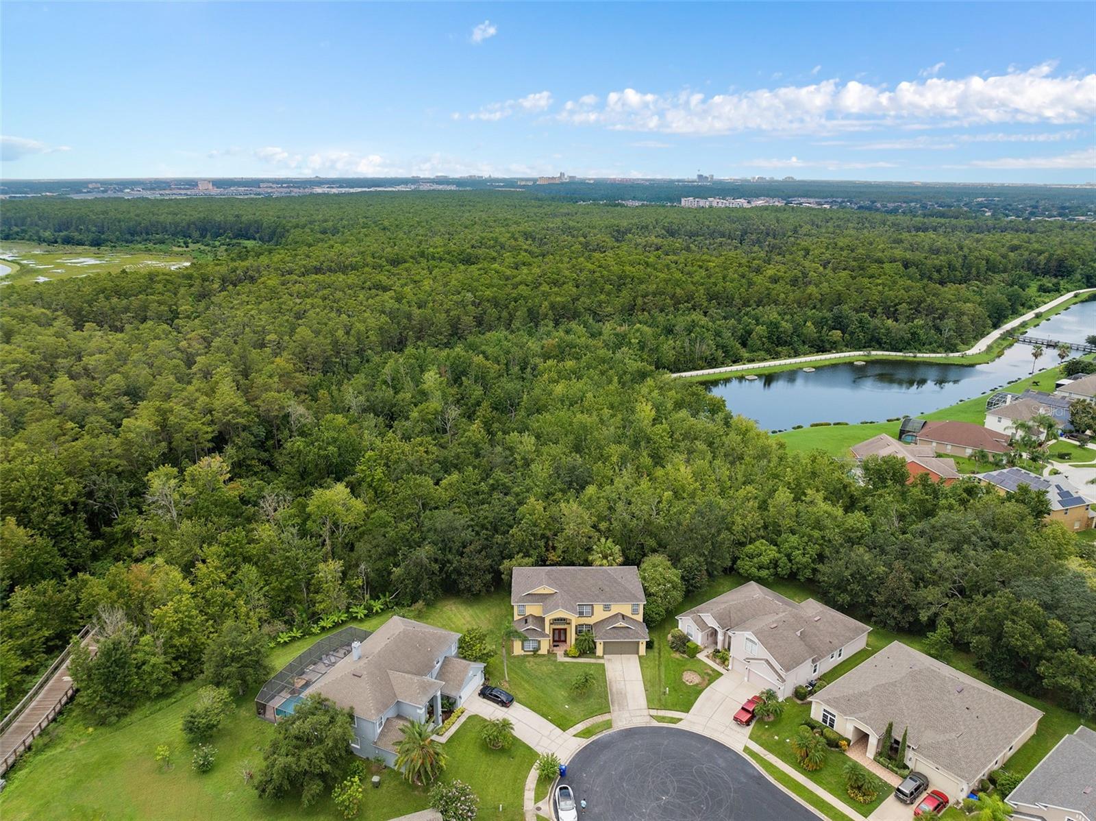 Welcome to a beautiful home in the exclusive gated community at Weston Reserve. This impressive property offers luxury living with an amazing view of the woods. The private outdoor and indoor spaces with dual locations to enjoy the view of birds like cardinals, blue jays, a creek and the forest. This property is on a cull de sac. As you enter the foyer there is a stunning living family room with high ceilings, a formal dining room and a den to accommodate your entertainment area. A beautiful electric fireplace is enhancing a huge entertainment center. The window treatments with blinds enhance privacy and style. On the left you walk into the super large master bedroom with large windows facing the woods, a walking closet and dual separate sinks with shower and jacuzzi tub. The Master Bedroom is conveniently located on the main floor. On the right you will find the spacious kitchen with an island, pantry and an area for a cozy breakfast table. Corian counters add an elegant touch. The appliances are all stainless-steel. Next to the kitchen we open the French doors into a sunroom wrapped in Pella glass that enhances the beauty of the outside view. Also, on the first floor there is a laundry room with a sink, cabinets and space for a freezer. From the foyer, the wooden rail stairs transport you to the second floor to a large bonus room that has a desk and cabinet ideal for an office or playroom. The second floor also features 2 large bedrooms and 2 smaller bedrooms with two large bathrooms. This home features a mix of ceramic tile and carpet. Enjoy a 2-car garage for your vehicles and cabinets on two sides for storage. The community offers resident amenities include walking trails and a large swimming pool. Enjoy the serene lake and lush landscaping within the neighborhood. Very prime location close to shopping, Theater (the Loop), Restaurants, Airport, Disneyworld, Universal Studios, and SeaWorld, easy access to major Highways. 1 hour from Coca Beach. New Roof was just installed. One new a/c. Interior freshly painted. Exterior painted 2 years ago. All carpets cleaned. Call today to schedule your viewing!! Don't miss the opportunity to make this amazing property your dream home.