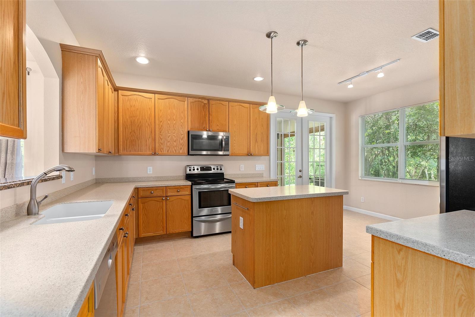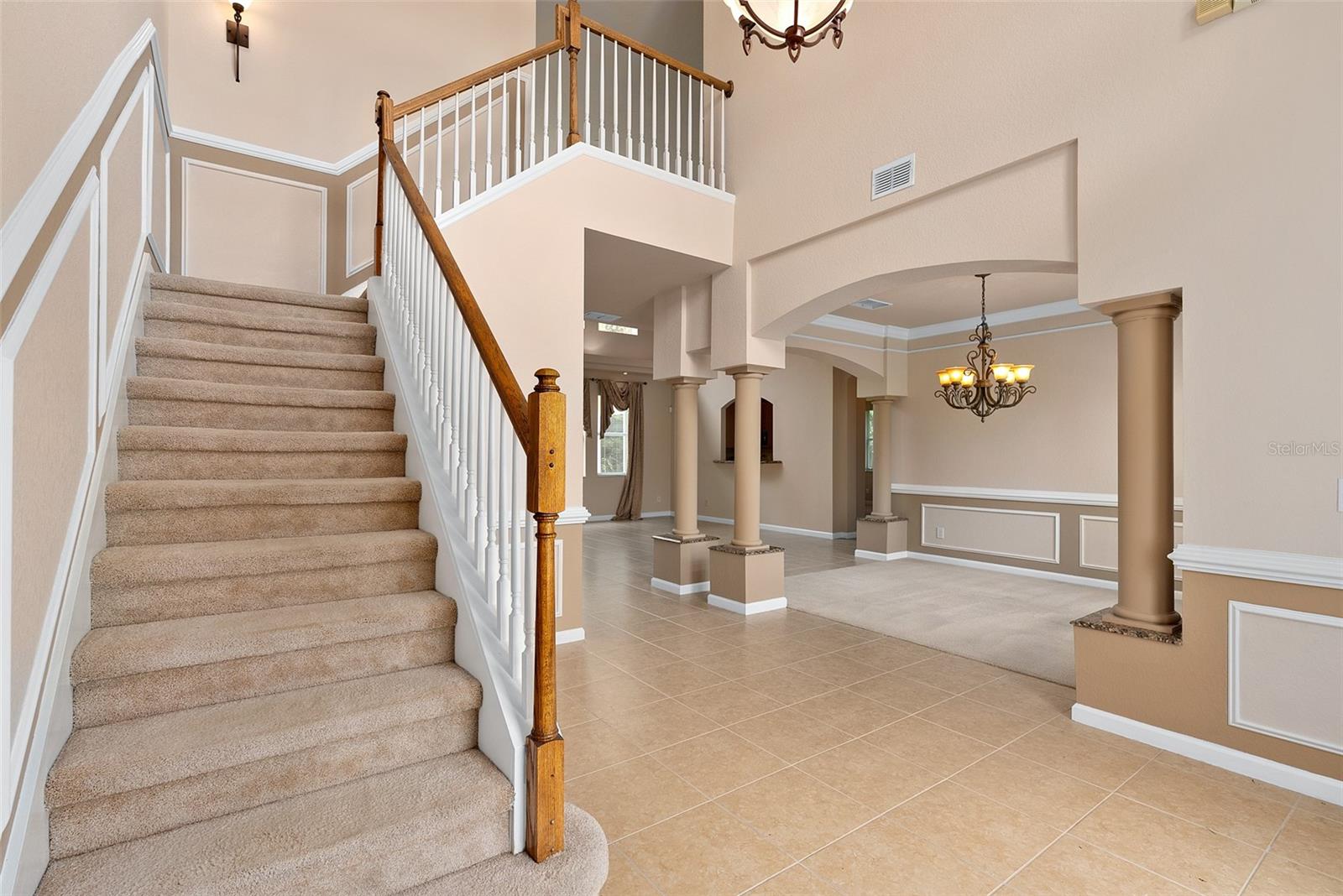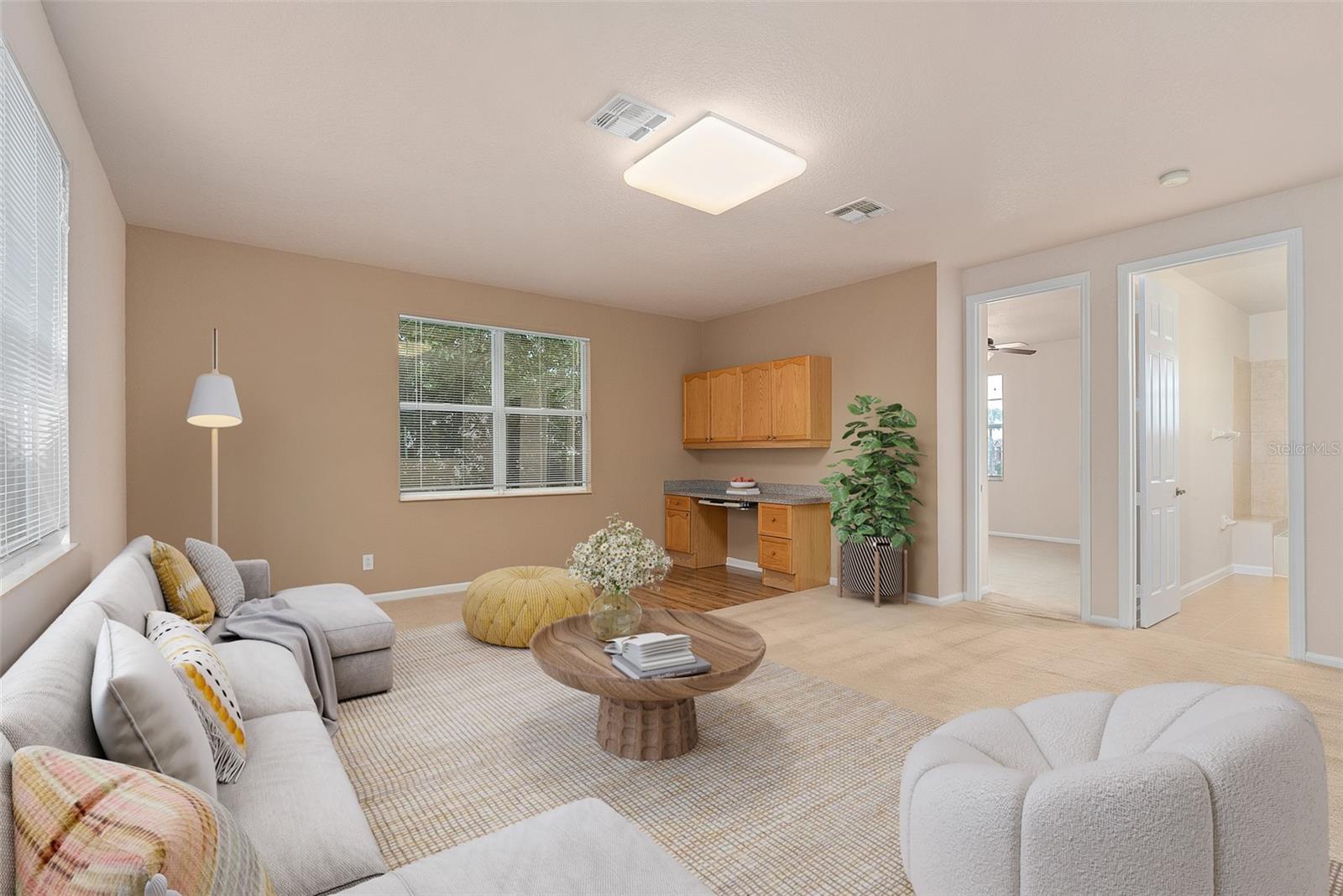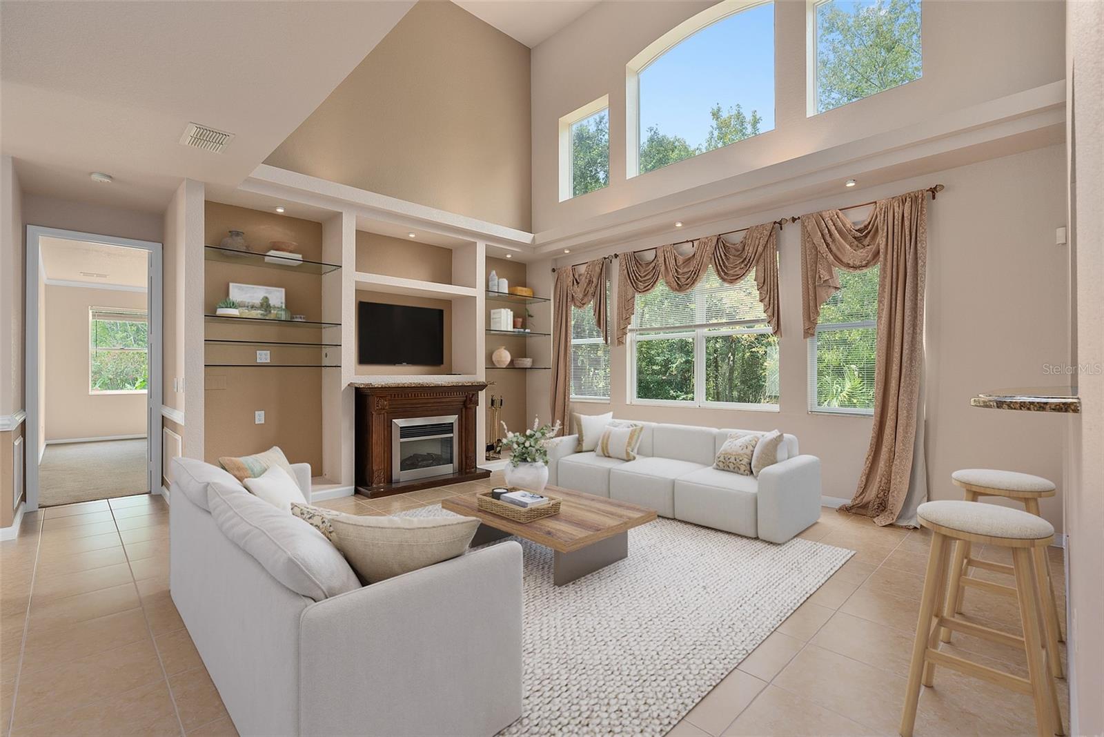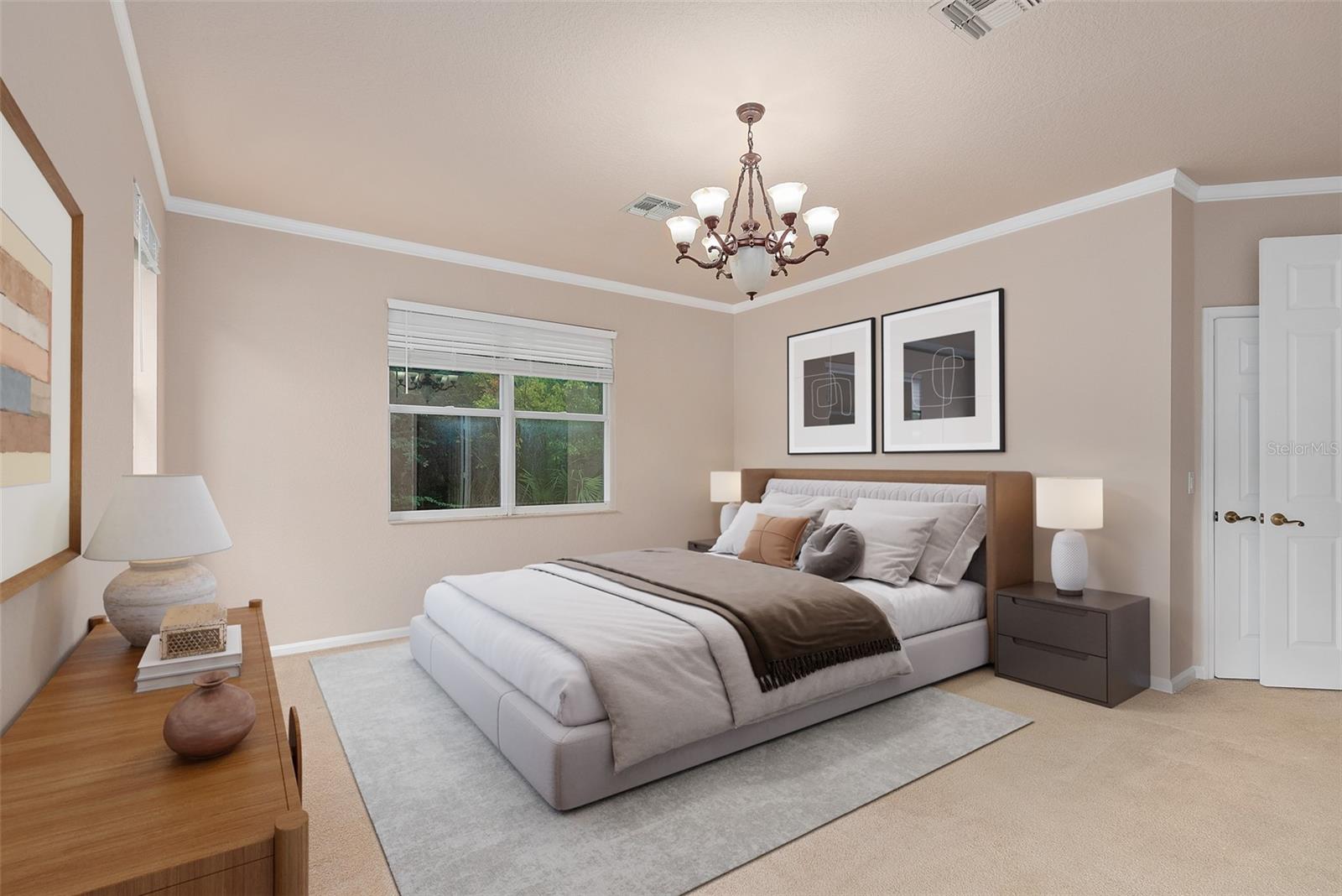 Welcome to a beautiful home in the exclusive gated community at Weston Reserve. This impressive property offers luxury living with an amazing view of the woods. The private outdoor and indoor spaces with dual locations to enjoy the view of birds like cardinals, blue jays, a creek and the forest. This property is on a cull de sac. As you enter the foyer there is a stunning living family room with high ceilings, a formal dining room and a den to accommodate your entertainment area. A beautiful electric fireplace is enhancing a huge entertainment center. The window treatments with blinds enhance privacy and style. On the left you walk into the super large master bedroom with large windows facing the woods, a walking closet and dual separate sinks with shower and jacuzzi tub. The Master Bedroom is conveniently located on the main floor. On the right you will find the spacious kitchen with an island, pantry and an area for a cozy breakfast table. Corian counters add an elegant touch. The appliances are all stainless-steel. Next to the kitchen we open the French doors into a sunroom wrapped in Pella glass that enhances the beauty of the outside view. Also, on the first floor there is a laundry room with a sink, cabinets and space for a freezer. From the foyer, the wooden rail stairs transport you to the second floor to a large bonus room that has a desk and cabinet ideal for an office or playroom. The second floor also features 2 large bedrooms and 2 smaller bedrooms with two large bathrooms. This home features a mix of ceramic tile and carpet. Enjoy a 2-car garage for your vehicles and cabinets on two sides for storage. The community offers resident amenities include walking trails and a large swimming pool. Enjoy the serene lake and lush landscaping within the neighborhood. Very prime location close to shopping, Theater (the Loop), Restaurants, Airport, Disneyworld, Universal Studios, and SeaWorld, easy access to major Highways. 1 hour from Coca Beach. New Roof was just installed. One new a/c. Interior freshly painted. Exterior painted 2 years ago. All carpets cleaned. Call today to schedule your viewing!! Don't miss the opportunity to make this amazing property your dream home.