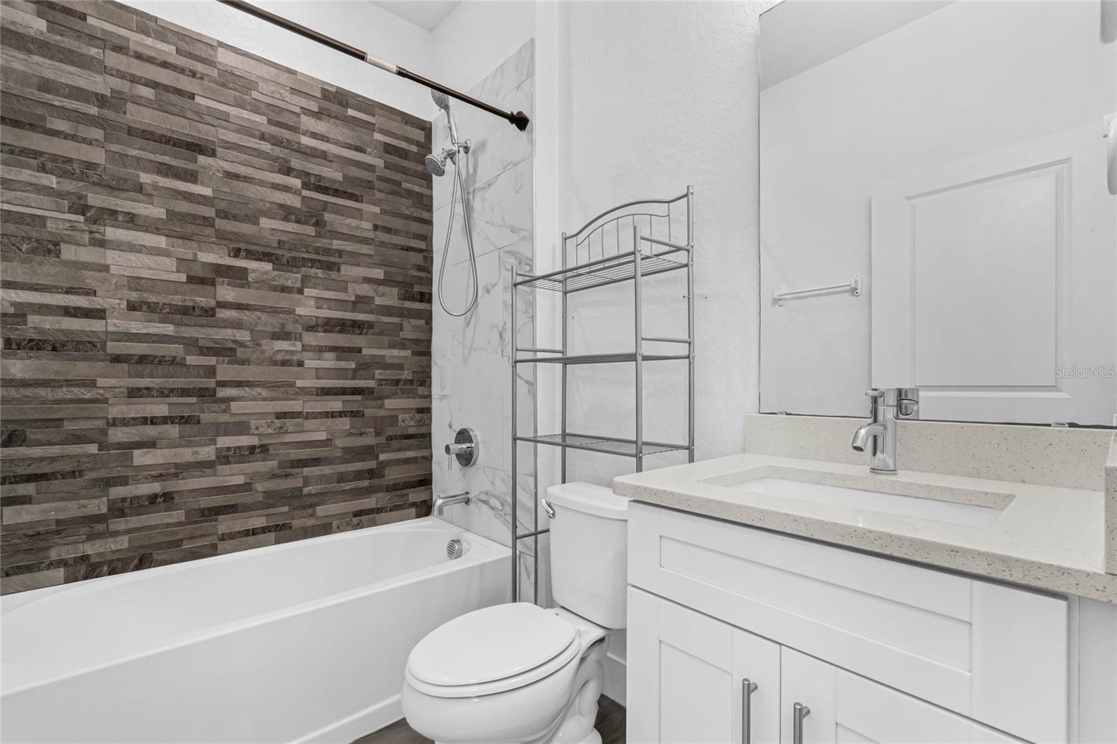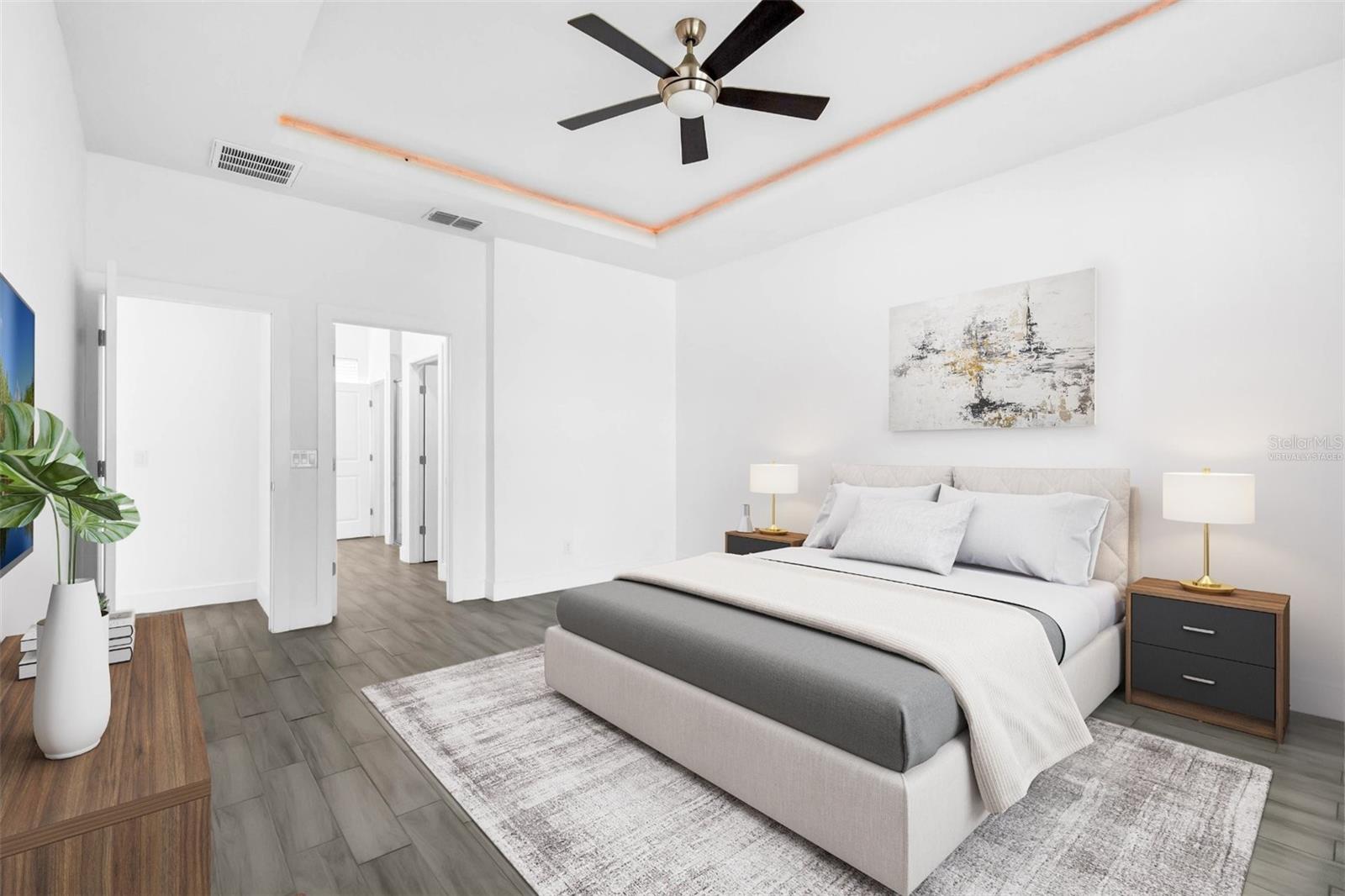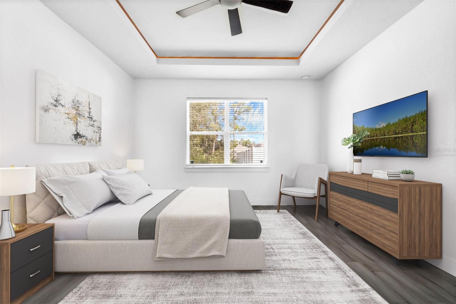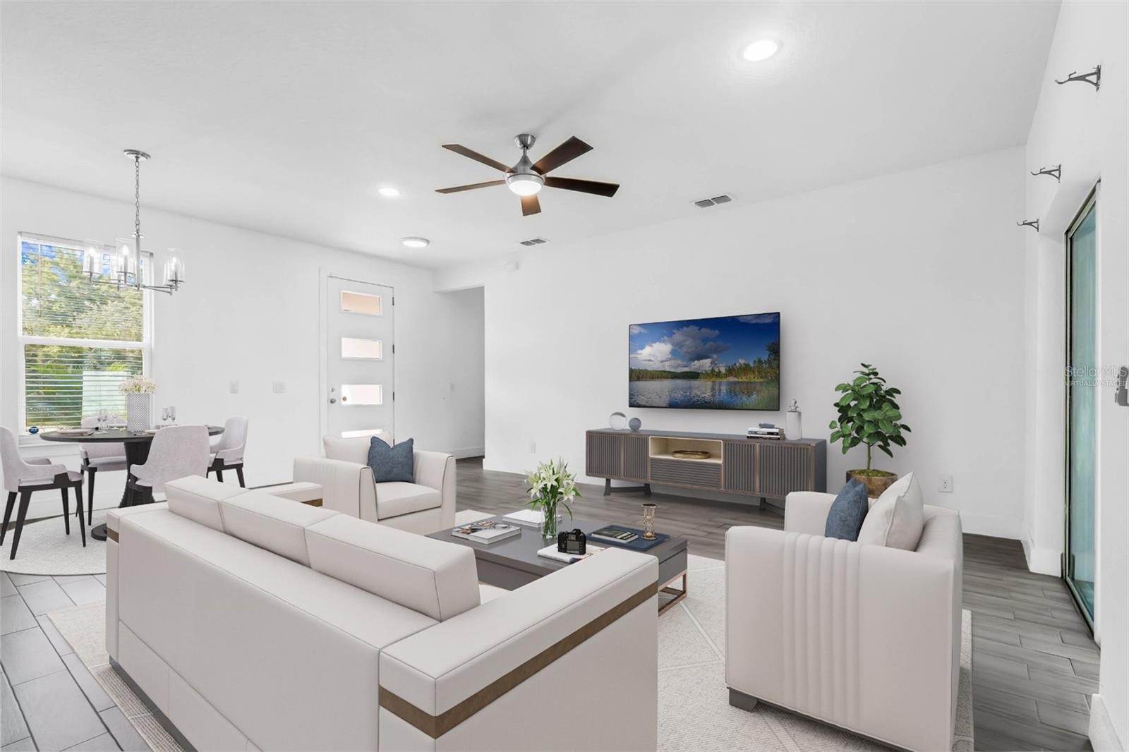 One or more photo(s) has been virtually staged. Here's your chance to BUY before this great deal gets rented! Welcome to this fantastic modern home in Poinciana Villages! This residence features a great open concept floor plan with high ceilings and stylish wood-look tile floors throughout, making cleaning a breeze. Relax and entertain in the spacious living/dining room combo where sliding glass doors to a covered lanai, overlooking your private backyard The chic kitchen showcases shaker-style cabinets, striking solid surface counters, and an oversized island with breakfast bar seating illuminated by pendant lighting and complemented by stainless steel appliances. The thoughtfully designed split bedroom layout ensures privacy for all. Your primary bedroom is a retreat with a tray ceiling, and the en suite bath offers a walk-in closet, dual vanity, and a luxurious shower. Conveniently located off the kitchen, the laundry room provides easy access to the garage. The secondary bath has a gorgeous tile in the tub/shower combo and a modern vanity.. Poinciana Villages boasts an impressive array of amenities including a community pool, fitness center, recreation center, and year-round events. Enjoy the proximity to Charlie Wheeler Community Park, Poinciana Youth Soccer, Deerwood Park Soccer Fields, Poinciana Medical Center, and quick access to US 17, the Turnpike, and I-4. Plus, you're just a short drive from Orlando’s world-famous theme parks and an abundance of shopping and dining options. Don’t miss this opportunity to make this your new home!